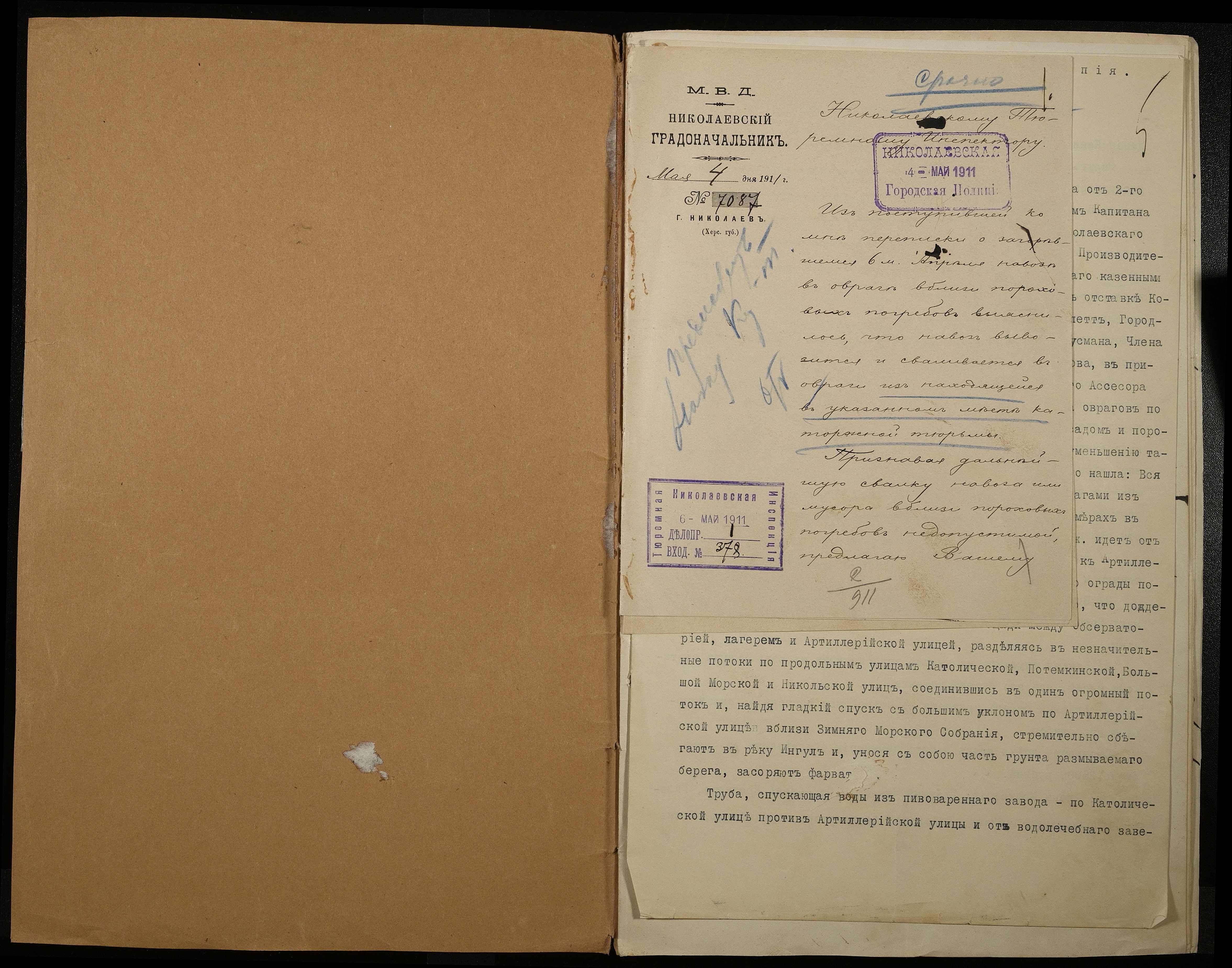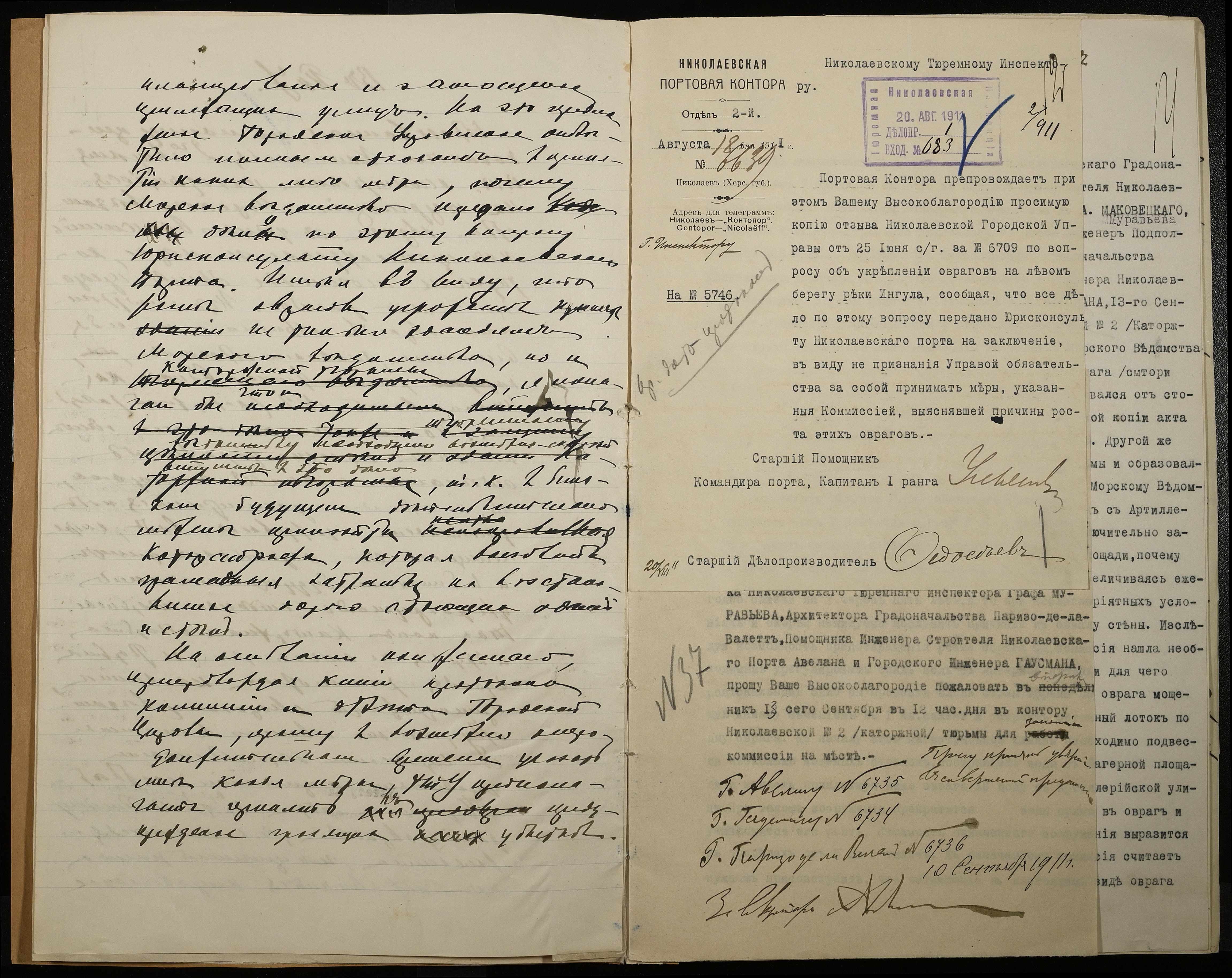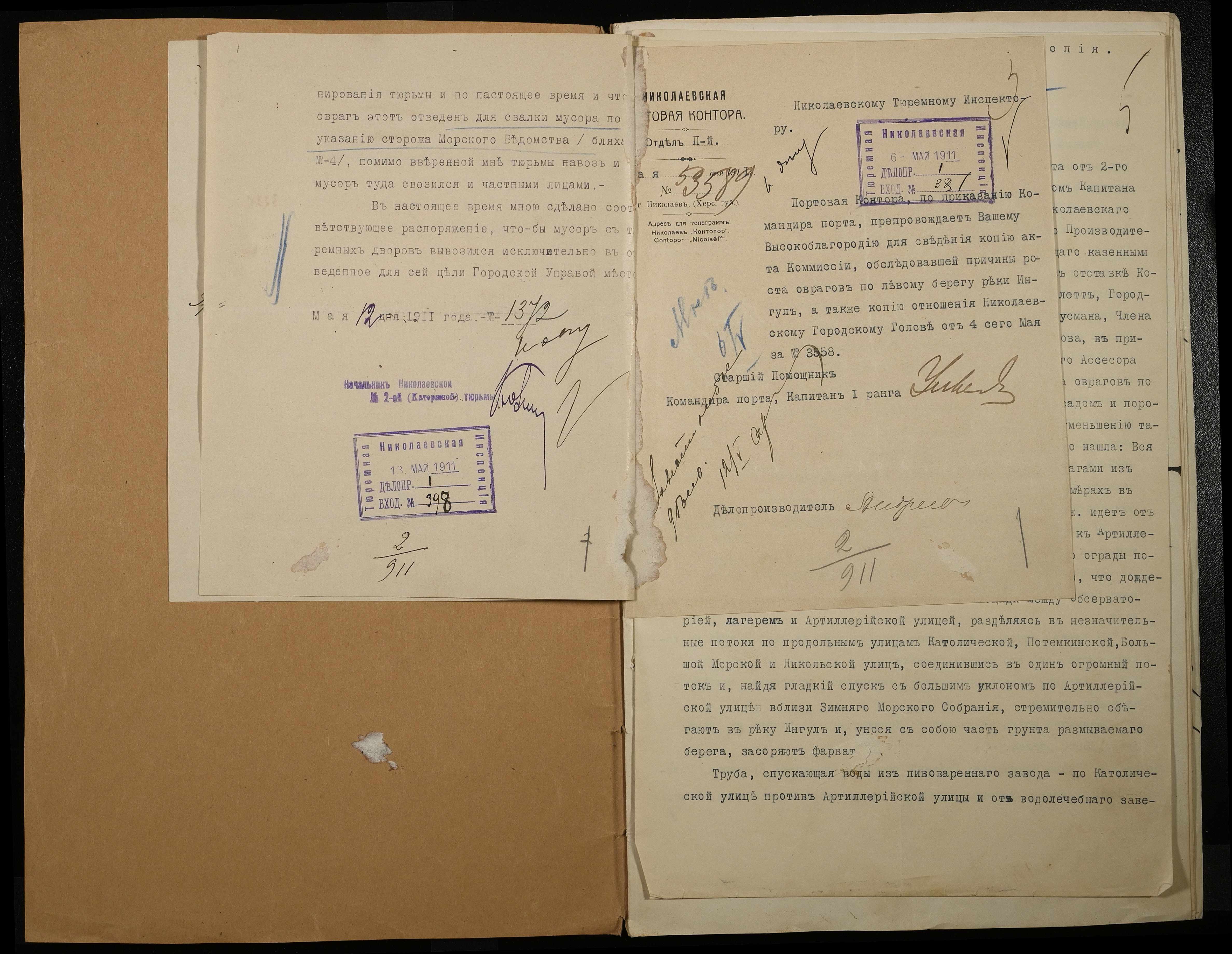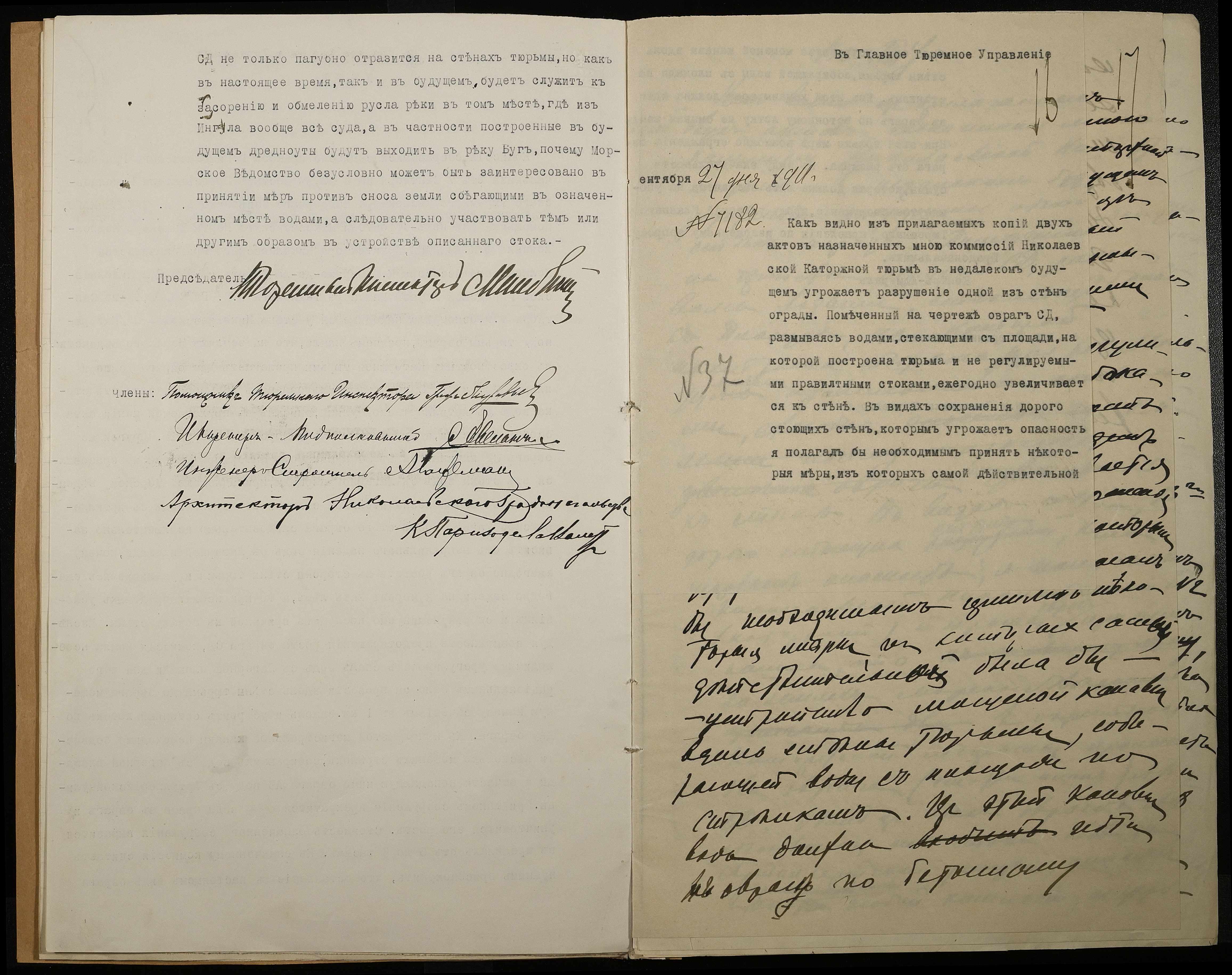 • • • • Справа № 66 Листування з Головним тюремним управлінням, Миколаївським градоначальником, міською управою, Миколаївською портовою конторою про загрозу руйнування огорожі і будівель Миколаївської 2-ої каторжної тюрми через збільшення яру поряд з нею та про заходи по укріпленню яру