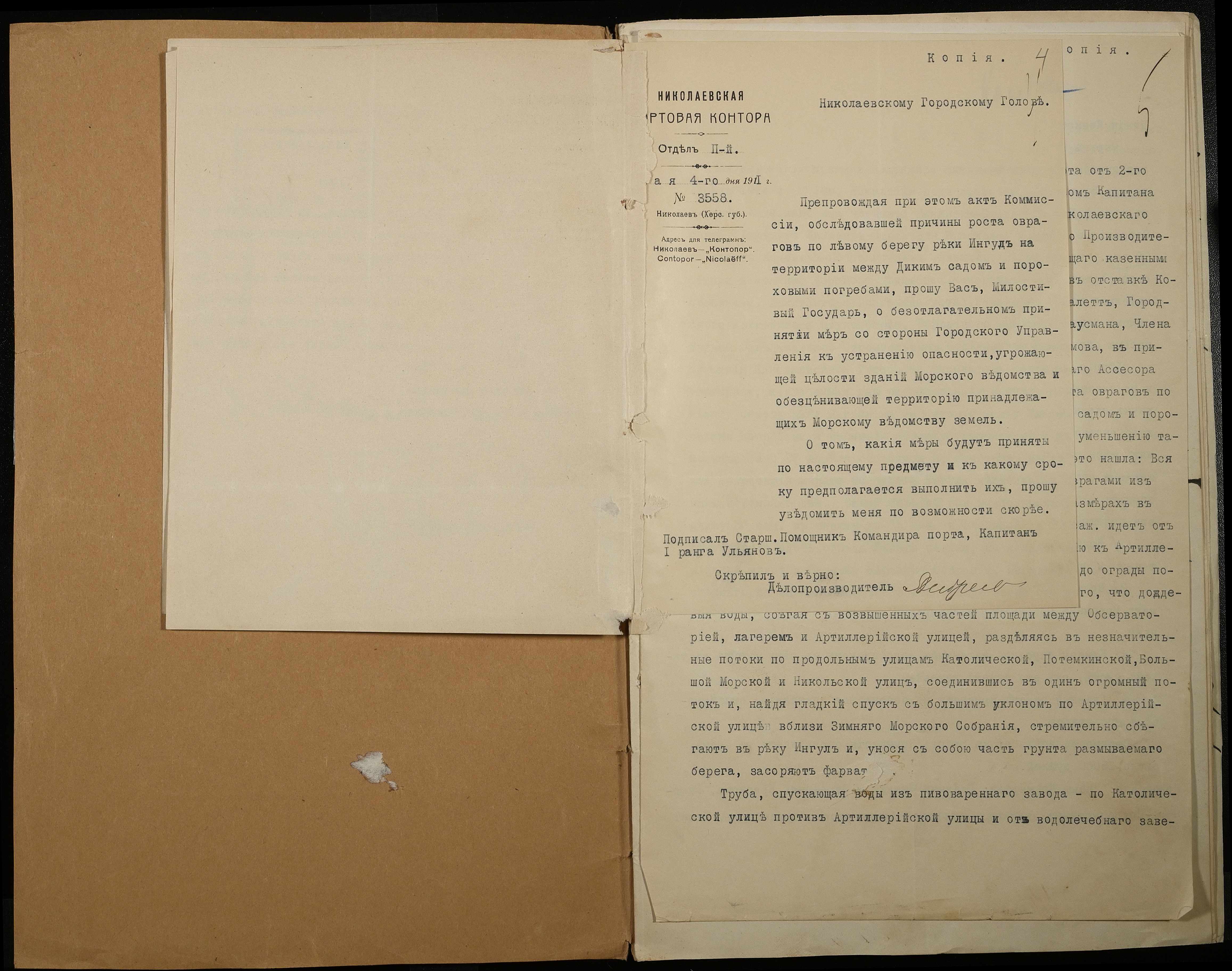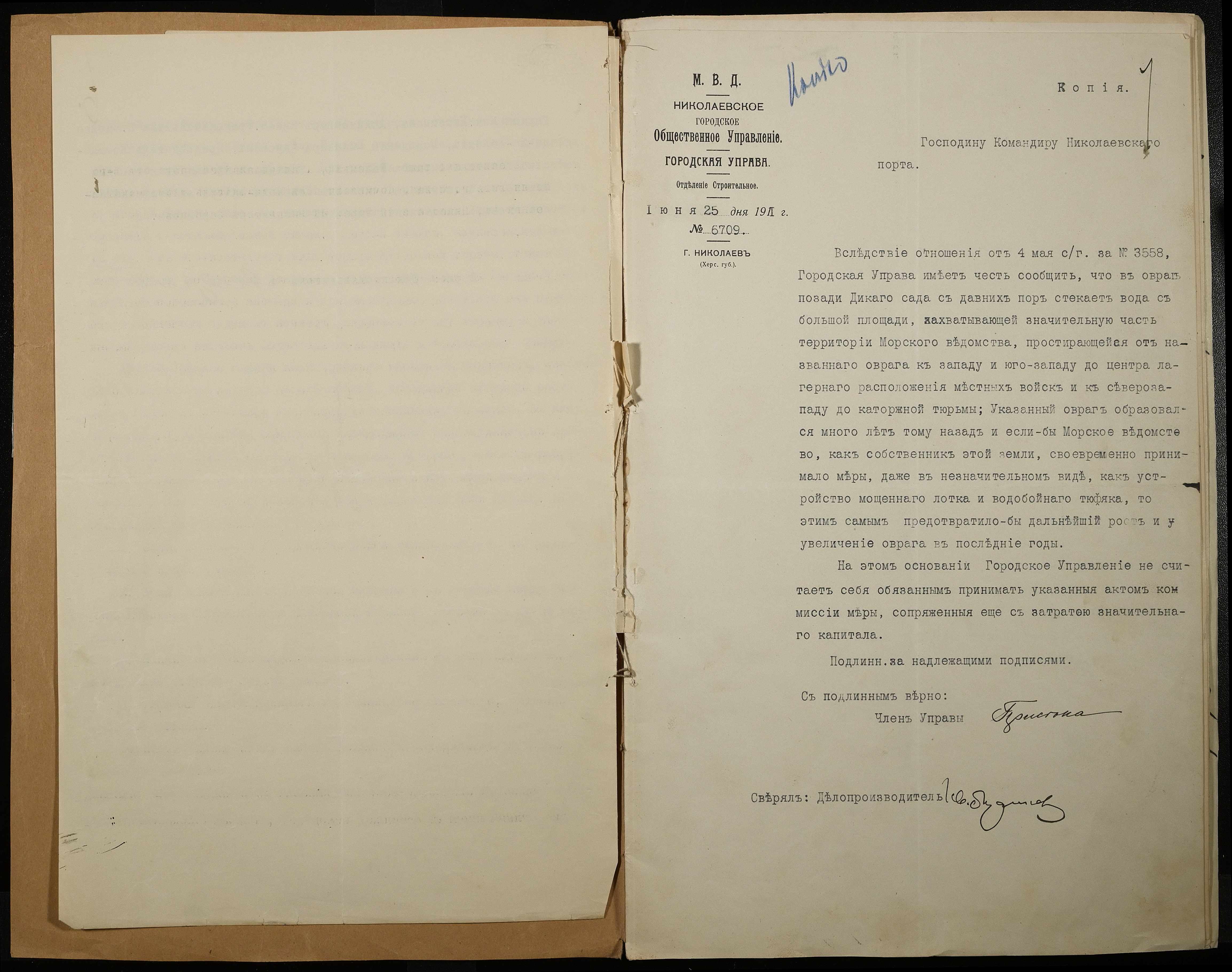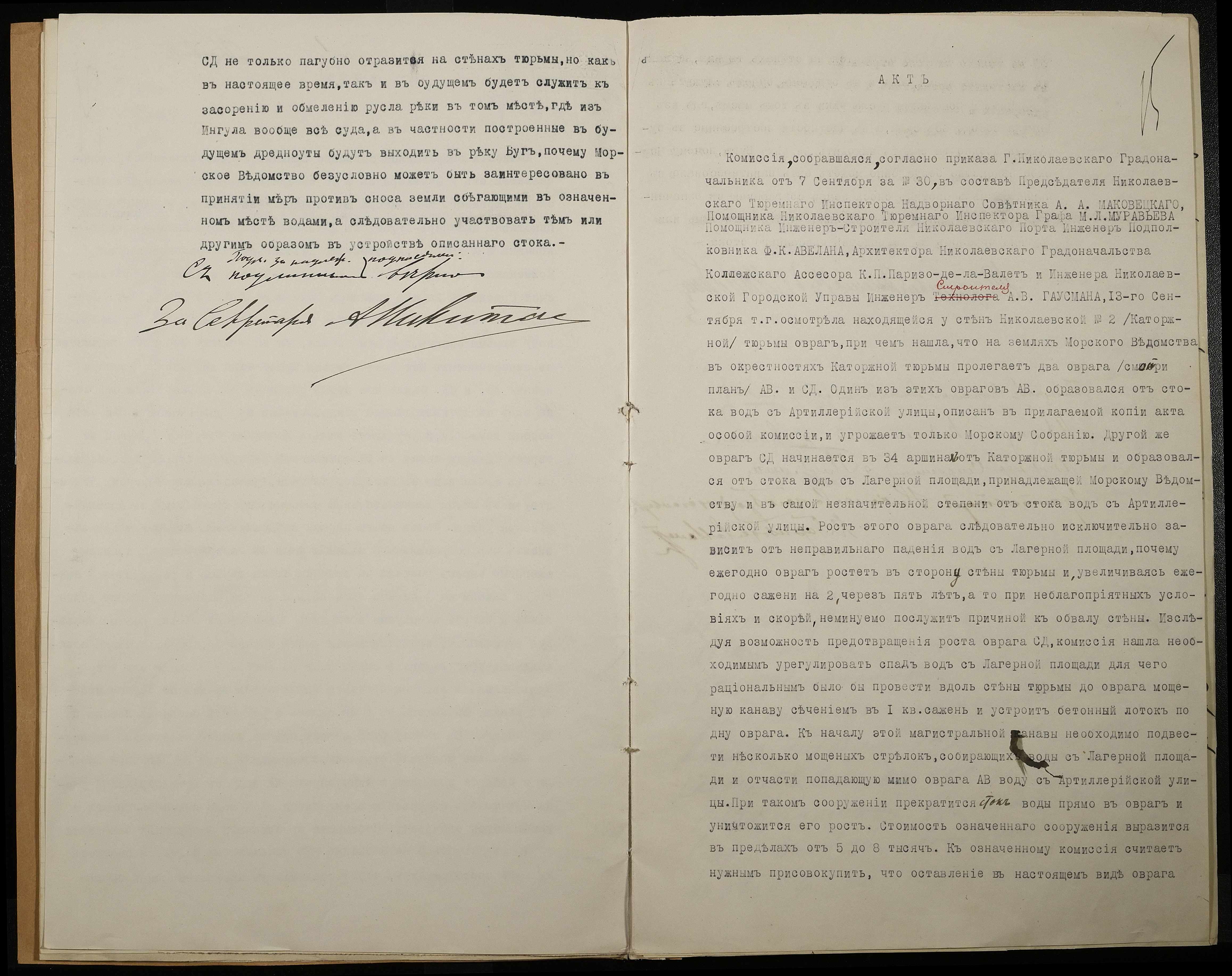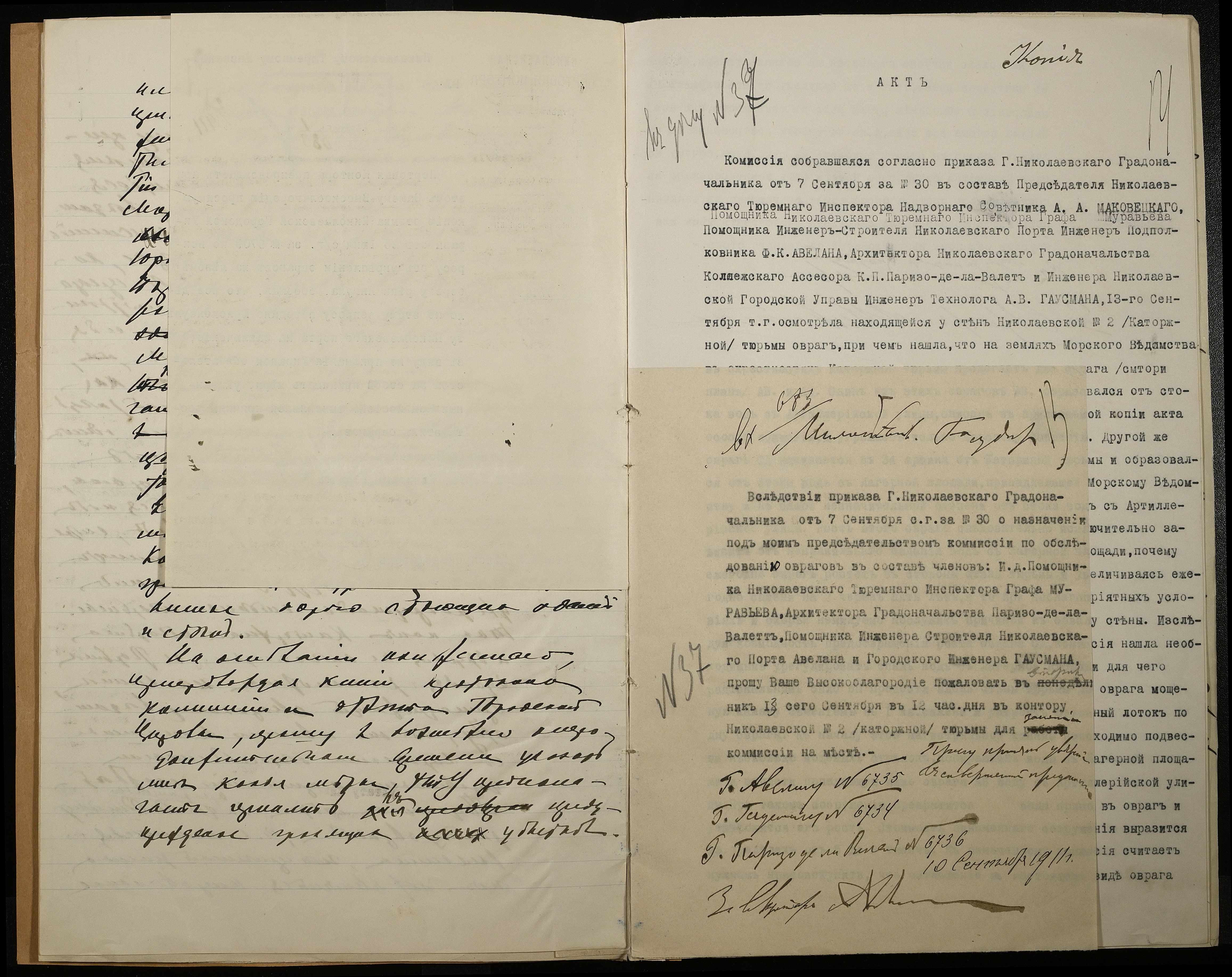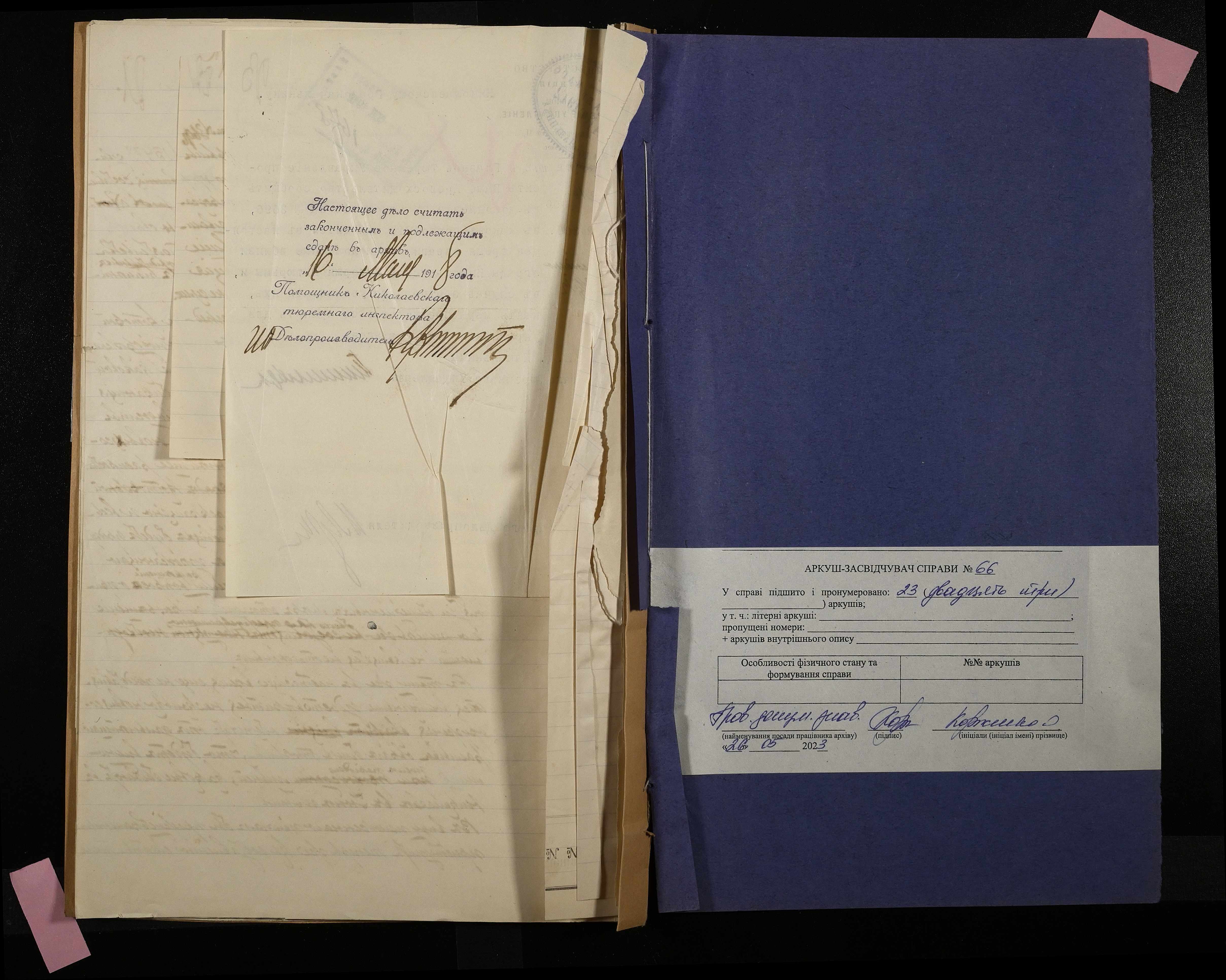 • • • • Справа № 66 Листування з Головним тюремним управлінням, Миколаївським градоначальником, міською управою, Миколаївською портовою конторою про загрозу руйнування огорожі і будівель Миколаївської 2-ої каторжної тюрми через збільшення яру поряд з нею та про заходи по укріпленню яру