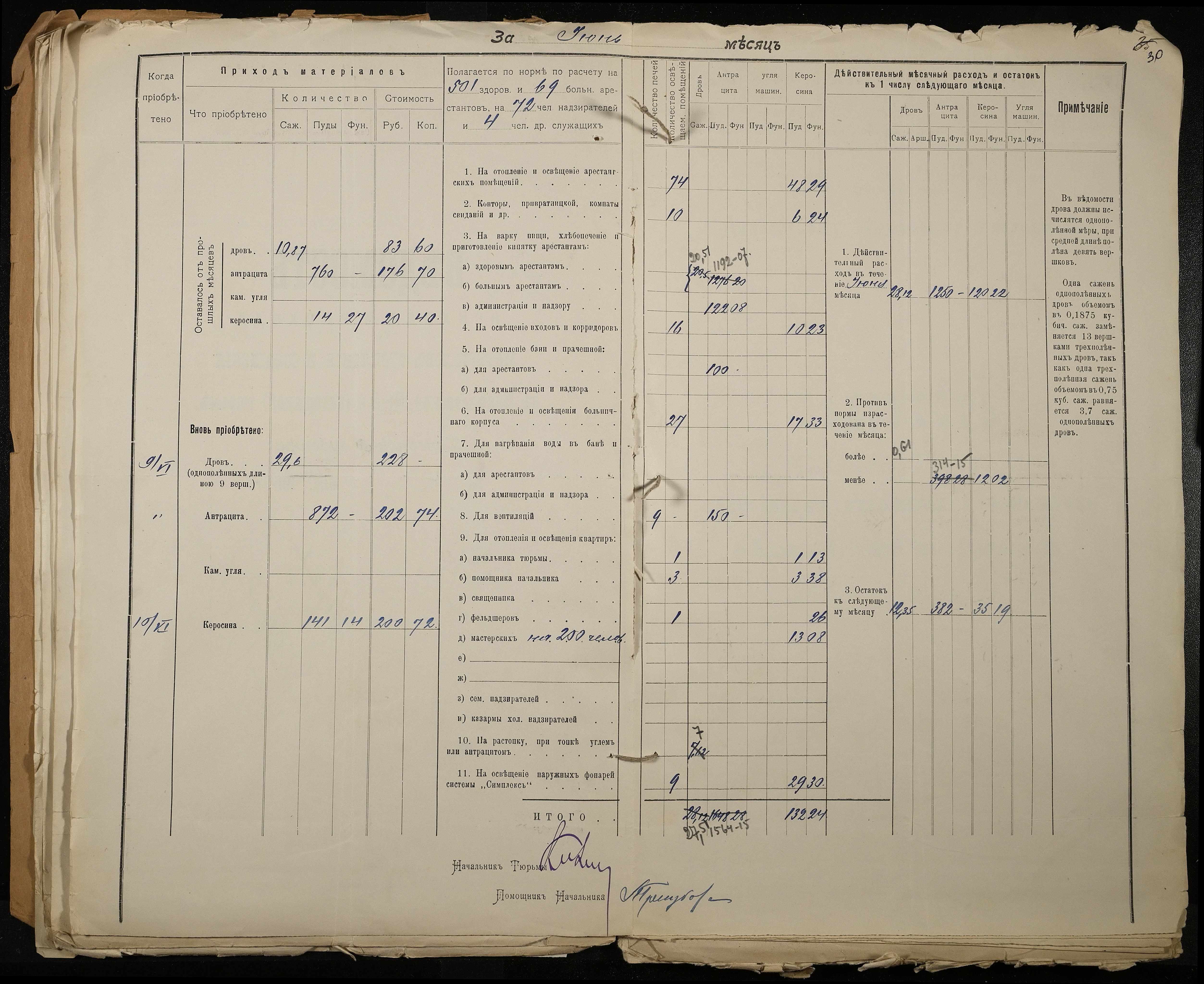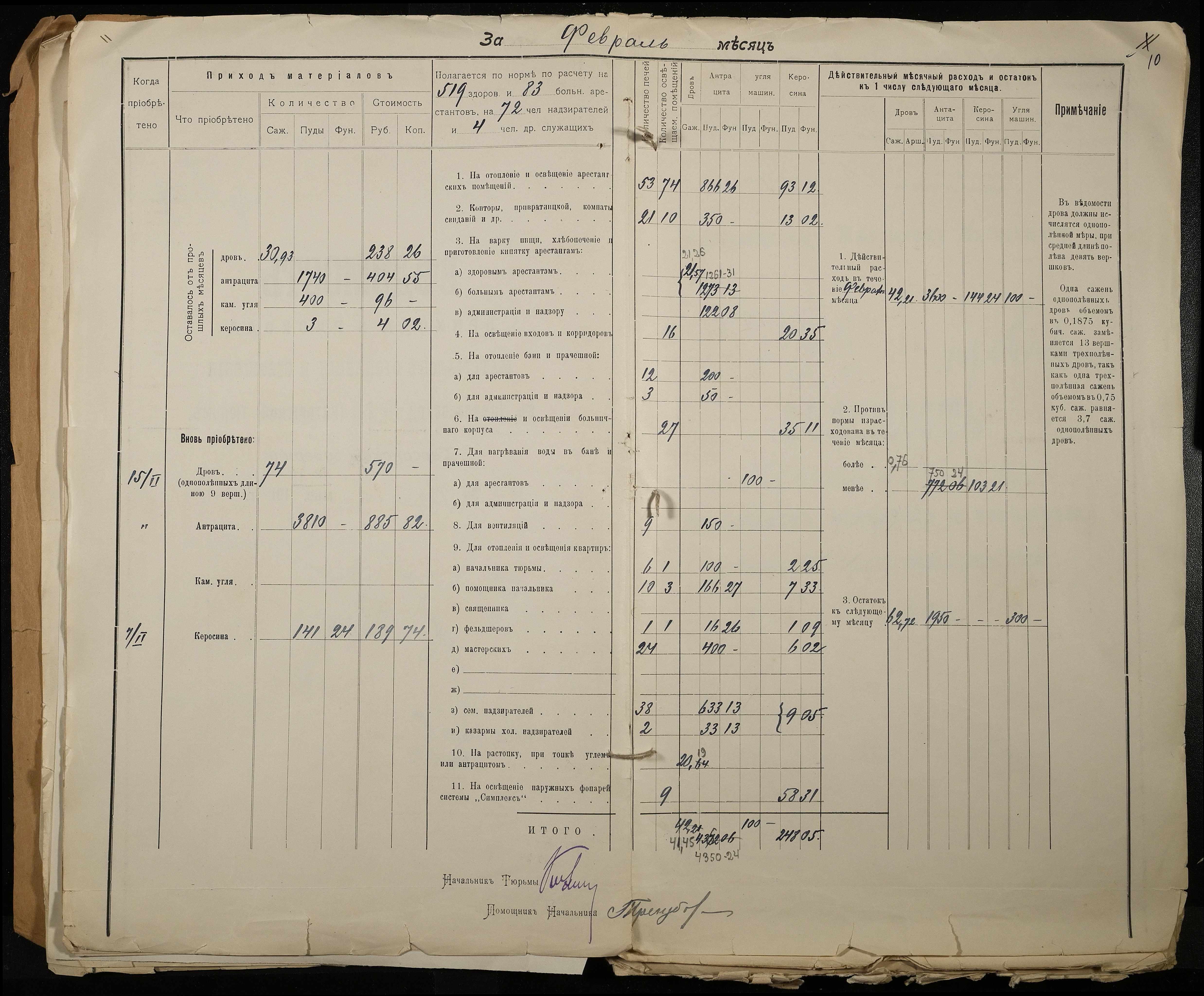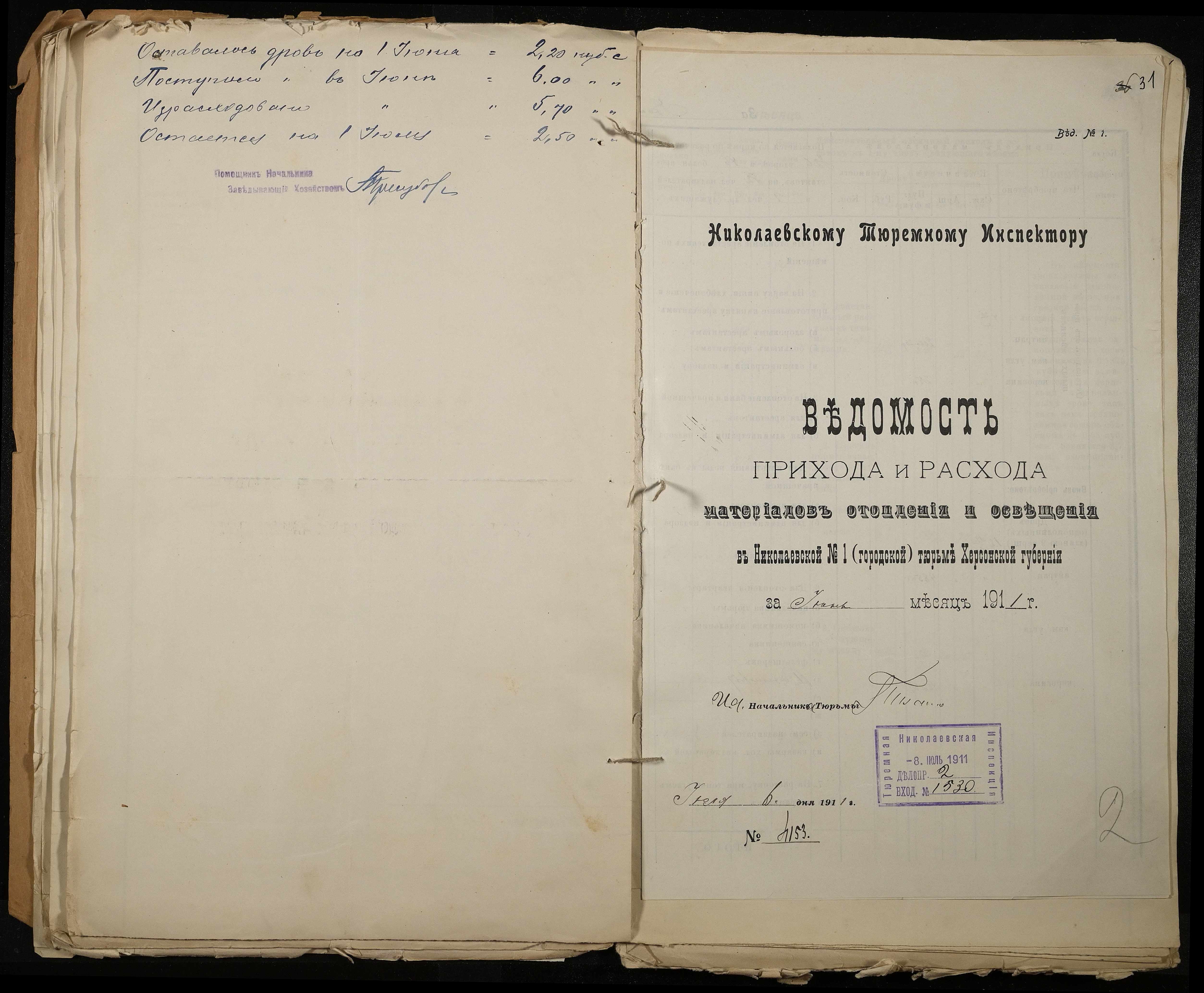 • • • • Справа № 73 Прибутково-видаткові відомості матеріалів для опалення і освітлення в миколаївських виправних установах