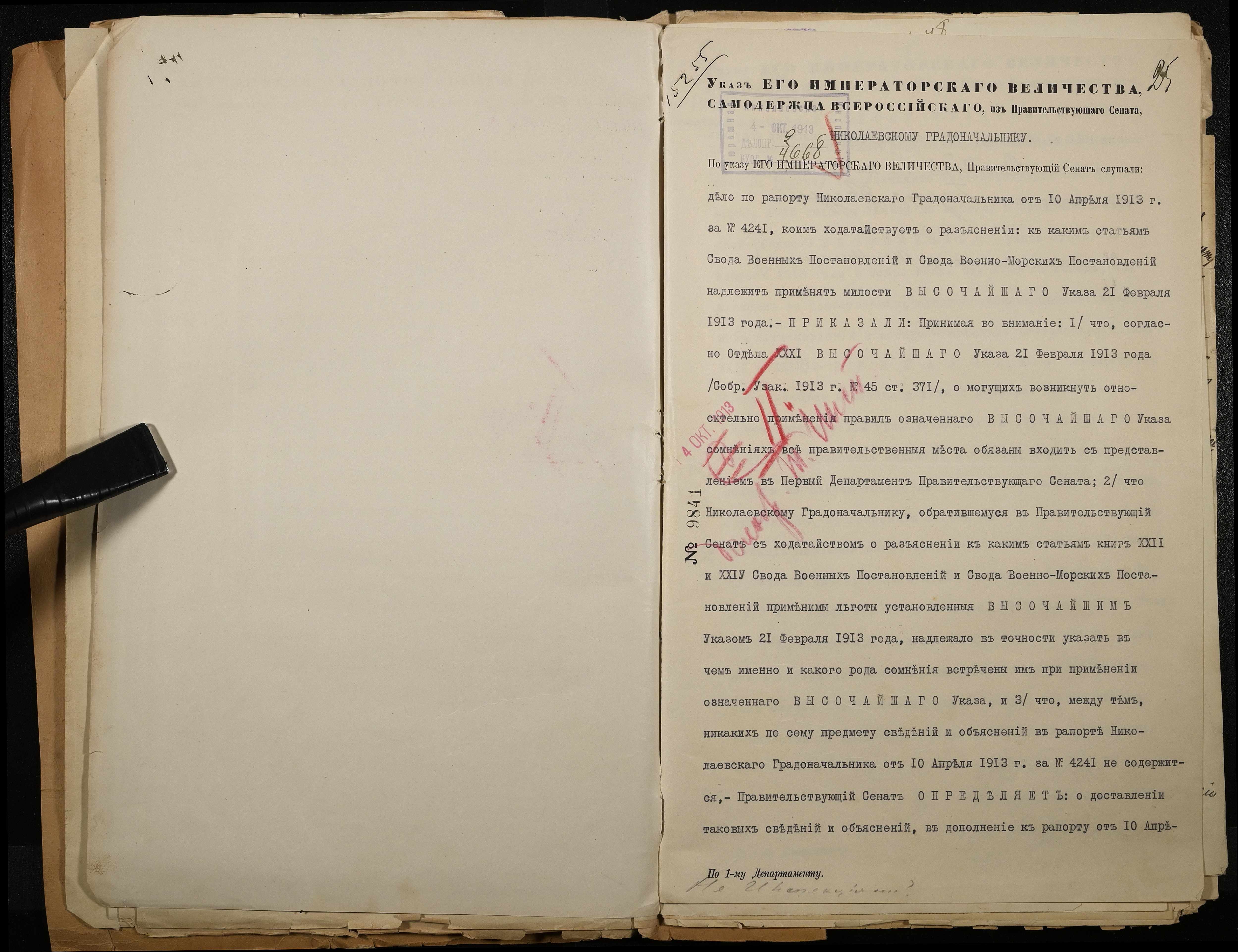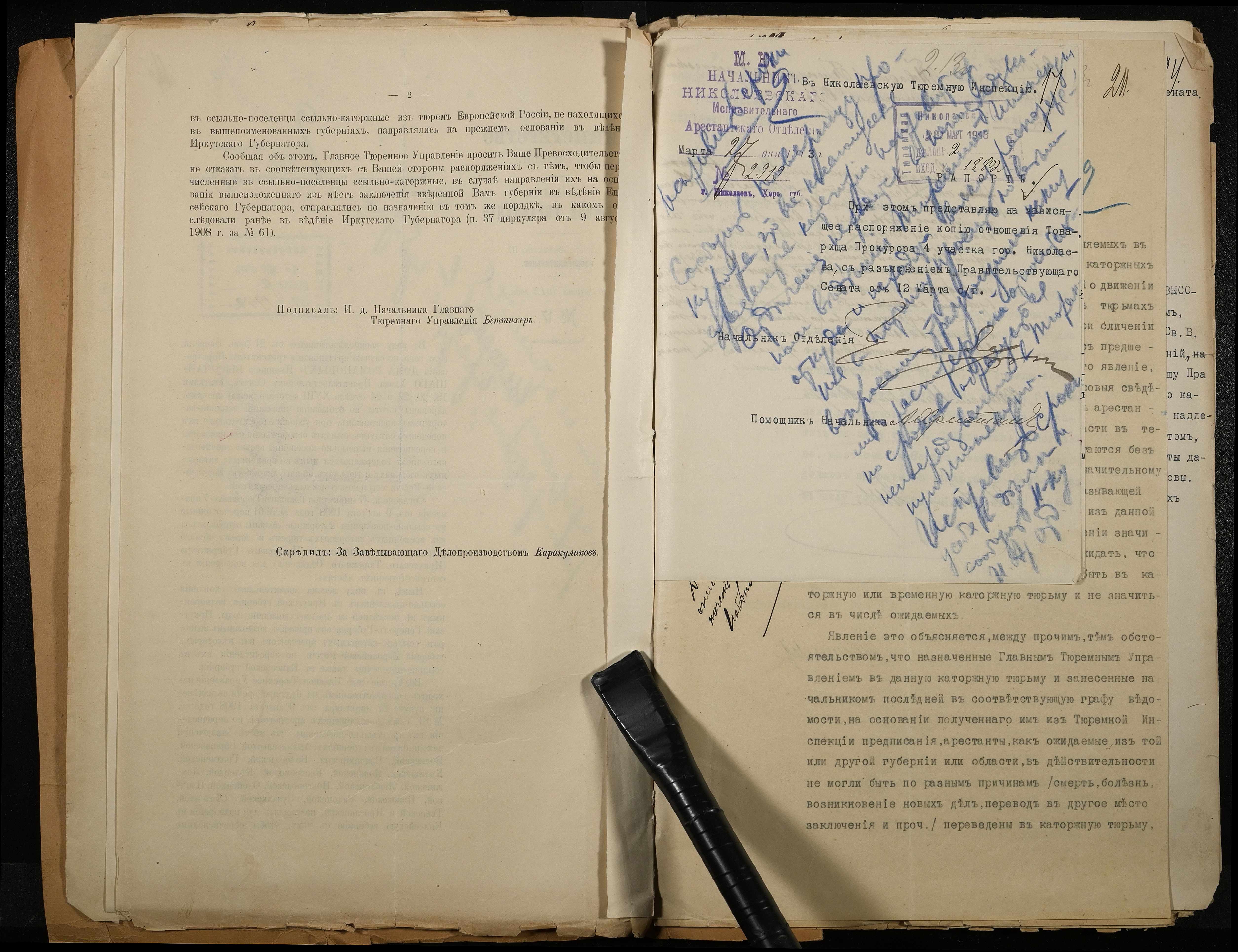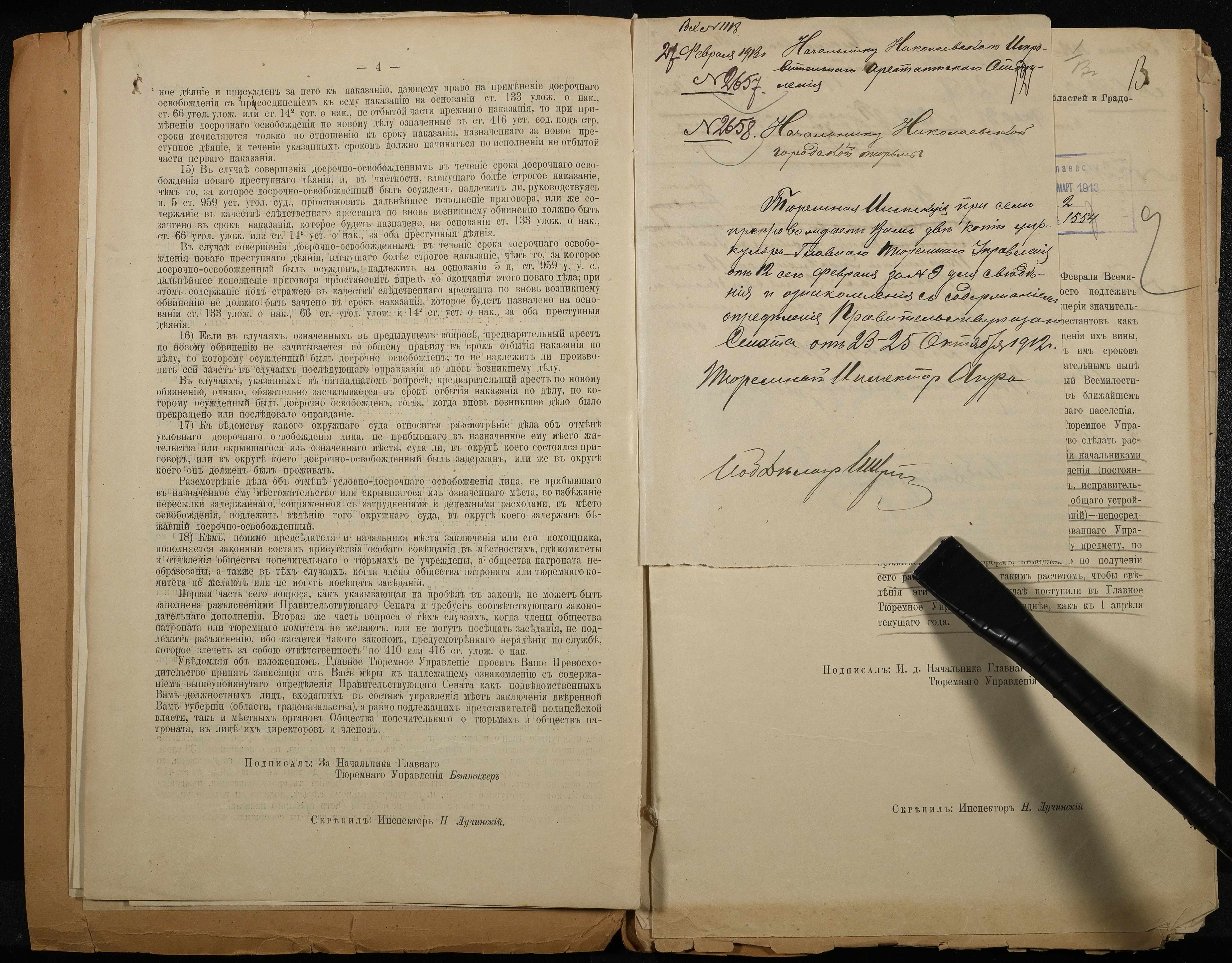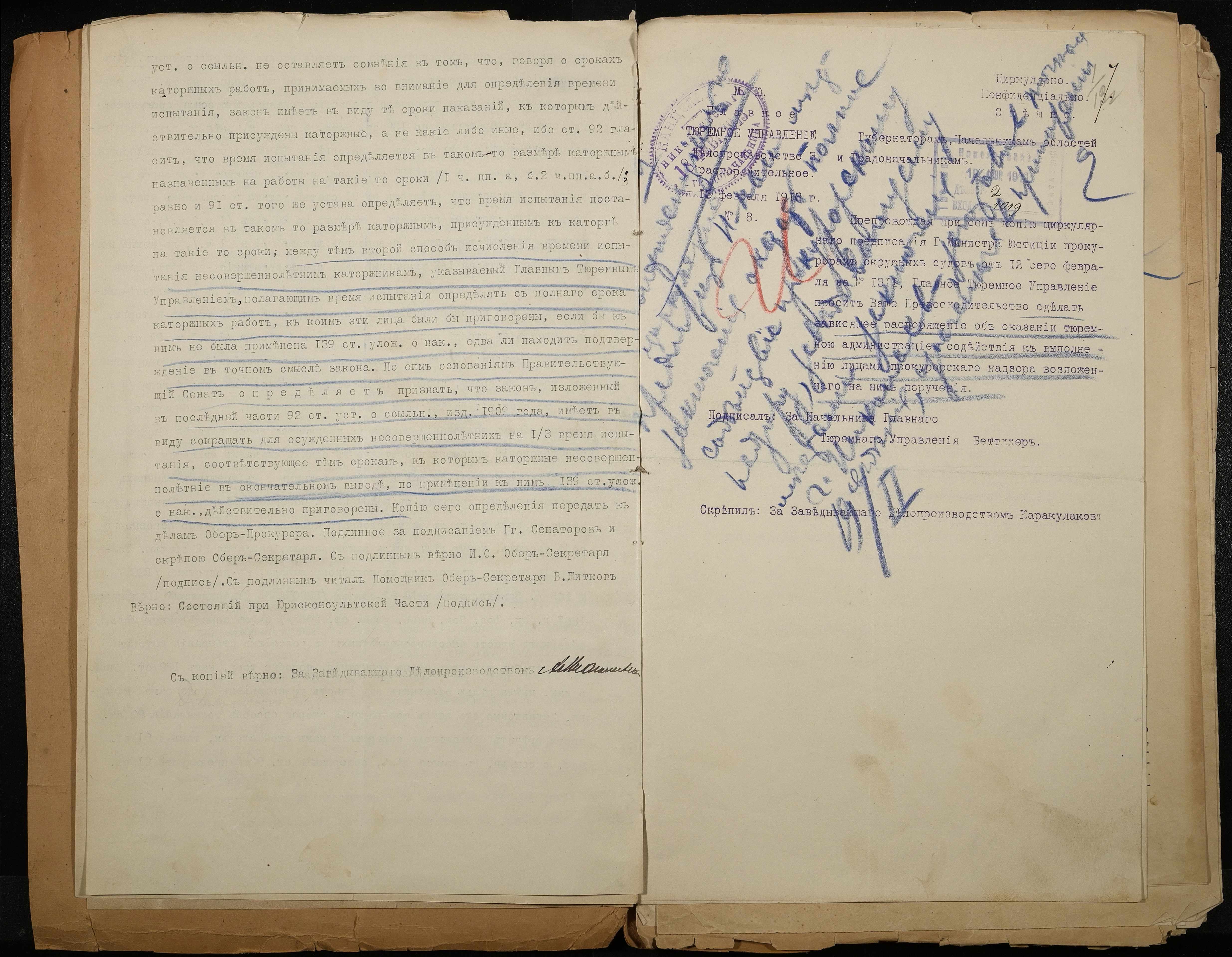 • • • • Справа № 93 Обіжники Головного тюремного управління та листування з ним, начальниками місць ув’язнення м. Миколаїв про скорочення строків відбування покарання для неповнолітніх арештантів, надання пільг, прощення або скорочення строків ув’язнення арештантам та висланцям відповідно до Маніфесту 21-го лютого 1913 року; порядок надання відомостей про рух арештантів та ін.
