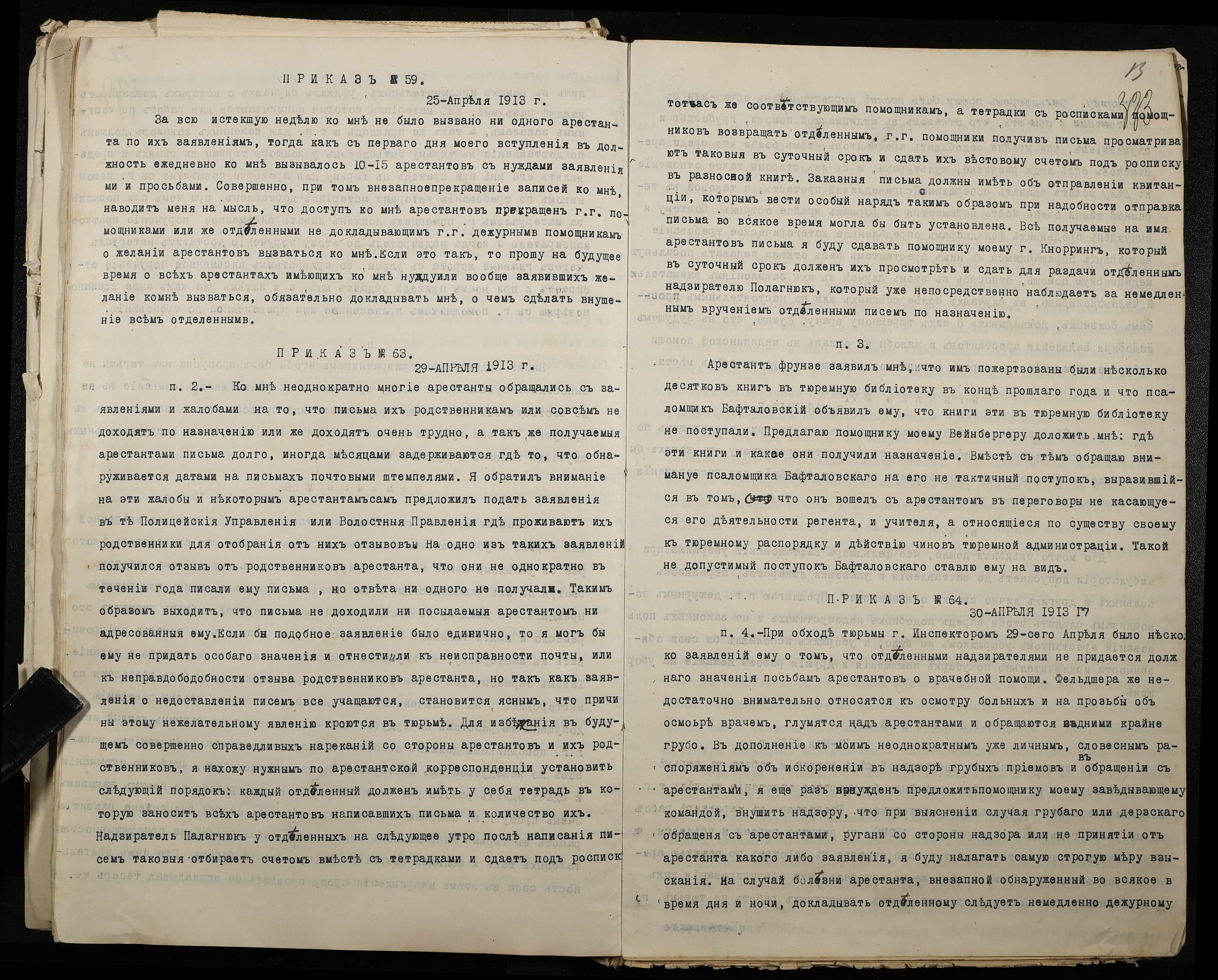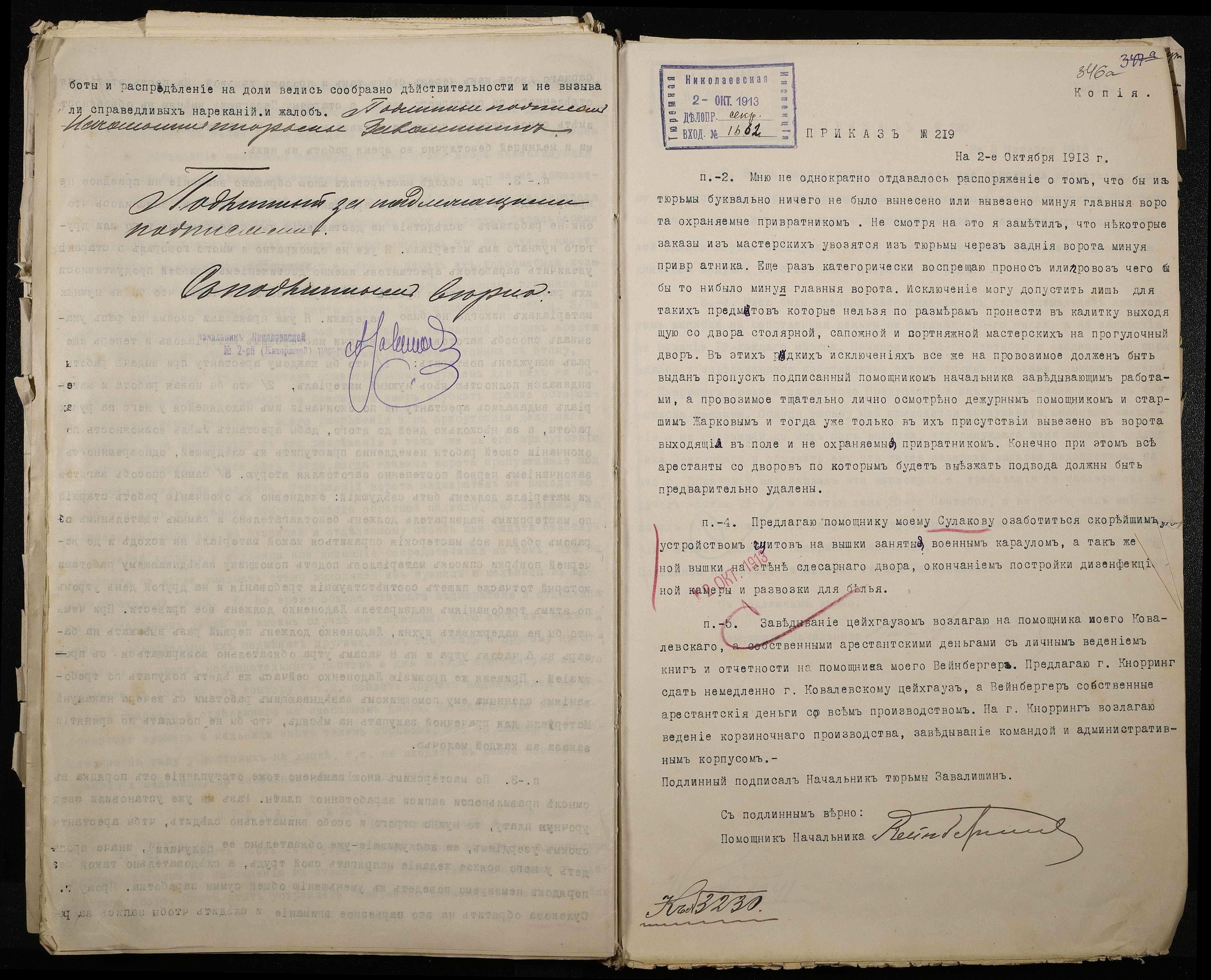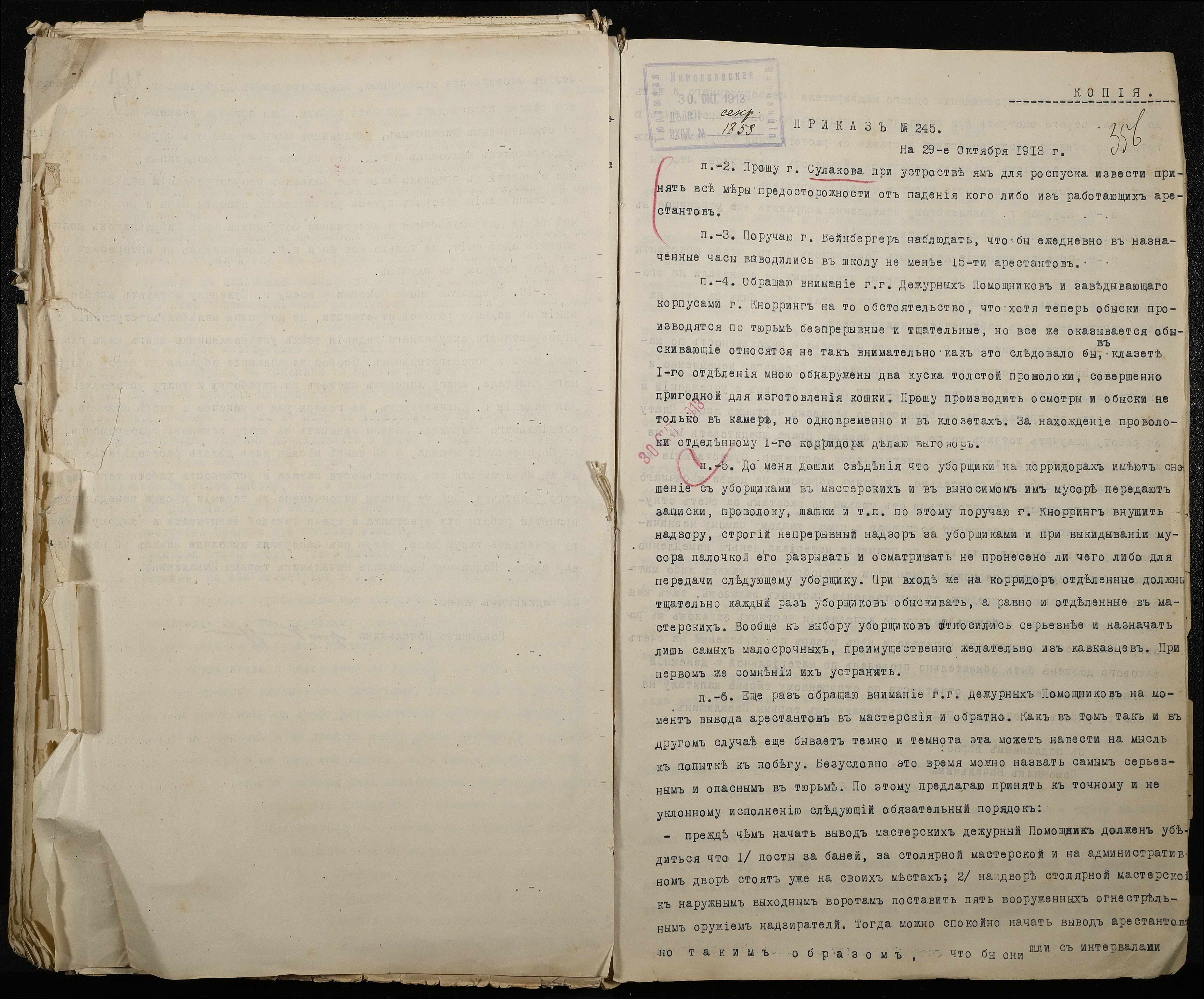 • • • • Справа № 96 Накази начальника Миколаївської 2-ої каторжної тюрми та начальника Миколаївського виправного арештантського відділення з основної діяльності за 1913 рік.