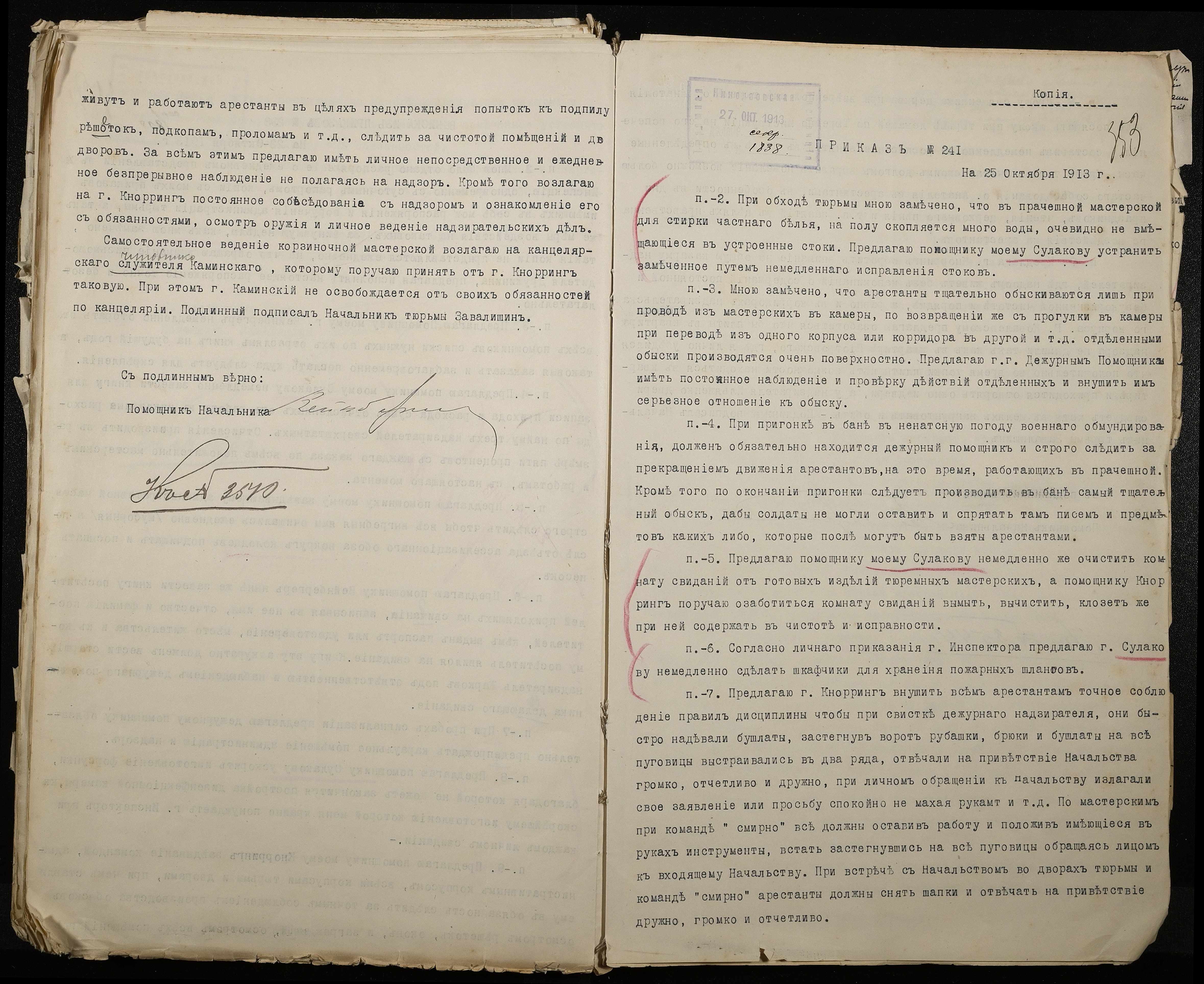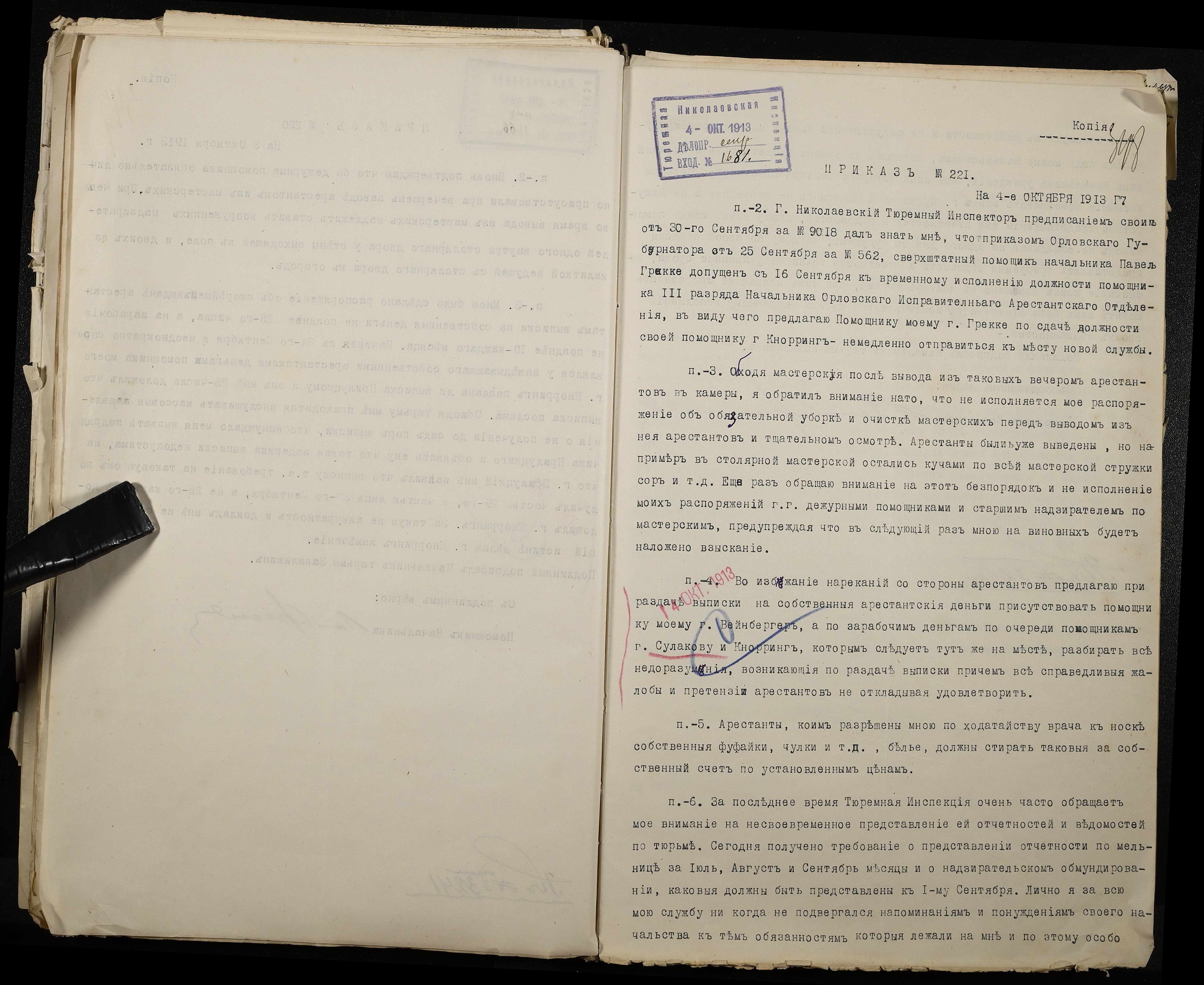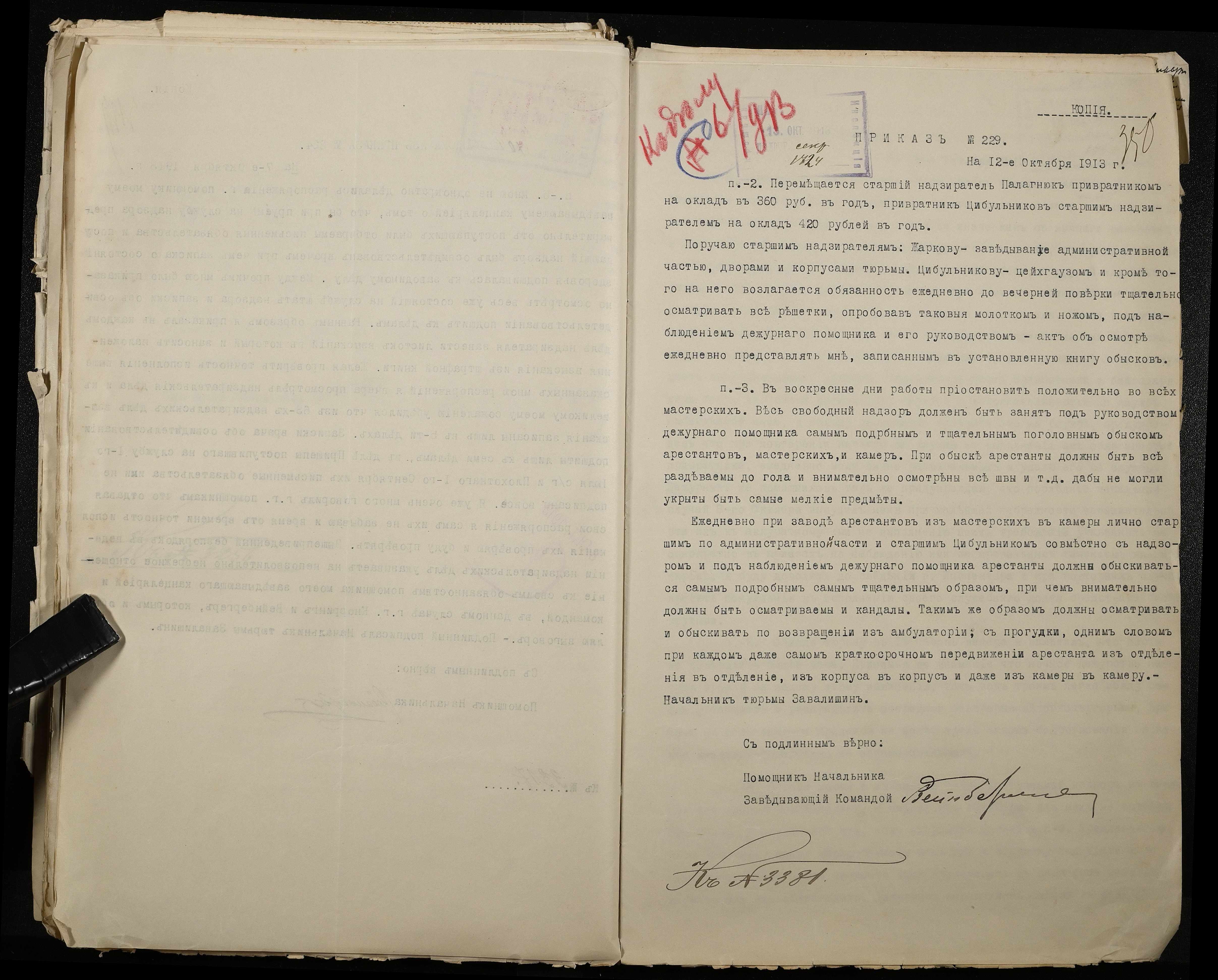• • • • Справа № 96 Накази начальника Миколаївської 2-ої каторжної тюрми та начальника Миколаївського виправного арештантського відділення з основної діяльності за 1913 рік.