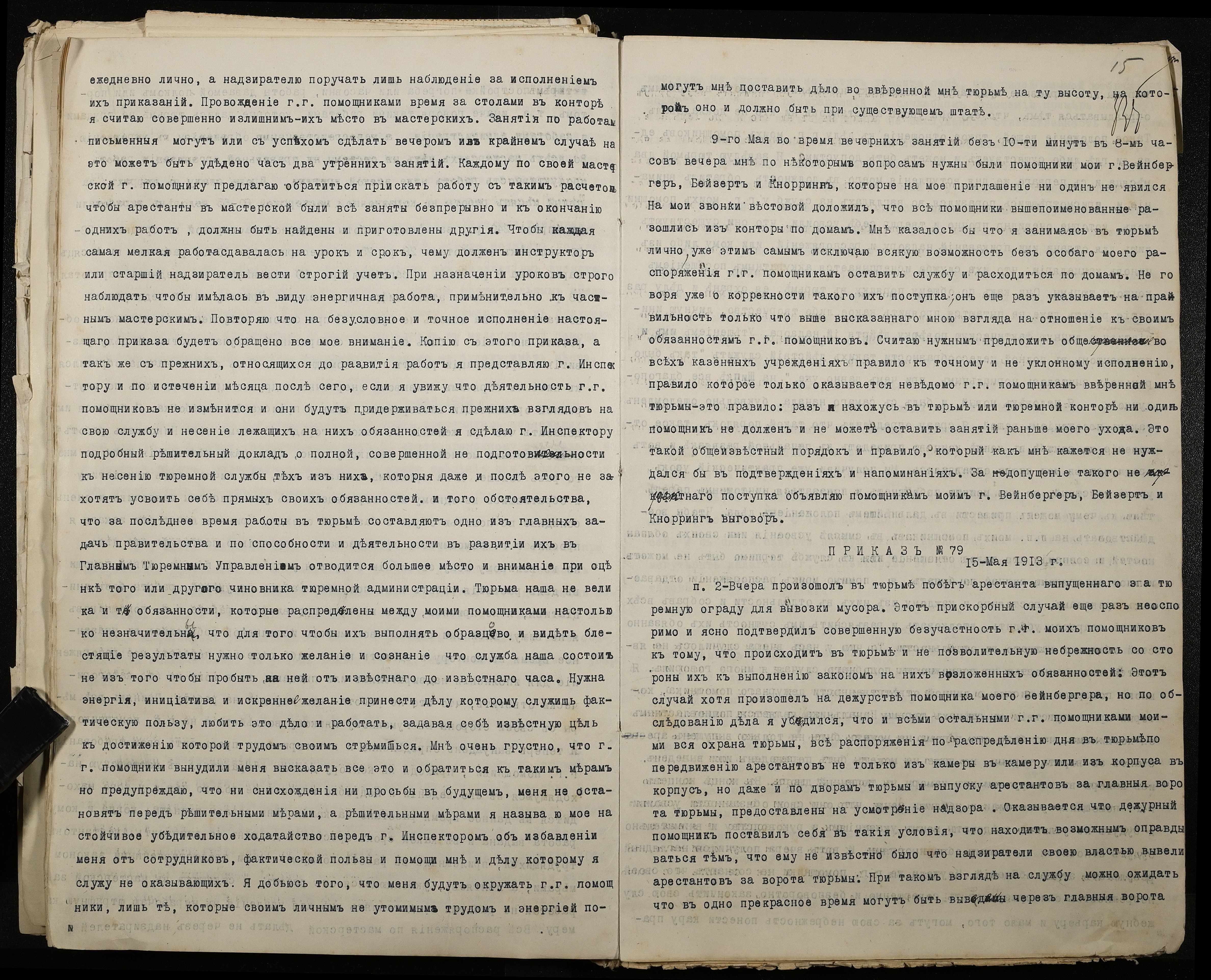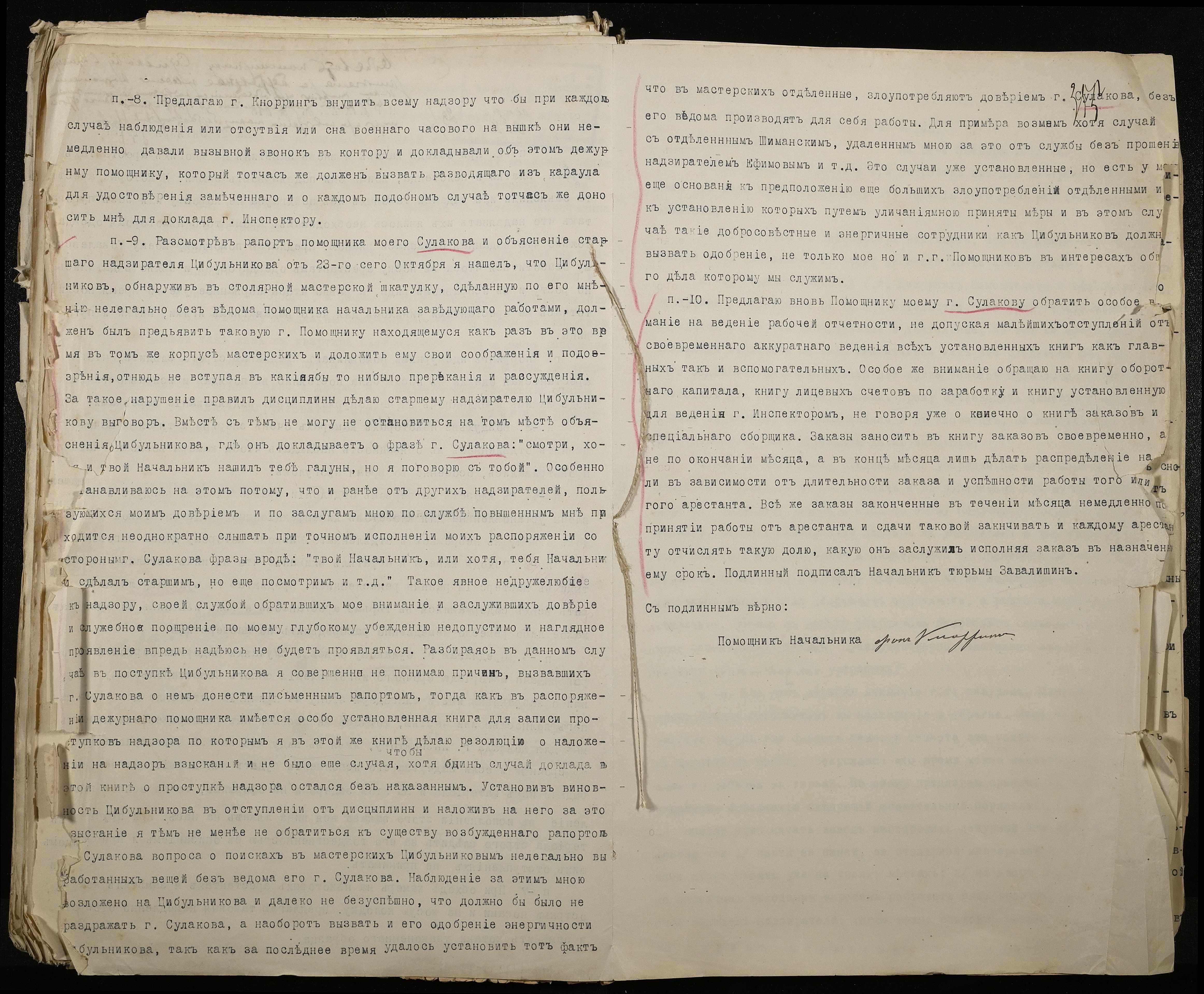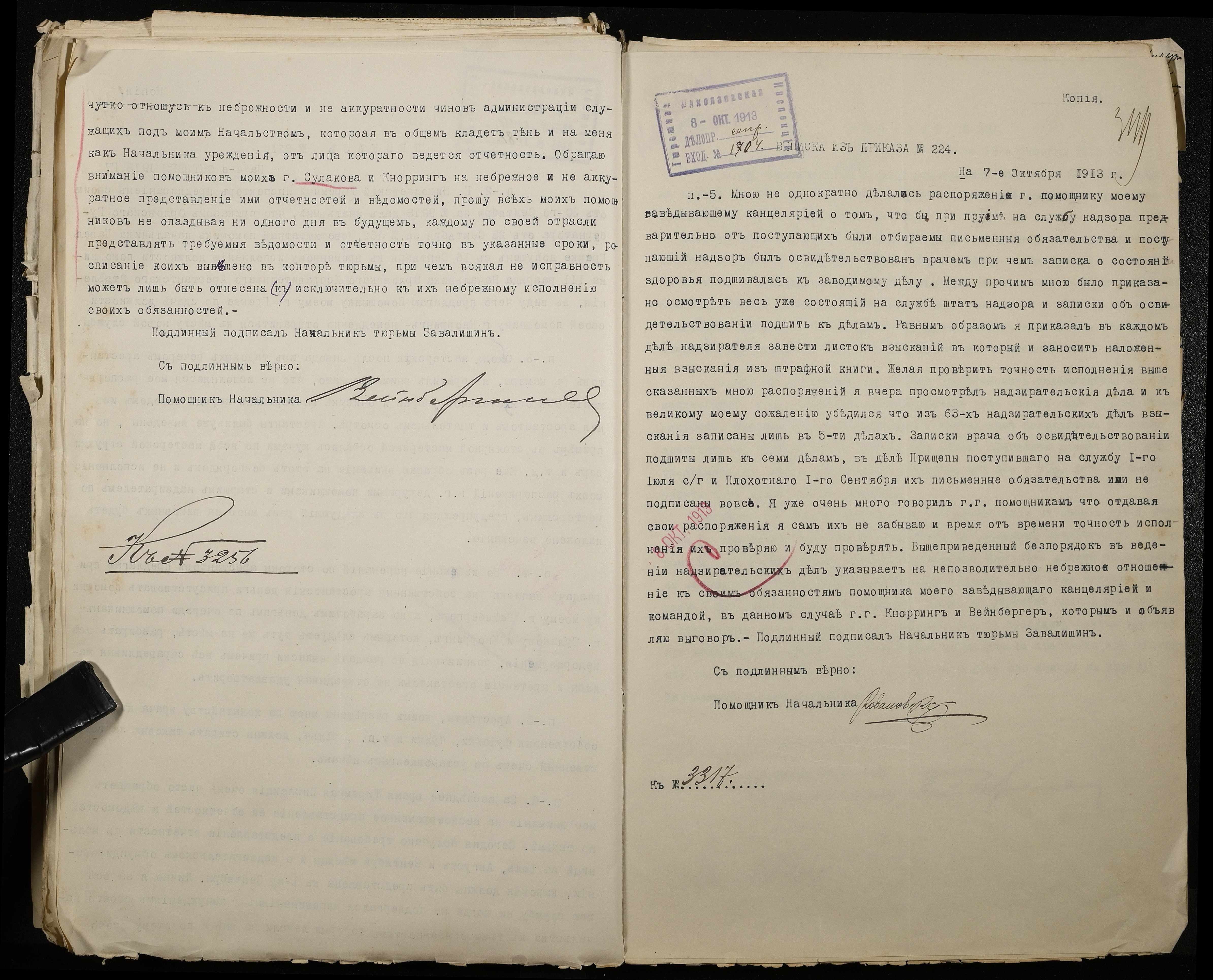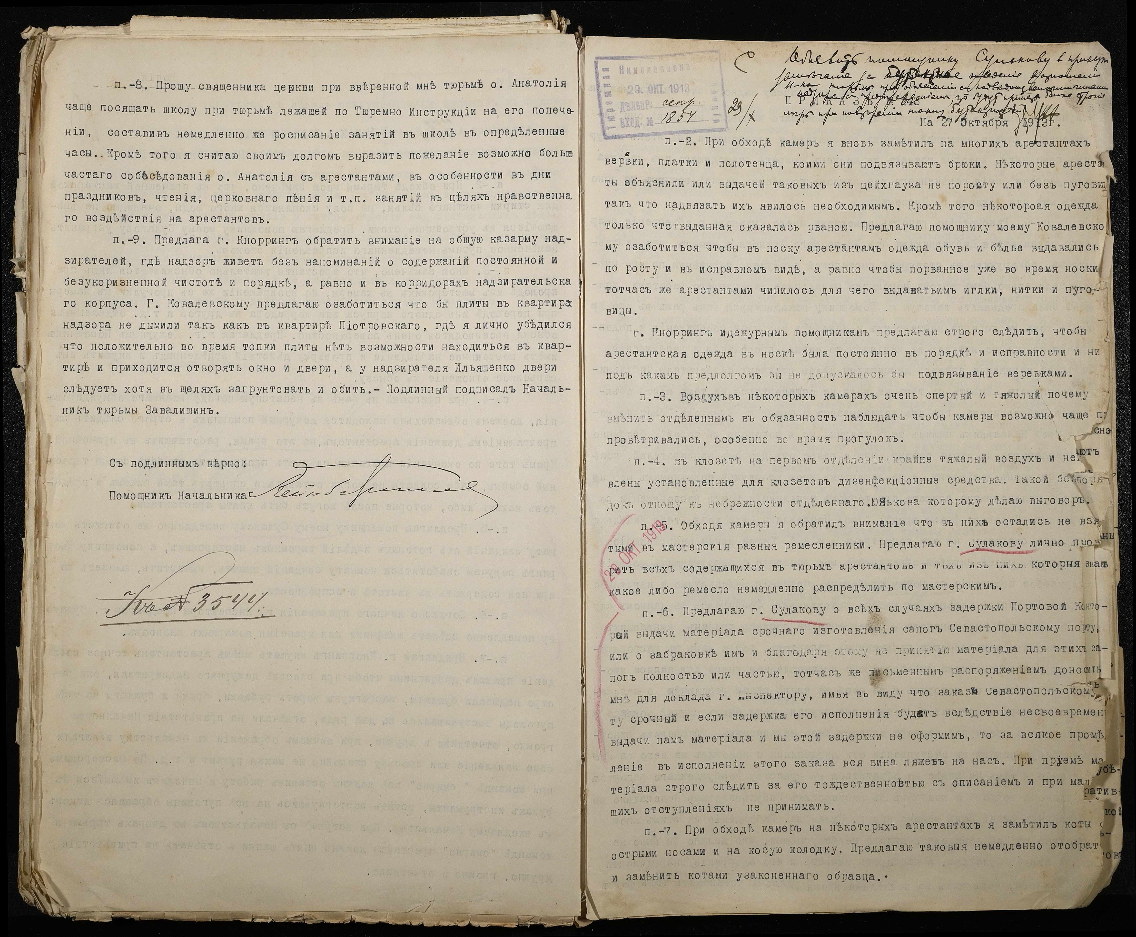 Листування з начальниками місць ув’язнення м. Миколаїв про суворе дотримання службових інструкцій вартовими та наглядачами тюремних установ, порядок дисциплінарних стягнень, проведення стрілецьких навчань для наглядачів, заборону виконання телефонних розпоряджень щодо переведення або звільнення ув’язнених, розповсюдження та впровадження Пам’ ятки тюремного наглядача, порядок ведення діловодства та ін..