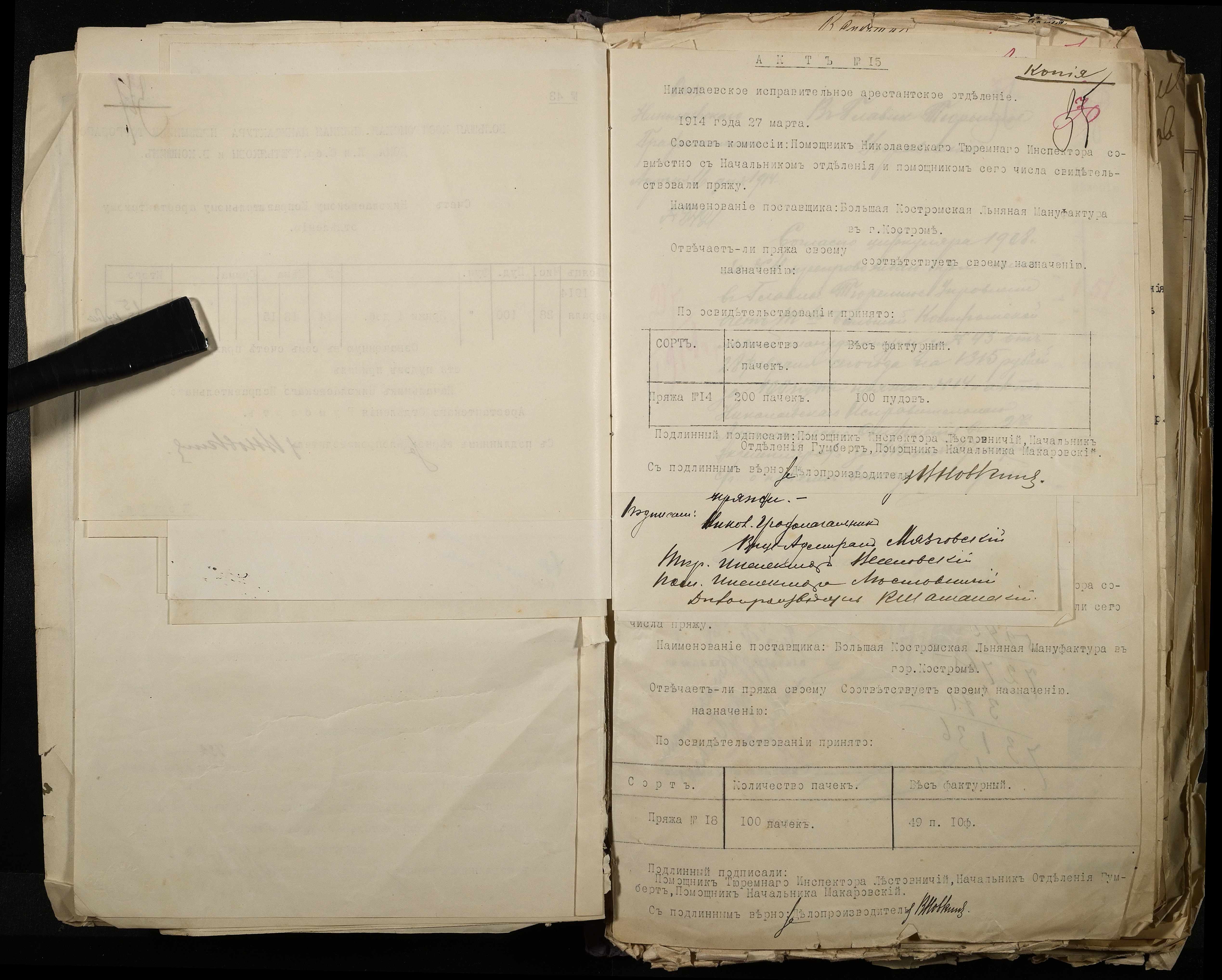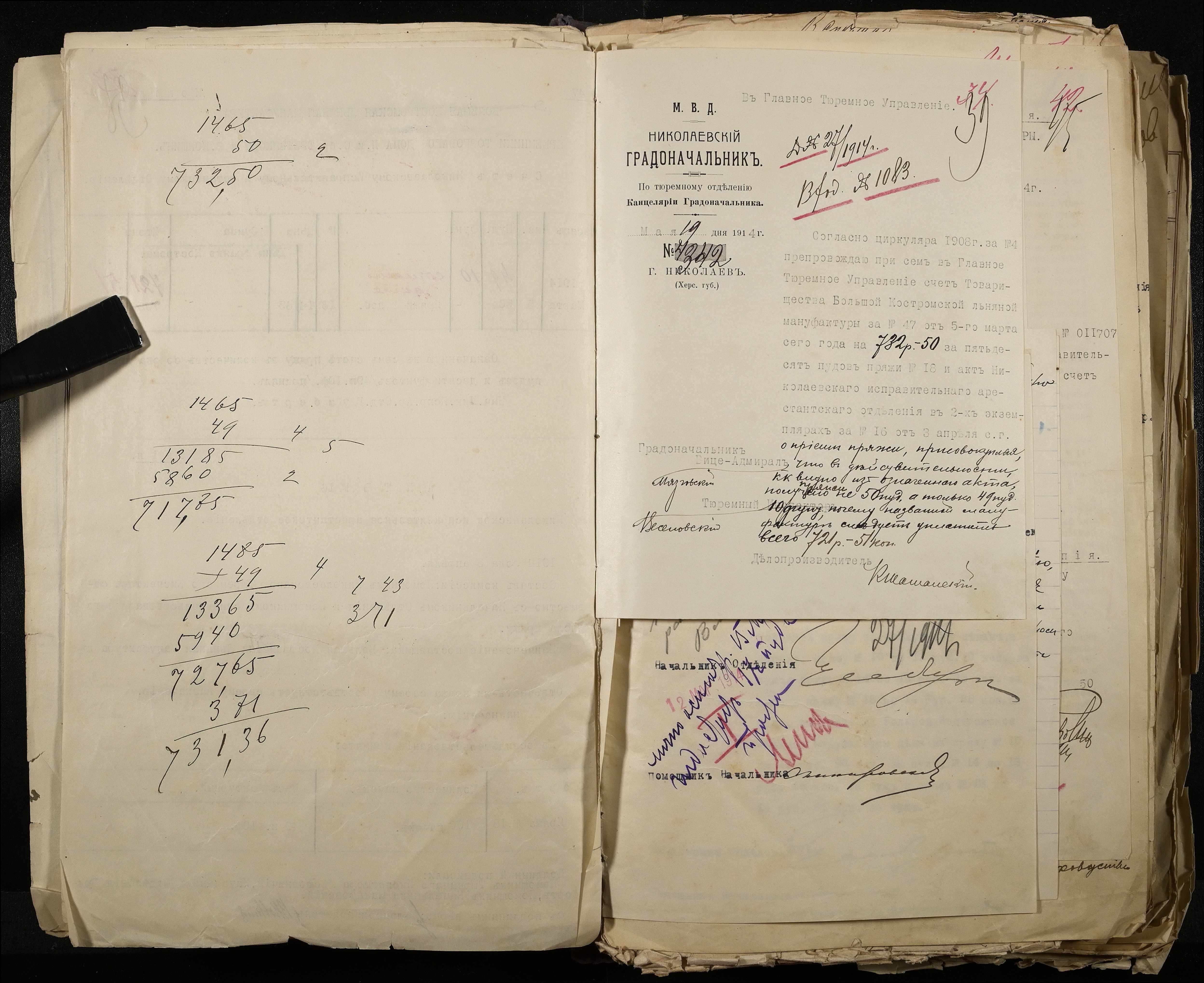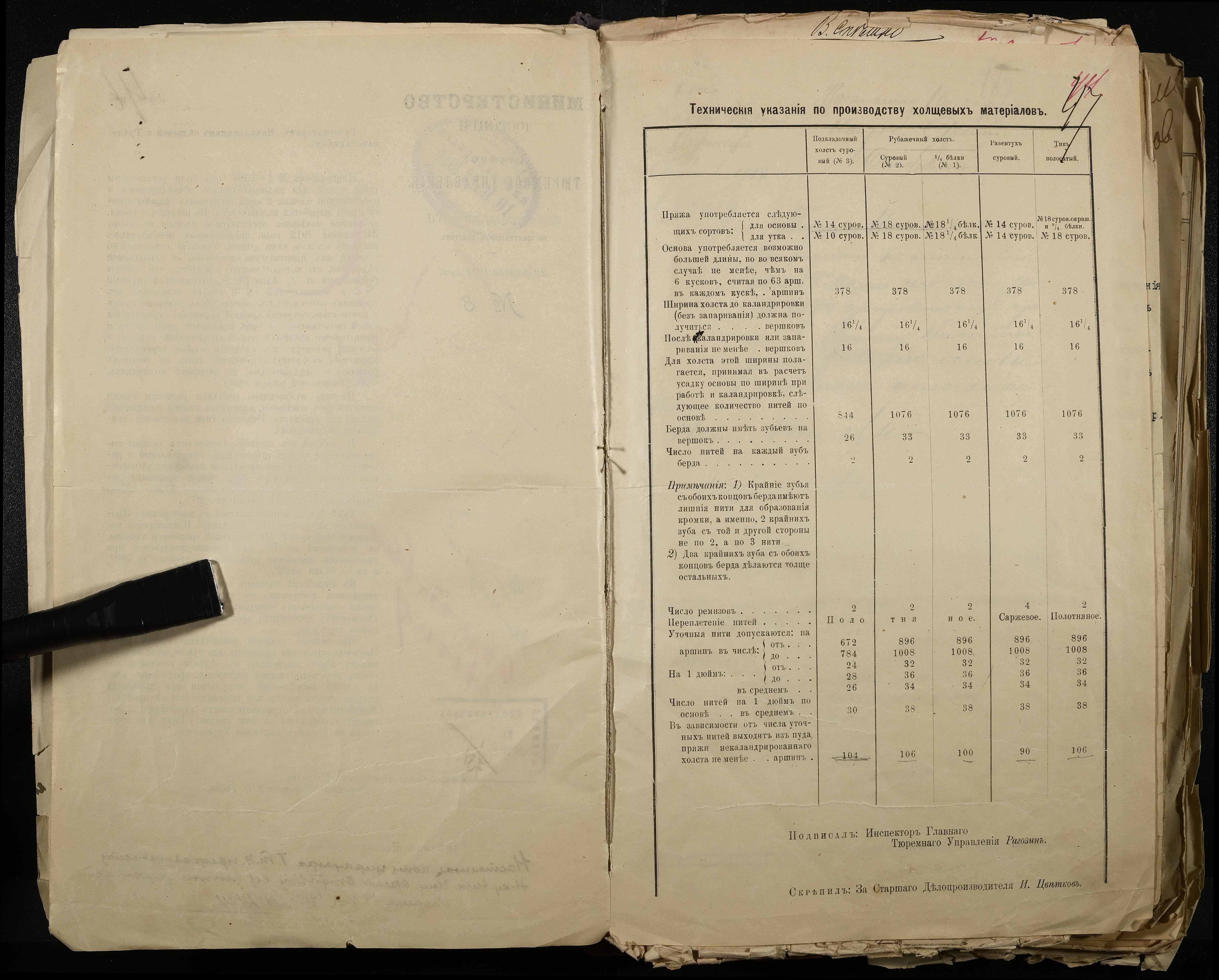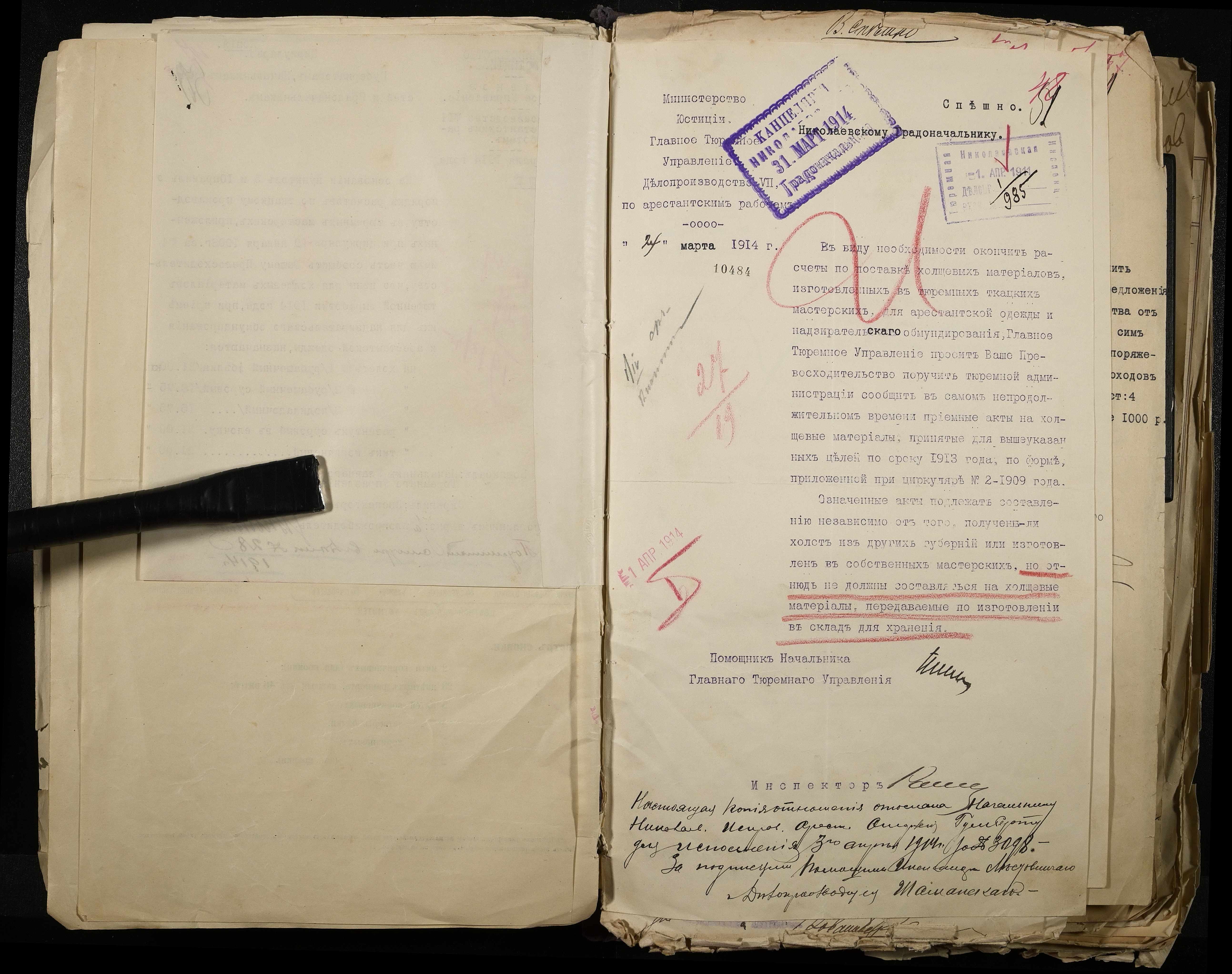 • • • • Справа № 101 Документи про роботу ткацької майстерні Миколаївського виправного арештантського відділення (відомості, акти, розрахунки, рапорти, листування)