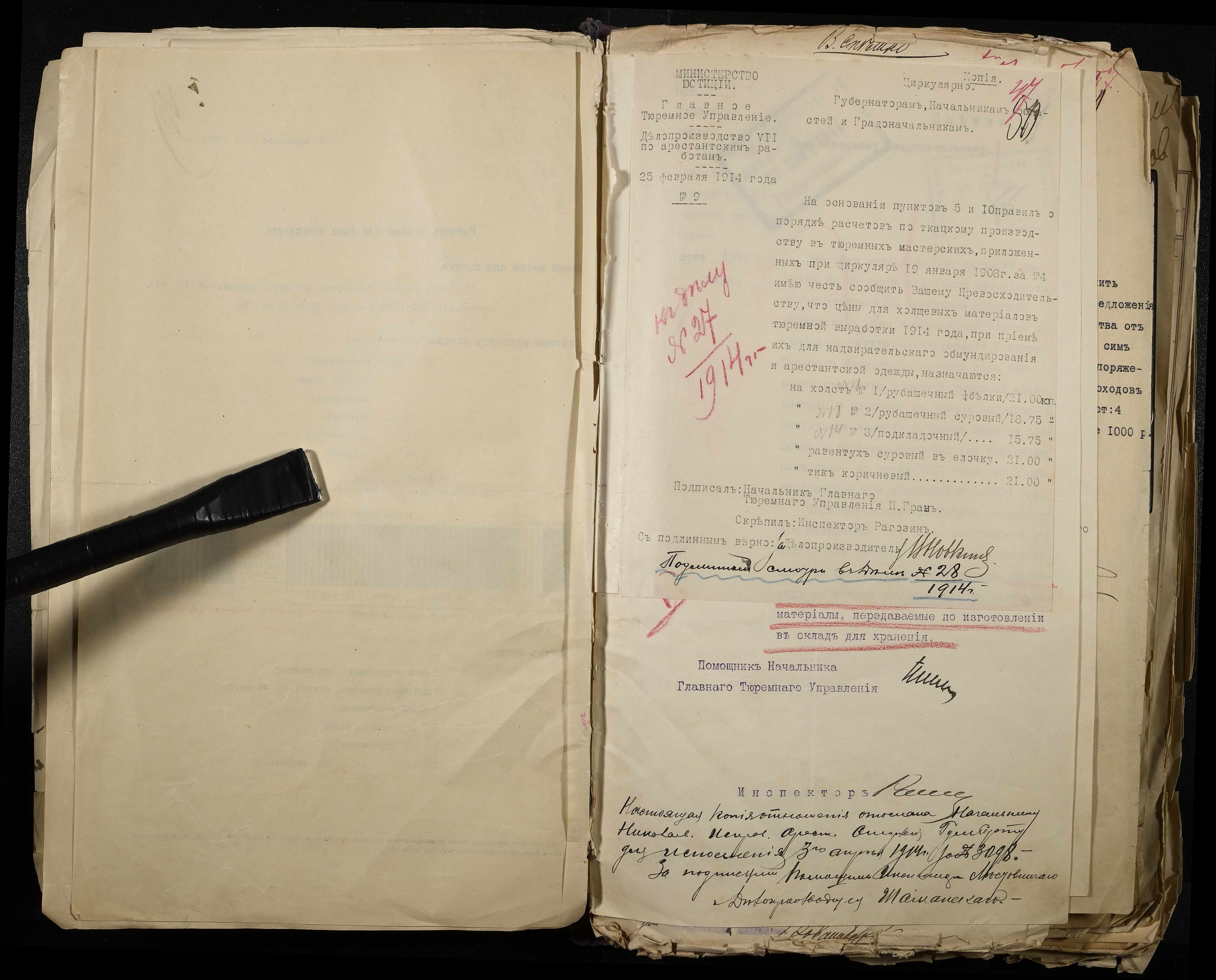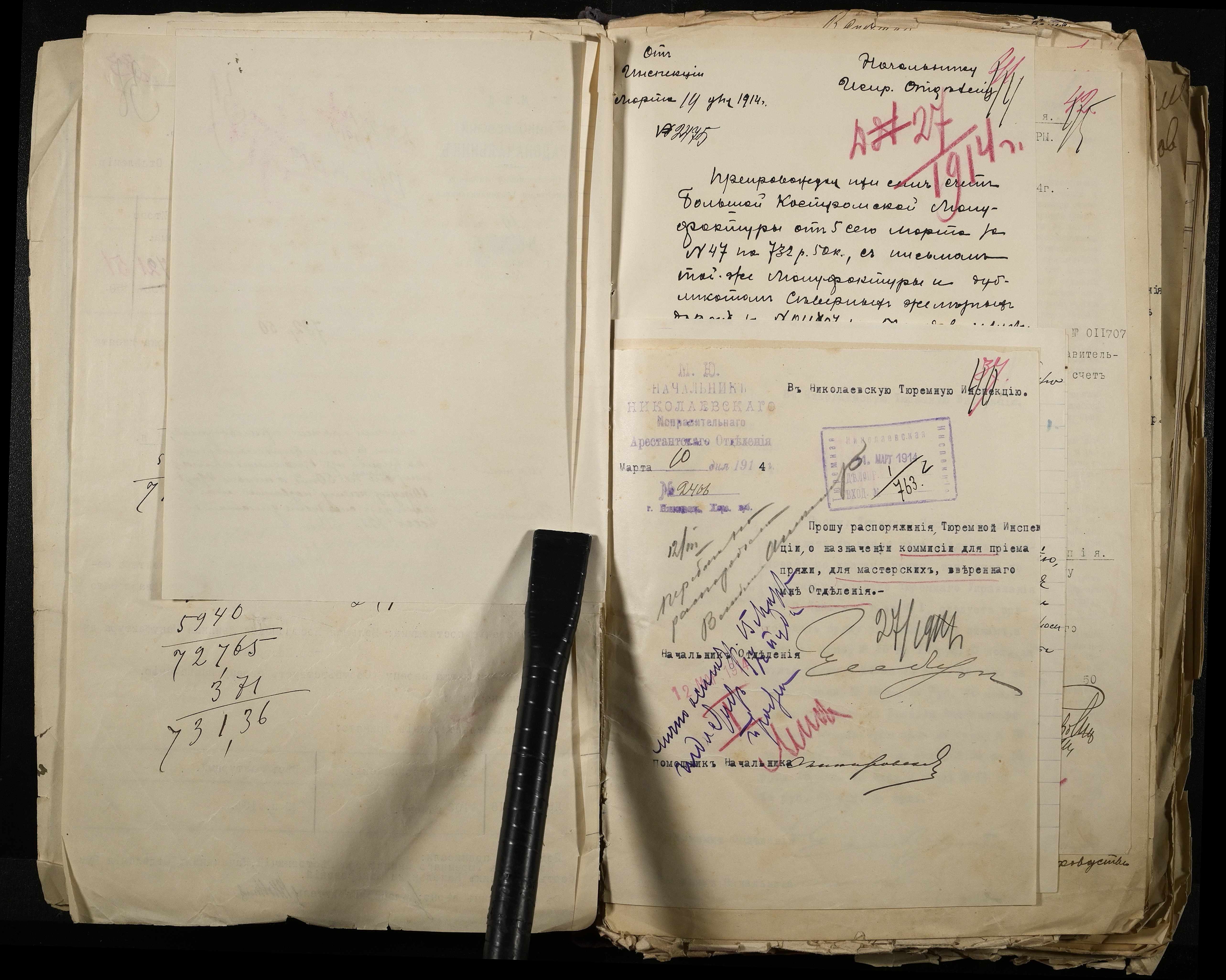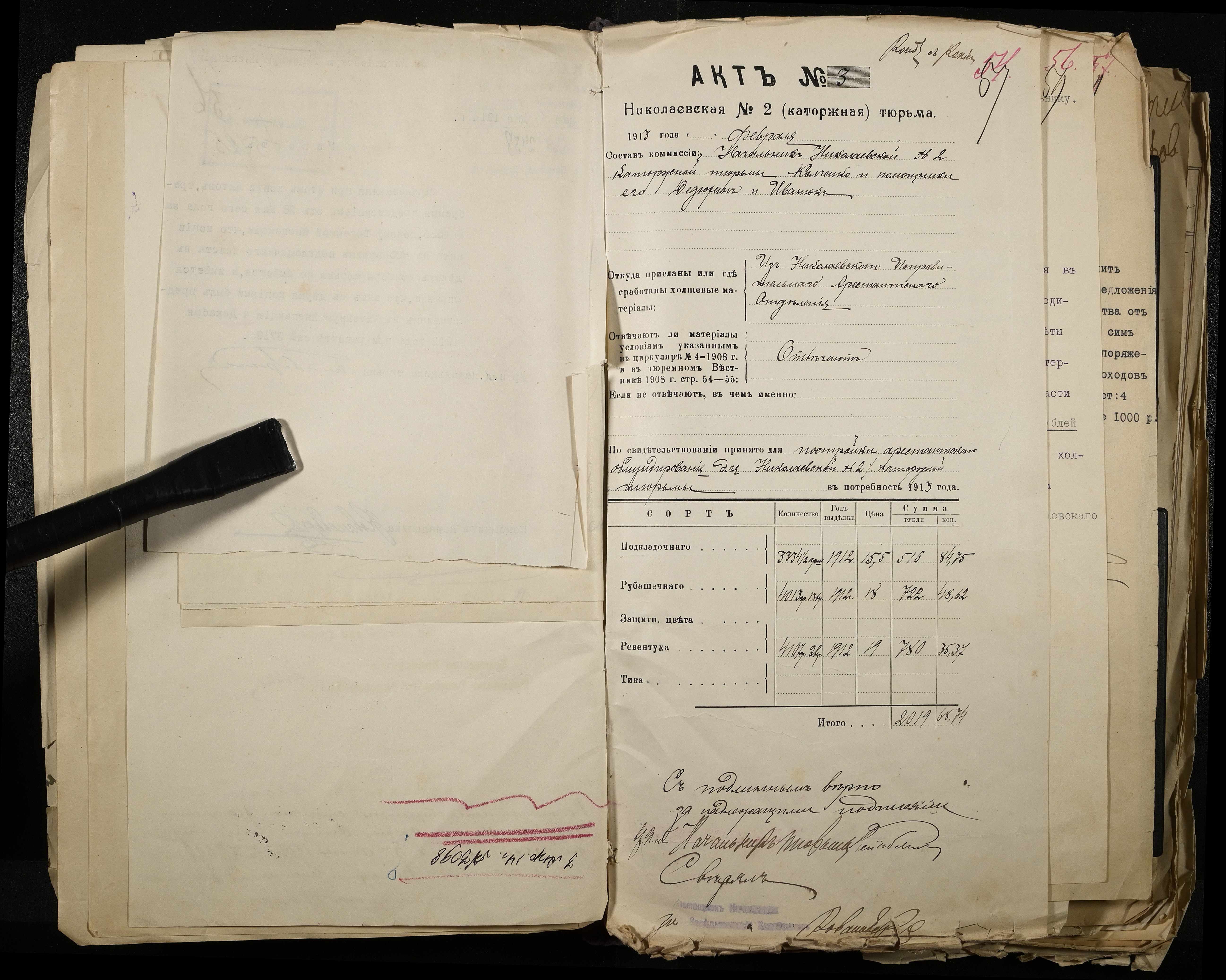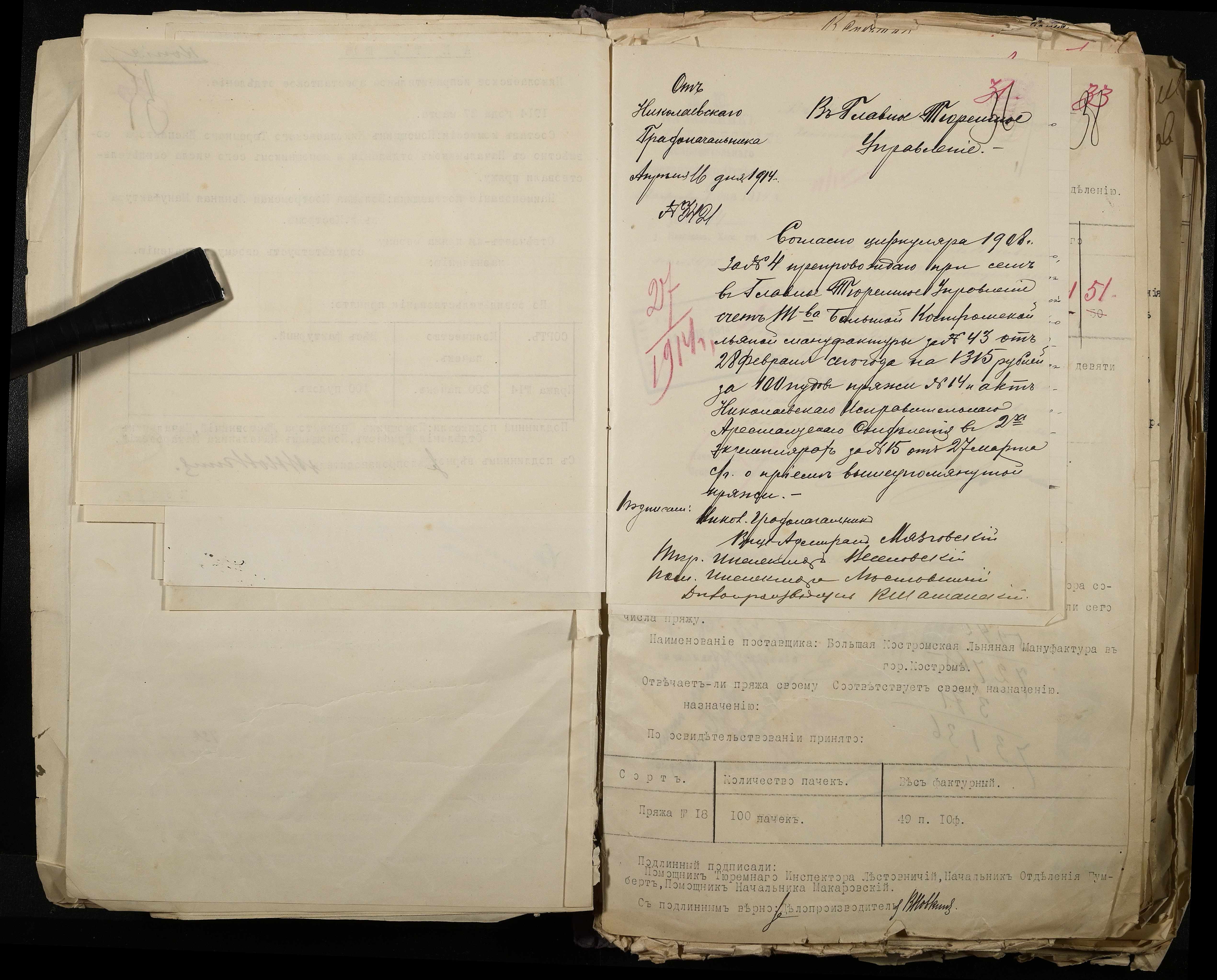 • • • • Справа № 101 Документи про роботу ткацької майстерні Миколаївського виправного арештантського відділення (відомості, акти, розрахунки, рапорти, листування)