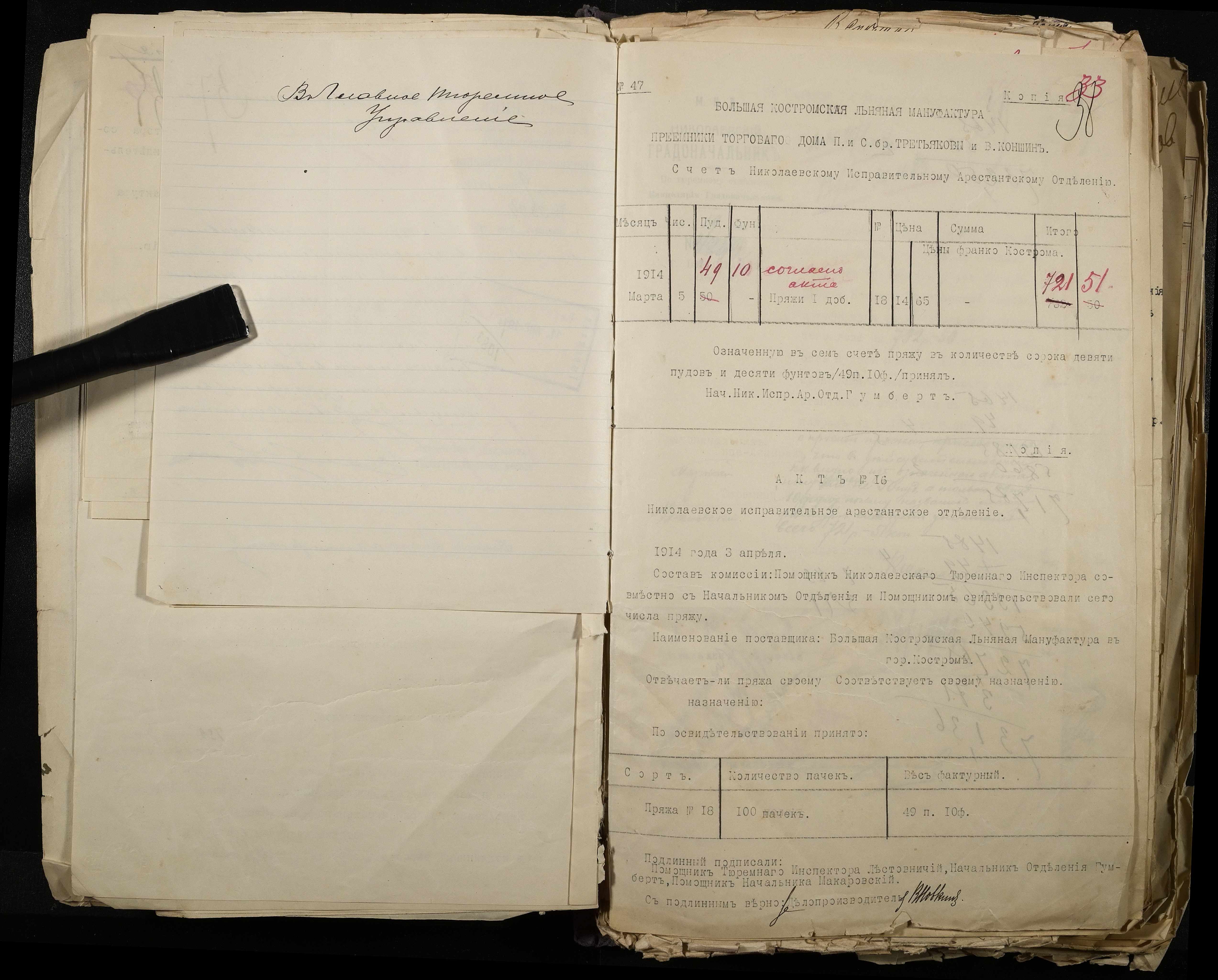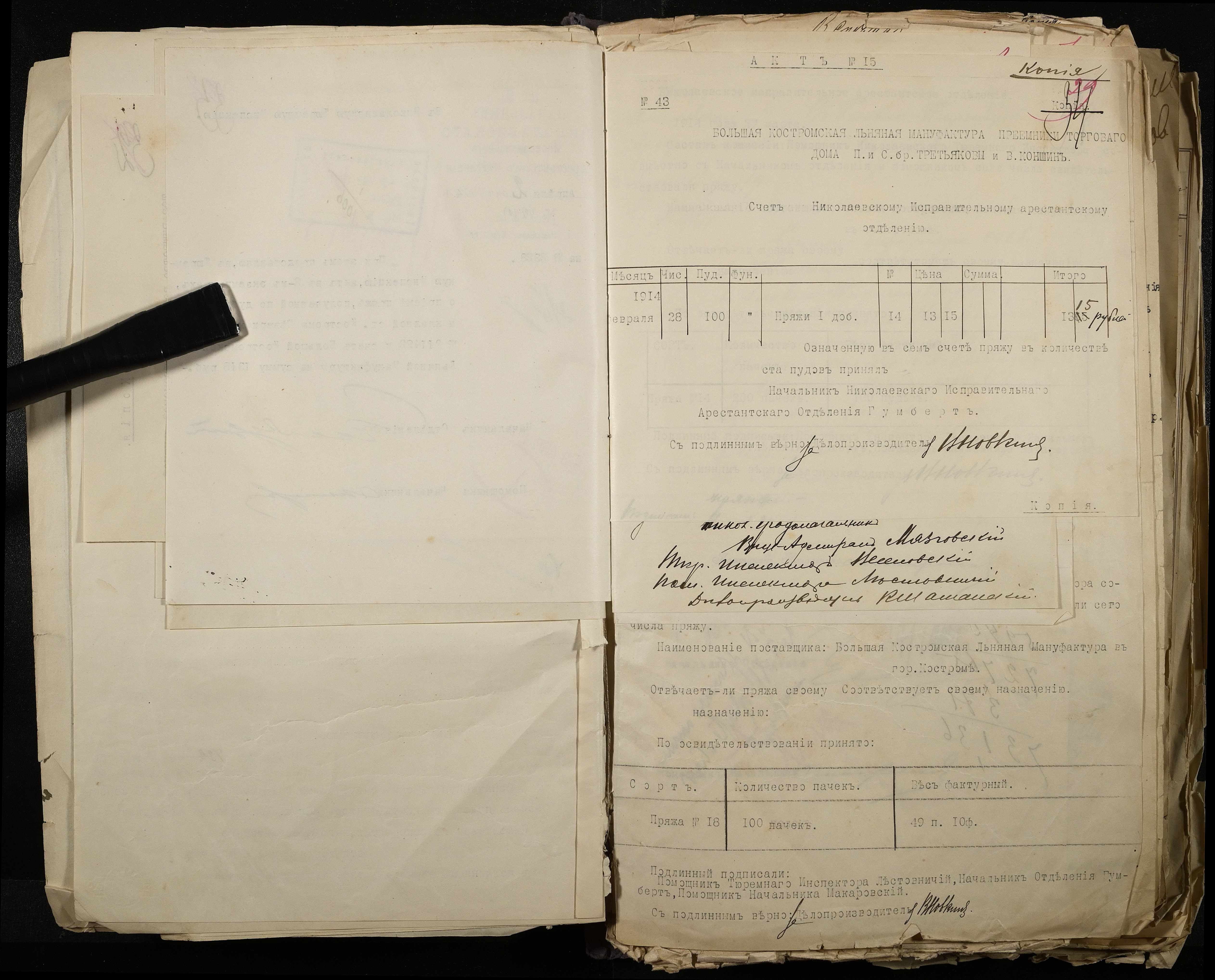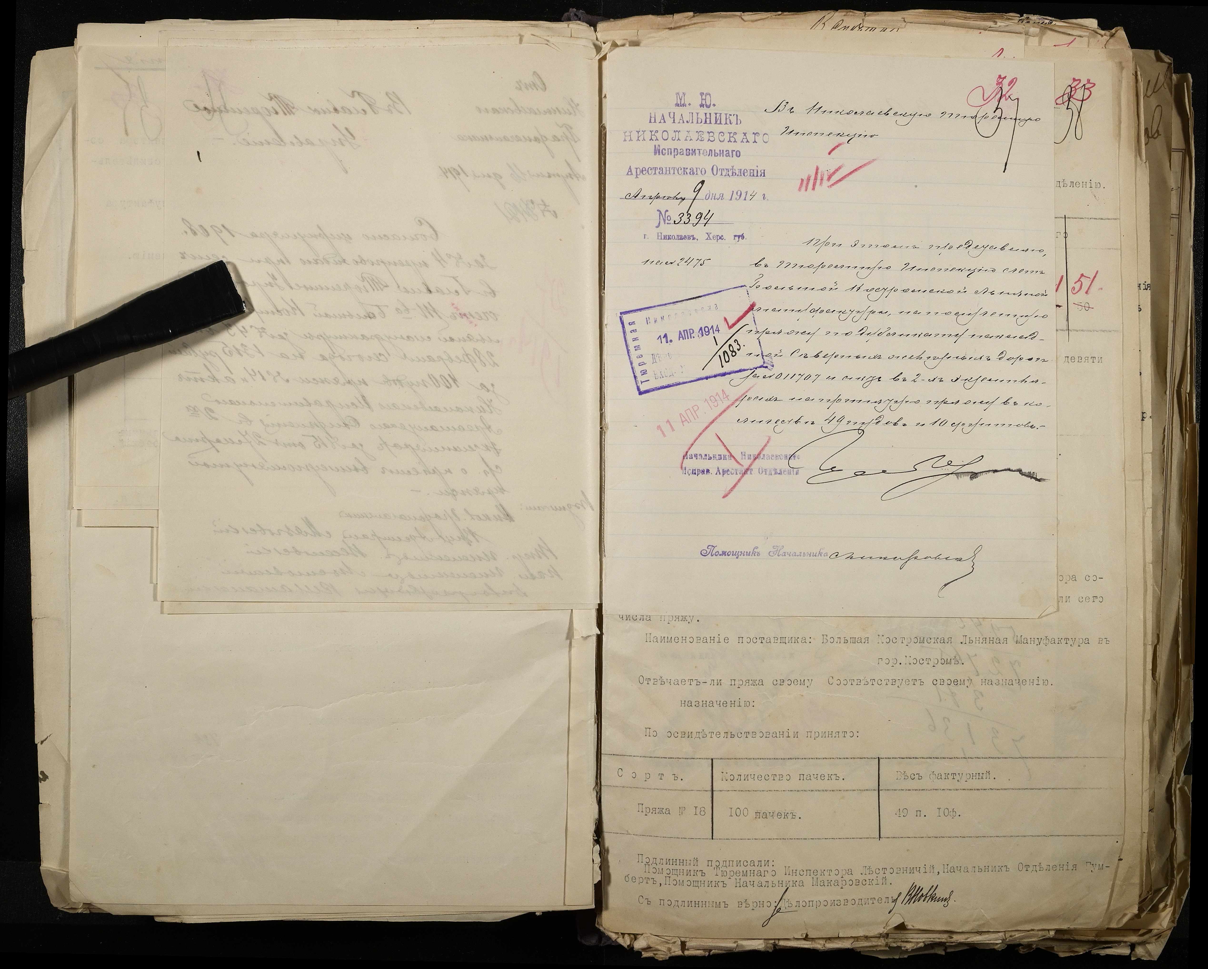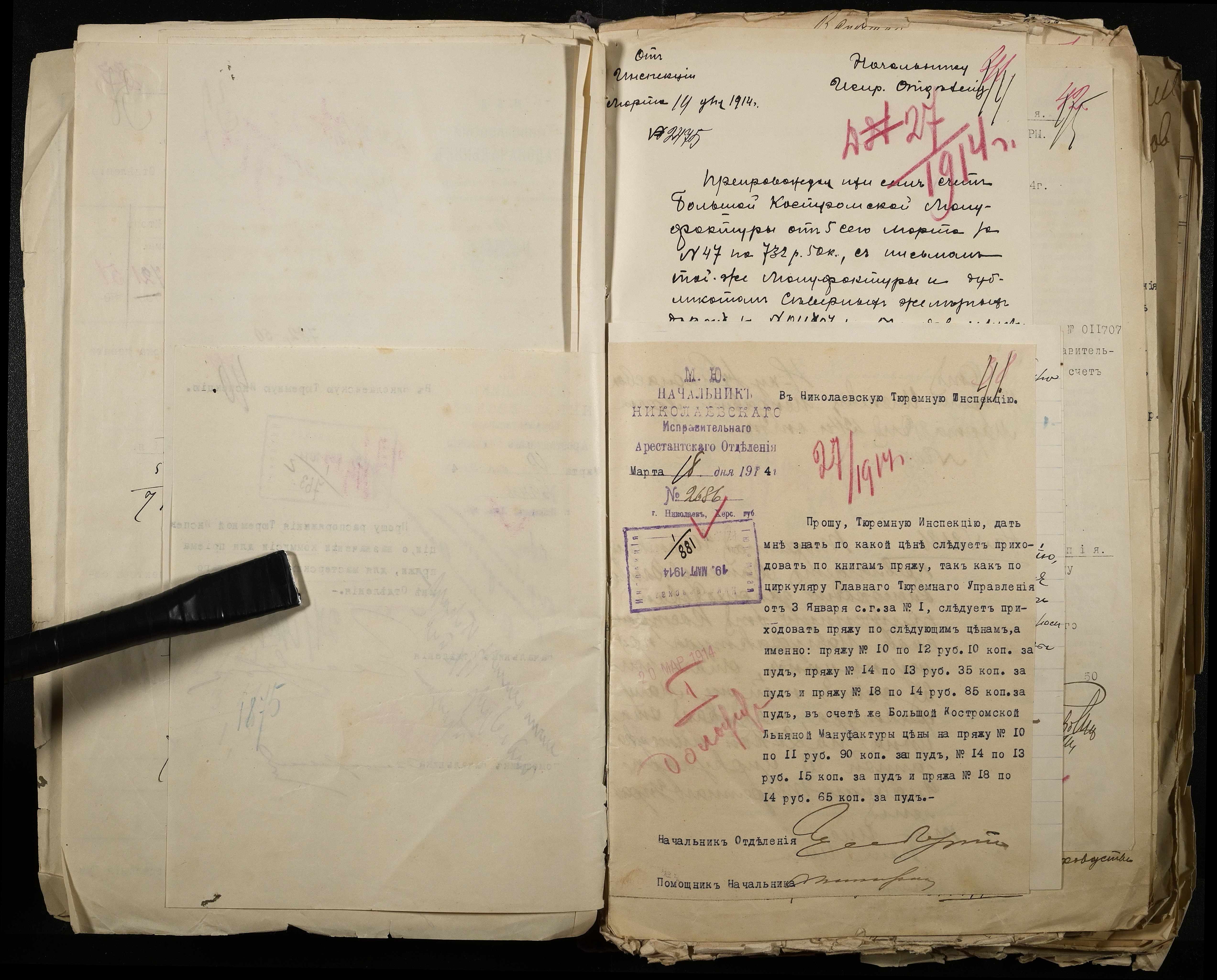 • • • • Справа № 101 Документи про роботу ткацької майстерні Миколаївського виправного арештантського відділення (відомості, акти, розрахунки, рапорти, листування)