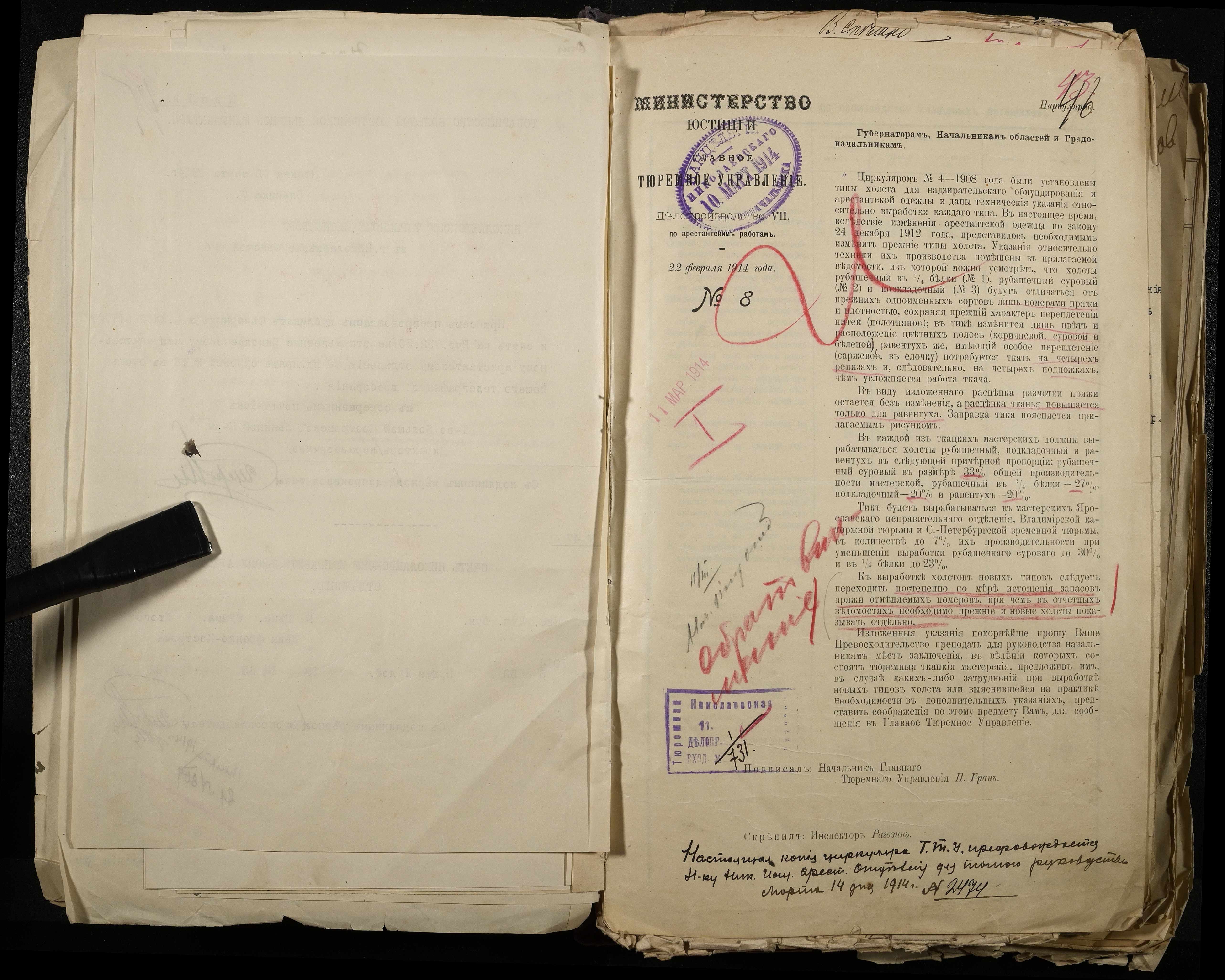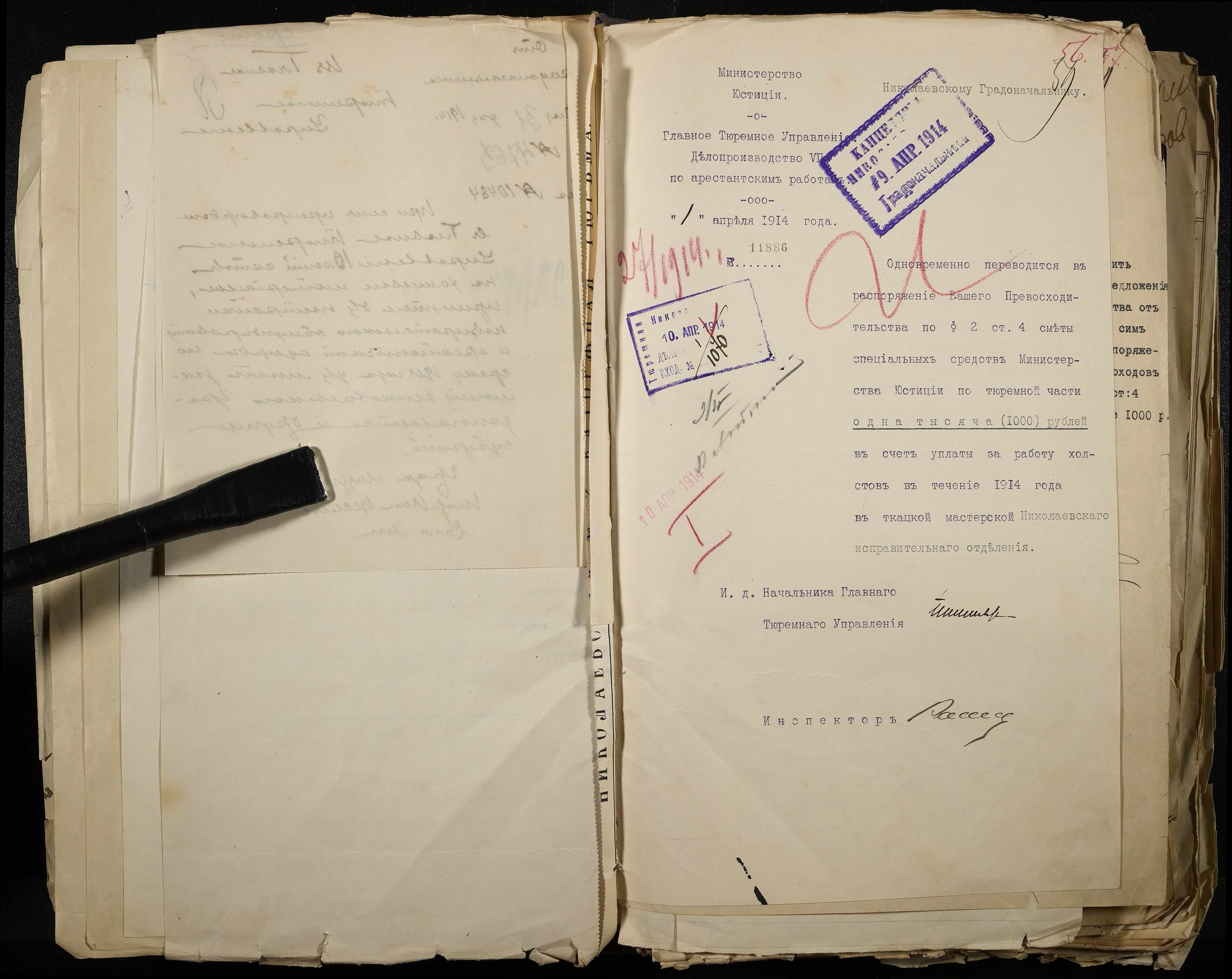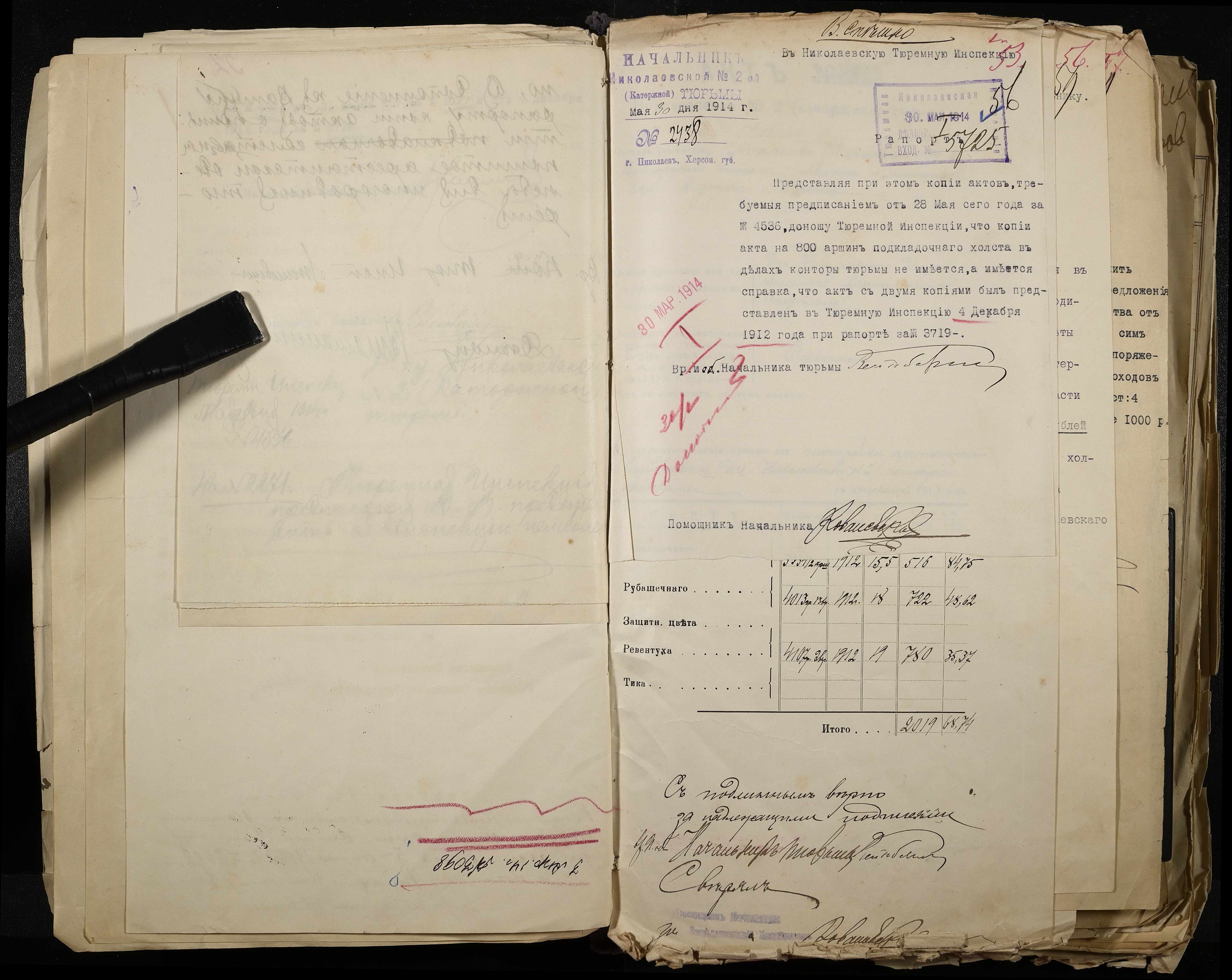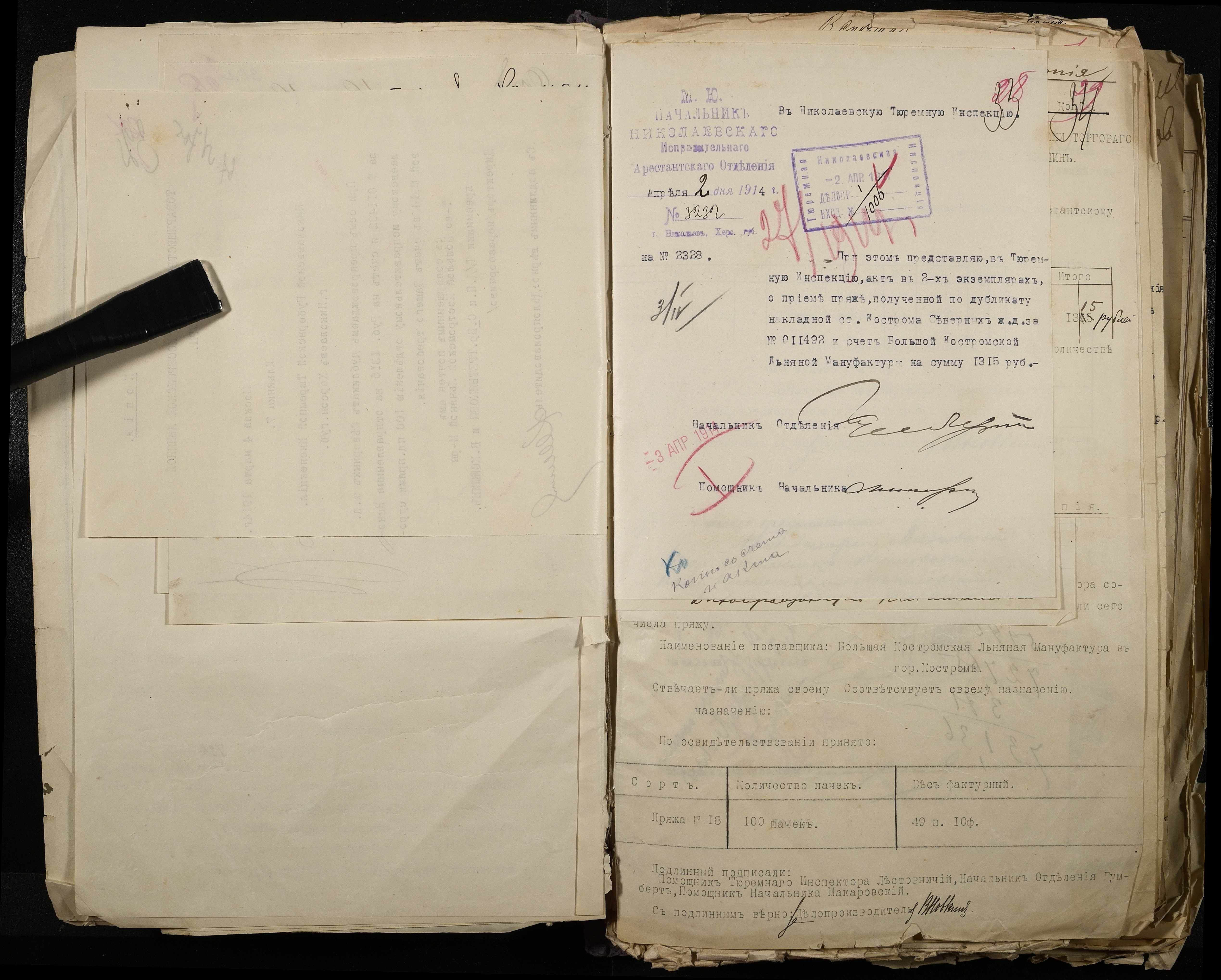 • • • • Справа № 101 Документи про роботу ткацької майстерні Миколаївського виправного арештантського відділення (відомості, акти, розрахунки, рапорти, листування)