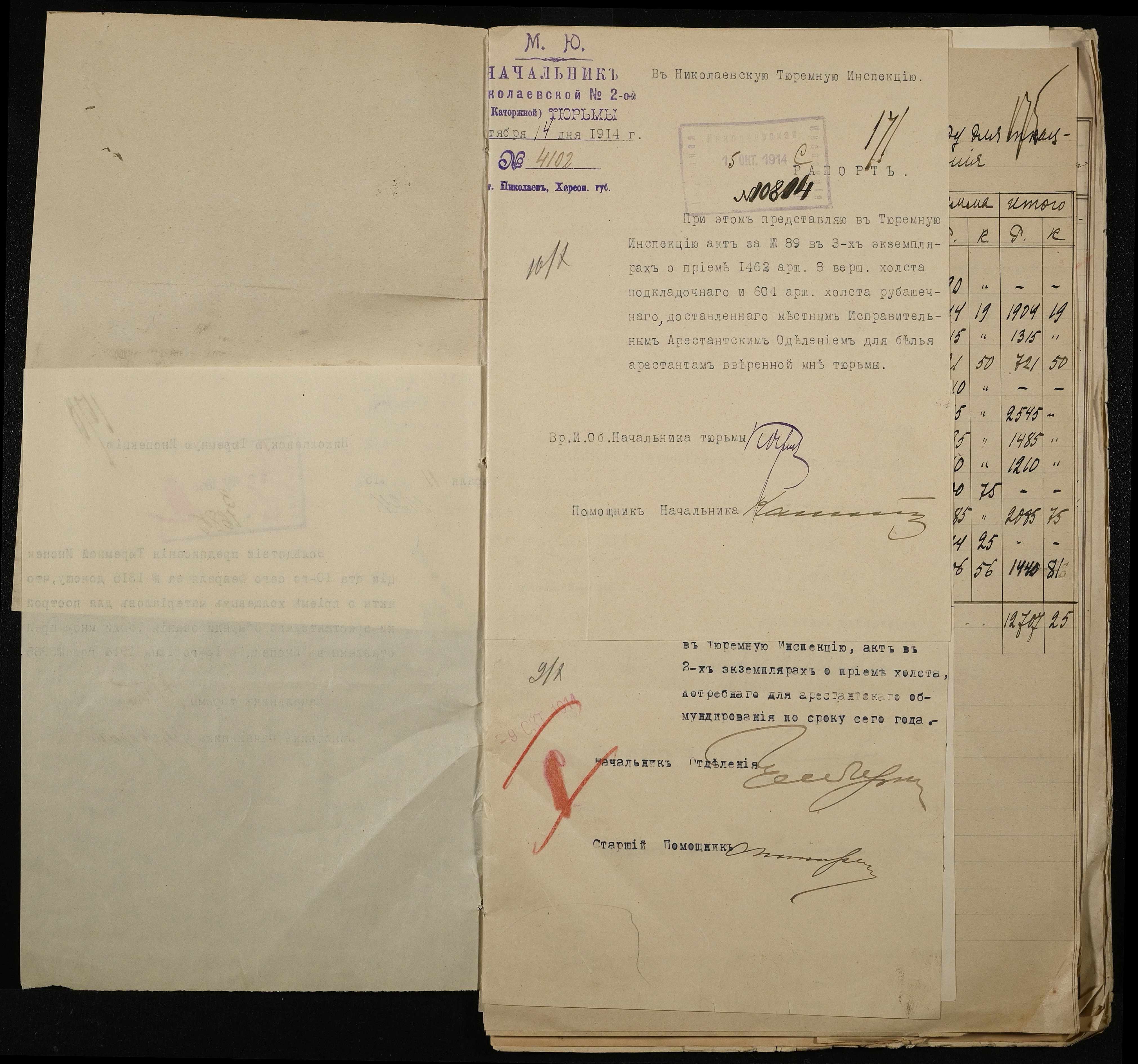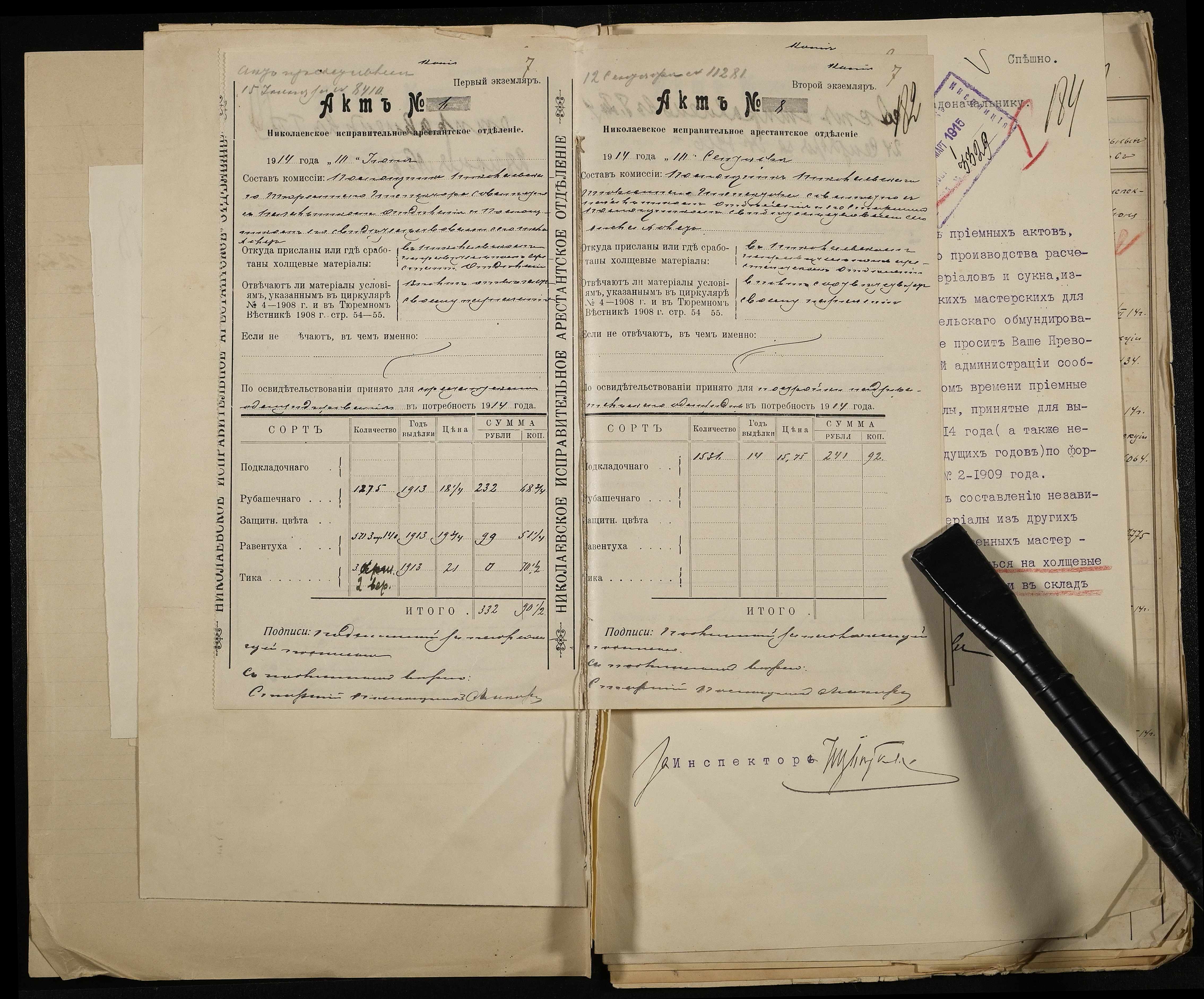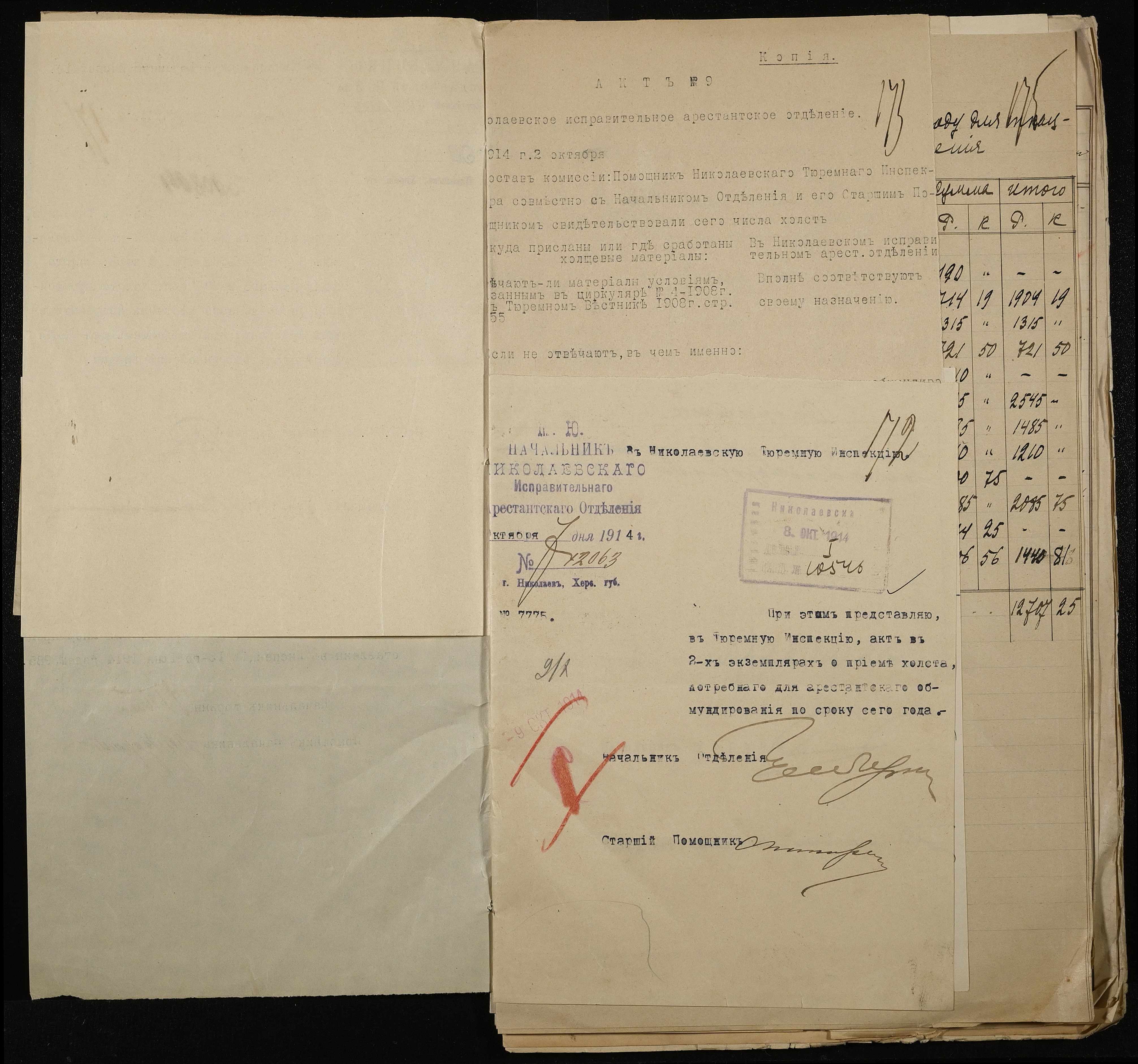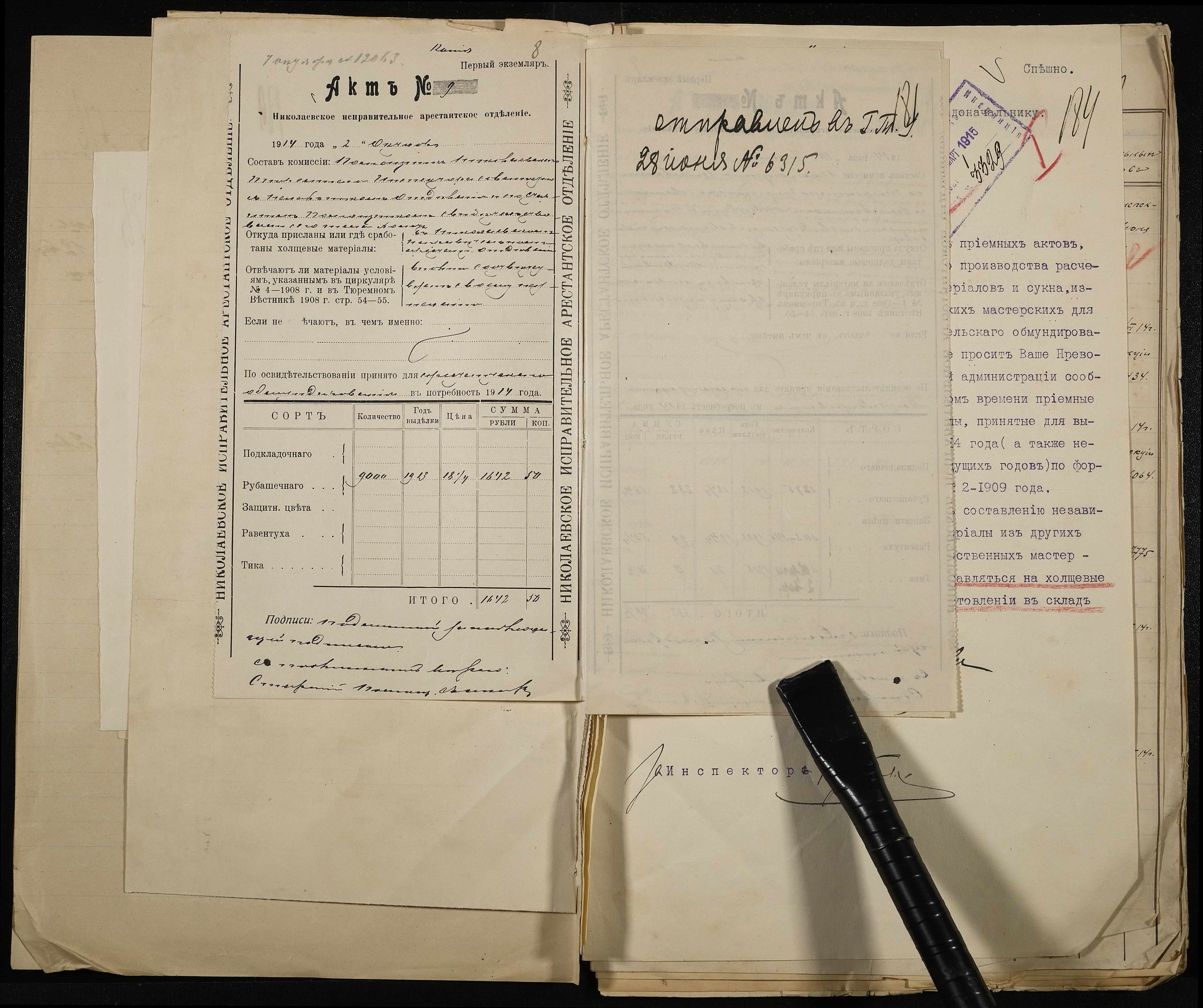 • • • • Справа № 101 Документи про роботу ткацької майстерні Миколаївського виправного арештантського відділення (відомості, акти, розрахунки, рапорти, листування)
