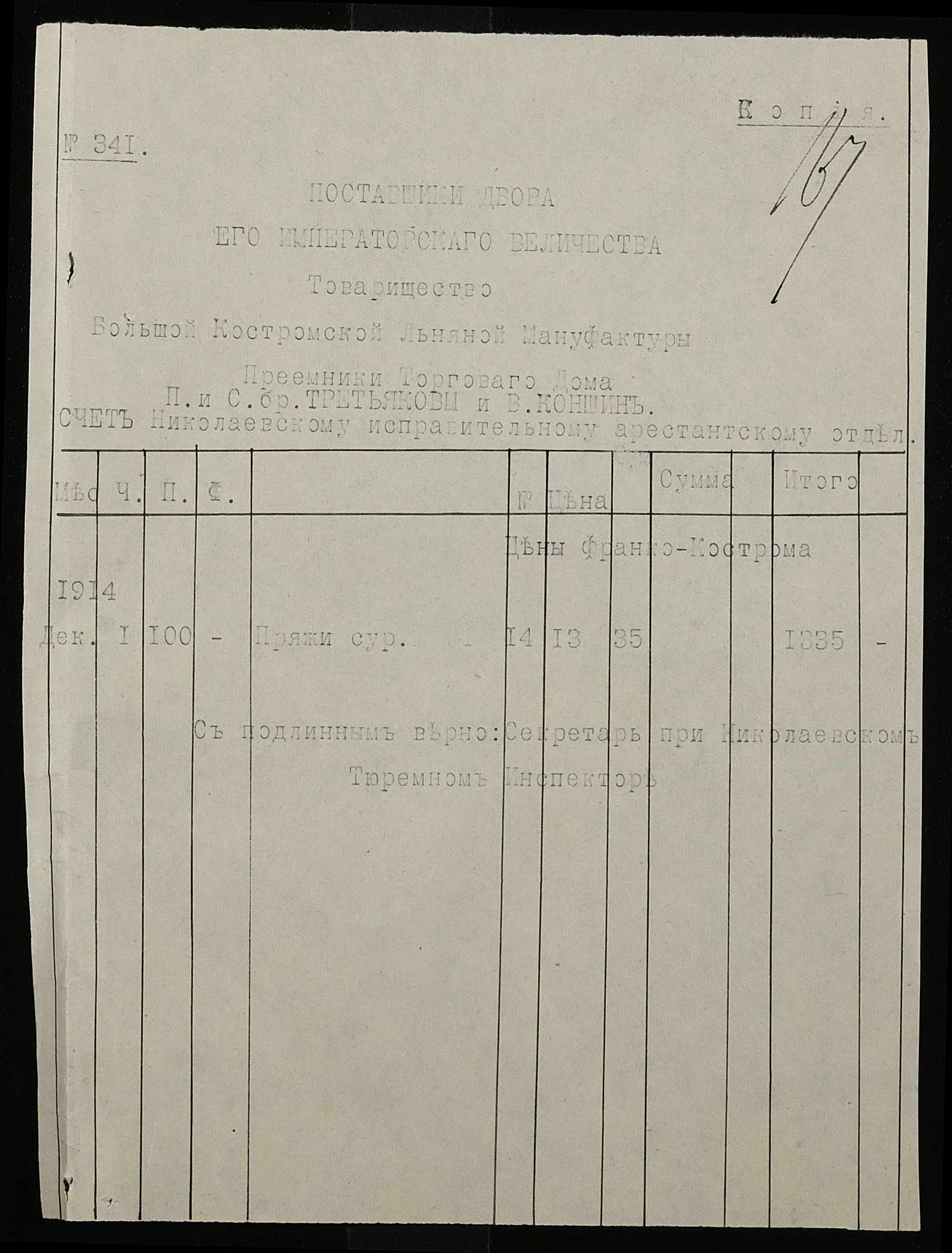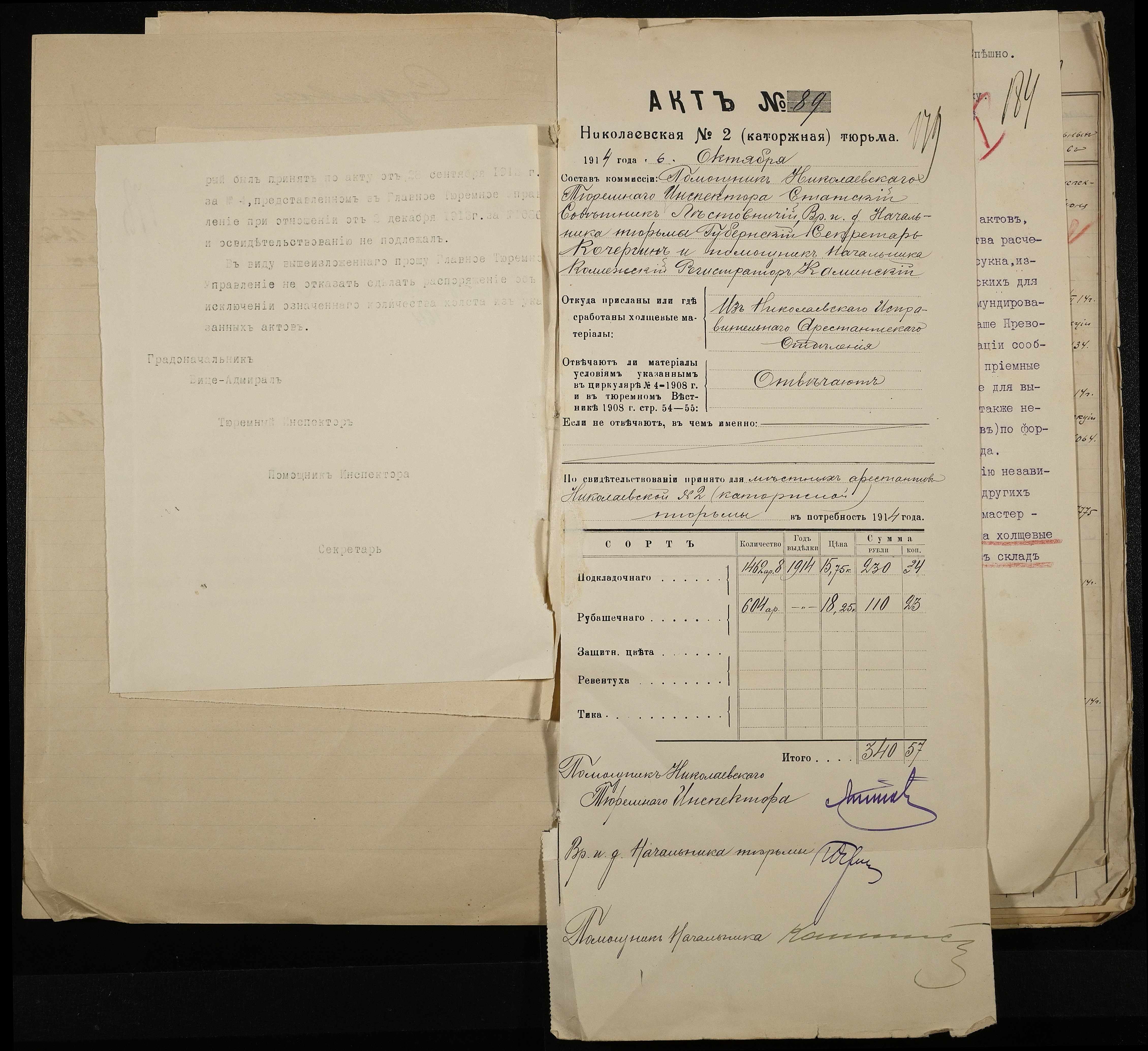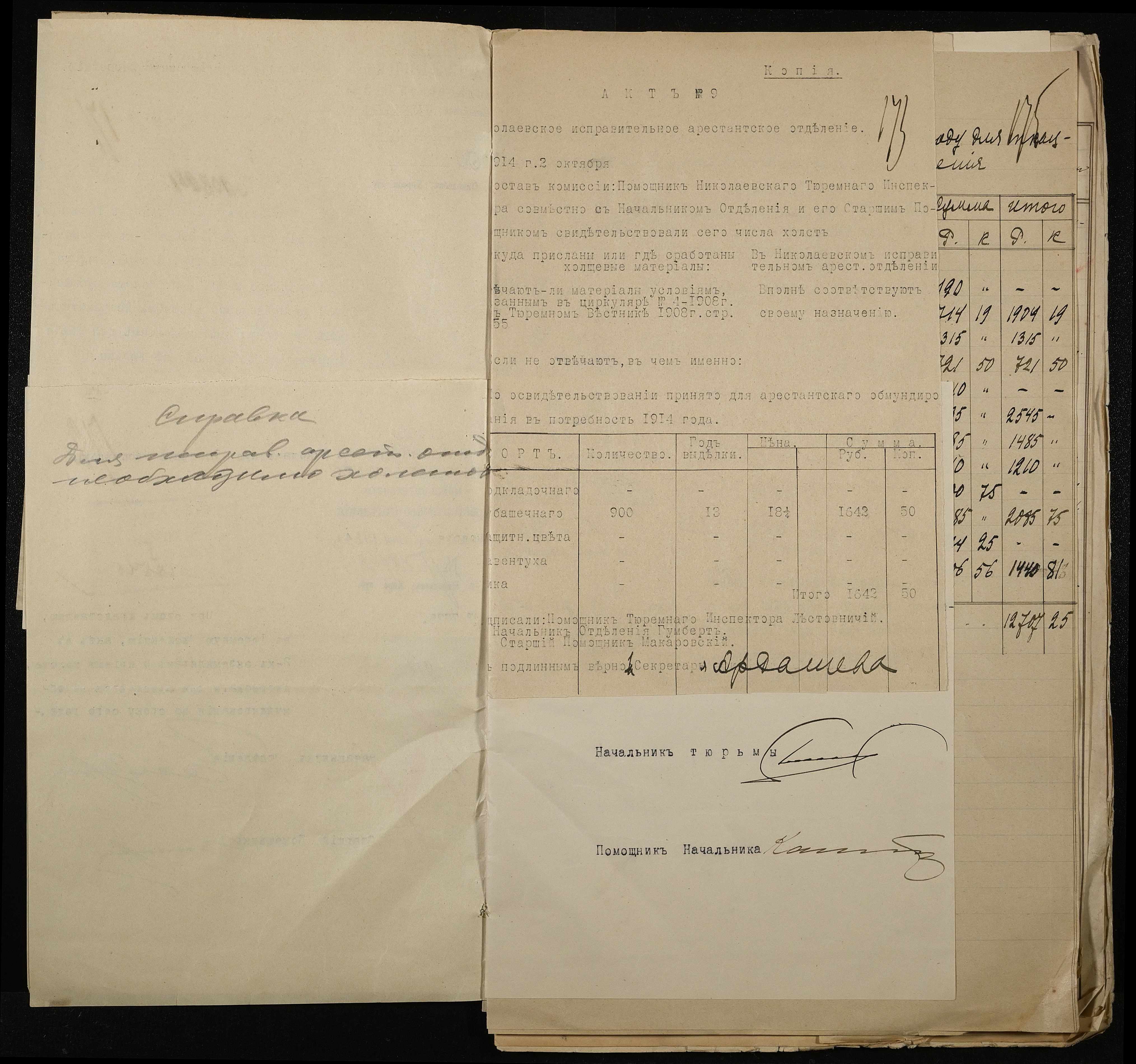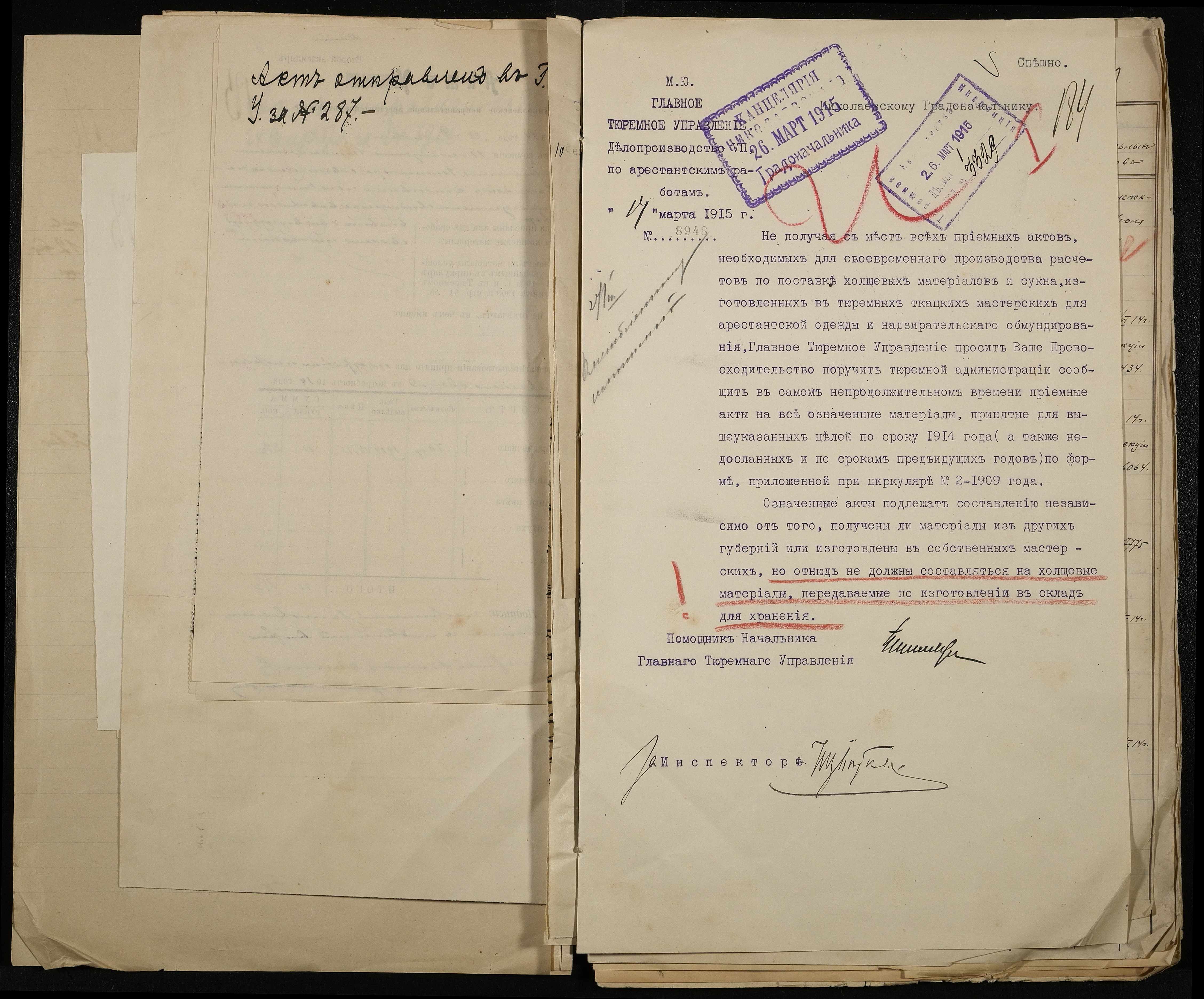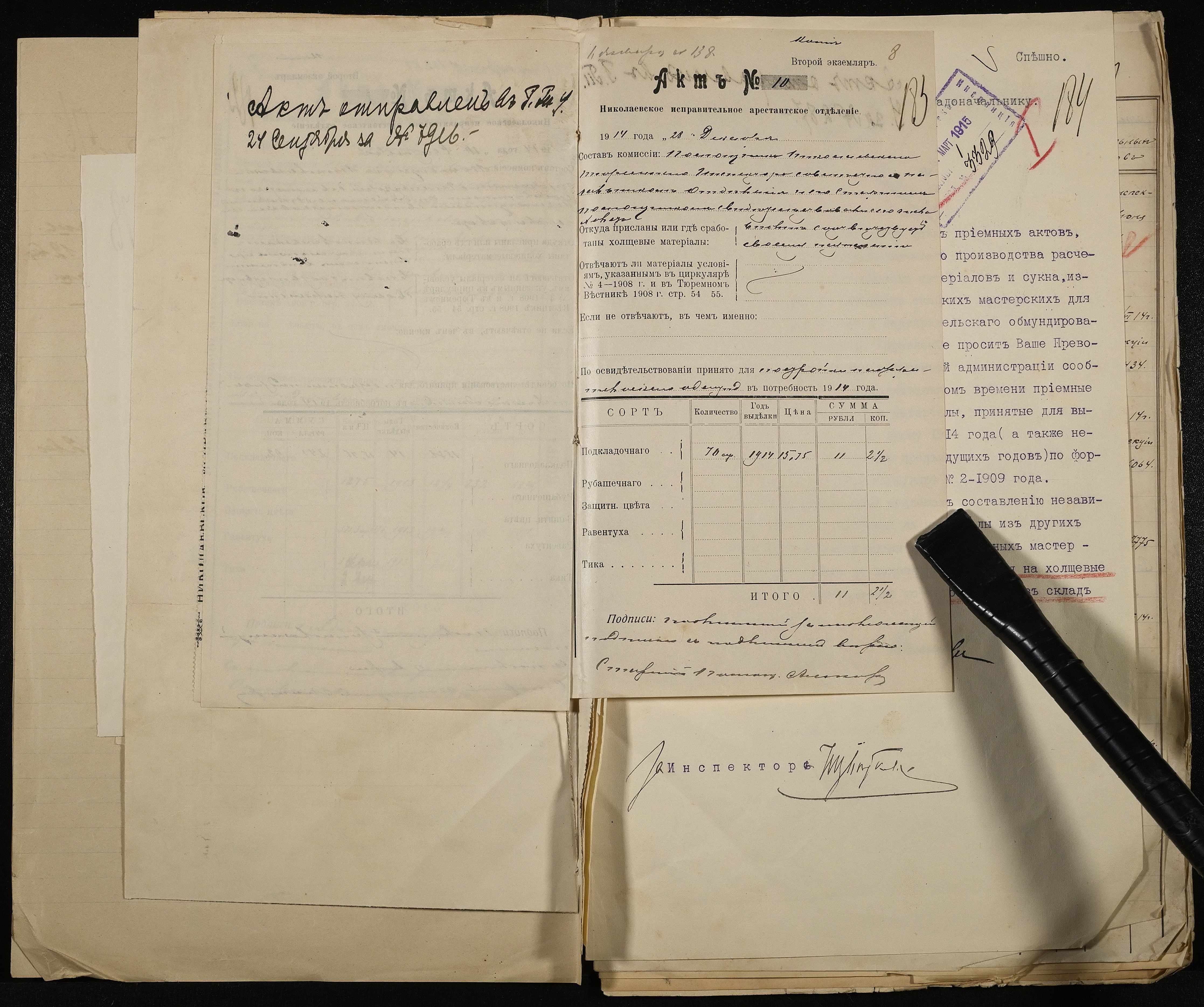 • • • • Справа № 101 Документи про роботу ткацької майстерні Миколаївського виправного арештантського відділення (відомості, акти, розрахунки, рапорти, листування)