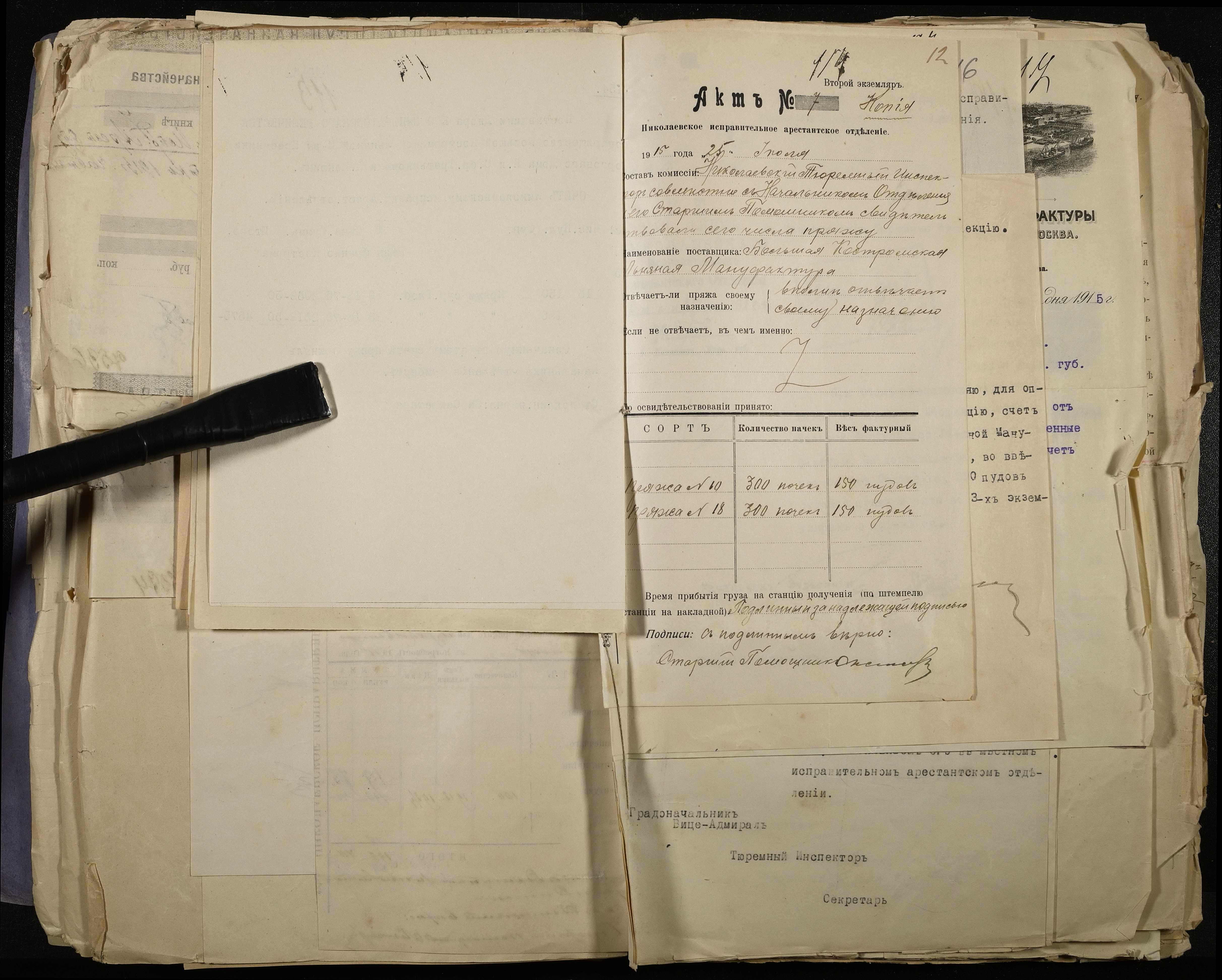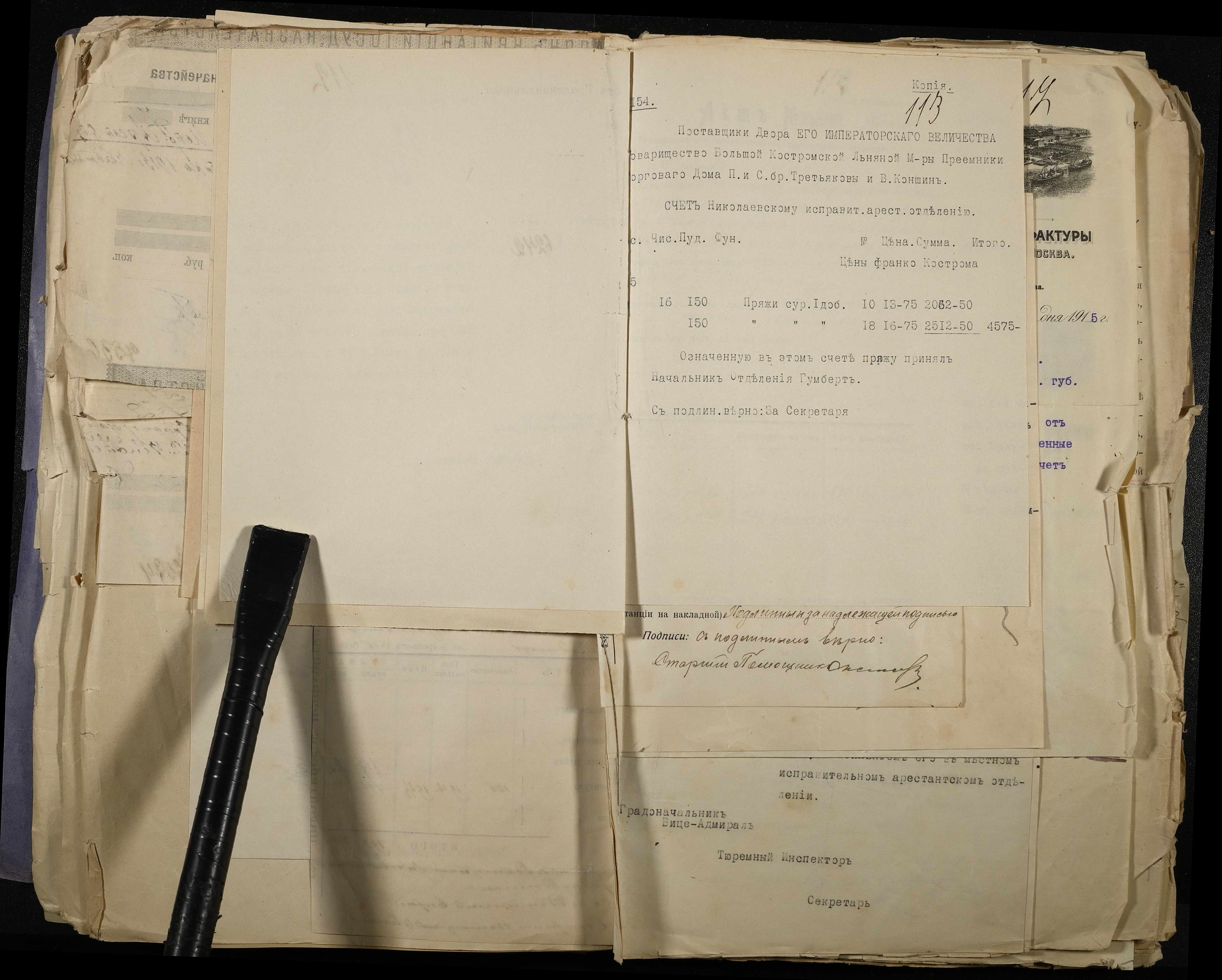 • • • • Справа № 113 Документи про роботу ткацької майстерні при Миколаївському виправному арештантському відділенні (списки арештантів, довідки, рахунки, відомості, квитанції, акти, листування)