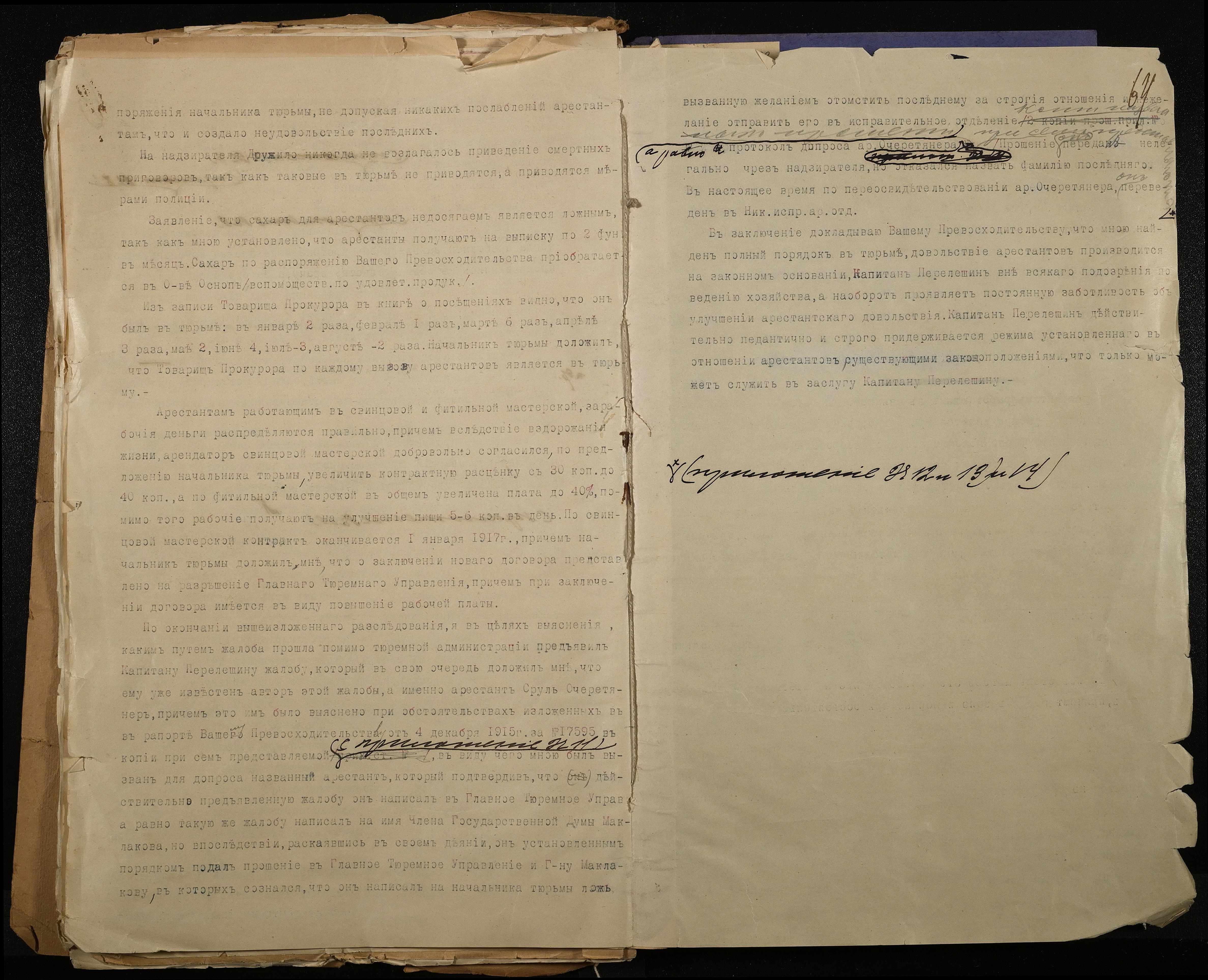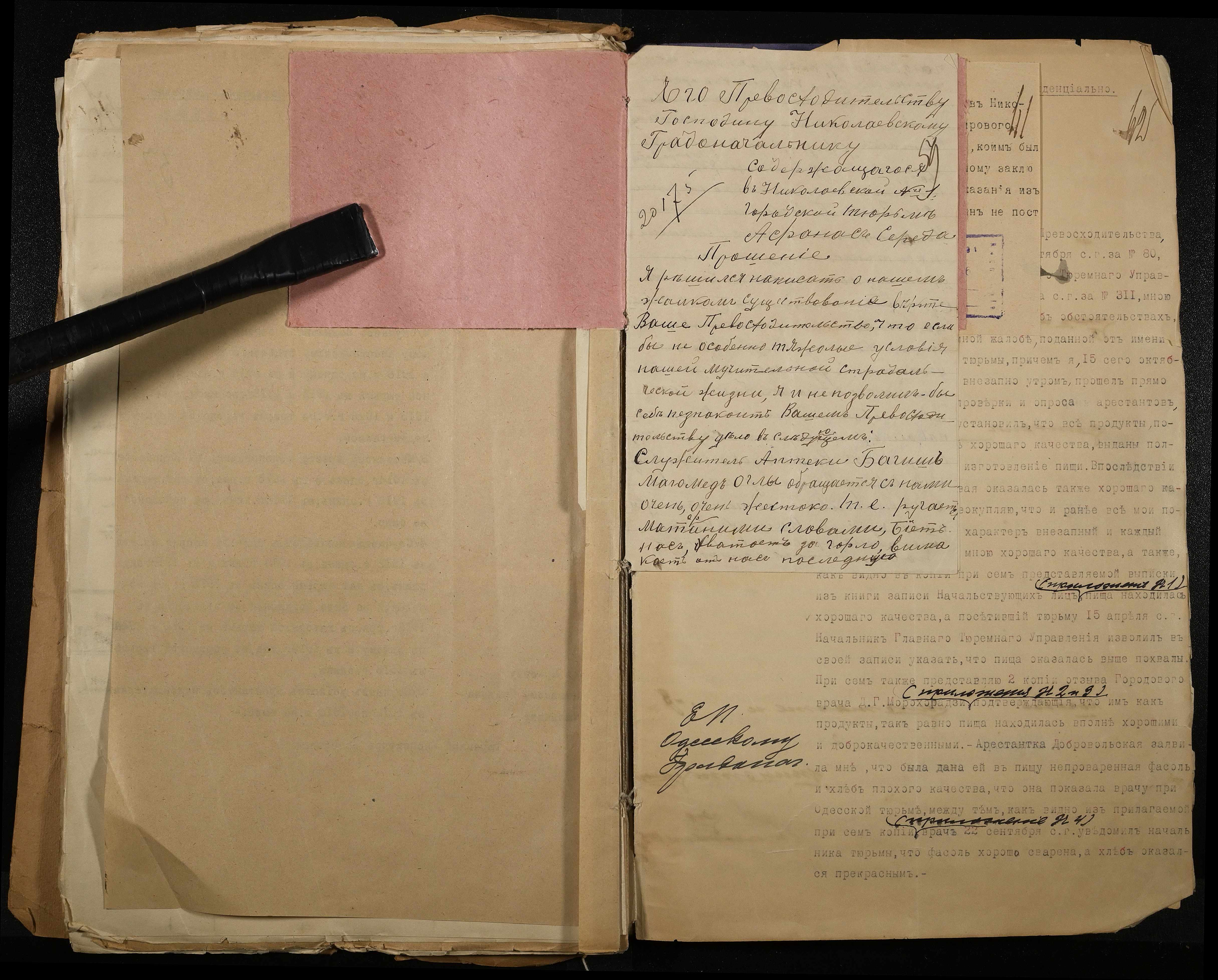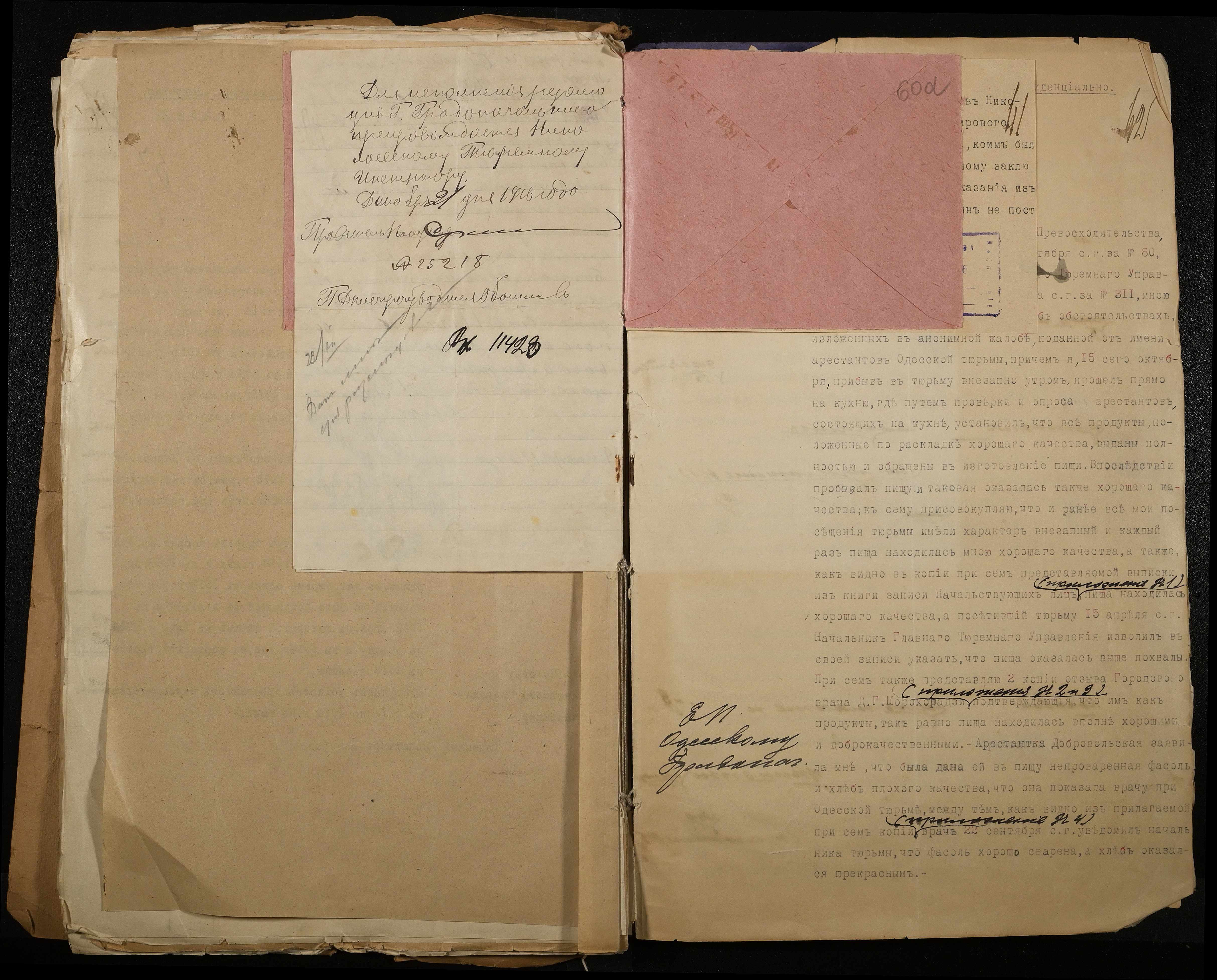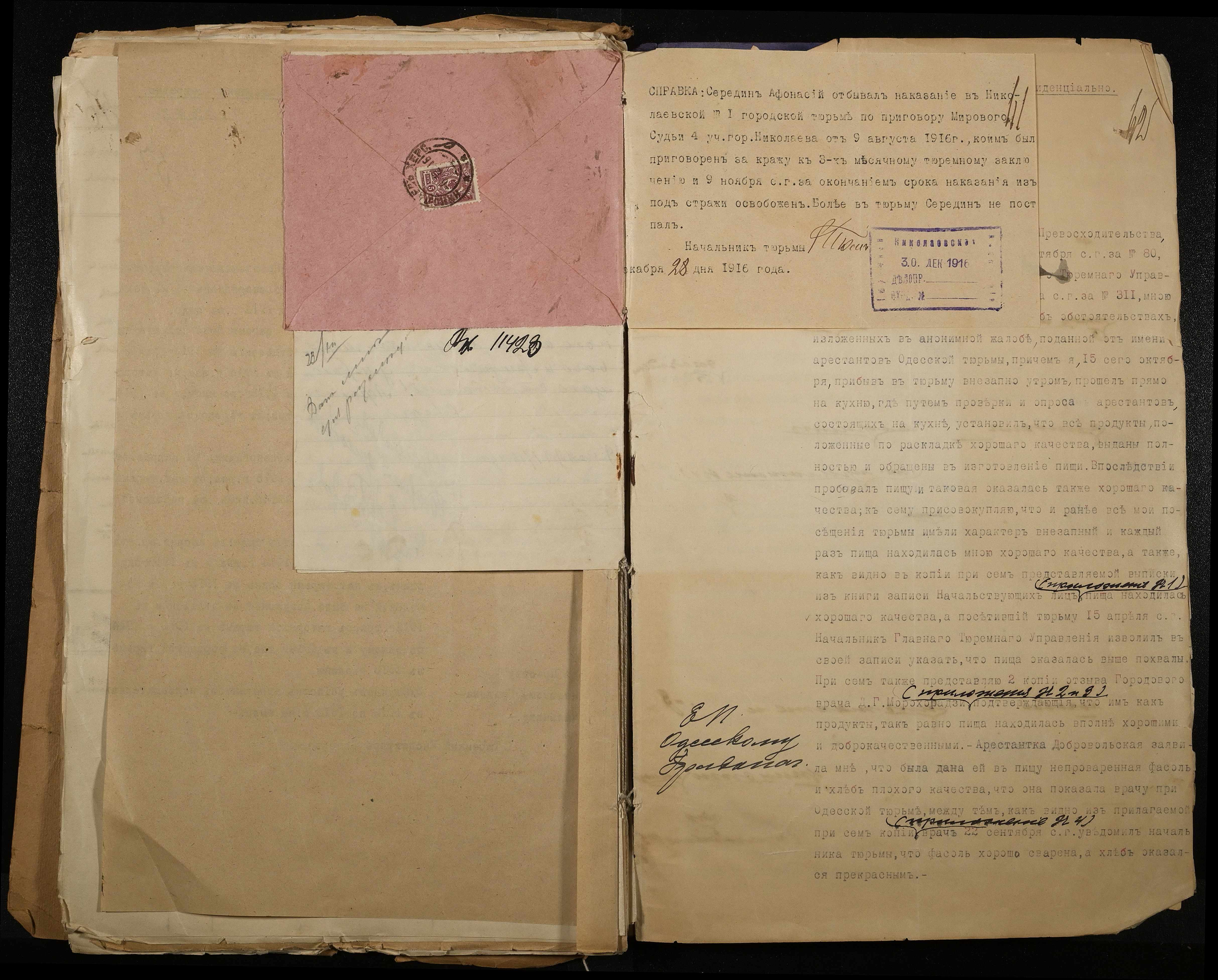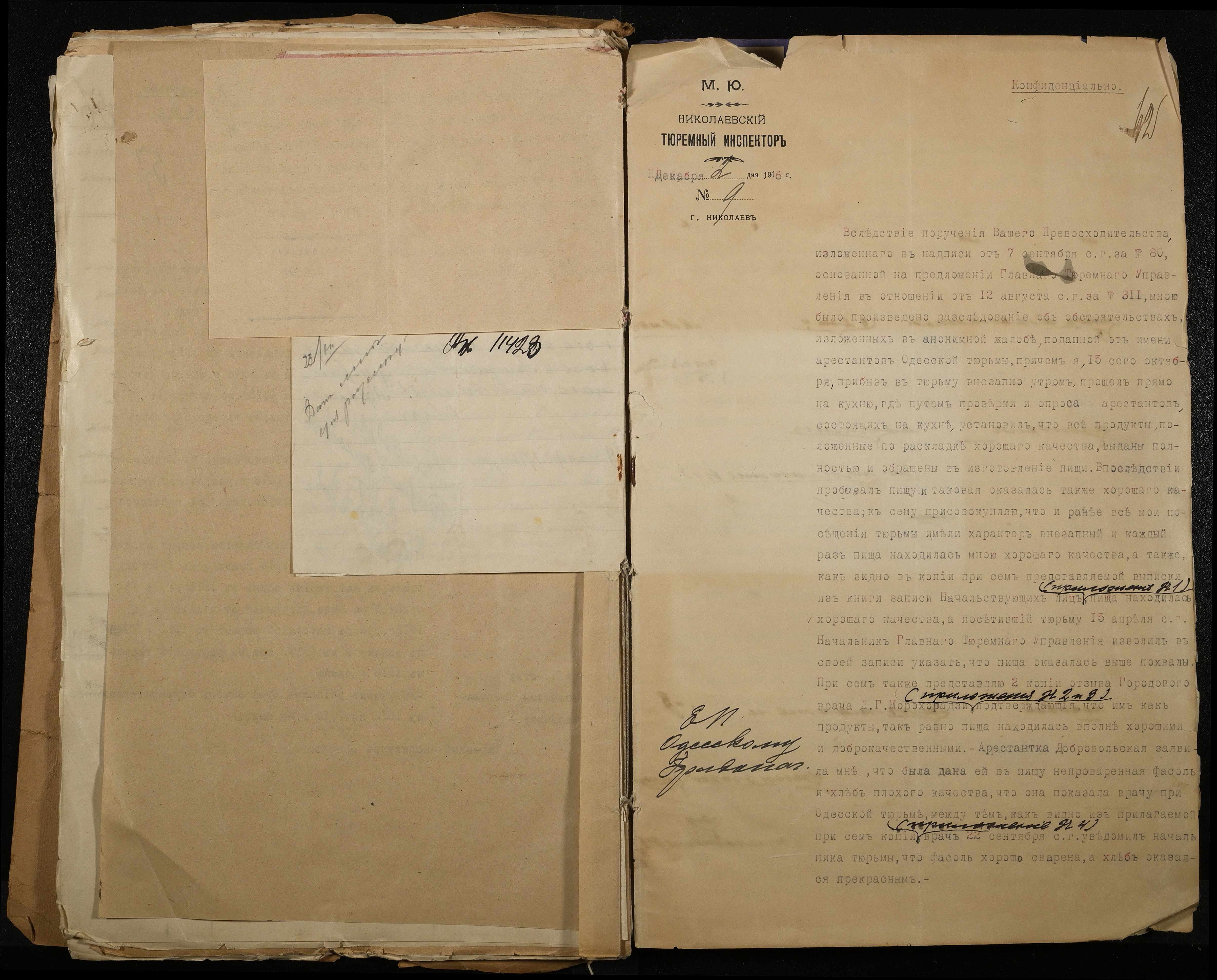 • • • • Справа № 118 Листування з Головним тюремним управлінням про випадки порушення дисципліни та масових заворушень, випадки самогубства серед арештантів, викриття фактів корупційних діянь у виправних закладах м. Миколаїв; доповідні записки, рапорти, доноси про факти порушення встановлених правил арештантами і наглядачами у виправних закладах міста