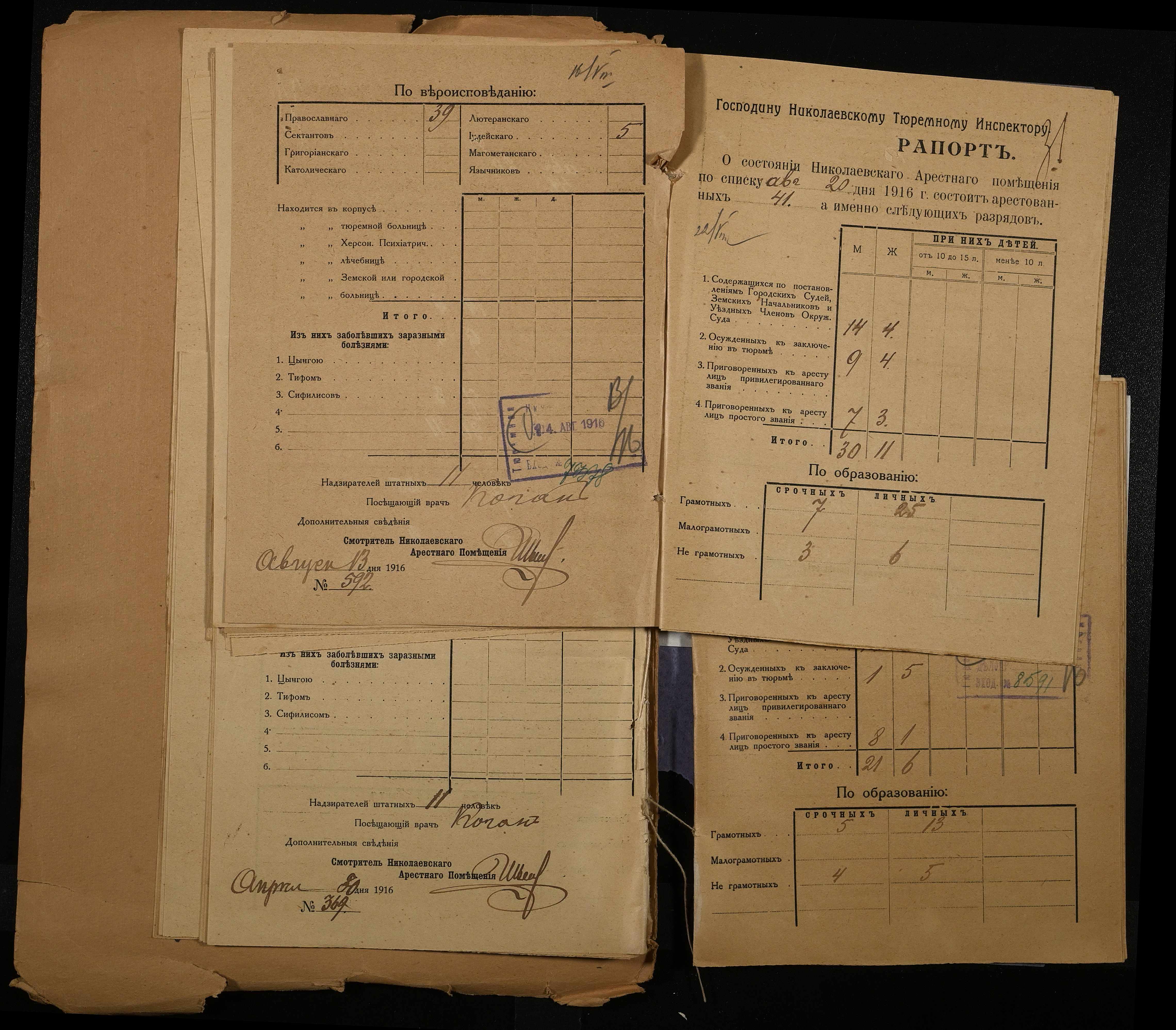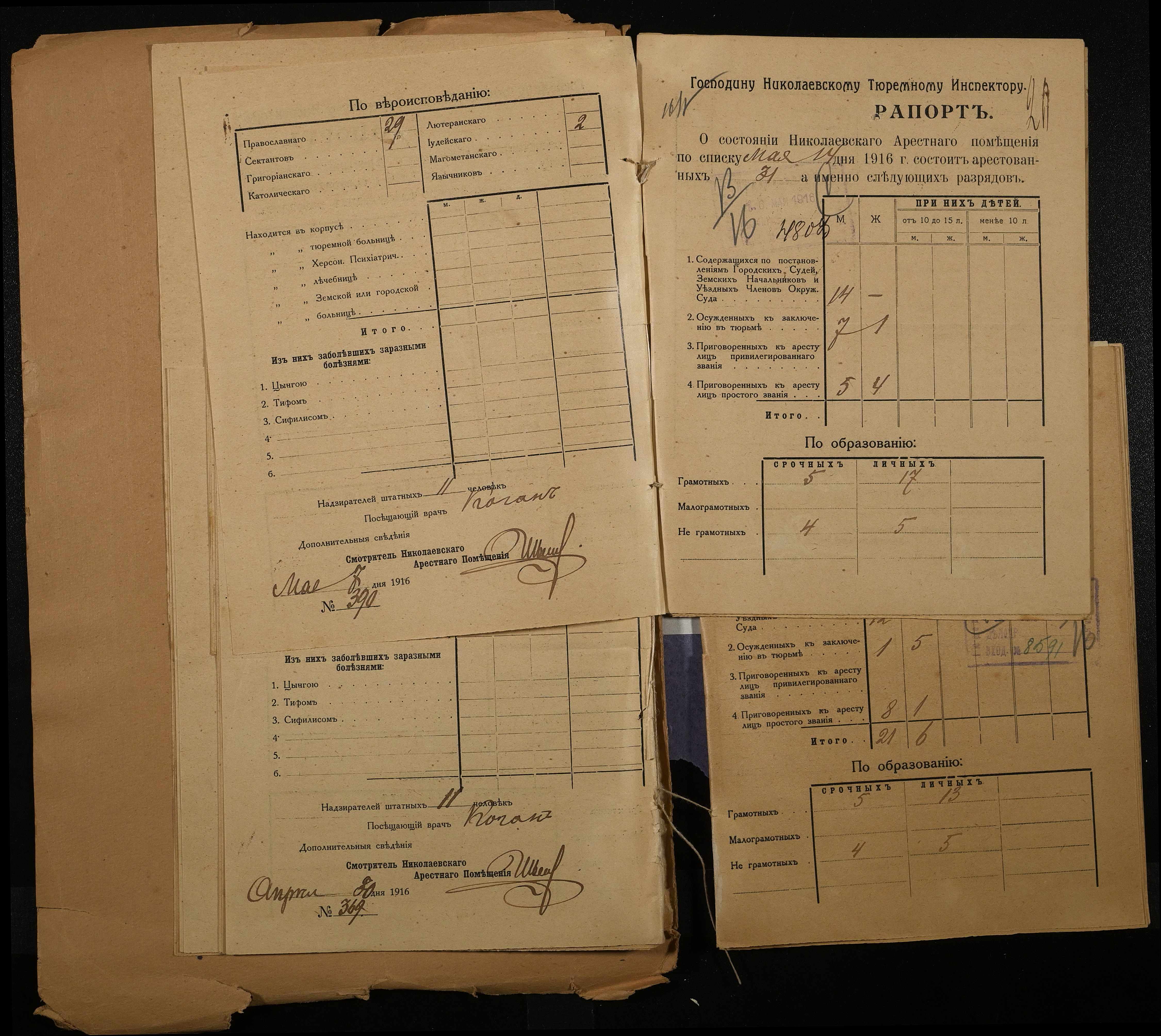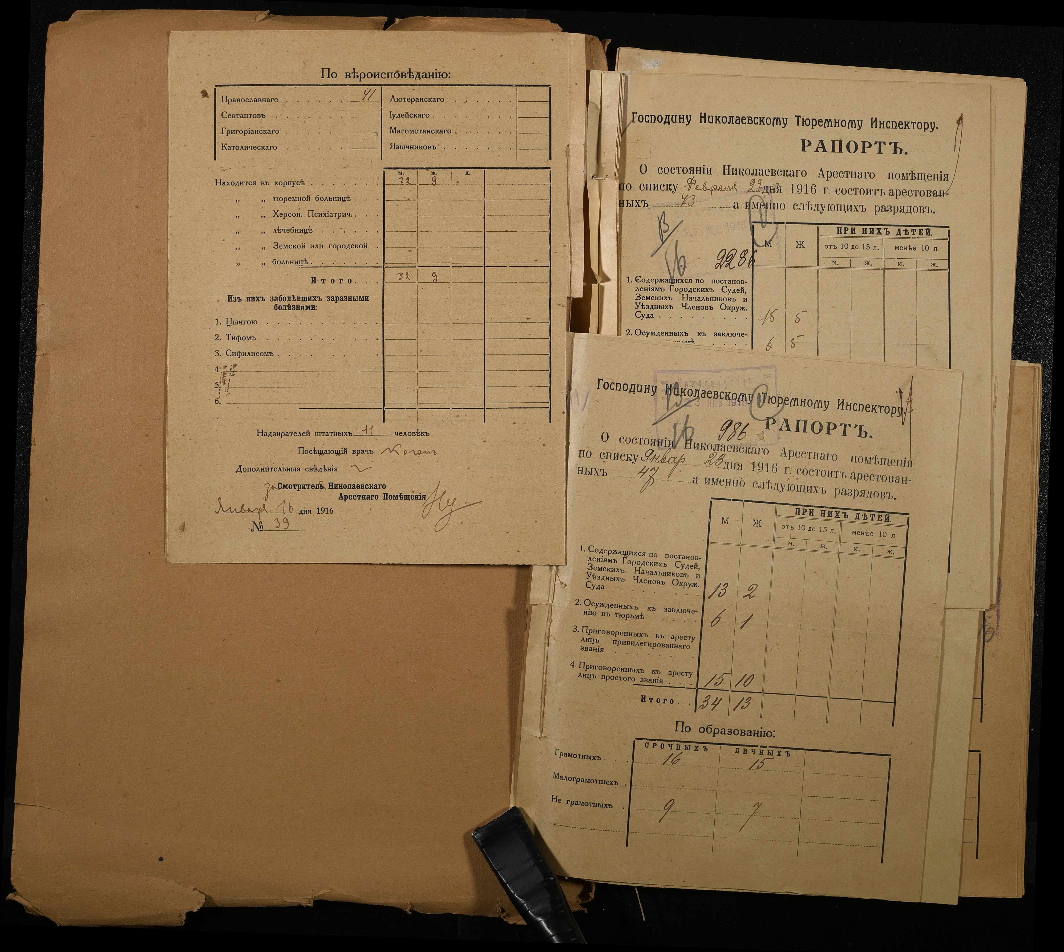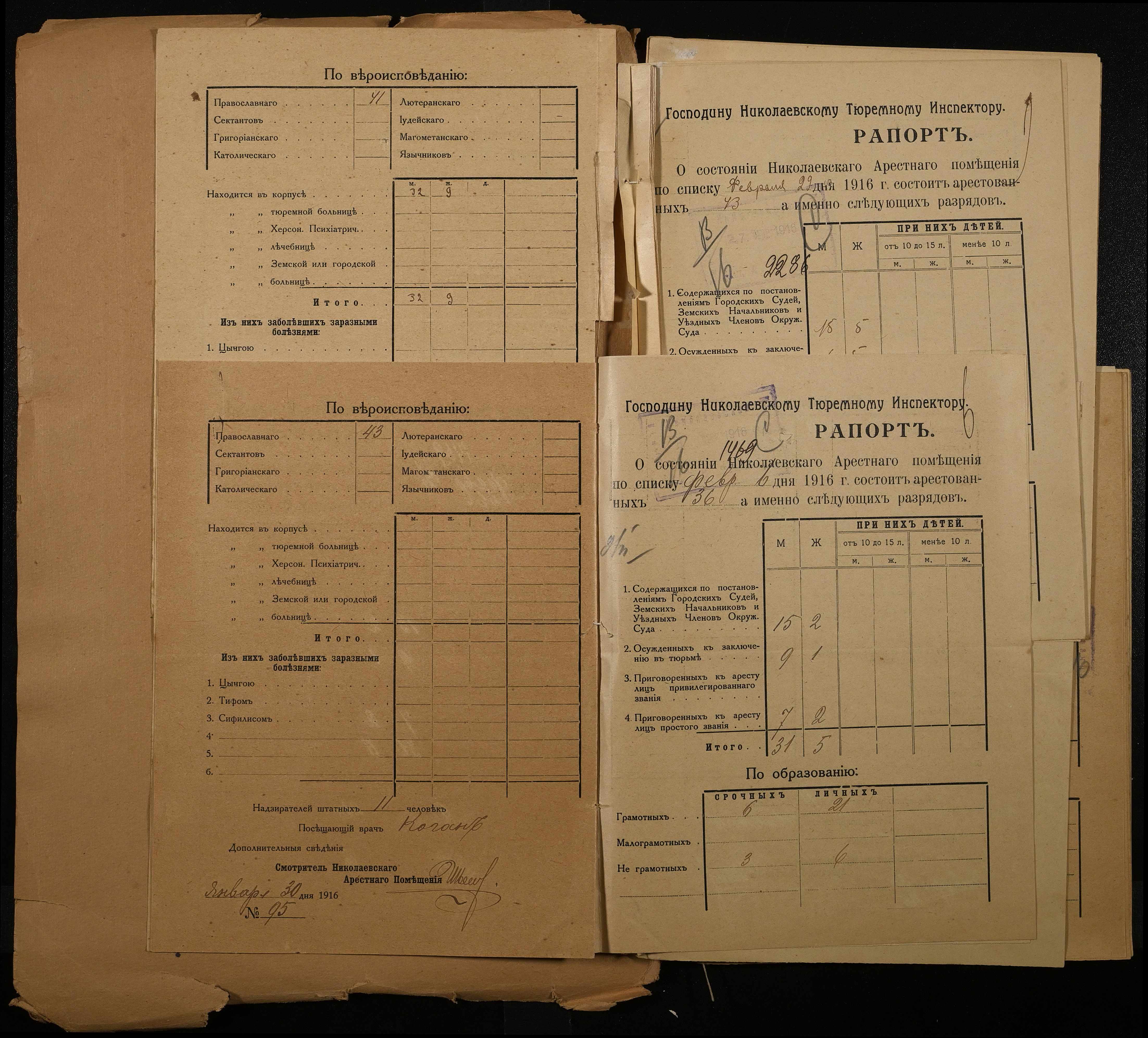 • • • • Справа № 120 Рапорти наглядача миколаївського арештантського приміщення миколаївському тюремному інспектору про розряди арештантів