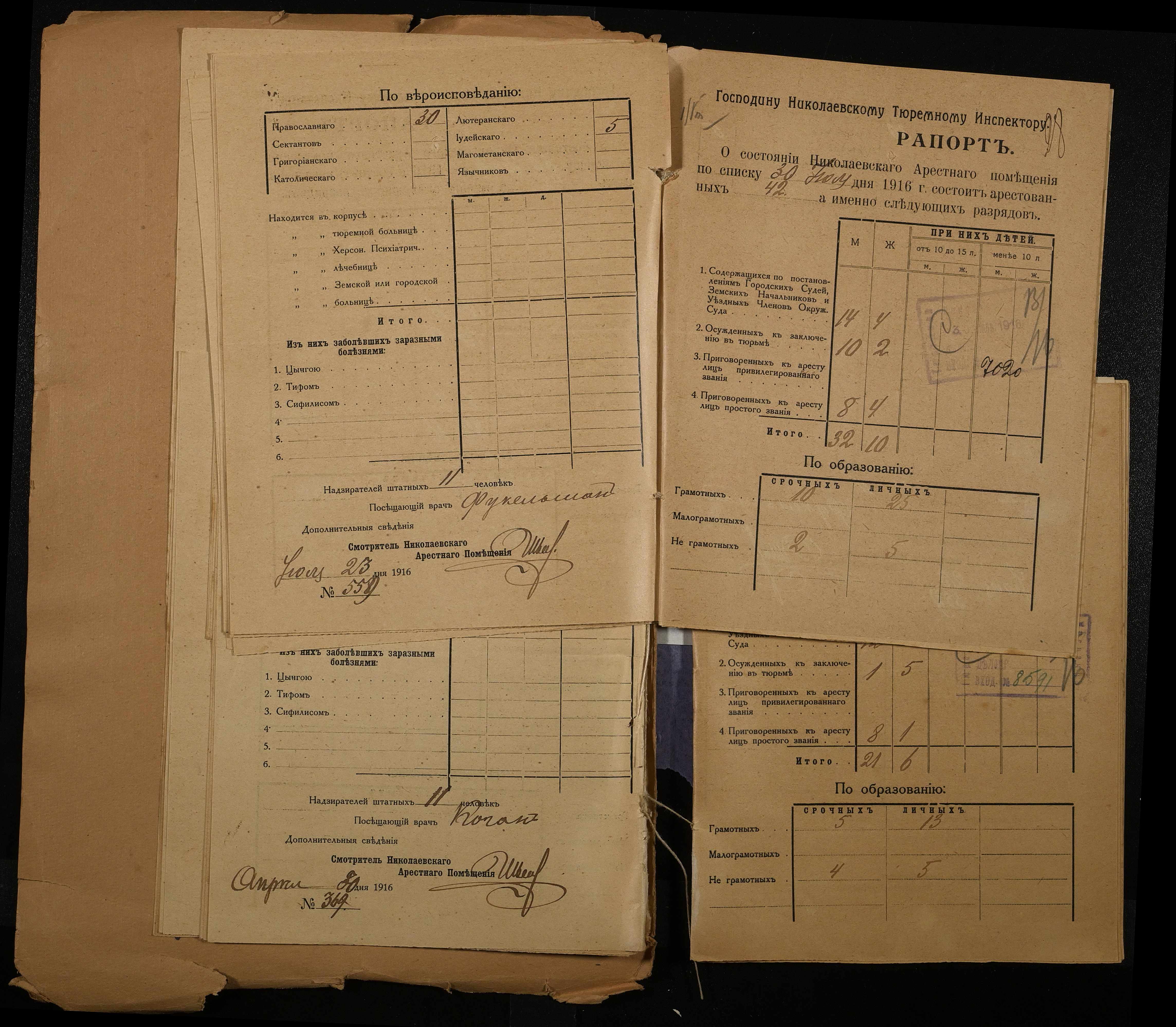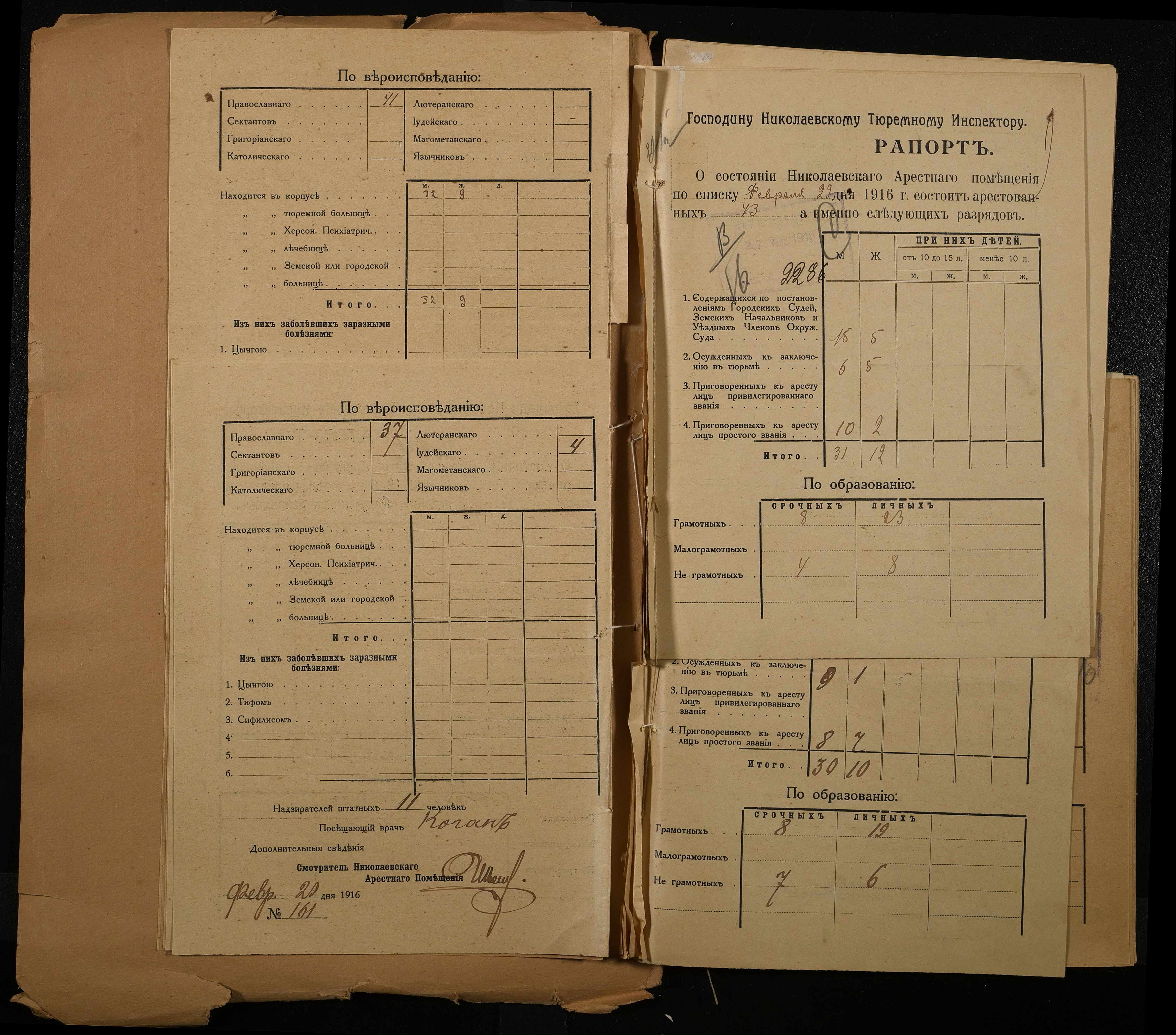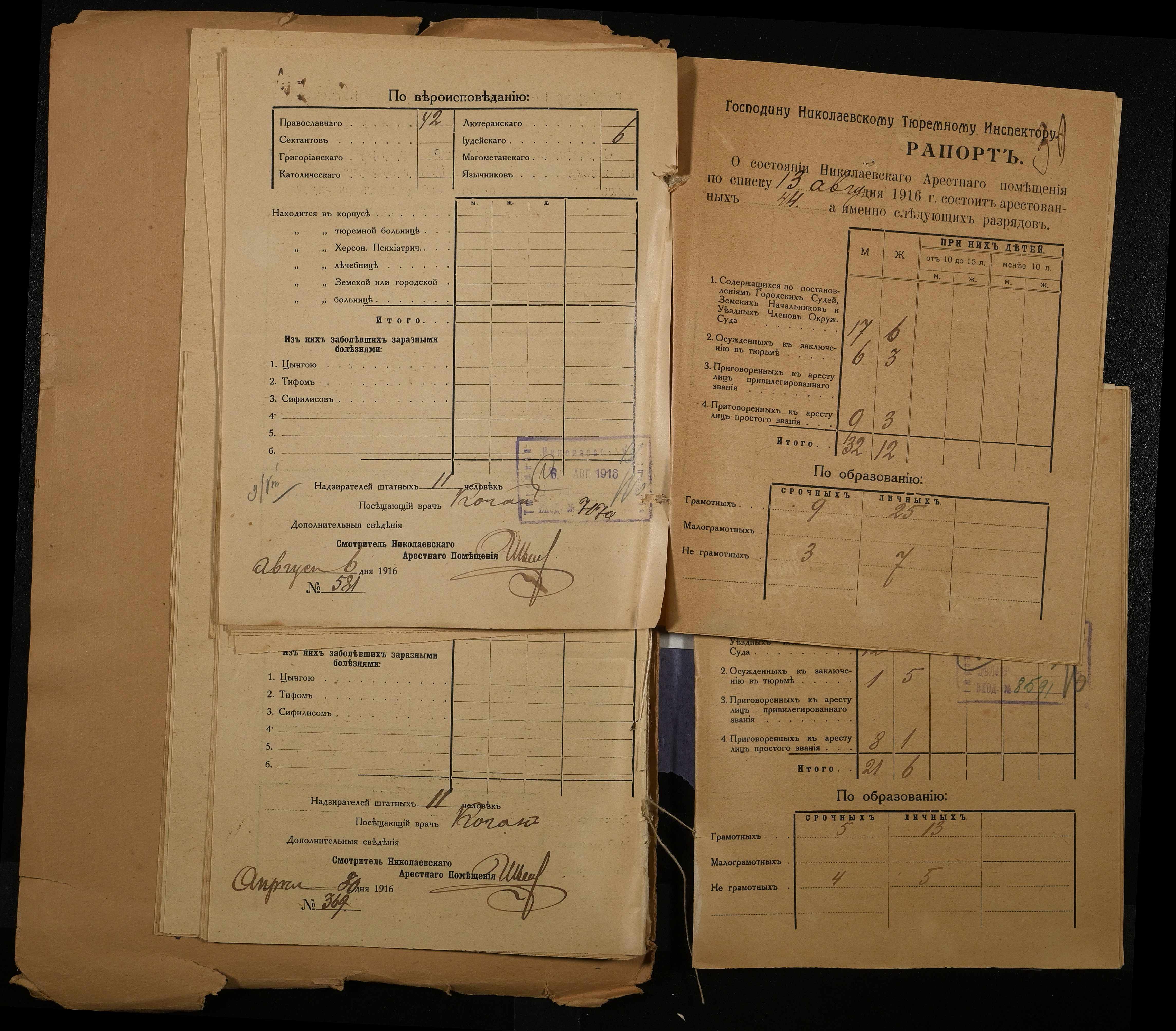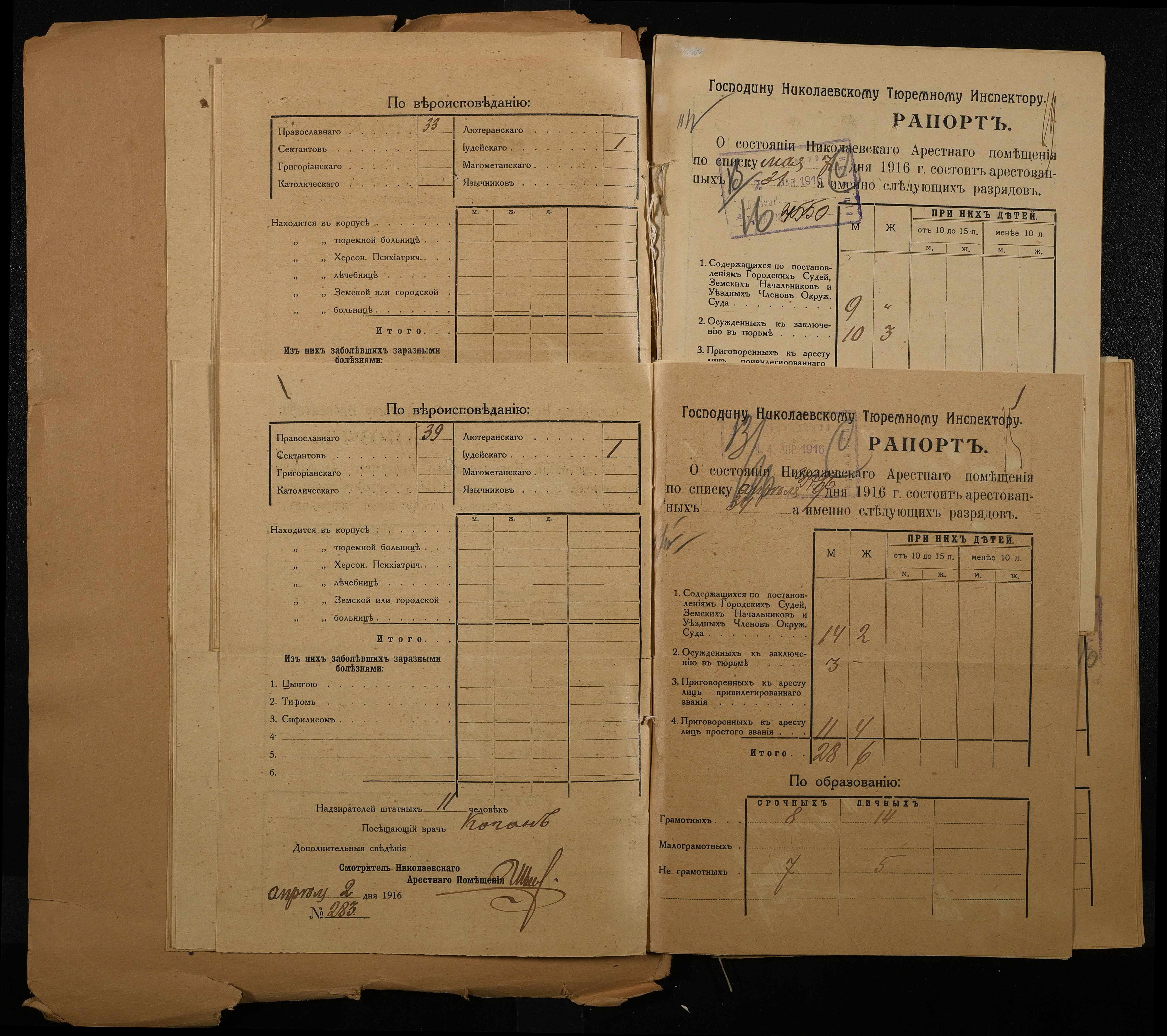 • • • • Справа № 120 Рапорти наглядача миколаївського арештантського приміщення миколаївському тюремному інспектору про розряди арештантів