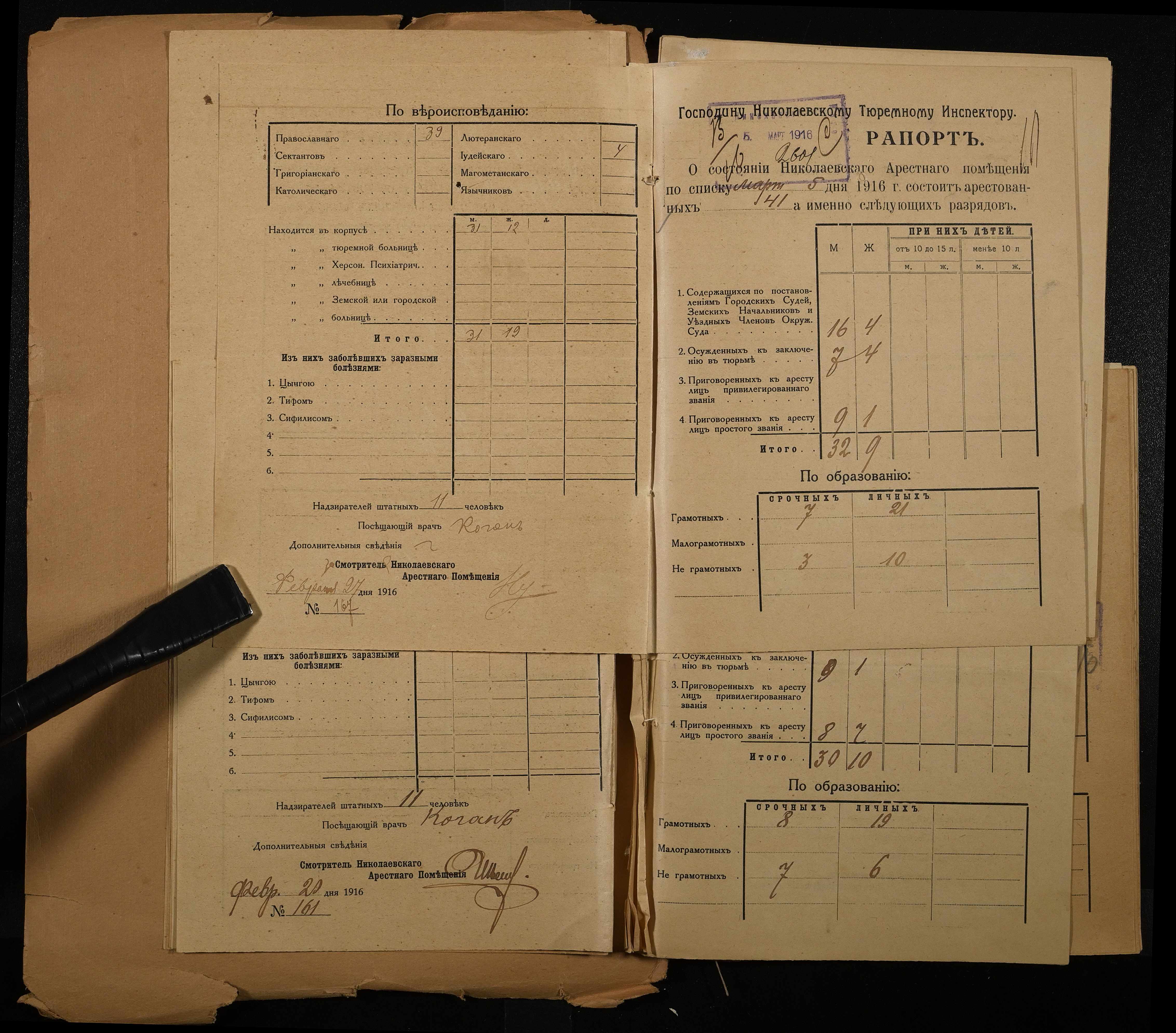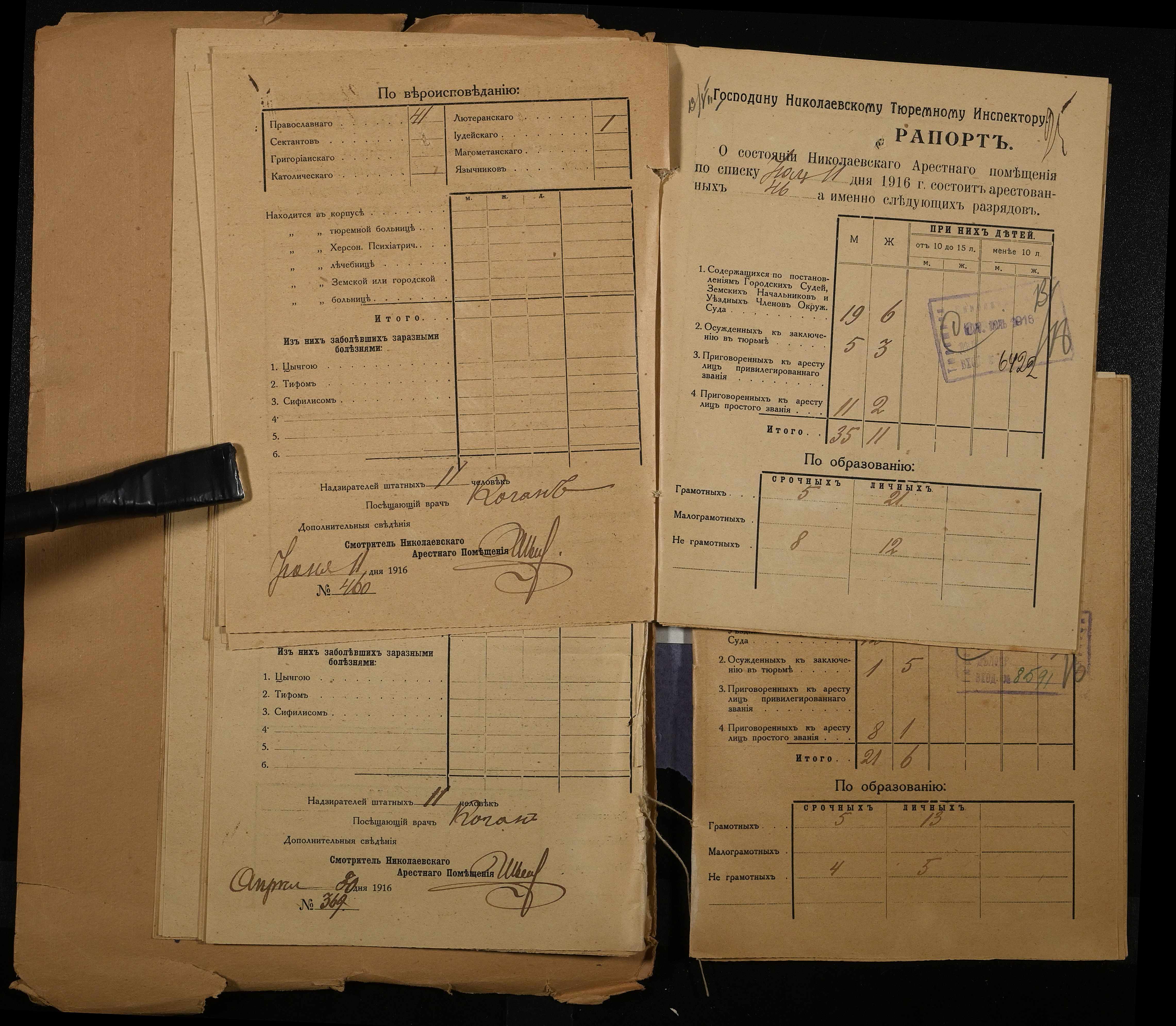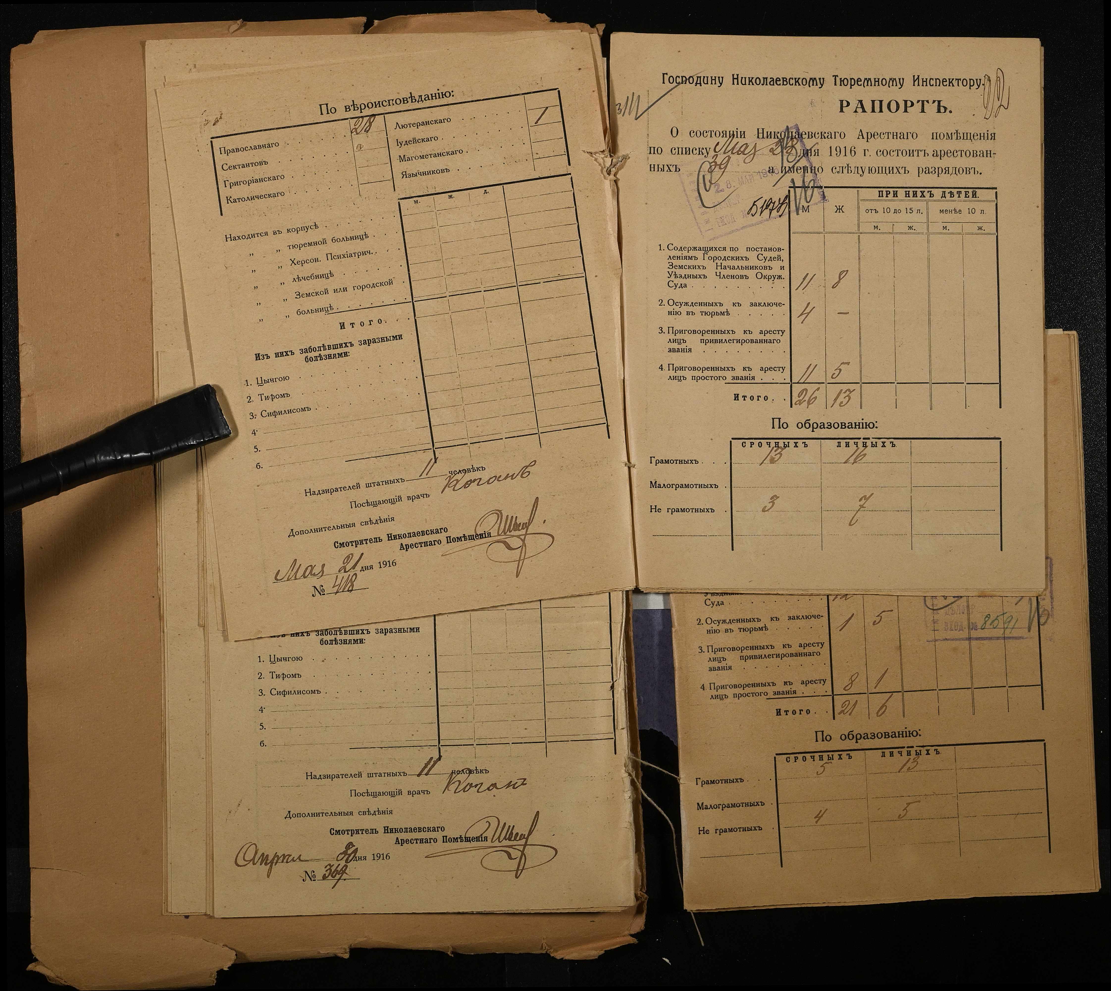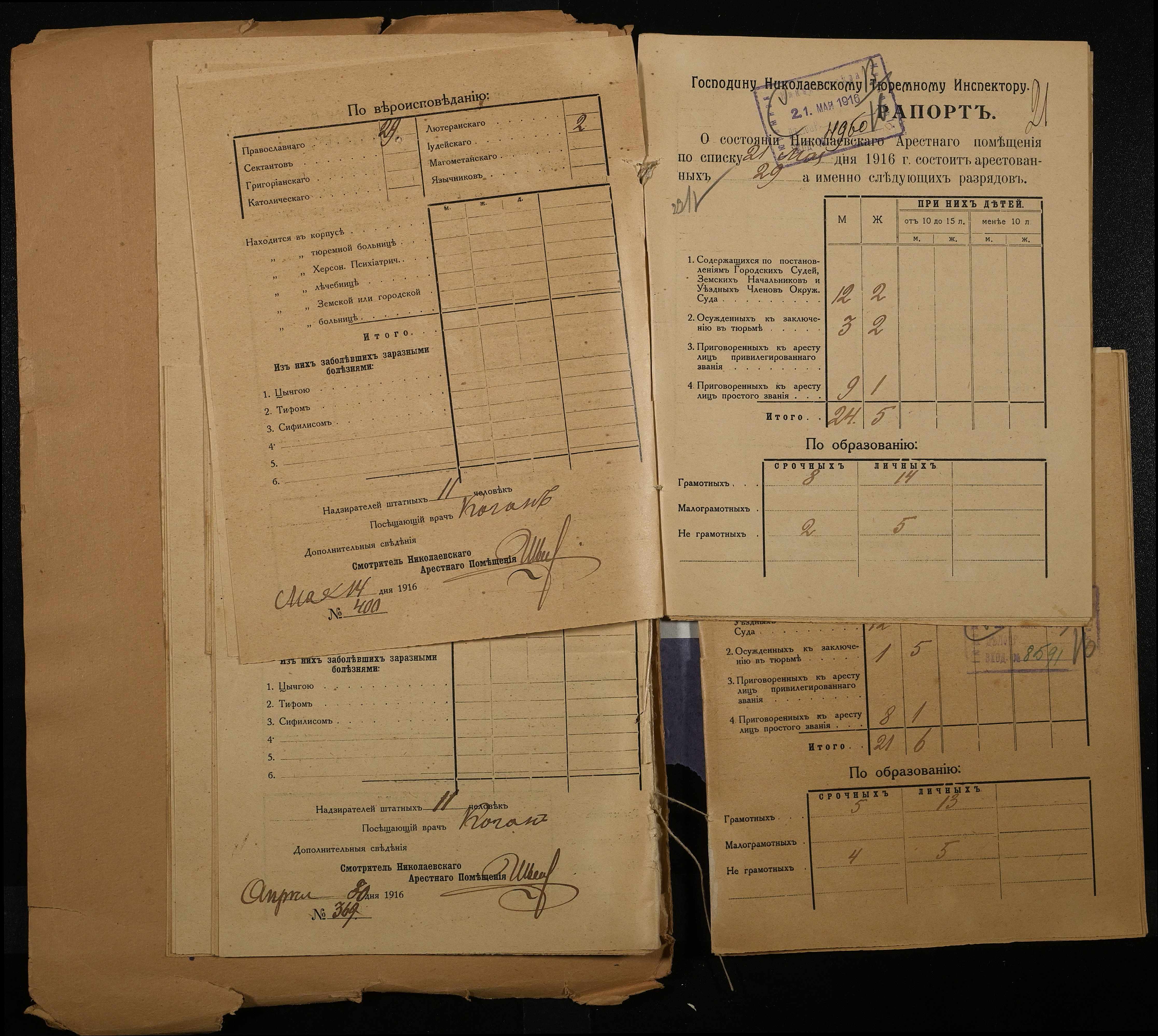 • • • • Справа № 120 Рапорти наглядача миколаївського арештантського приміщення миколаївському тюремному інспектору про розряди арештантів