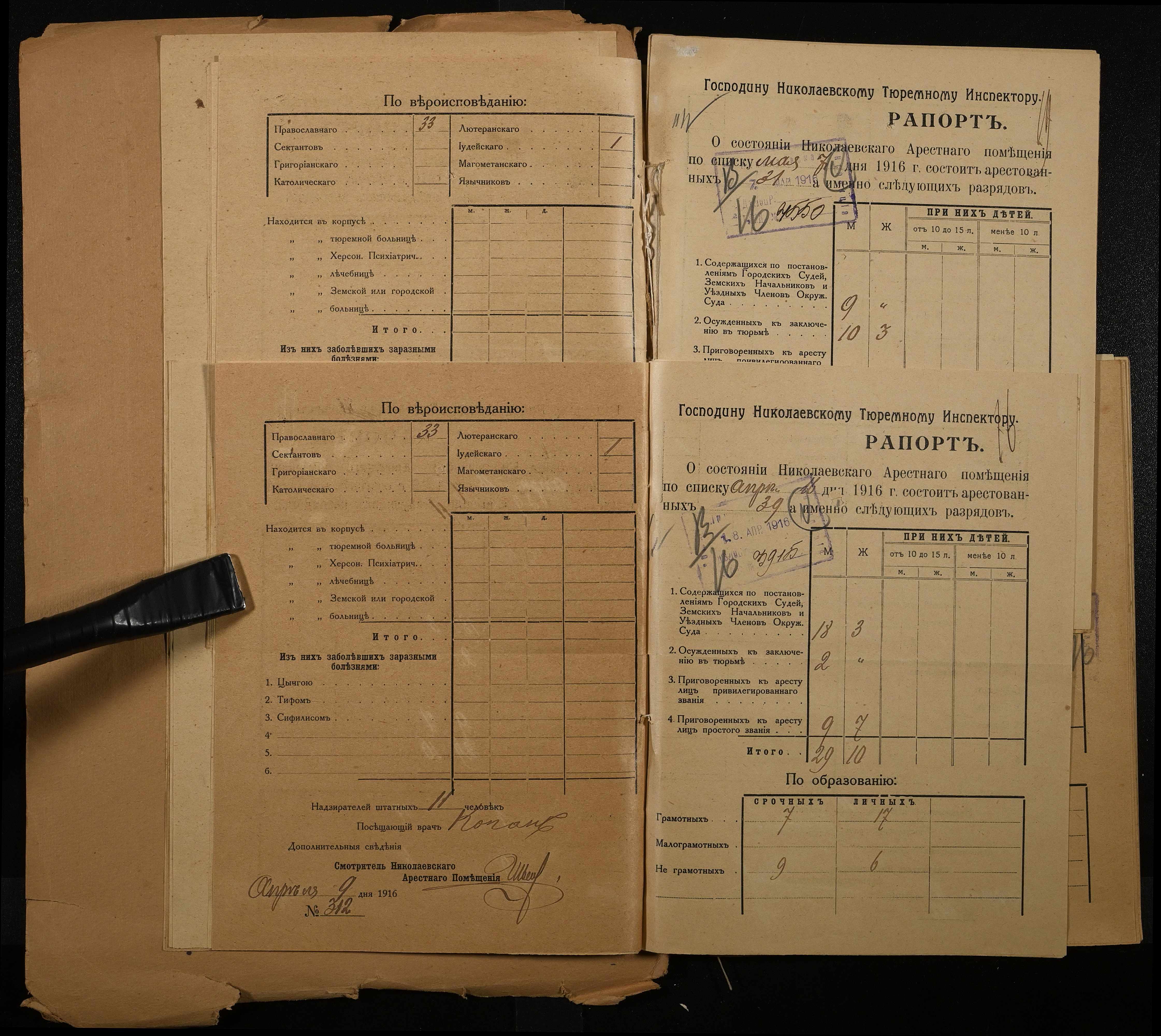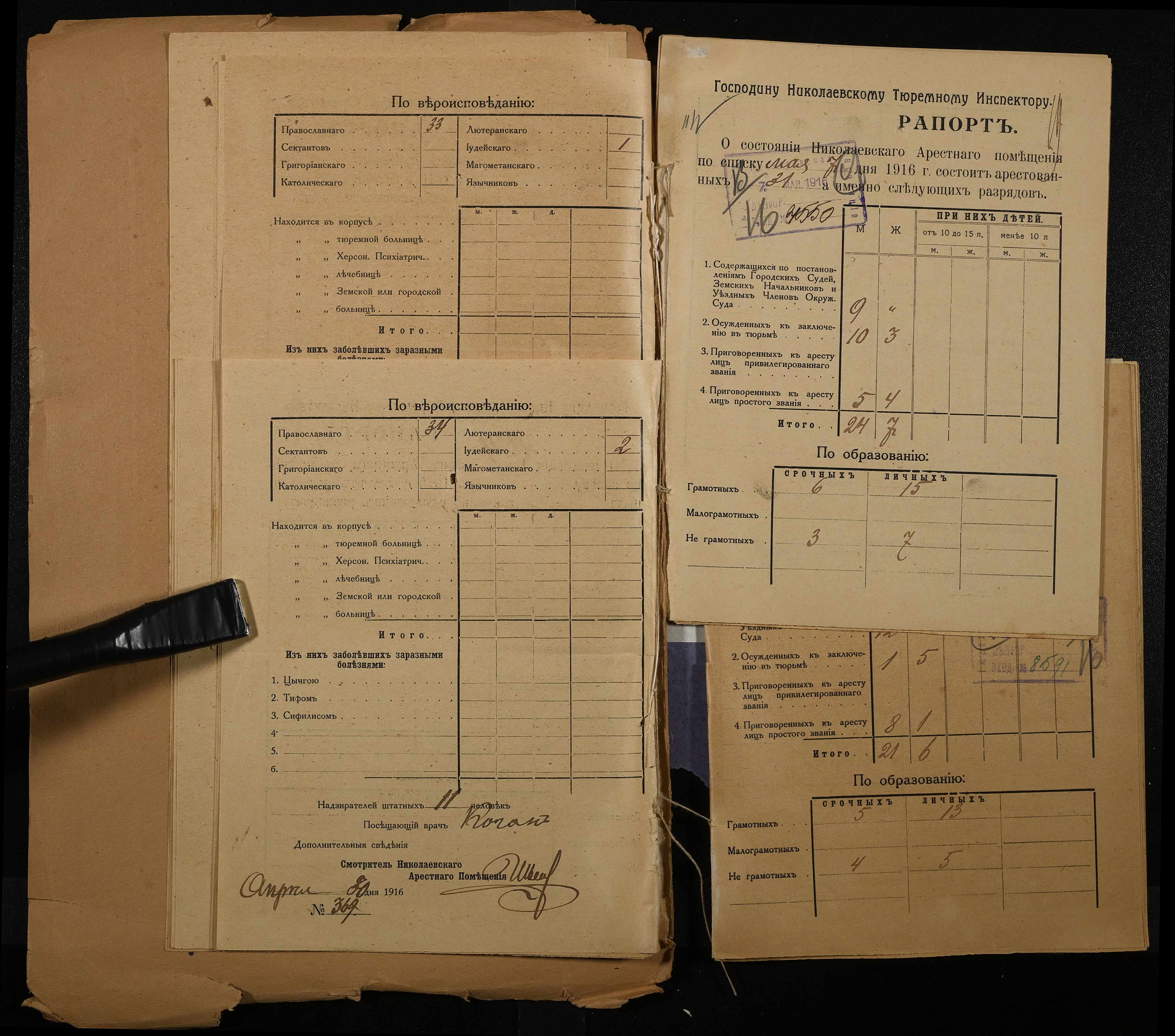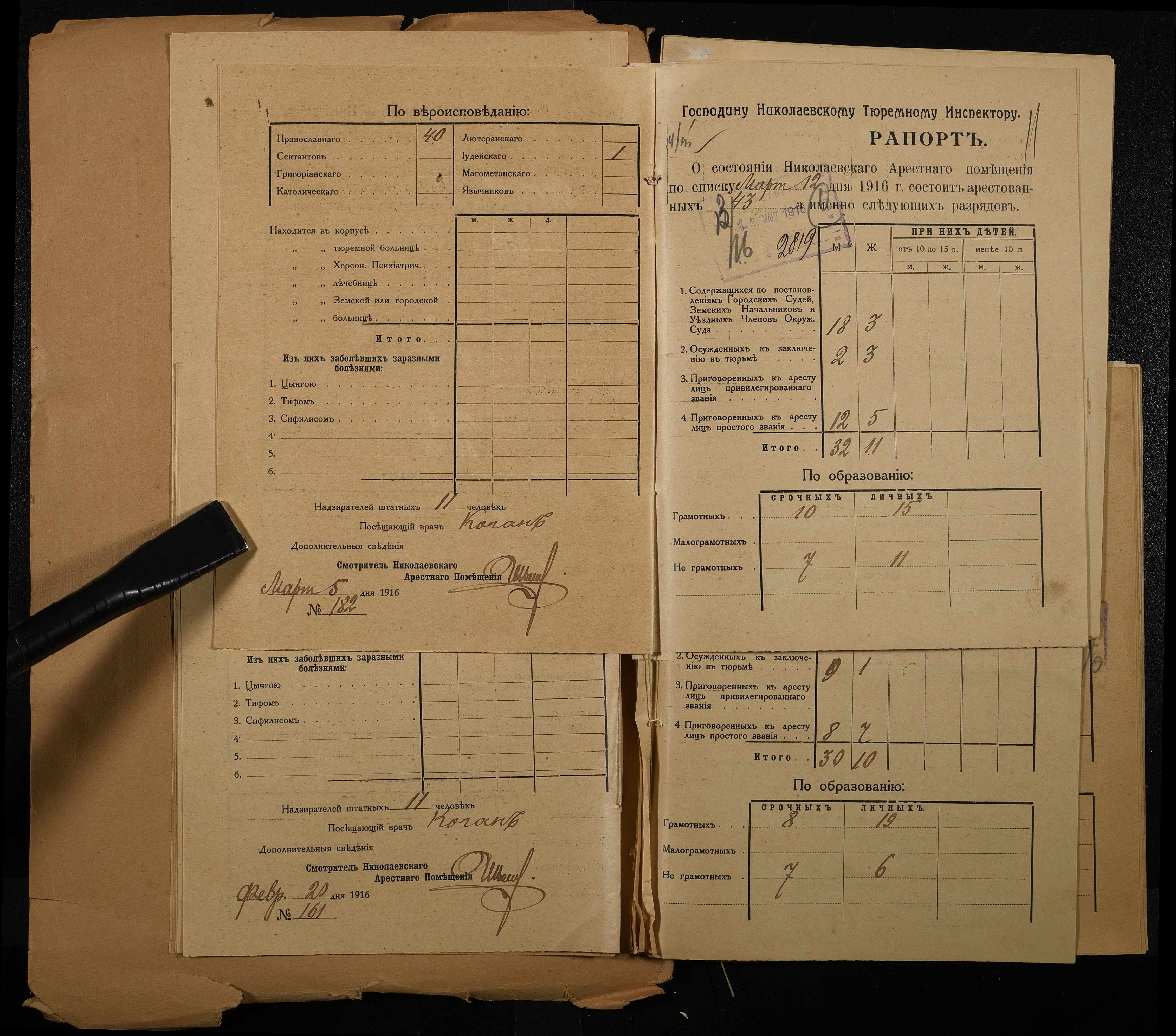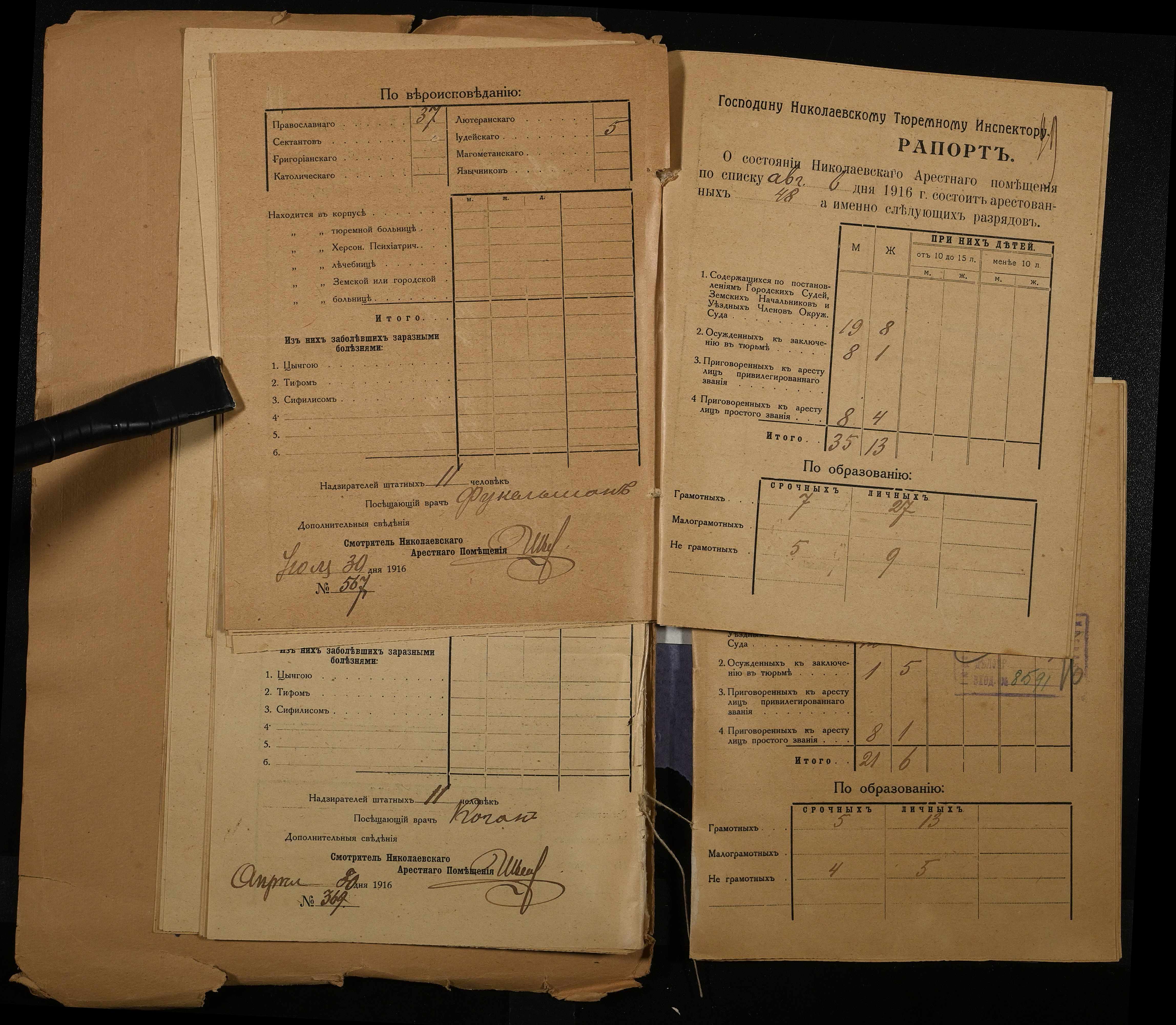 • • • • Справа № 120 Рапорти наглядача миколаївського арештантського приміщення миколаївському тюремному інспектору про розряди арештантів