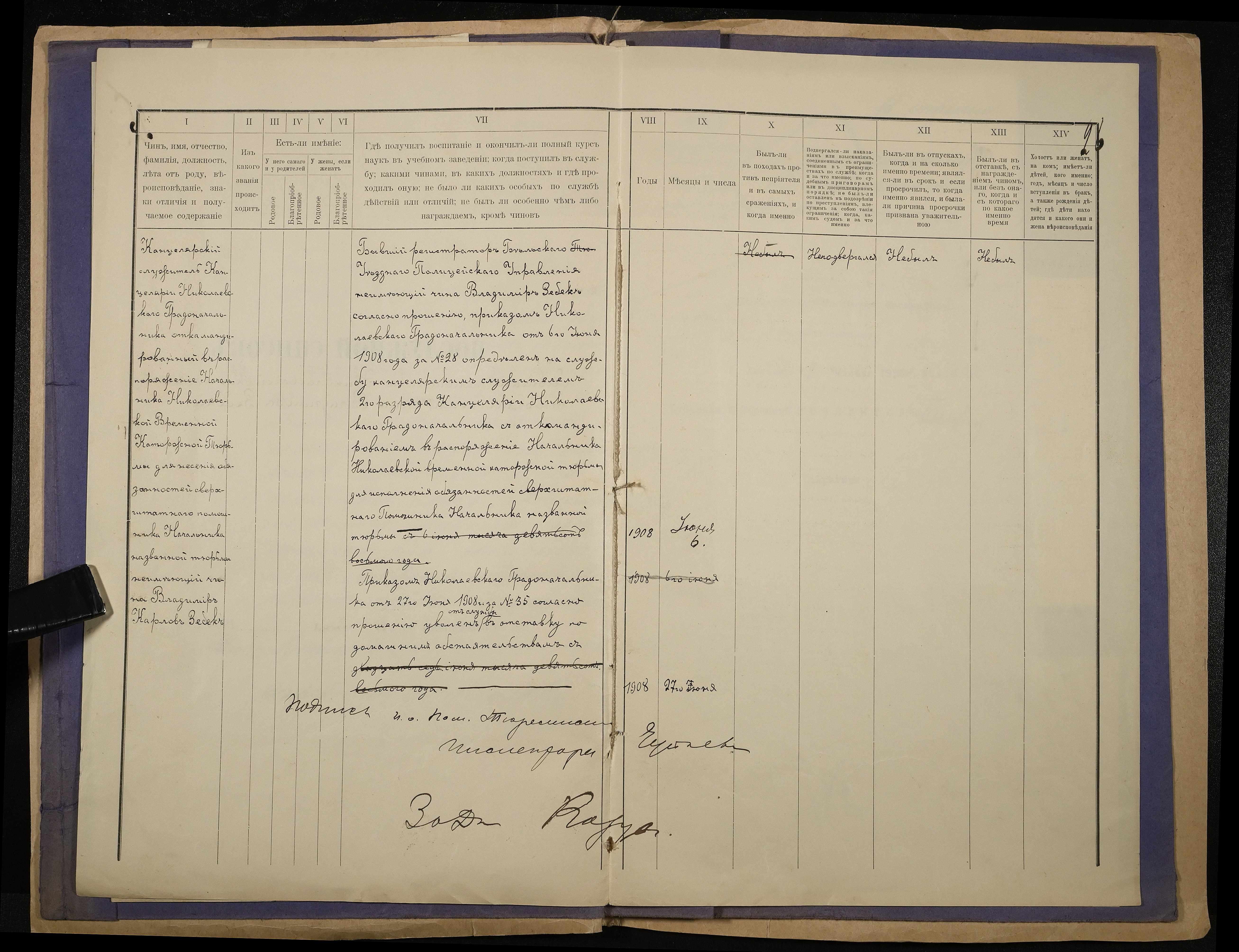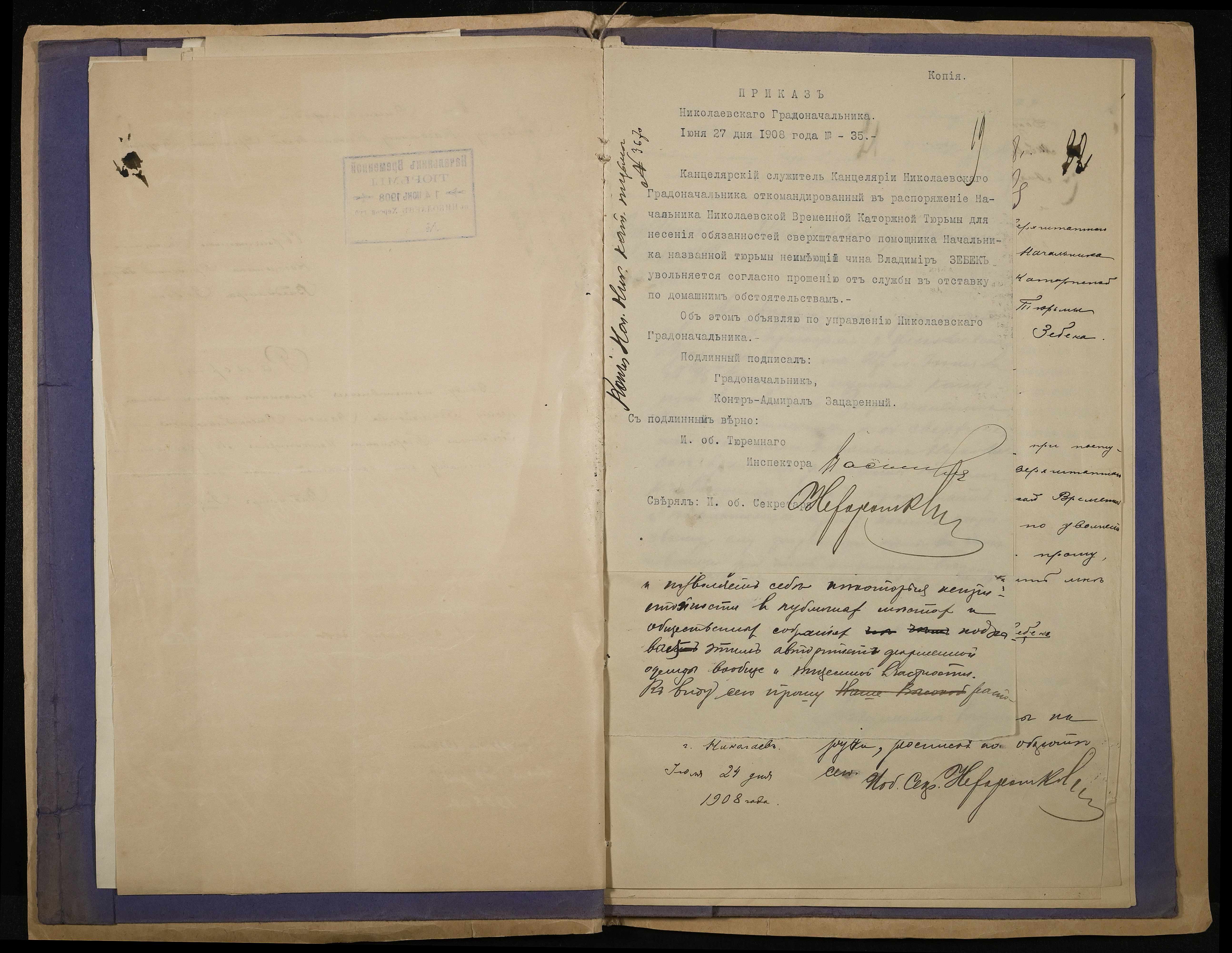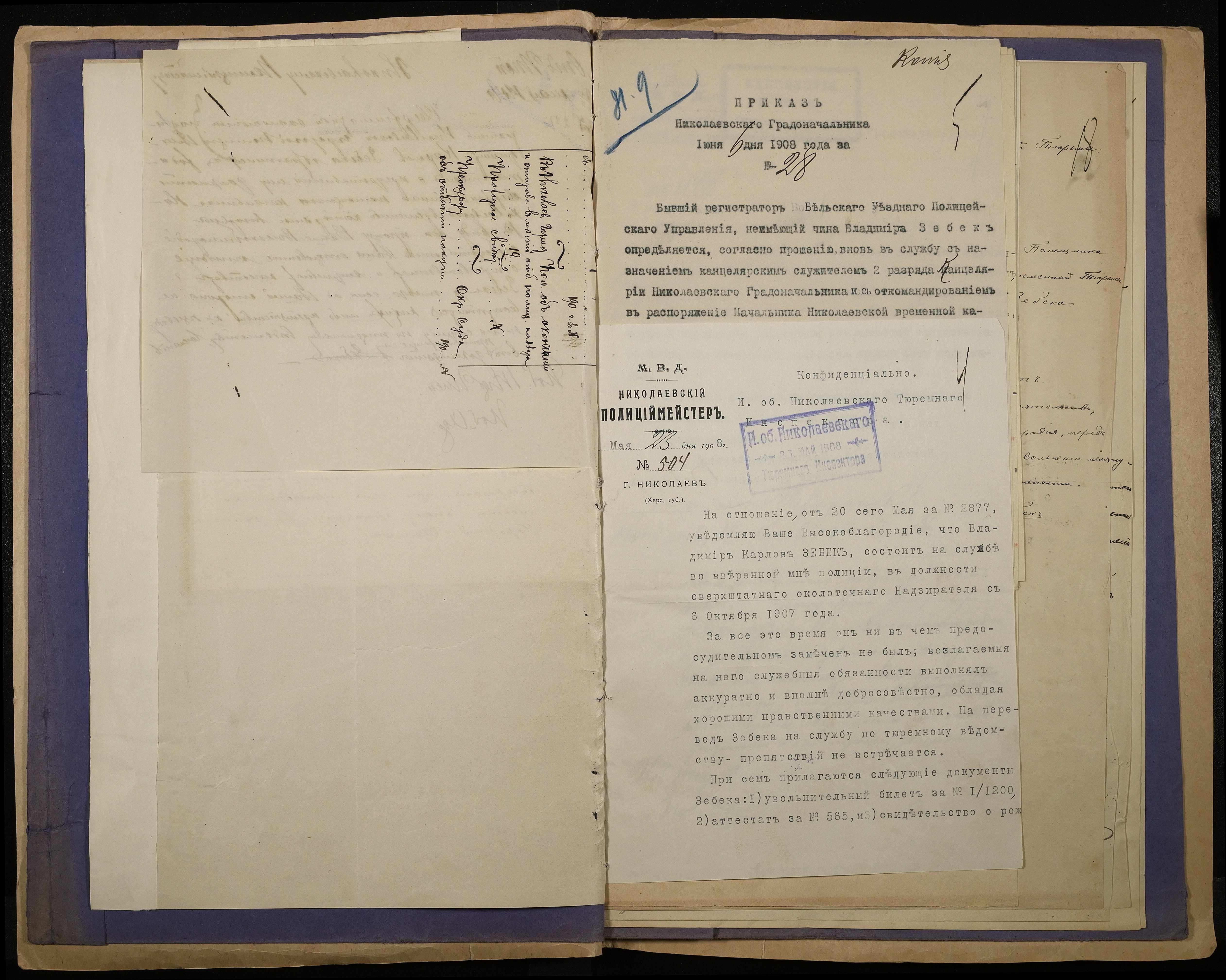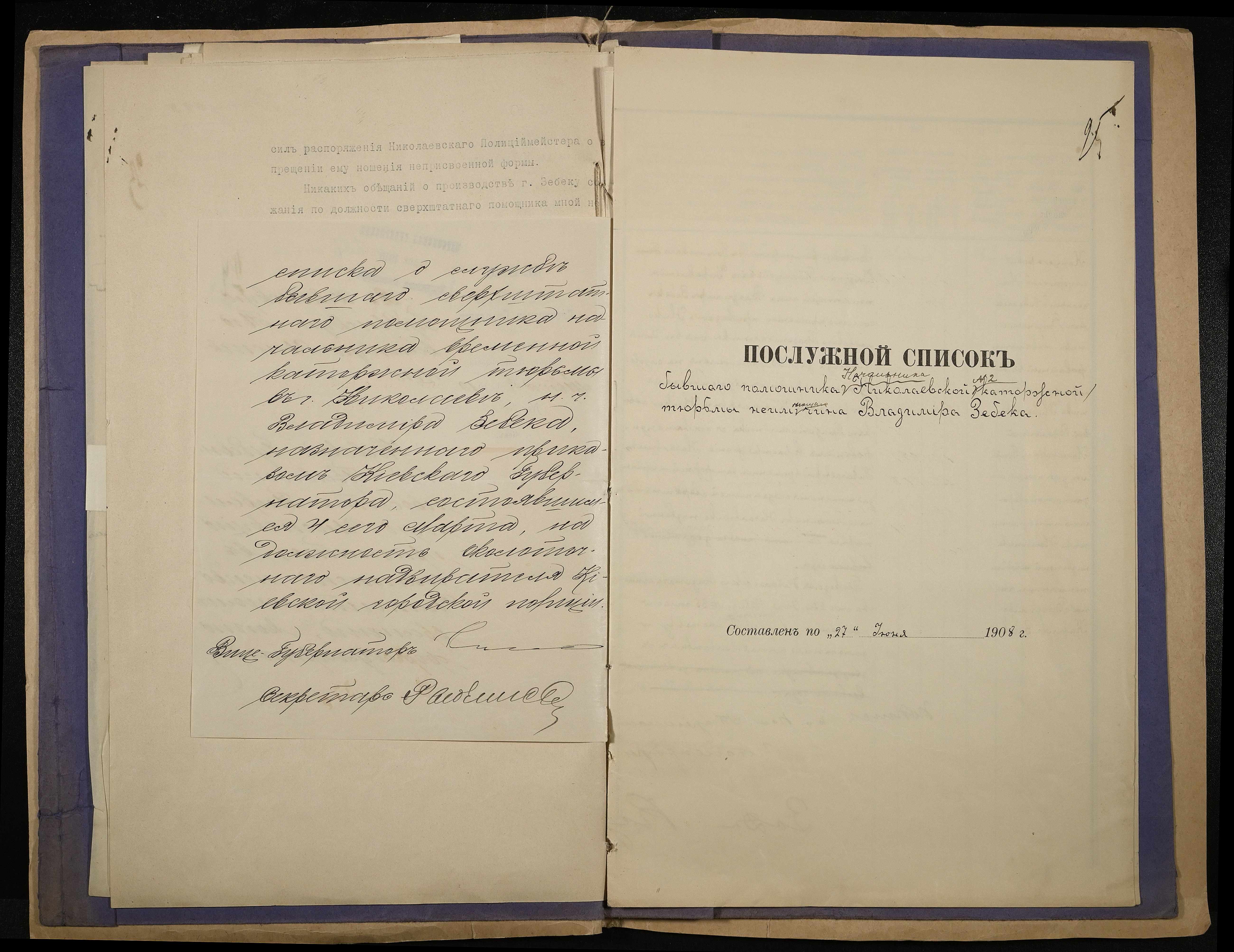 • • • • Справа № 139 Особова справа особова справа службовця Канцелярії Миколаївського градоначальника Зебека В.К., підпорядкованого начальнику Миколаївської каторжної тюрми