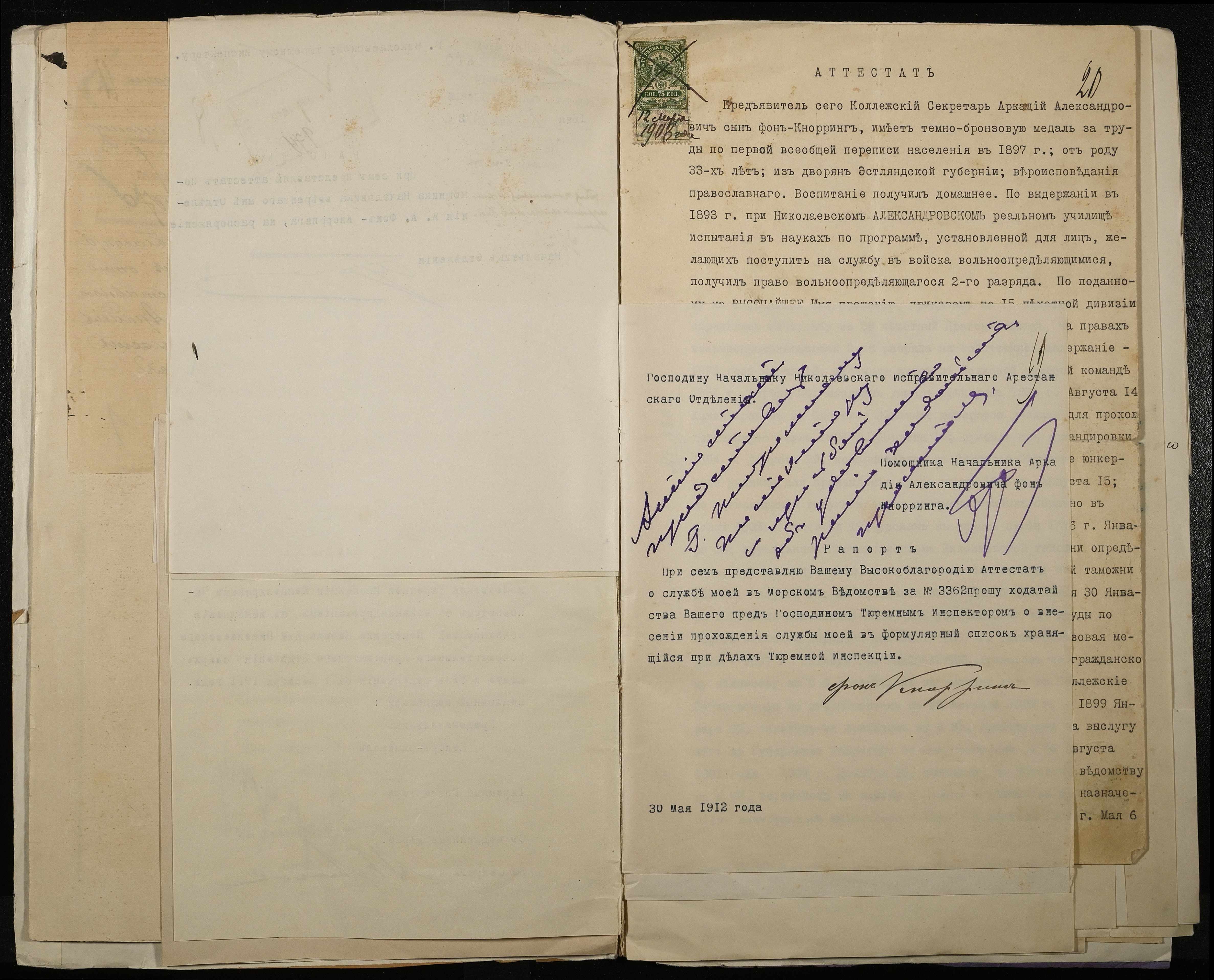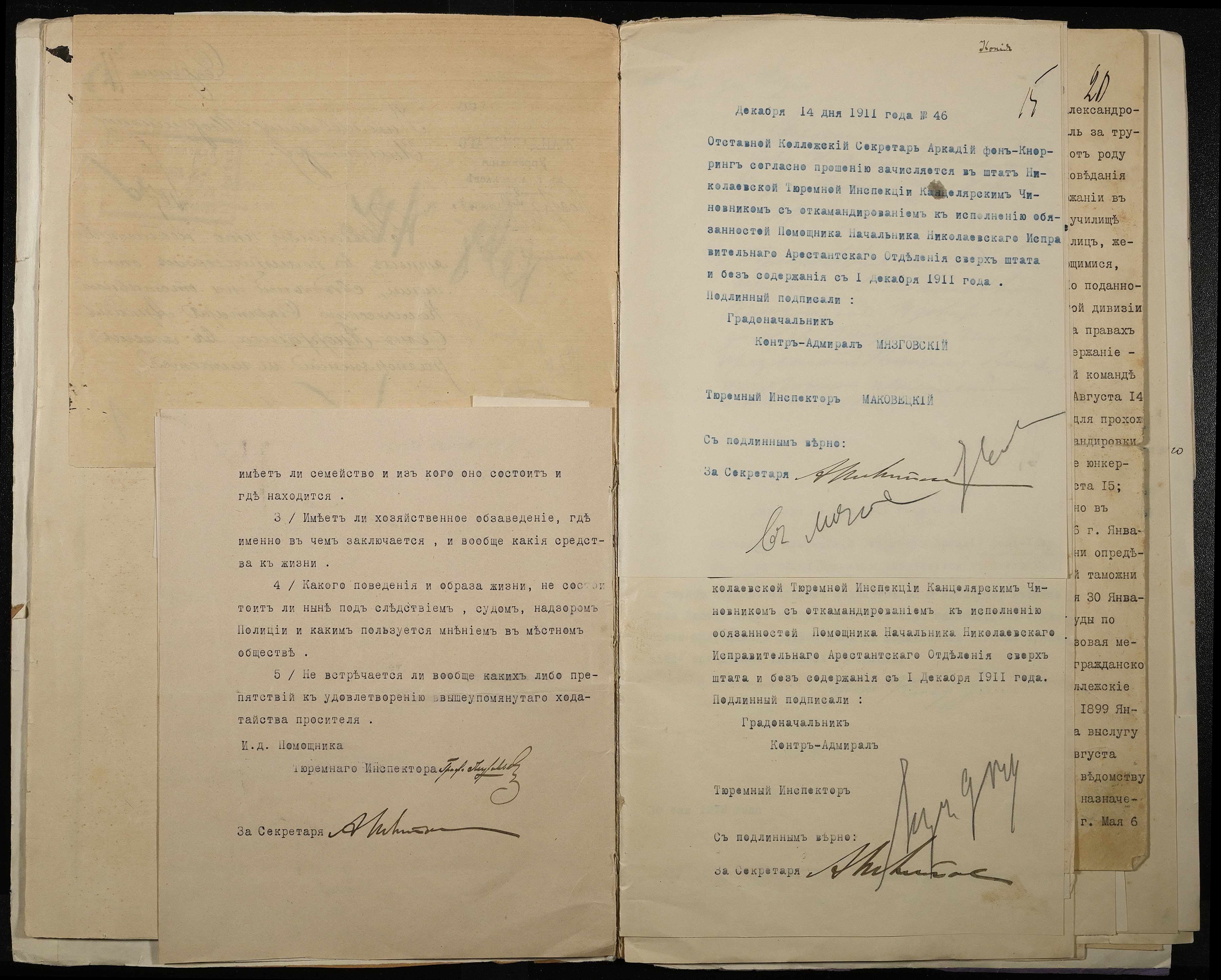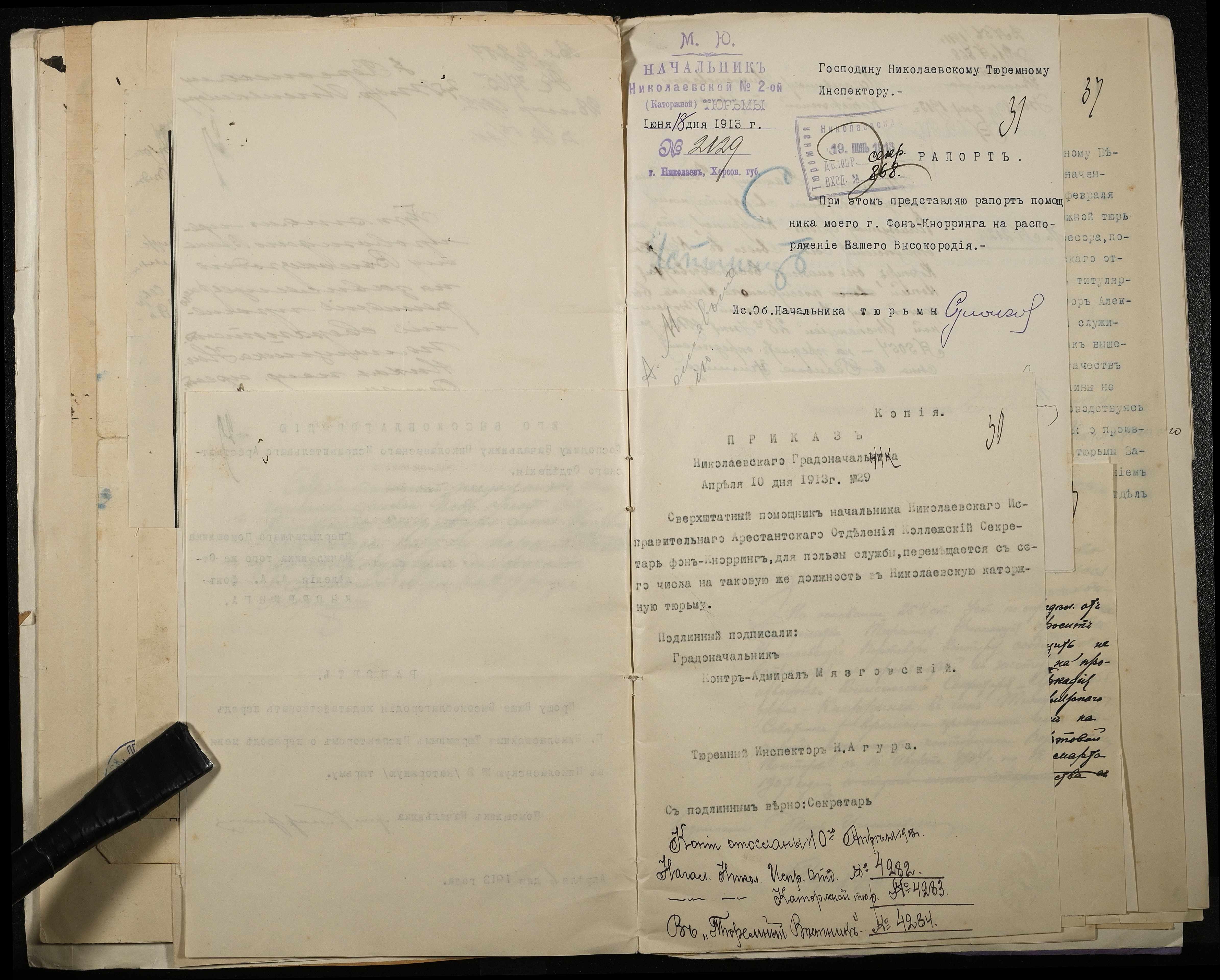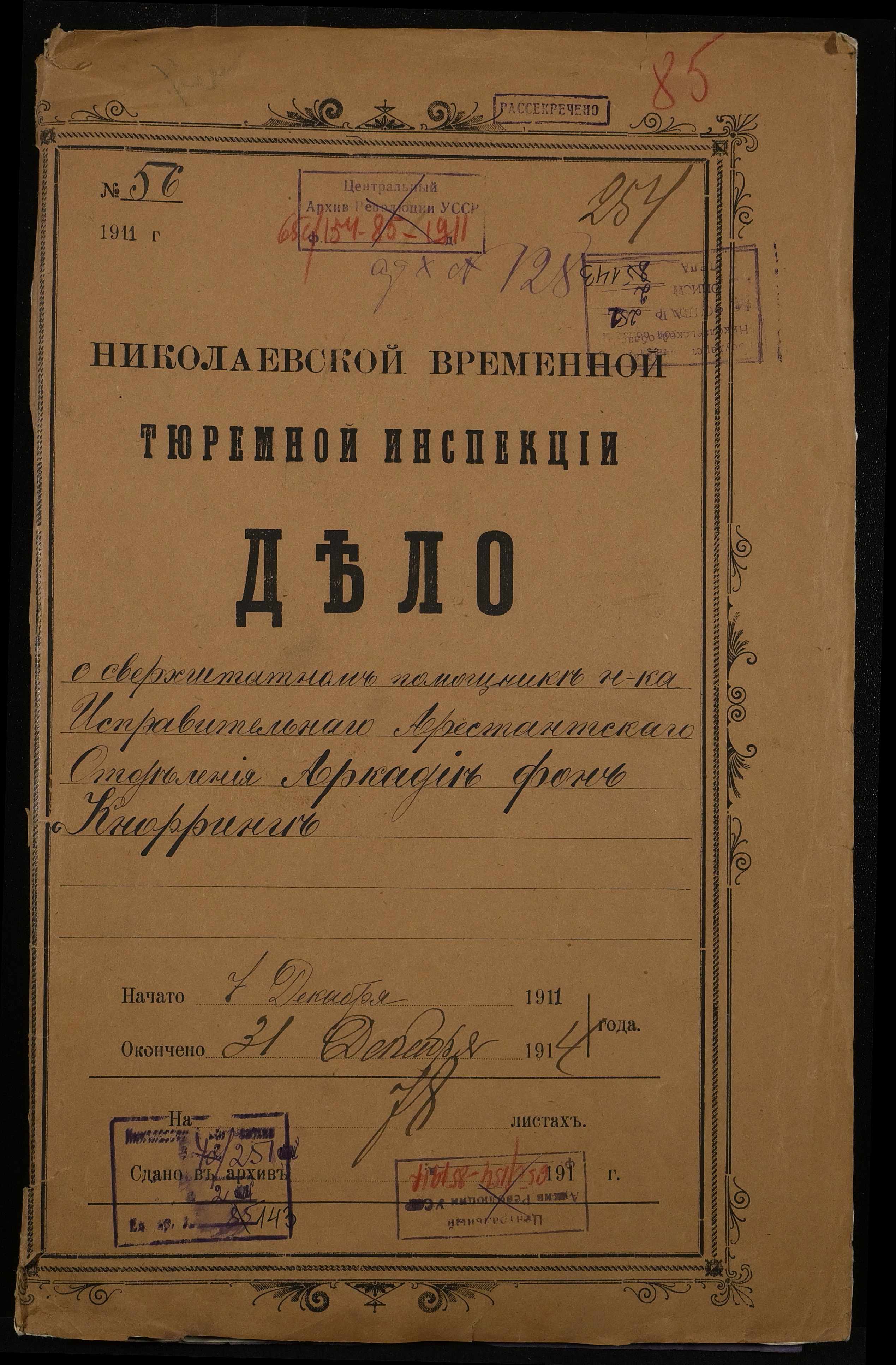 • • • • Справа № 143 Особова справа канцелярського службовця Миколаївської тюремної інспекції – позаштатного помічника начальника Миколаївського виправного арештантського відділення фон-Кнорринга А.О.
