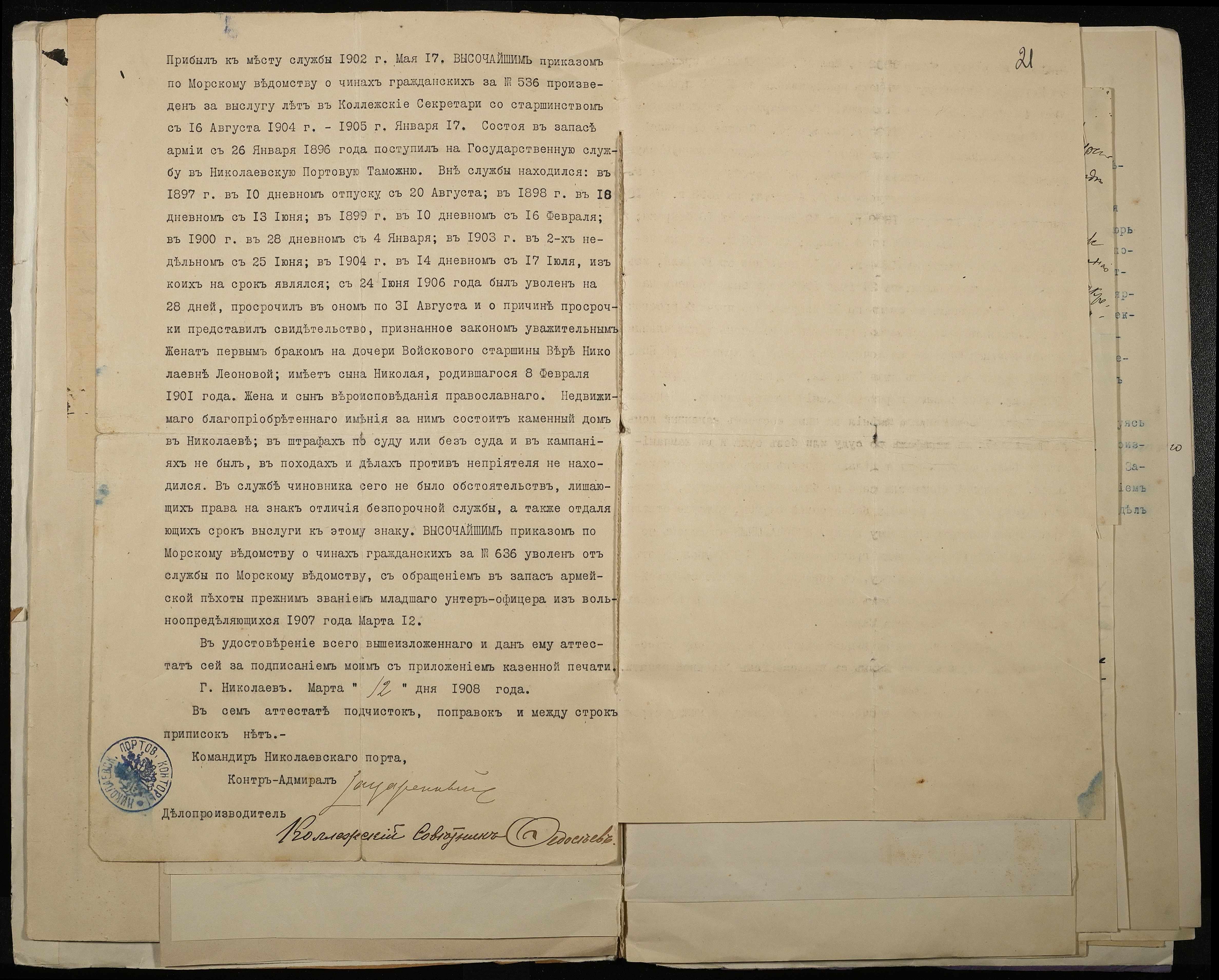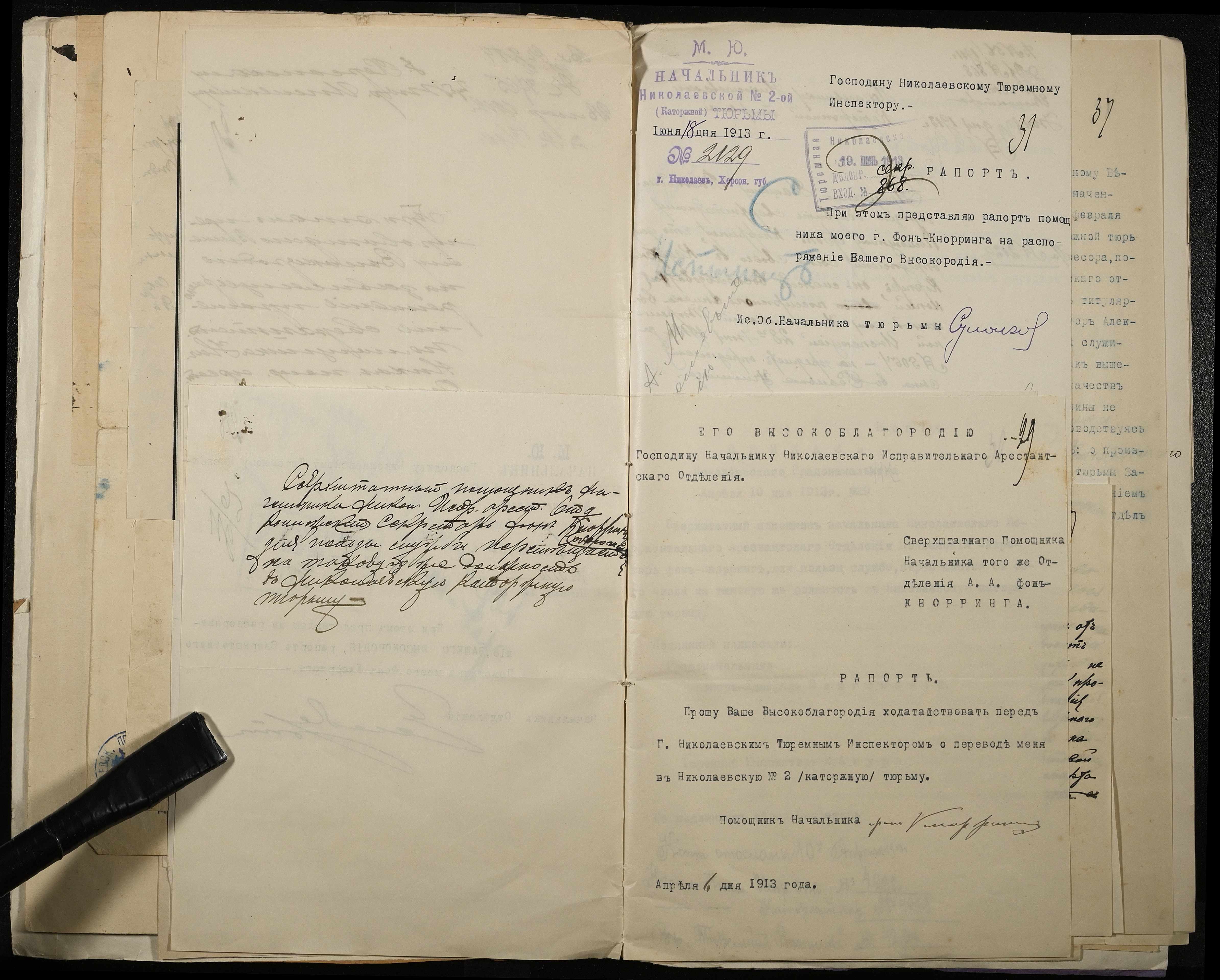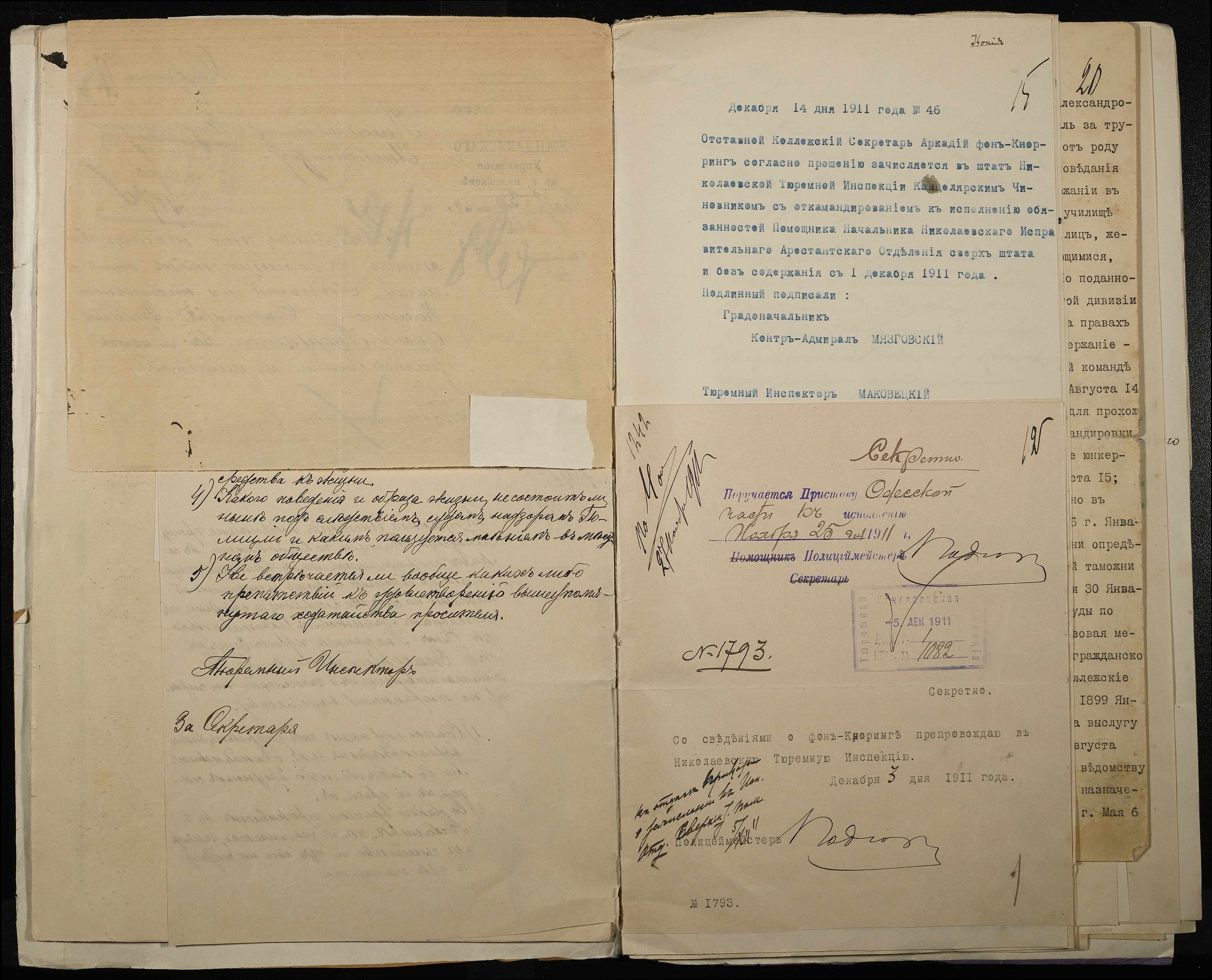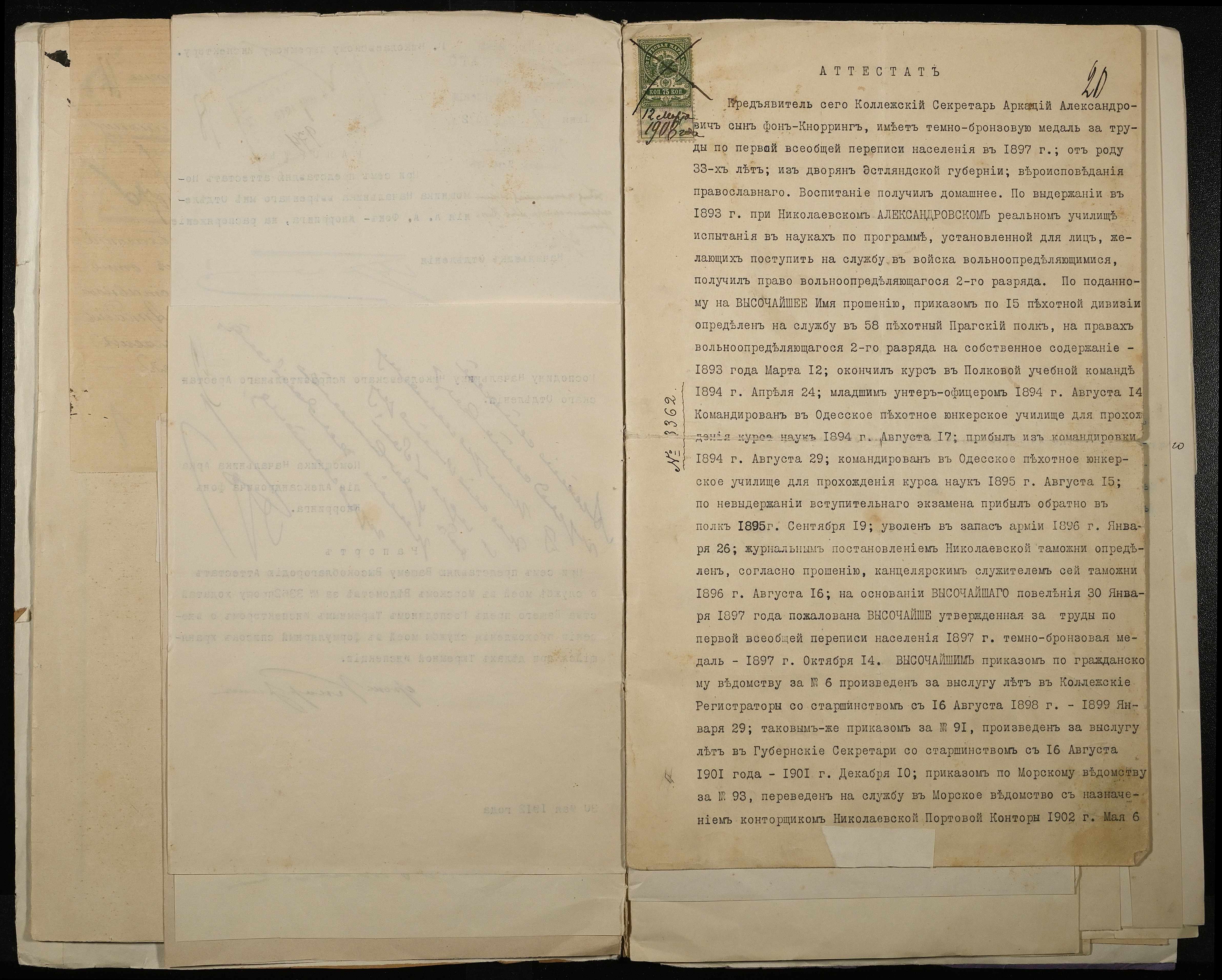 • • • • Справа № 143 Особова справа канцелярського службовця Миколаївської тюремної інспекції – позаштатного помічника начальника Миколаївського виправного арештантського відділення фон-Кнорринга А.О.
