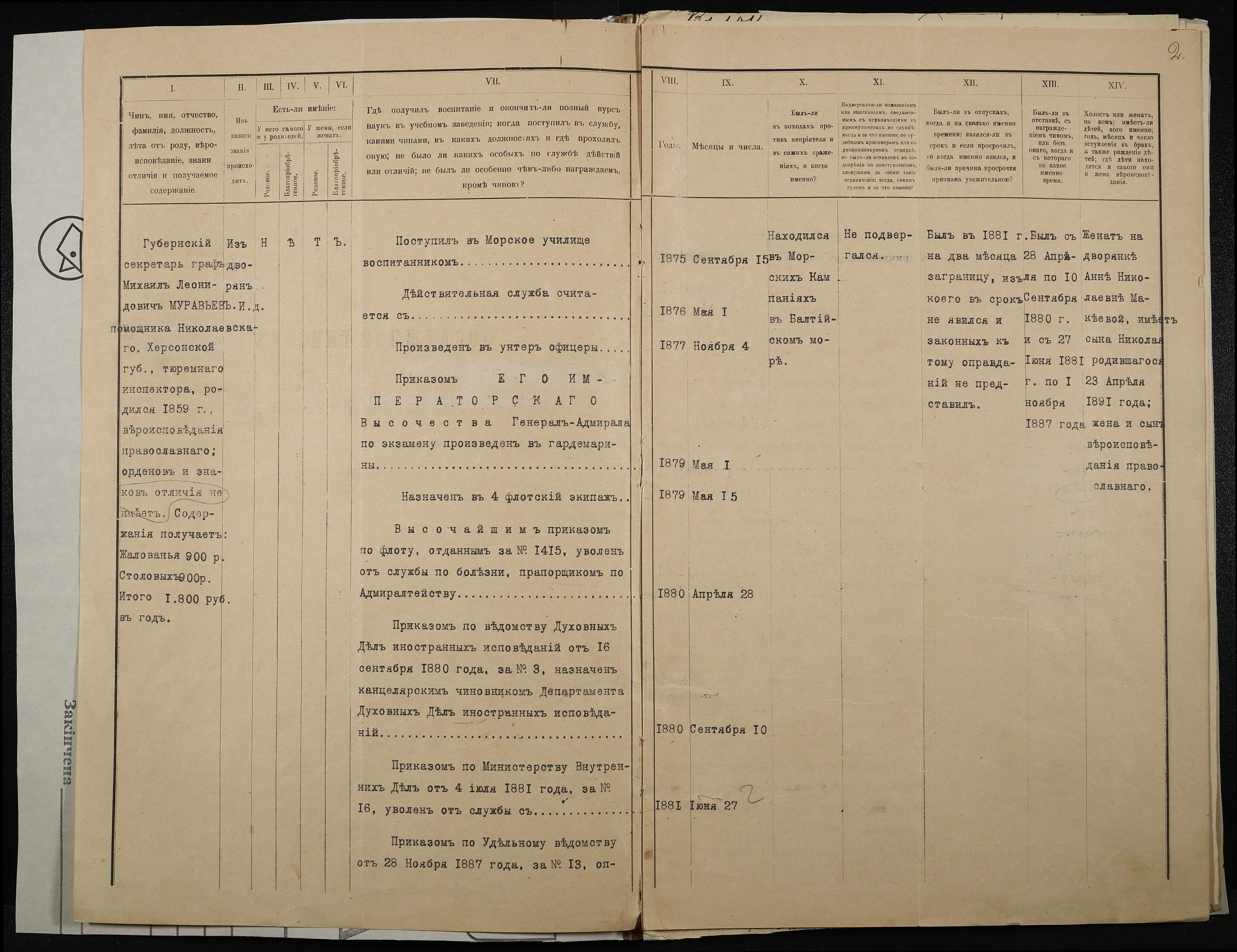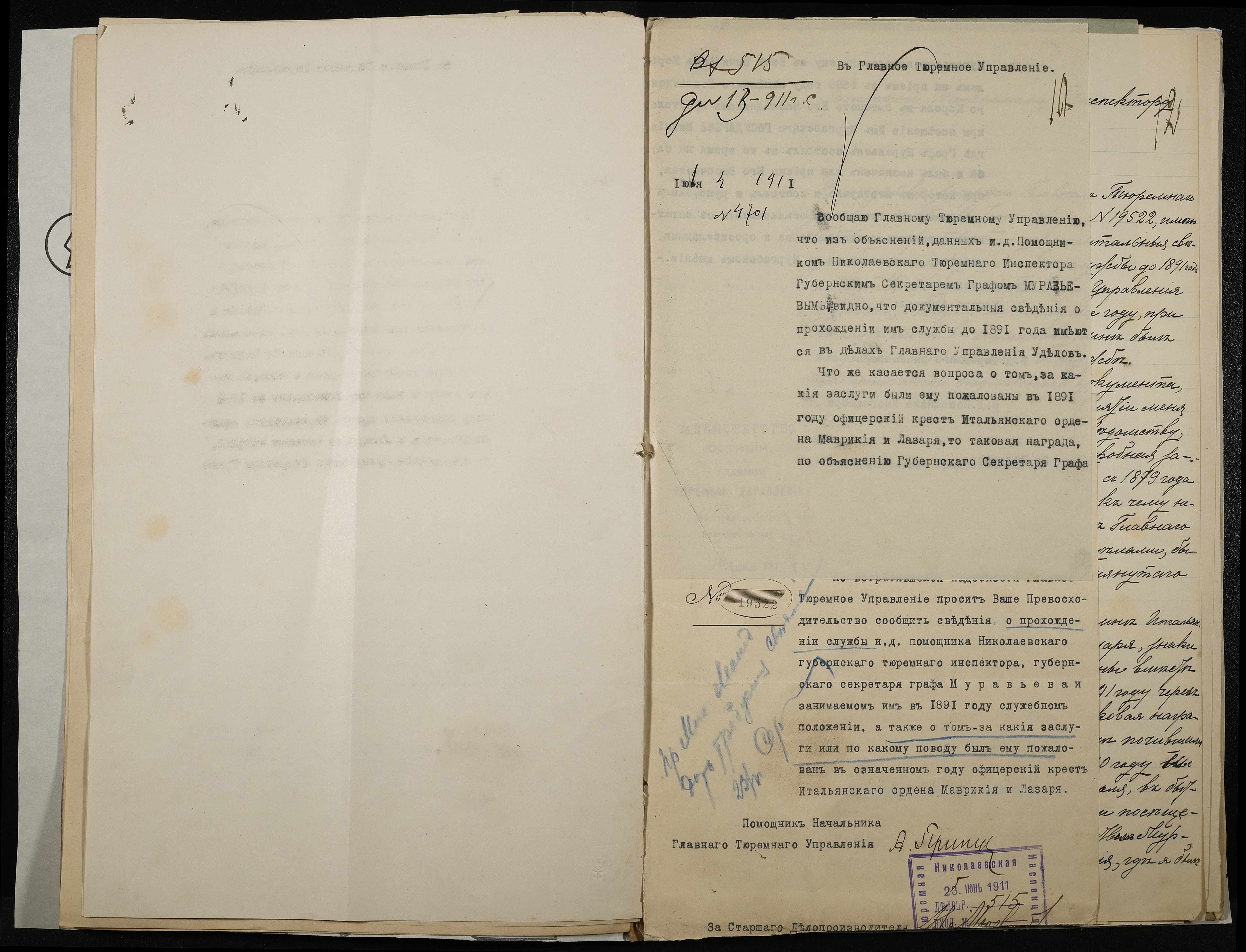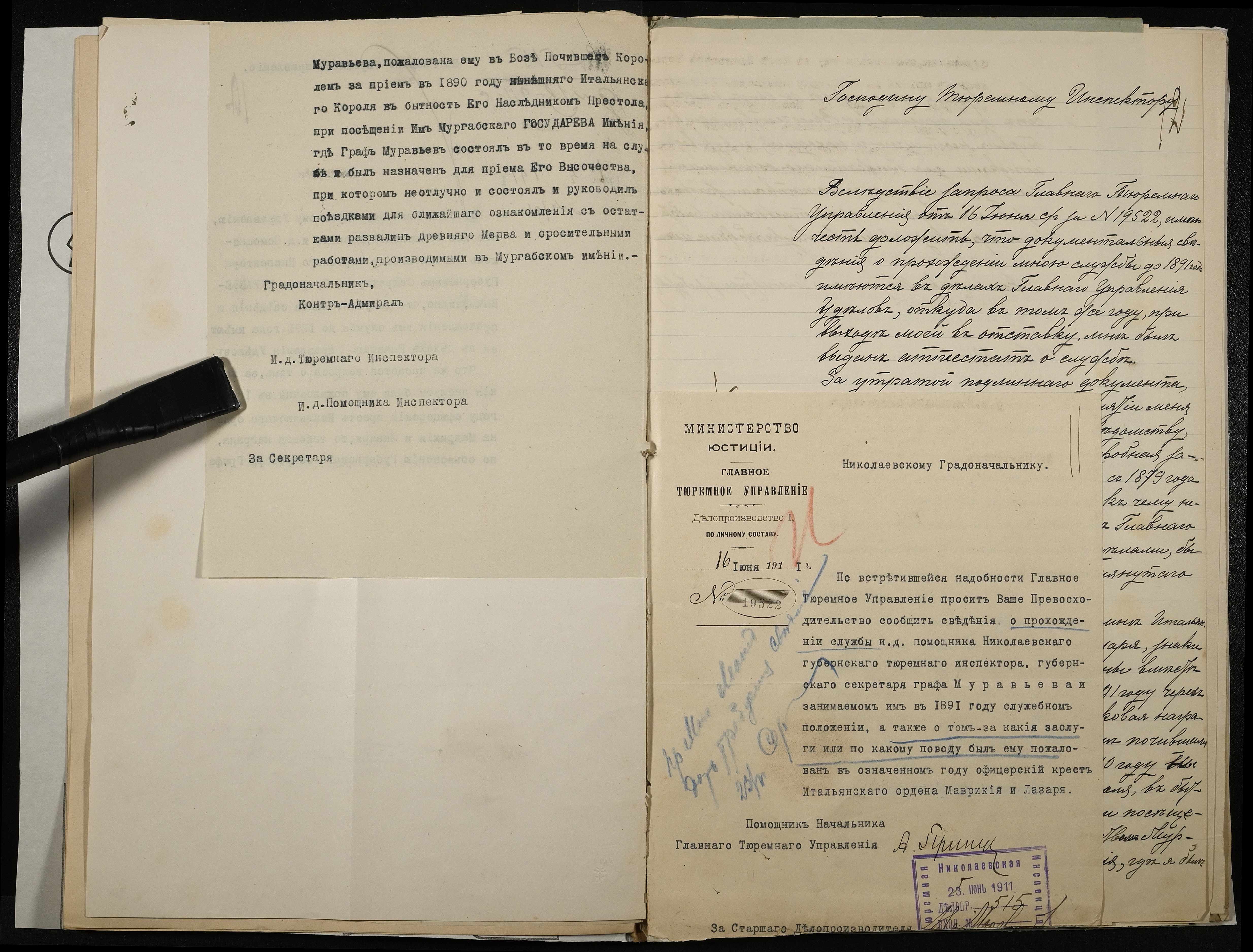 • • • • Справа № 156 Особова справа виконуючого обов’язки помічника миколаївського тюремного інспектора Муравйова М.Л.