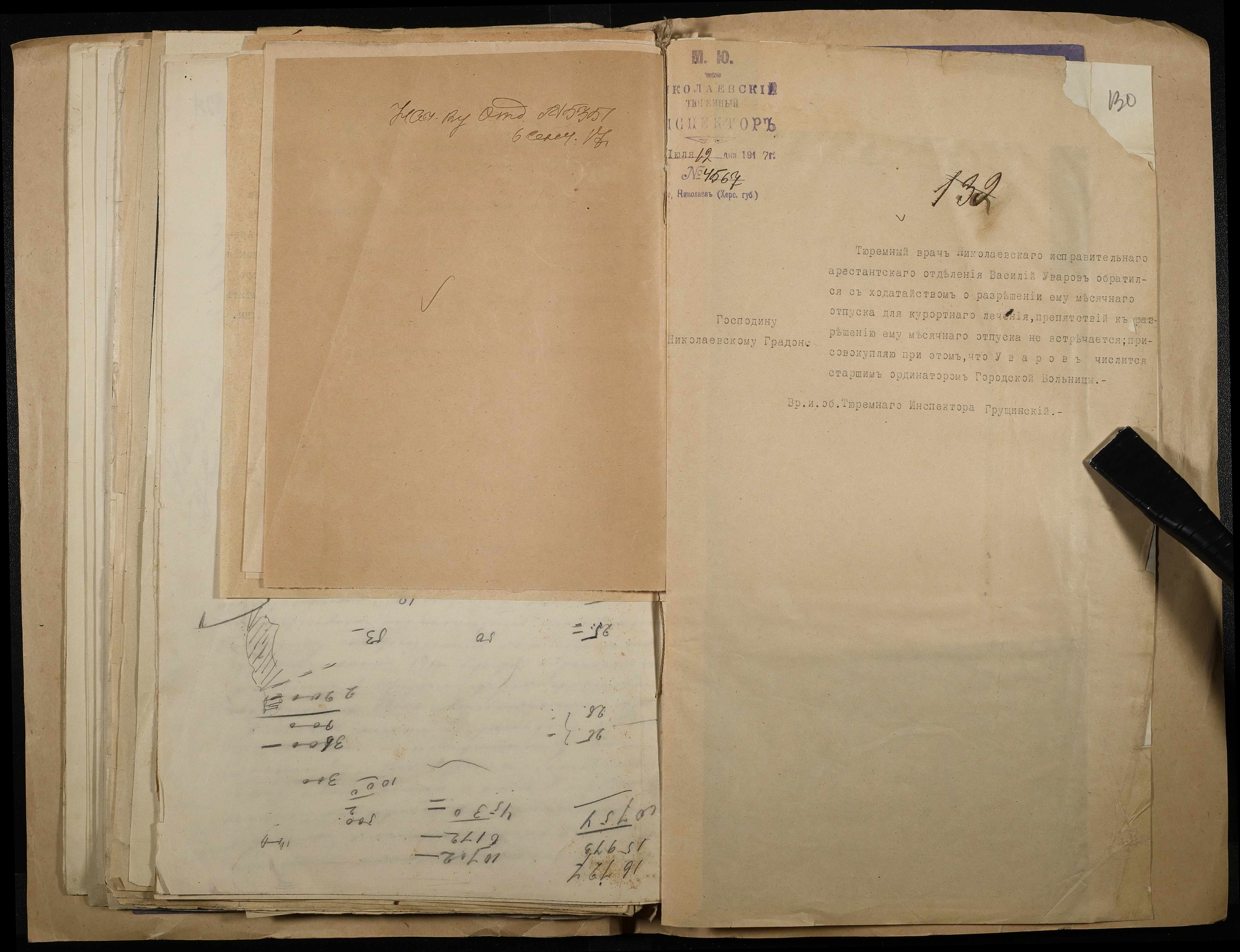 • • • • Справа № 168 Особова справа лікаря Миколаївської міської лікарні і Миколаївського виправного арештантського відділення Уварова В.С.