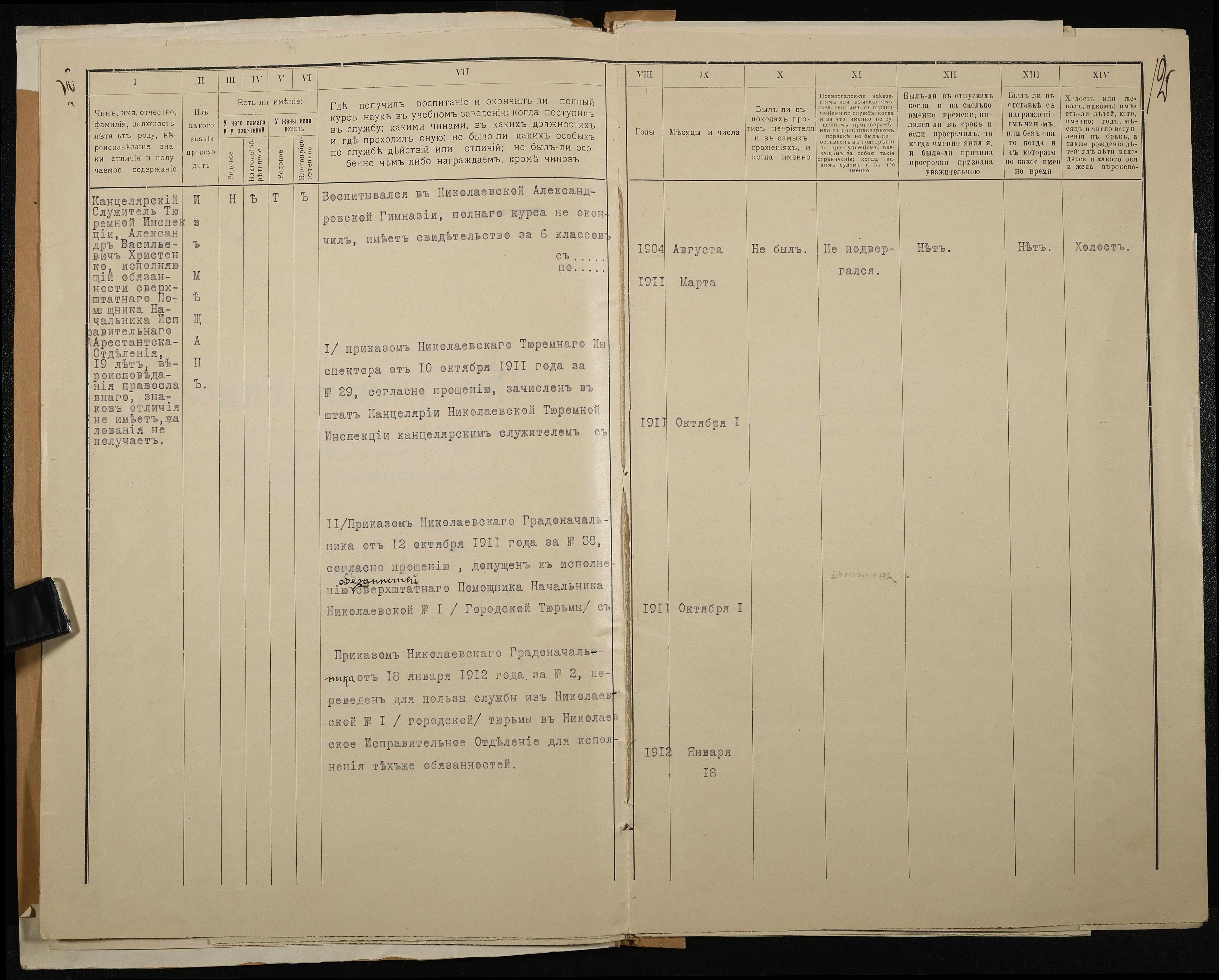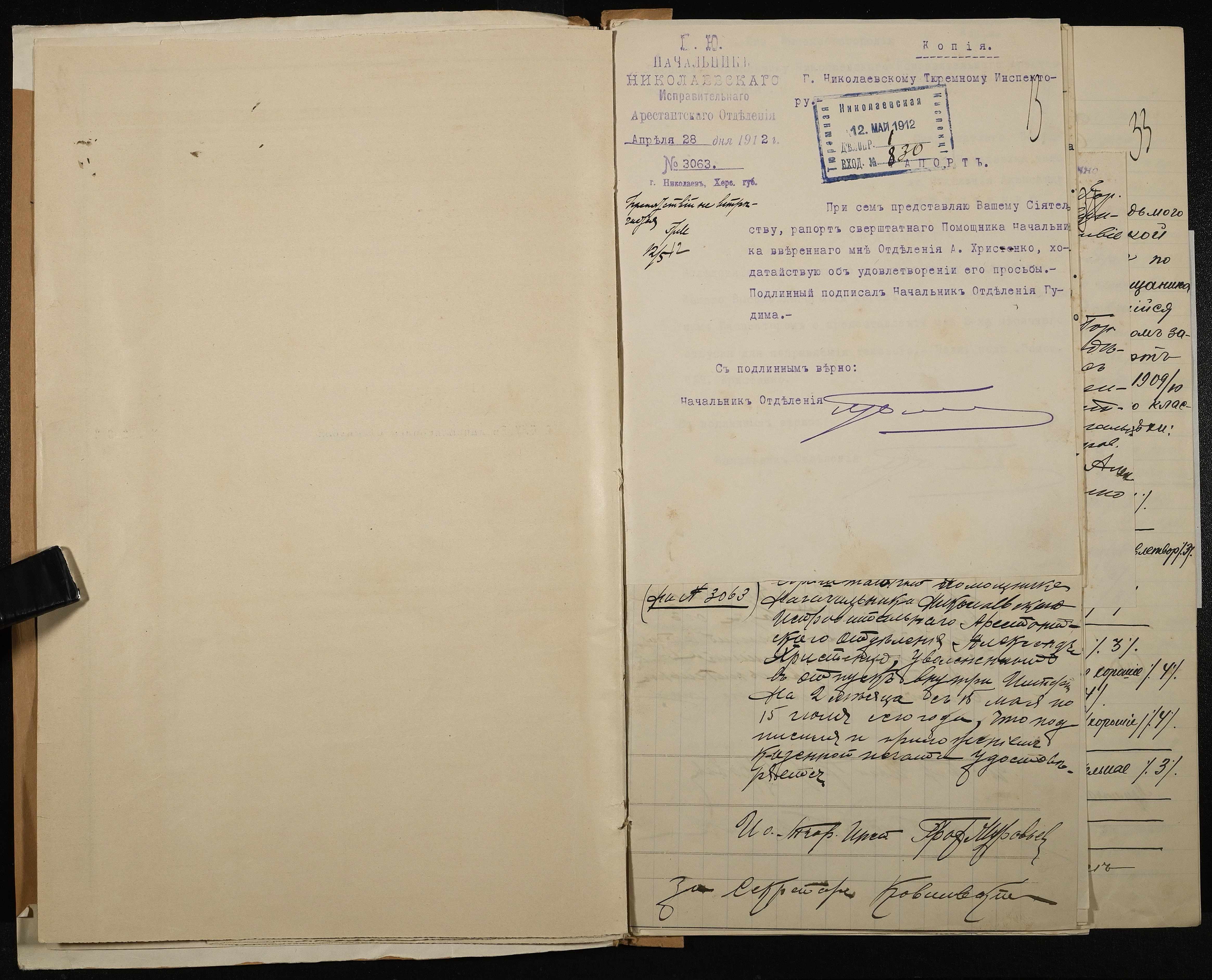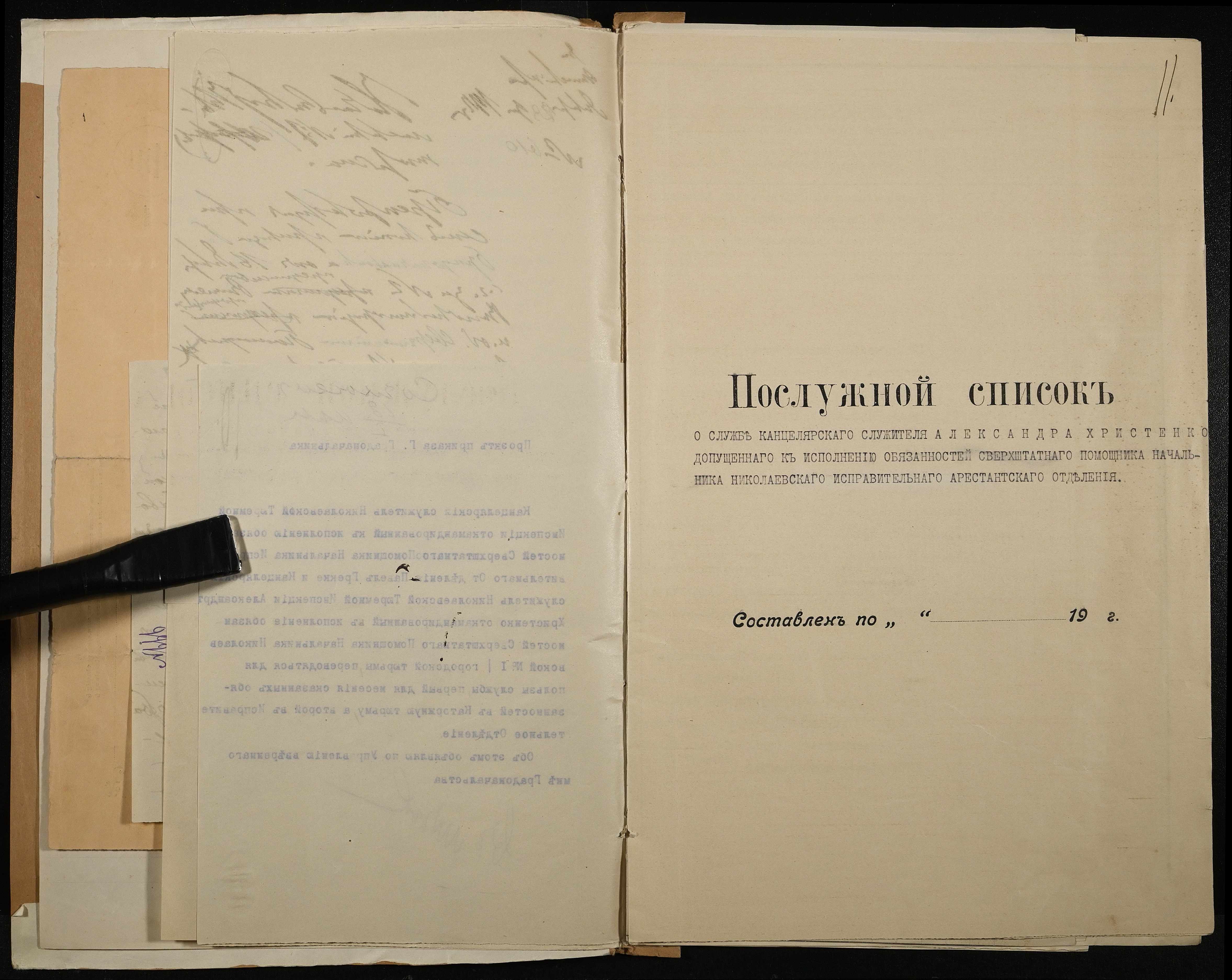 • • • • Справа № 169 Особова справа канцелярського службовця Миколаївської тюремної інспекції – позаштатного помічника начальника миколаївського виправного арештантського відділення Христенка О.В.