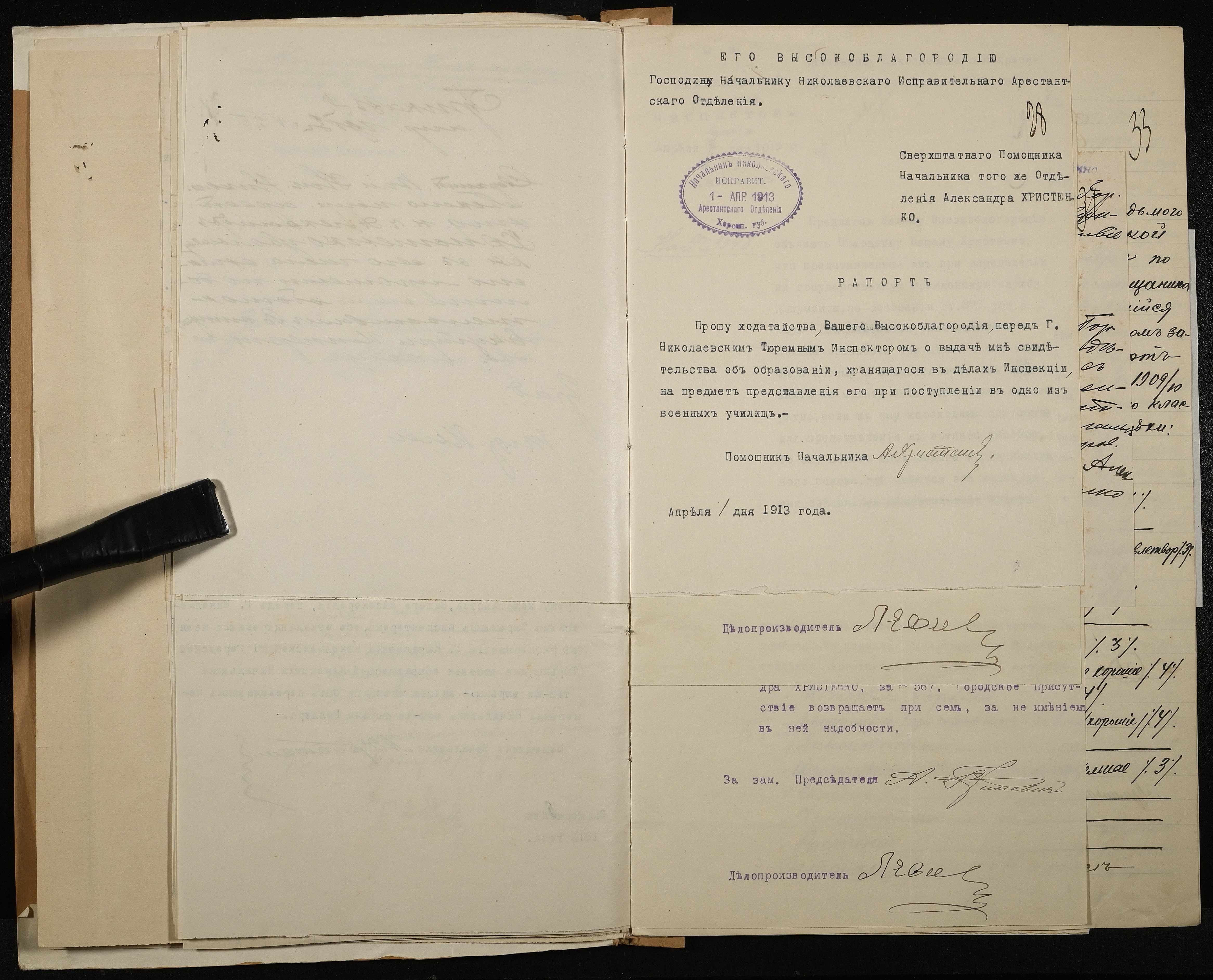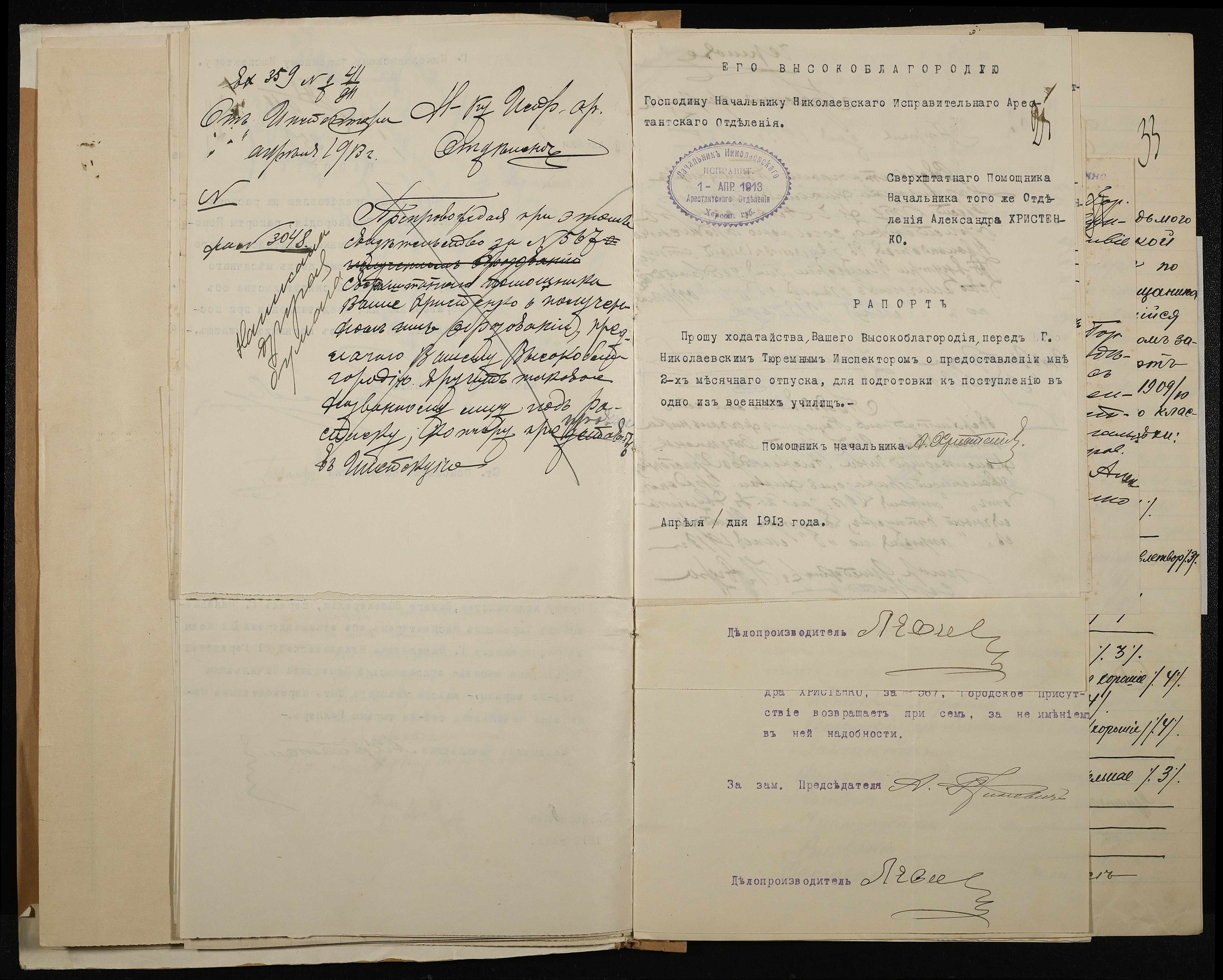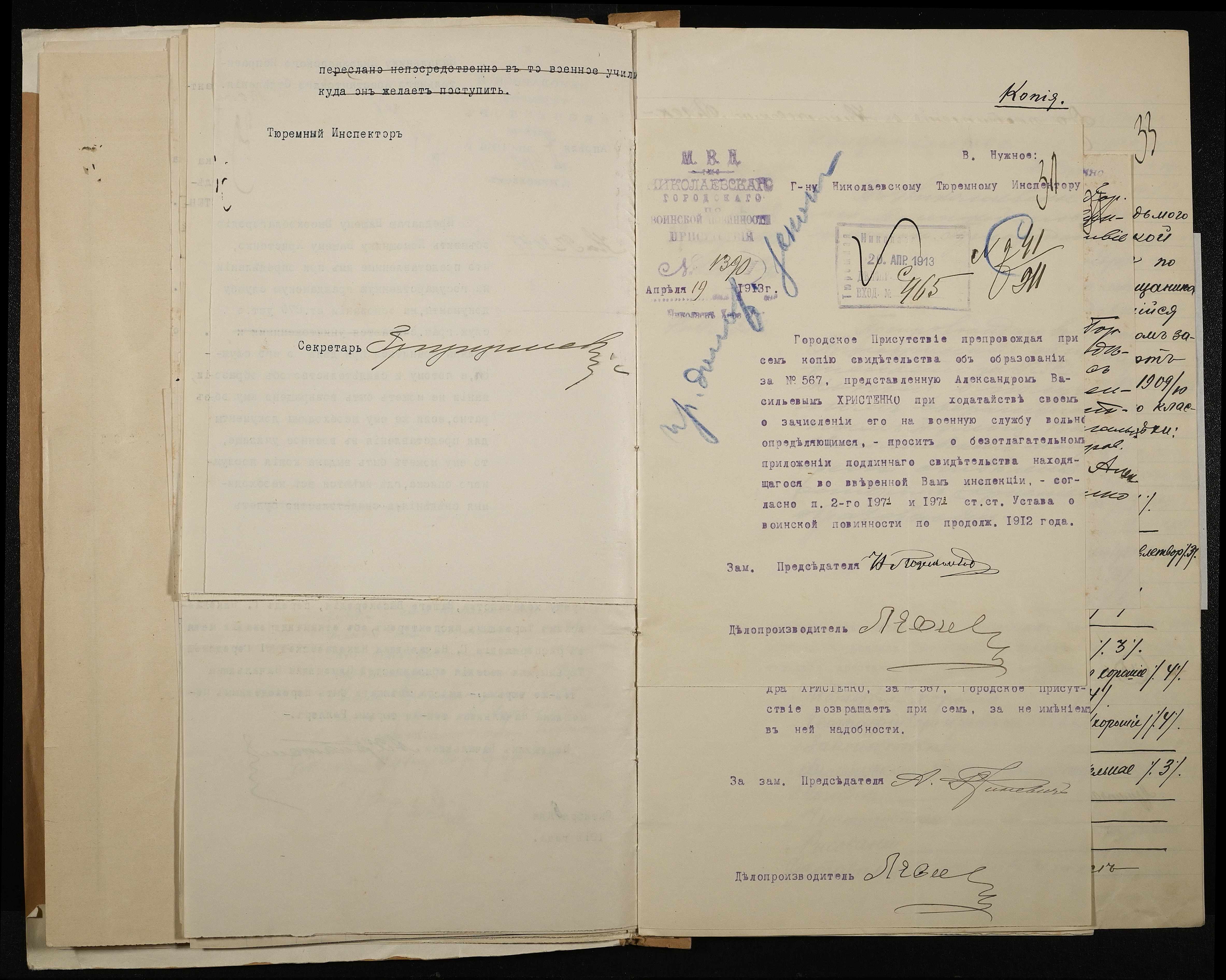 • • • • Справа № 169 Особова справа канцелярського службовця Миколаївської тюремної інспекції – позаштатного помічника начальника миколаївського виправного арештантського відділення Христенка О.В.