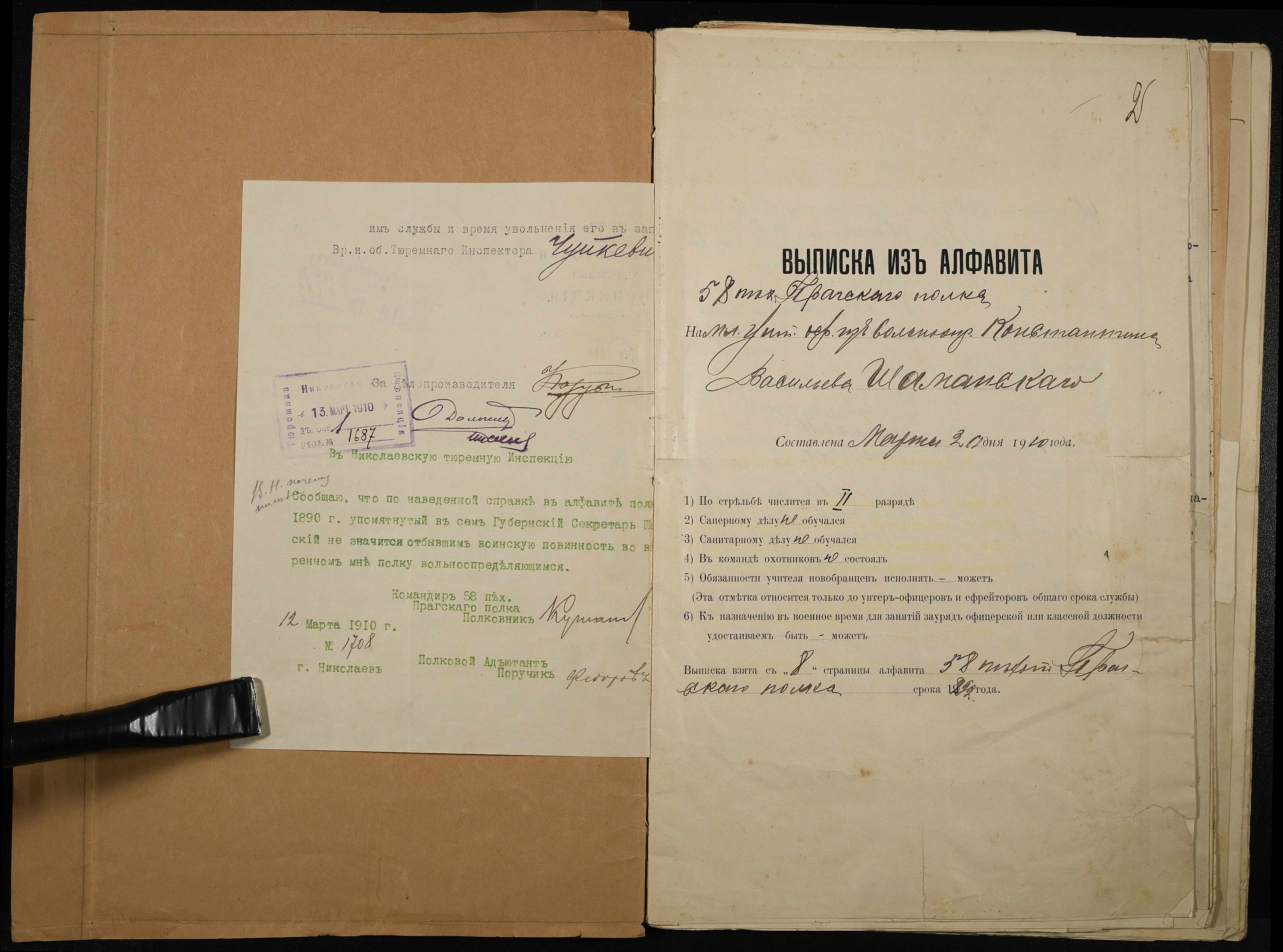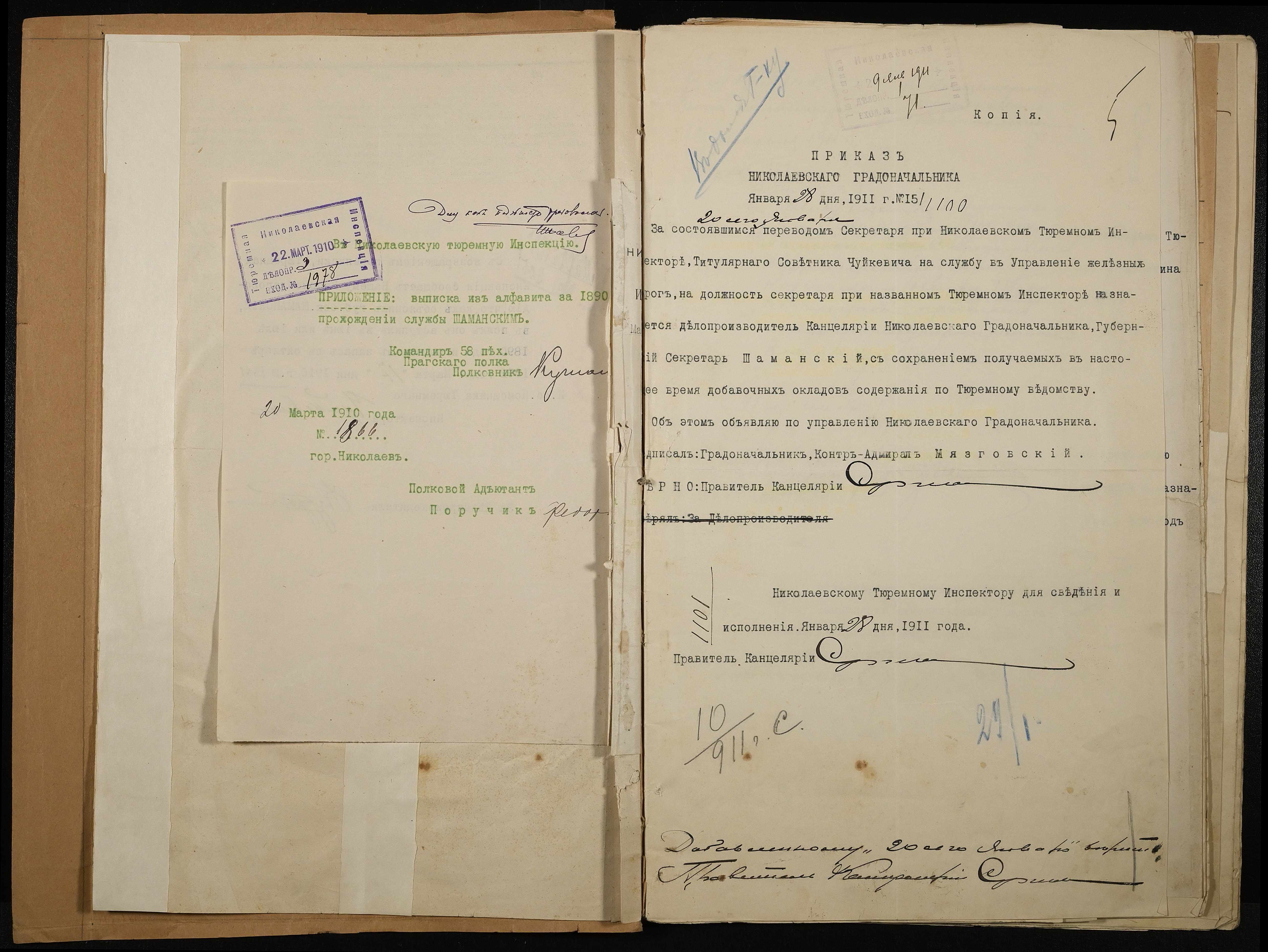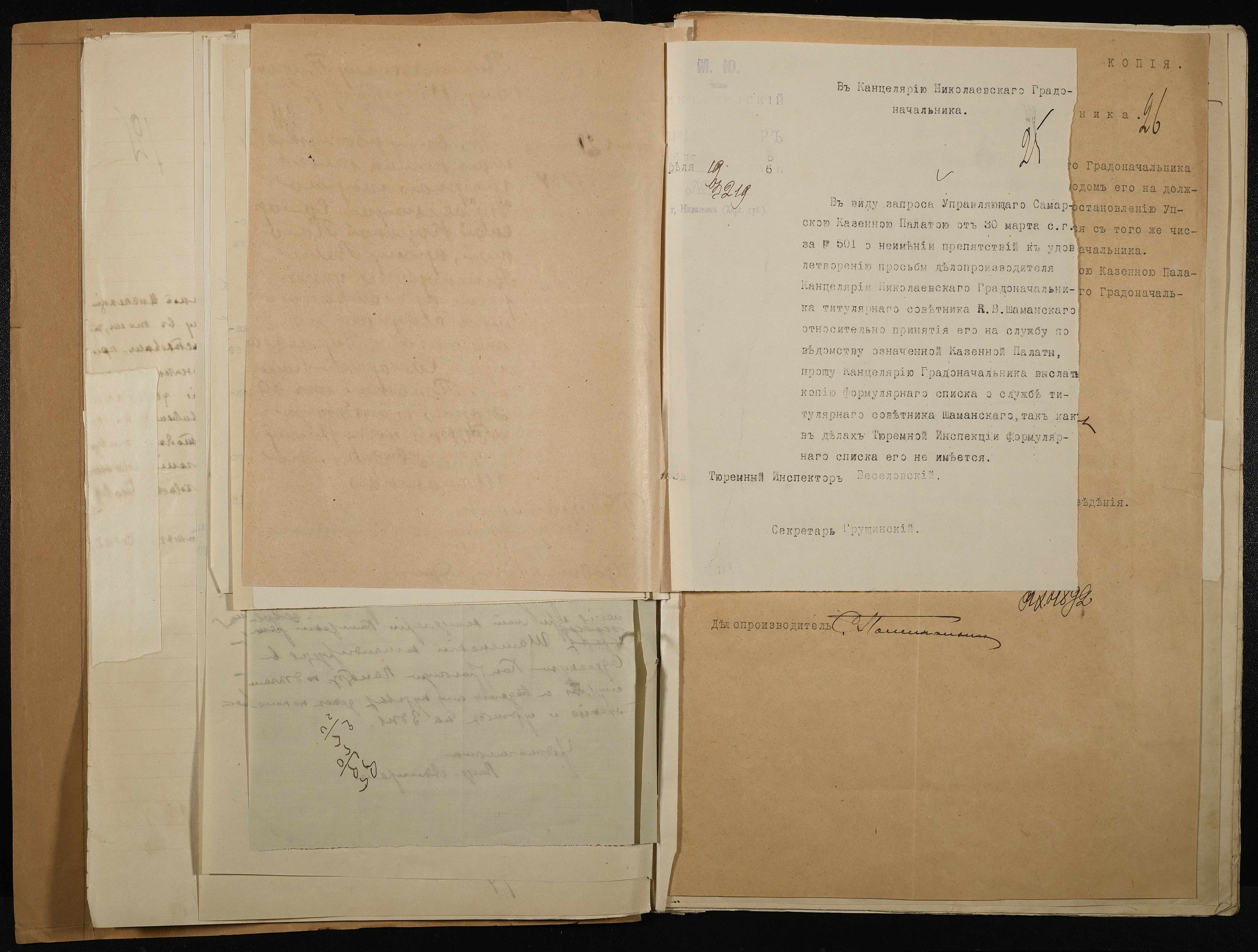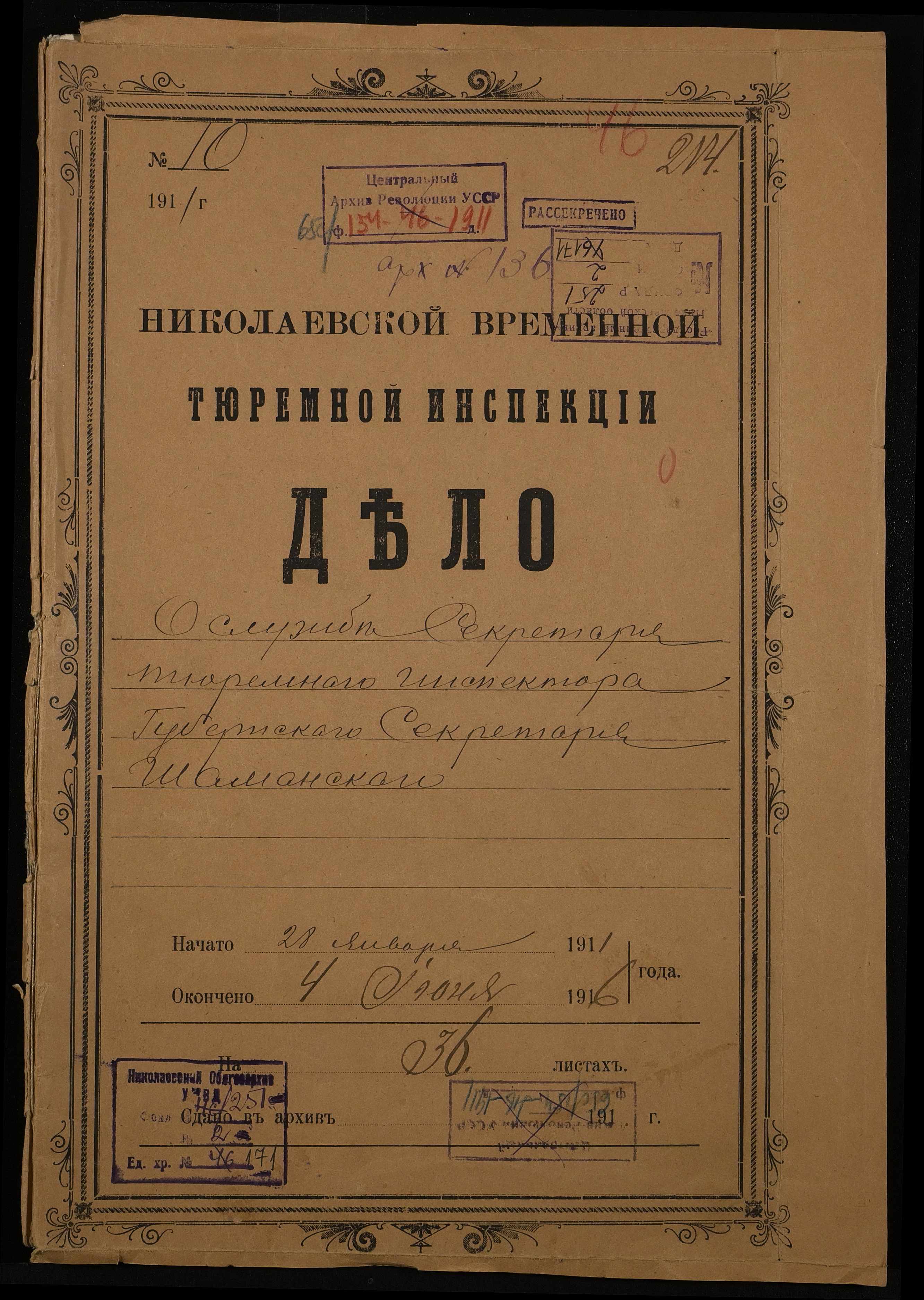 • • • • Справа № 171 Особова справа службовця Канцелярії Миколаївського градоначальника, секретаря миколаївського тюремного інспектора Шаманського К.В.
