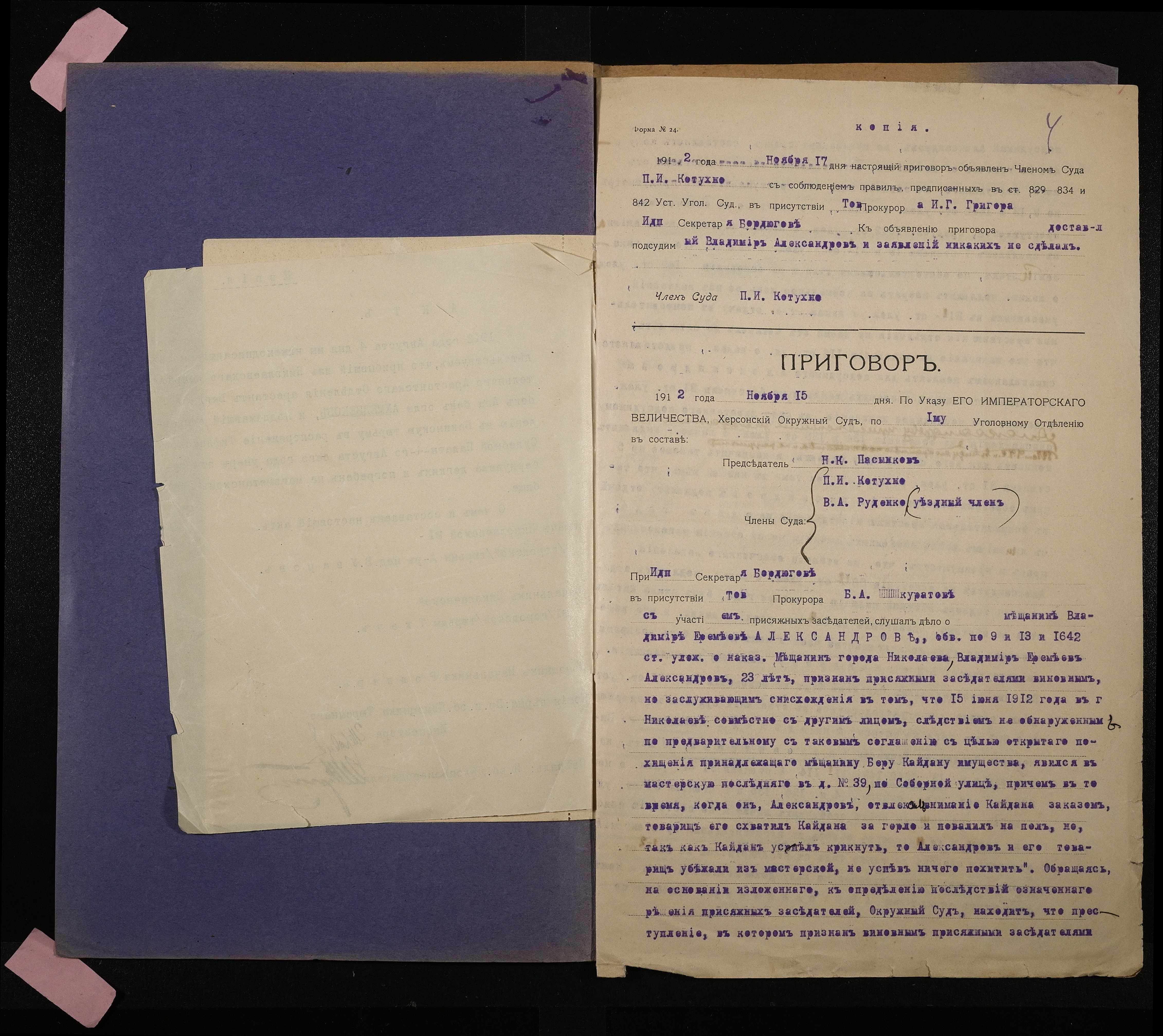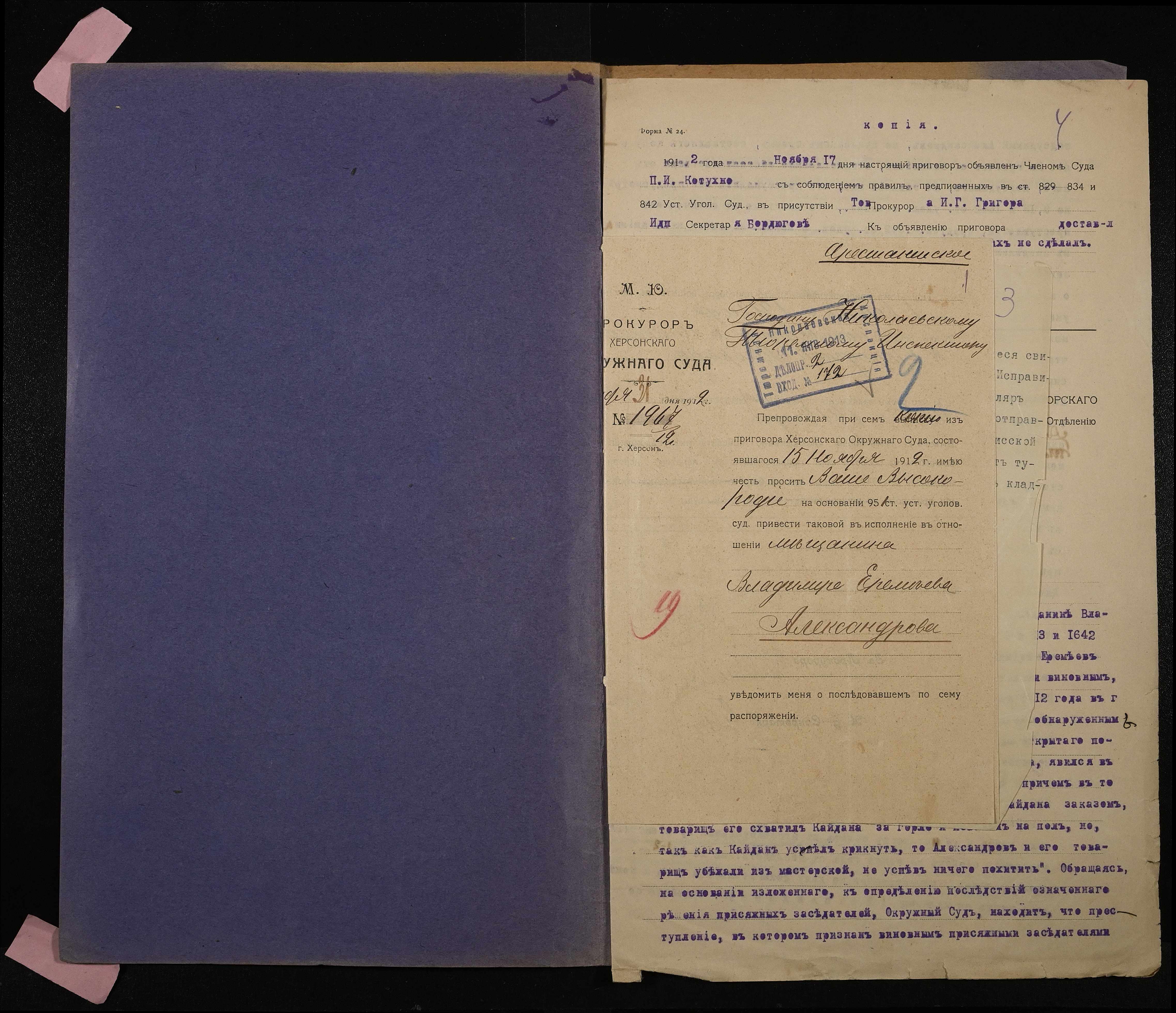• • • • Справа № 179 Александров В.Є.