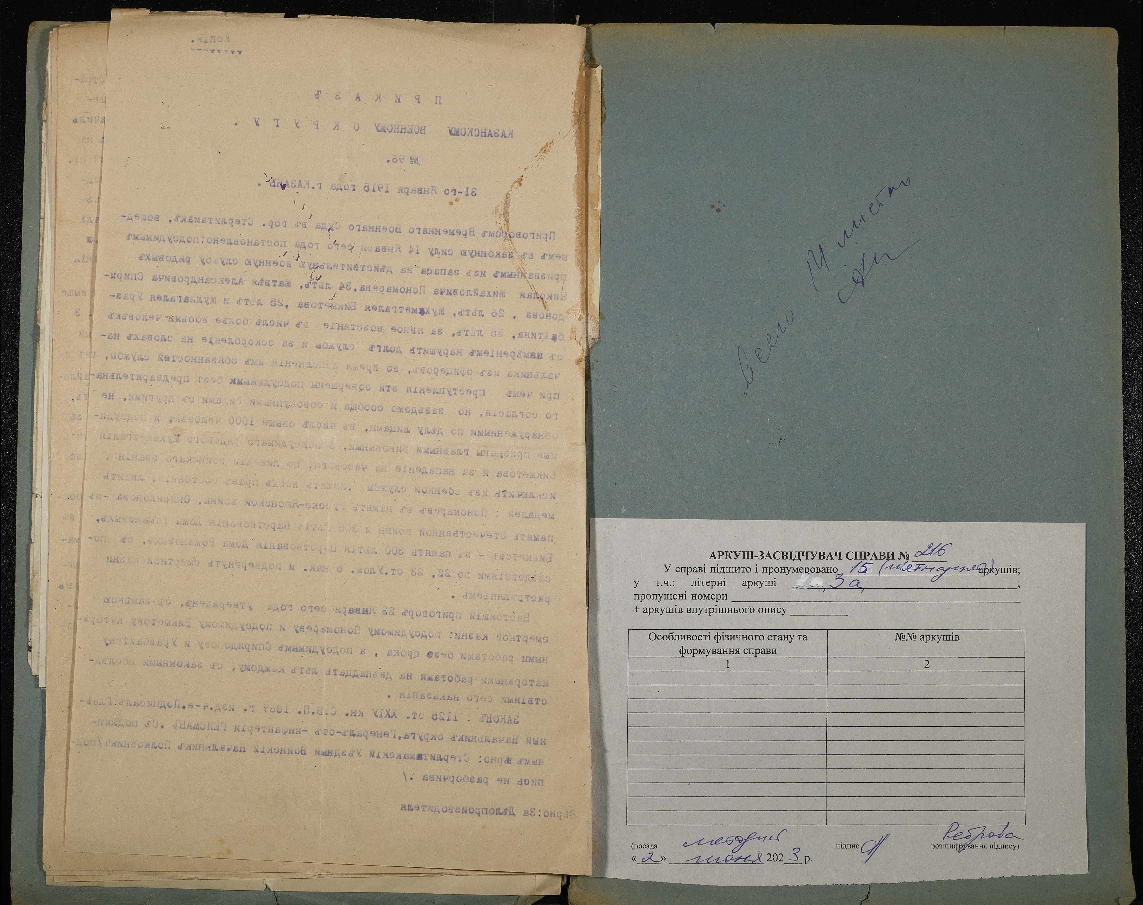 Фонд 251 / Опис 2 / Справа 216
