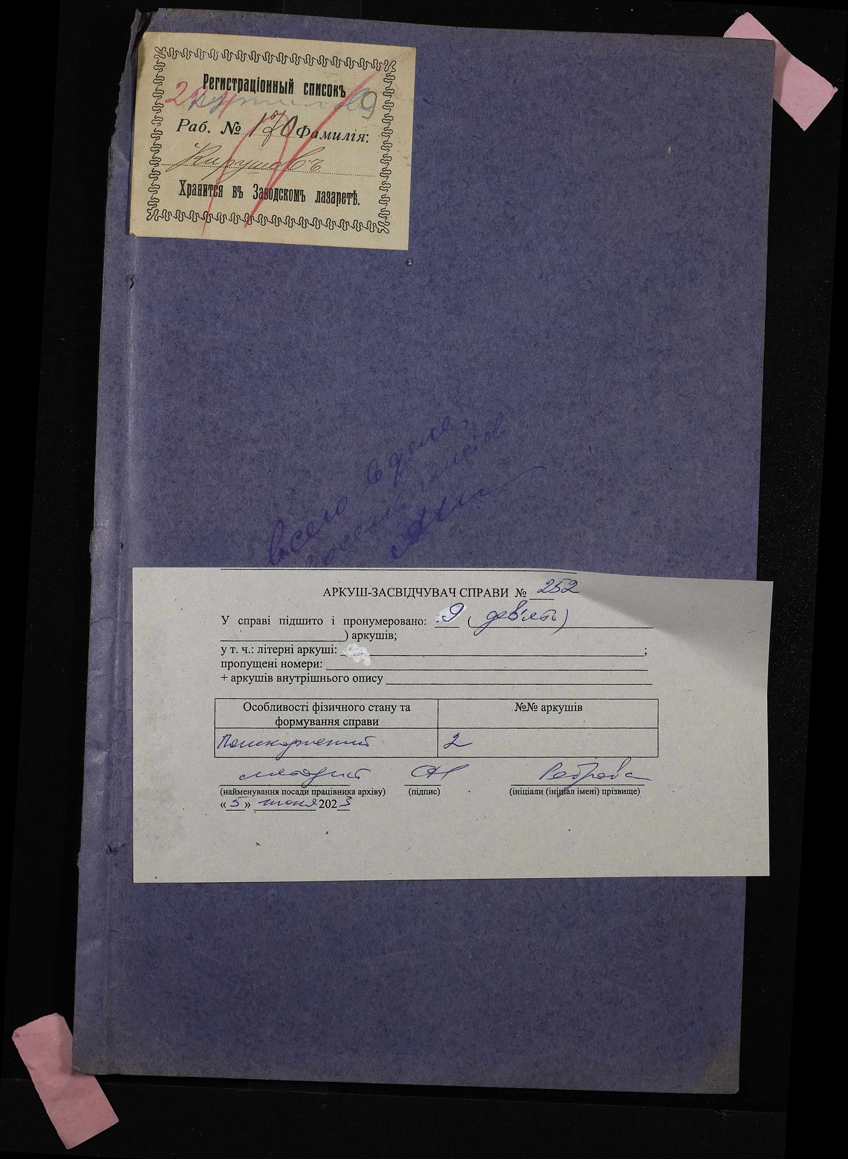 Фонд 251 / Опис 2 / Справа 252