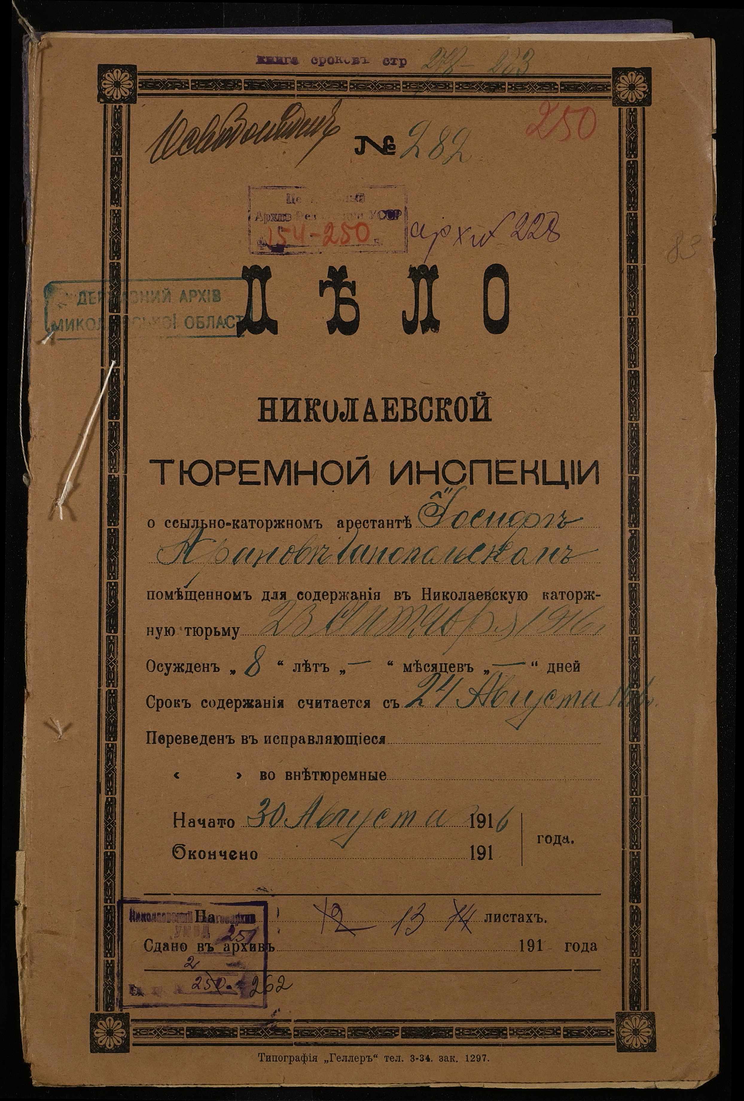 ◦ ◦ Фонд № 251 “Миколаївська тюремна інспекція”