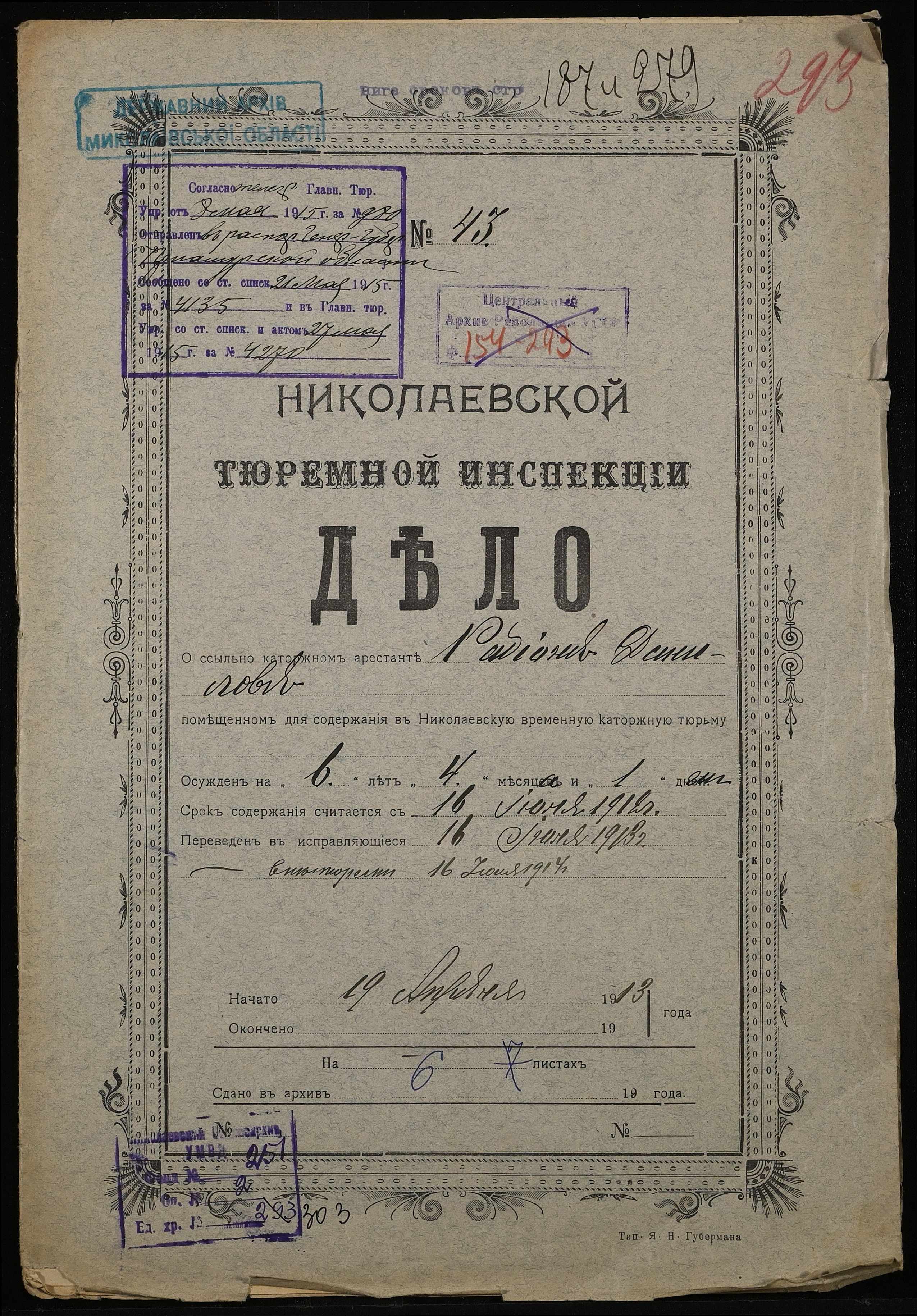 ◦ ◦ Фонд № 251 “Миколаївська тюремна інспекція”