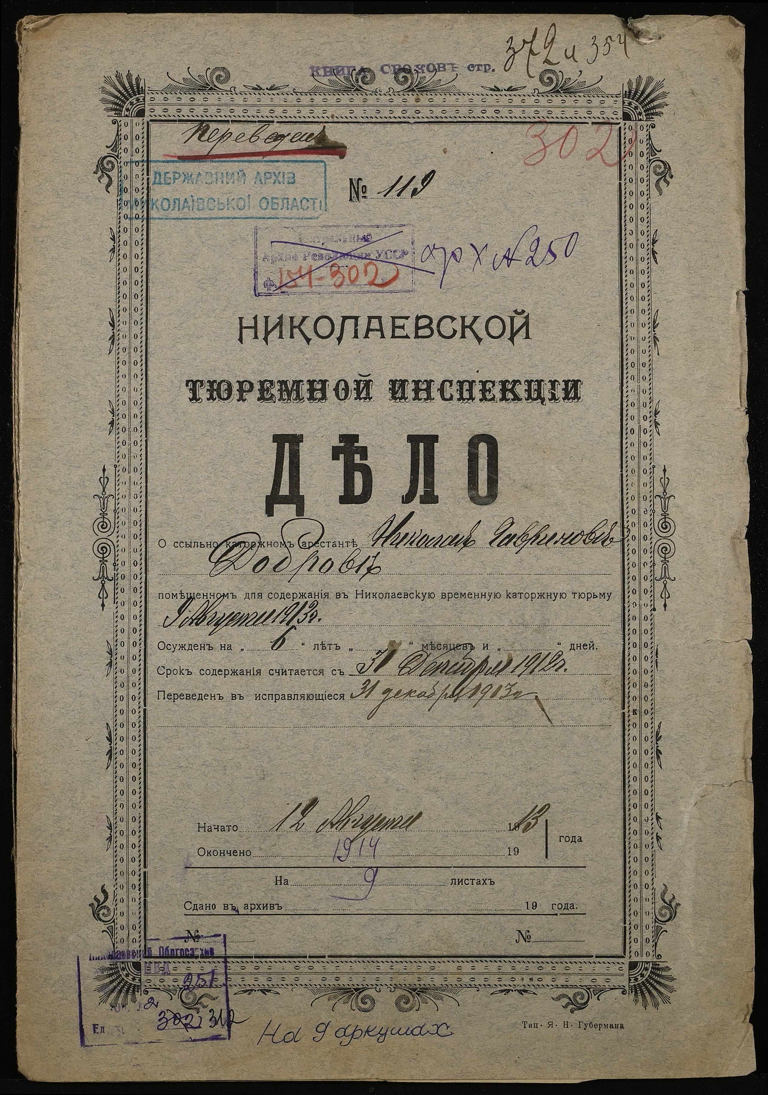 ◦ ◦ Фонд № 251 “Миколаївська тюремна інспекція”