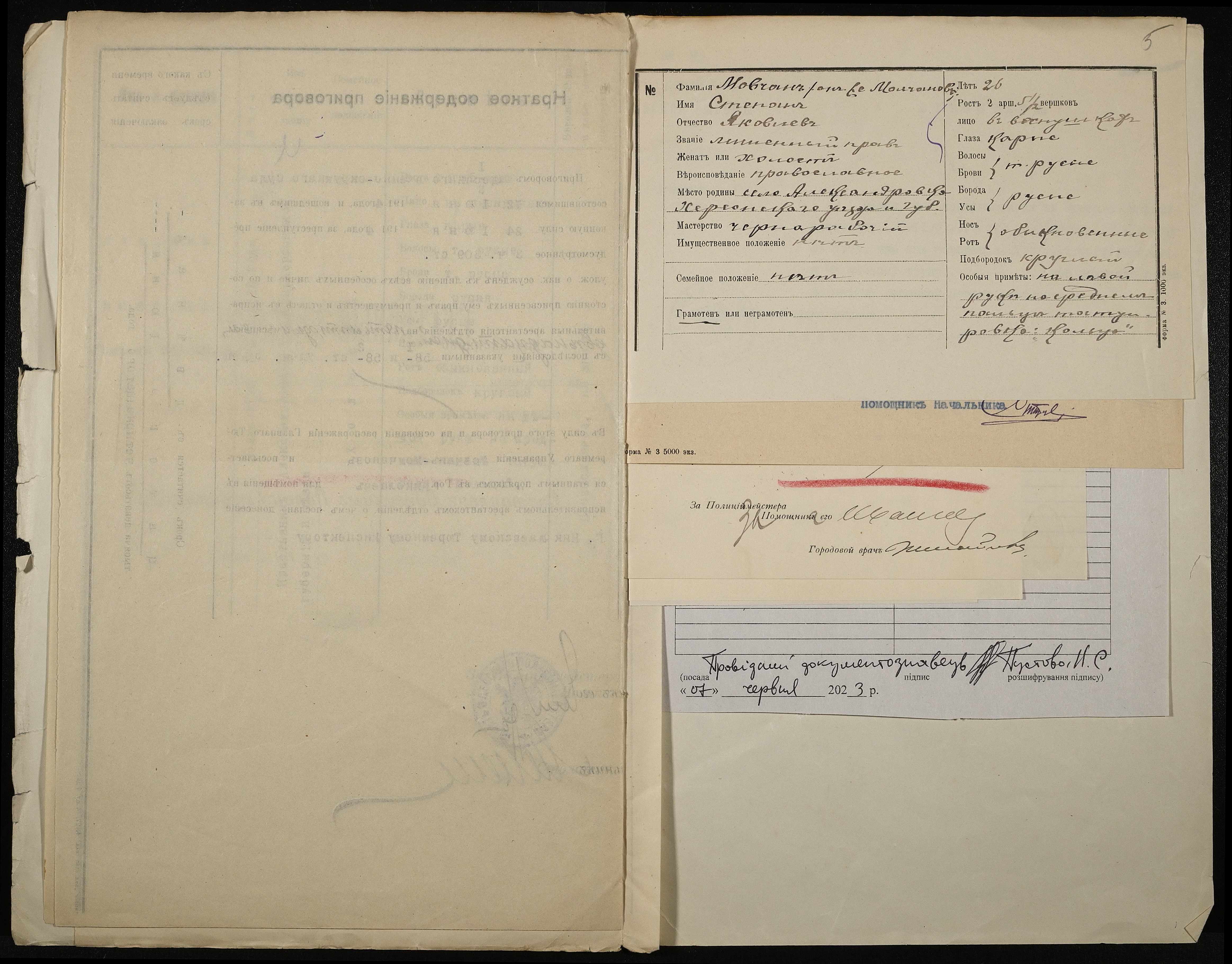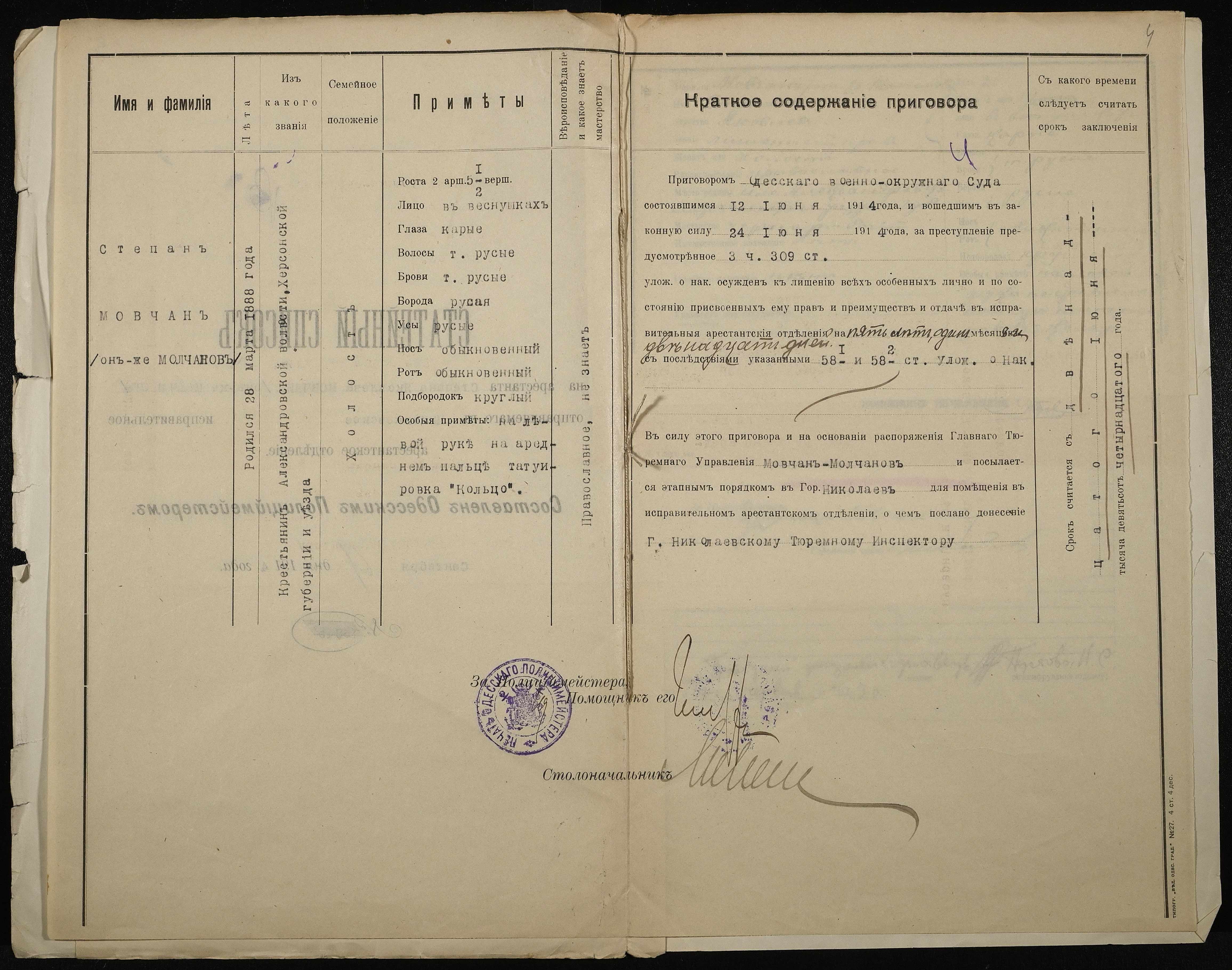 • • • • Справа № 474 Мовчан С.Я. (він же Молчанов)