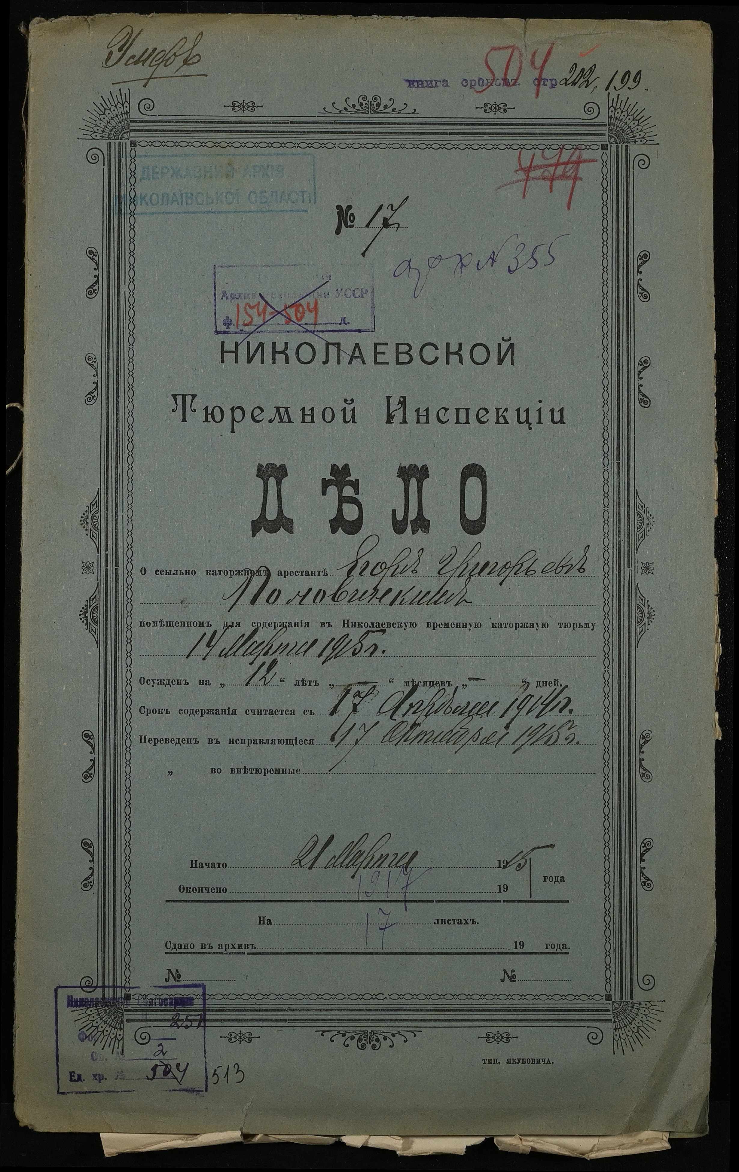 ◦ ◦ Фонд № 251 “Миколаївська тюремна інспекція”