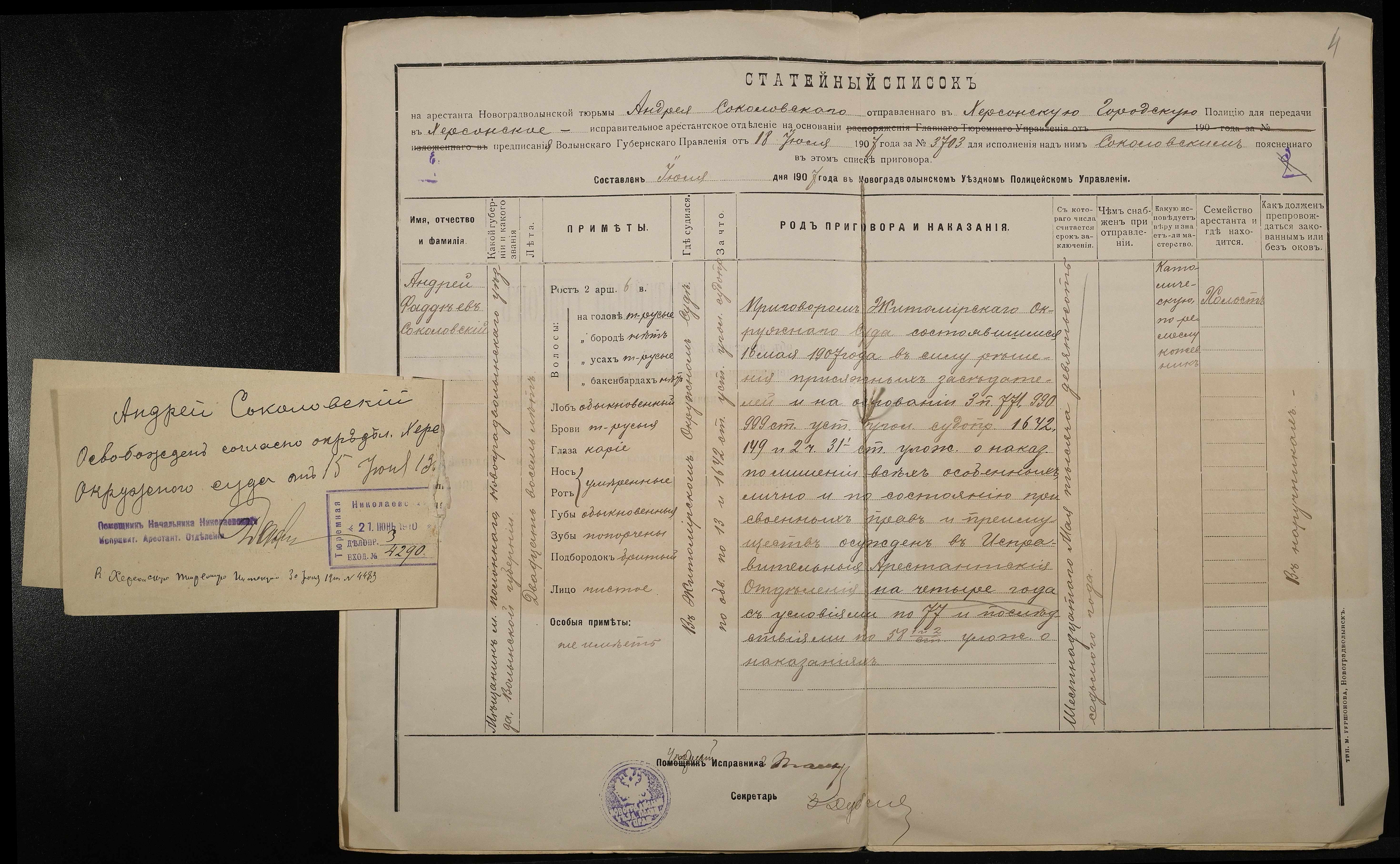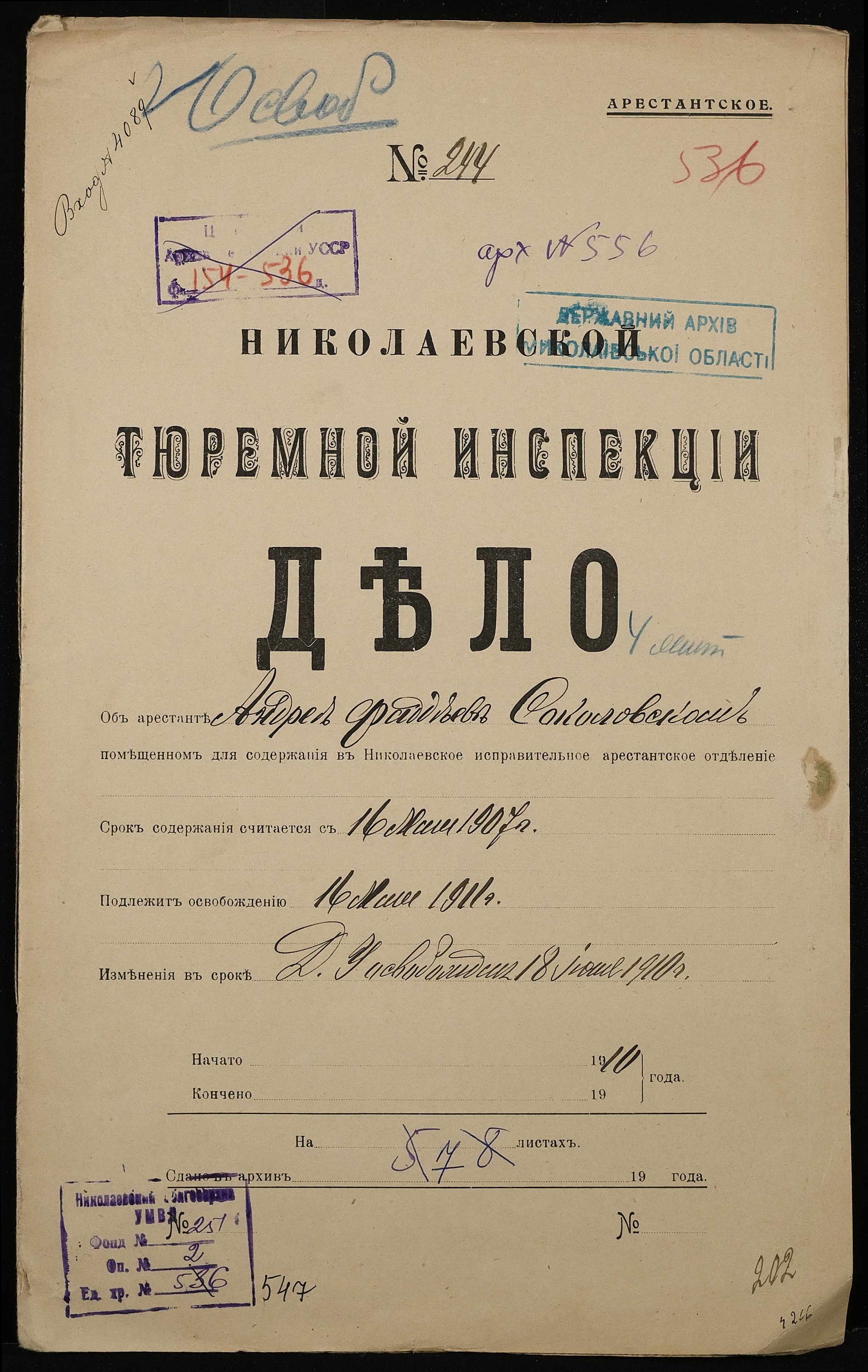 • • • • Справа № 547 Соколовський А.Ф.