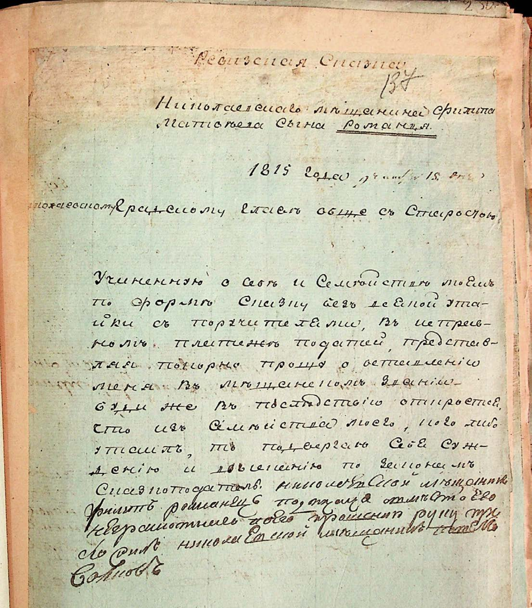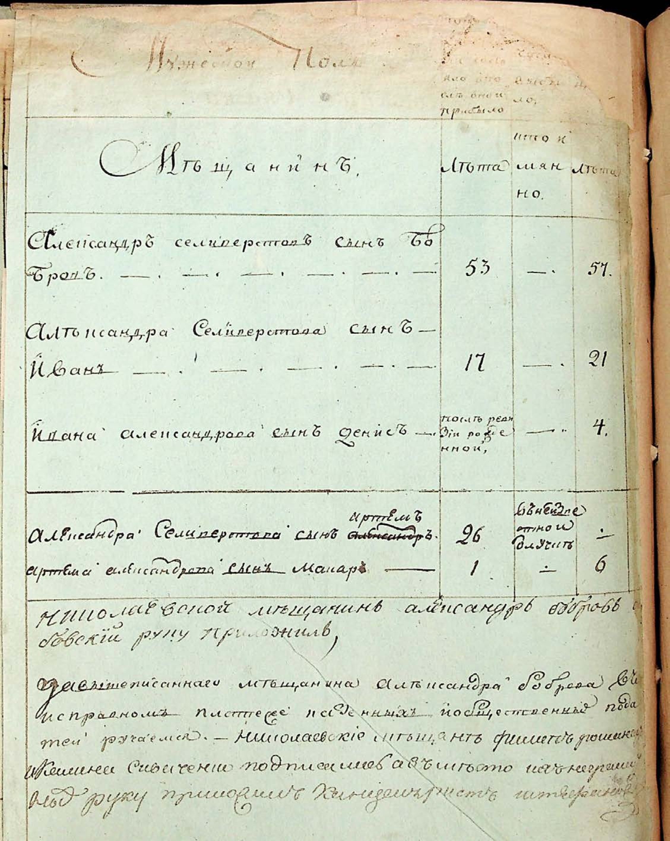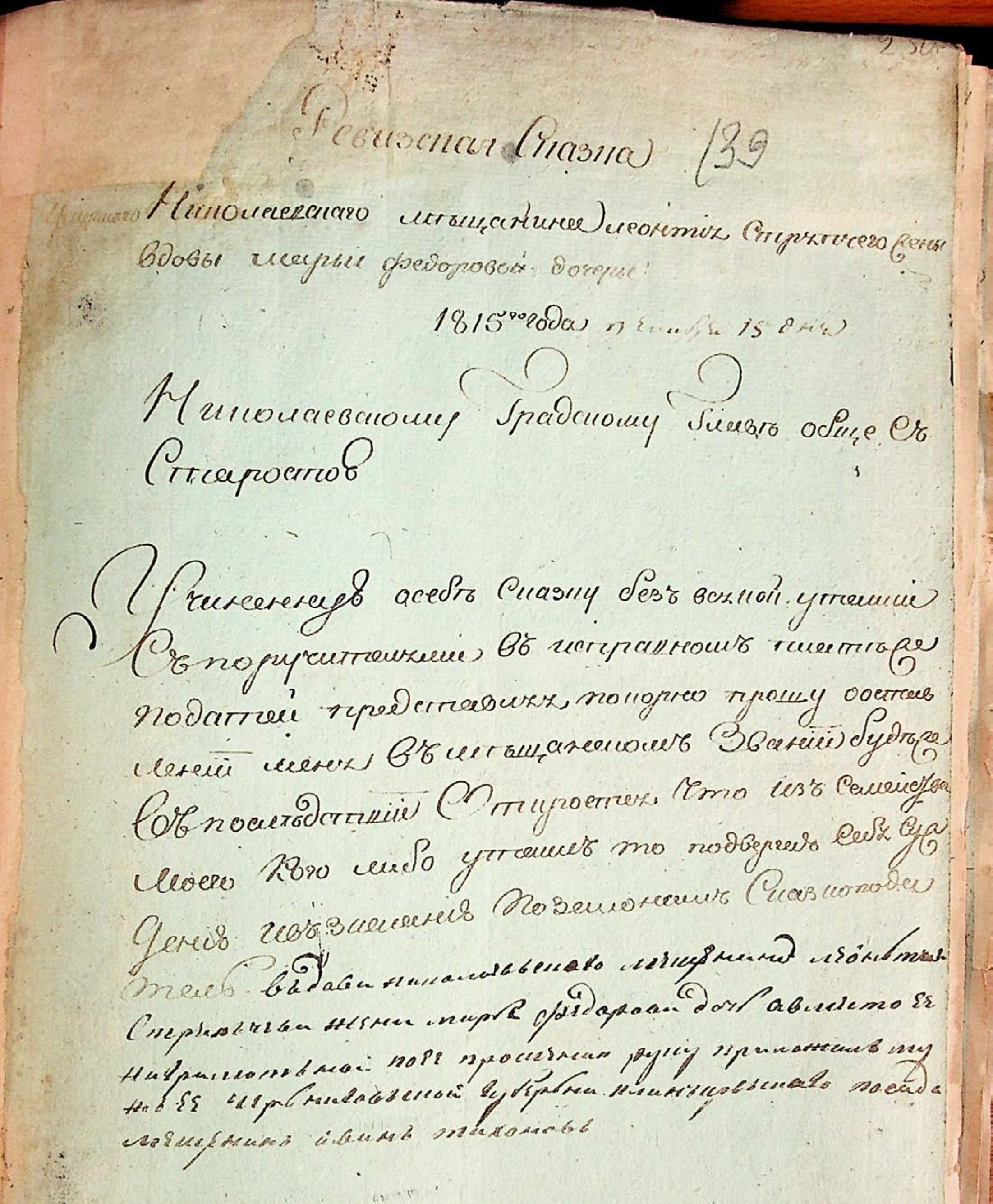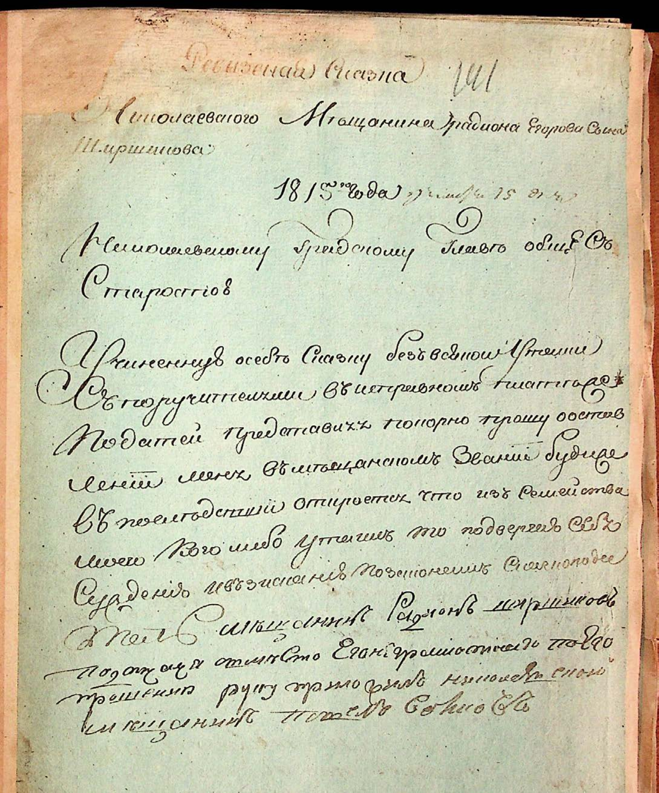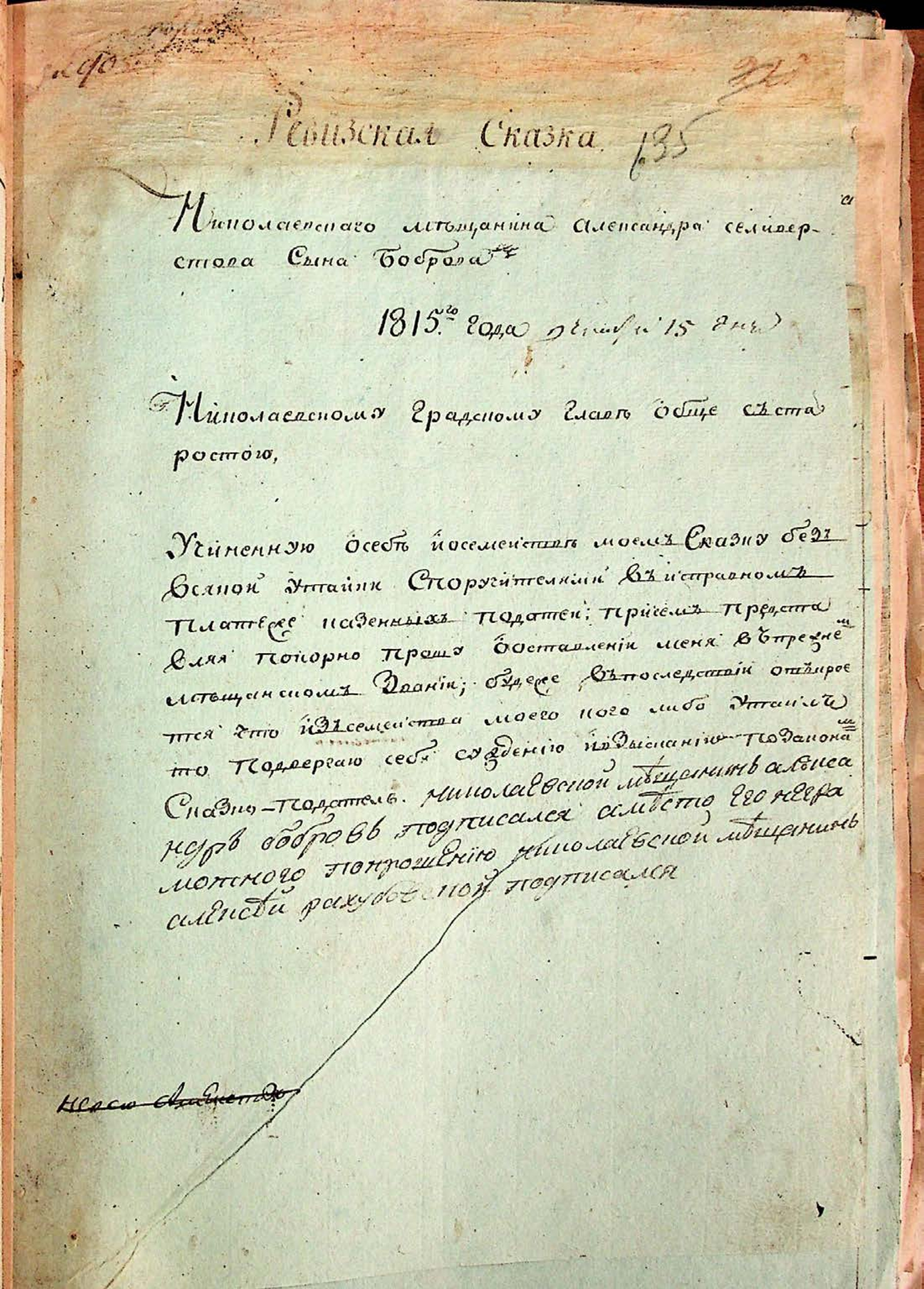 • • • • Справа № 14. Том № 1 Ревізькі казки міщан м. Миколаїв за переписом 1815 р.