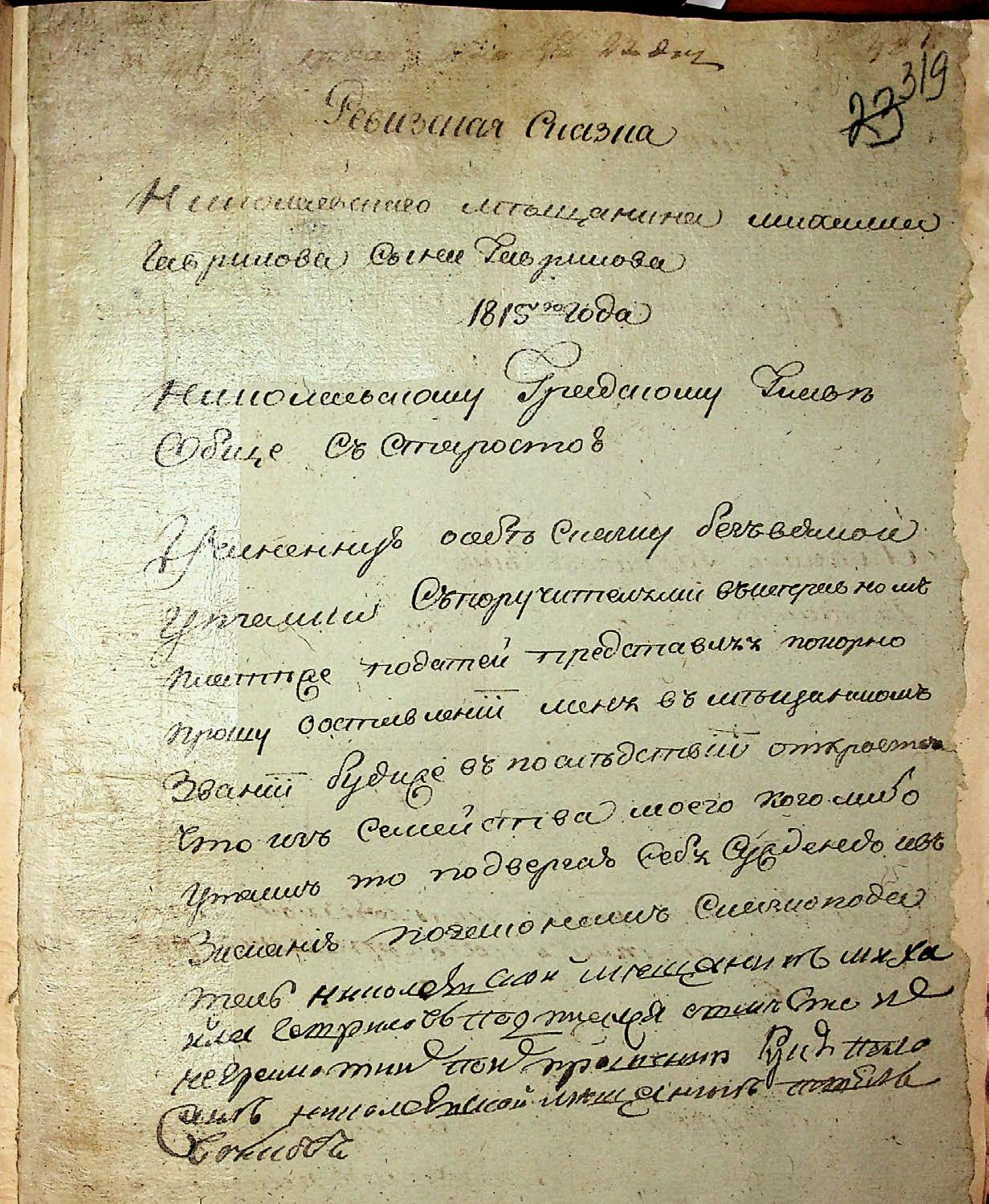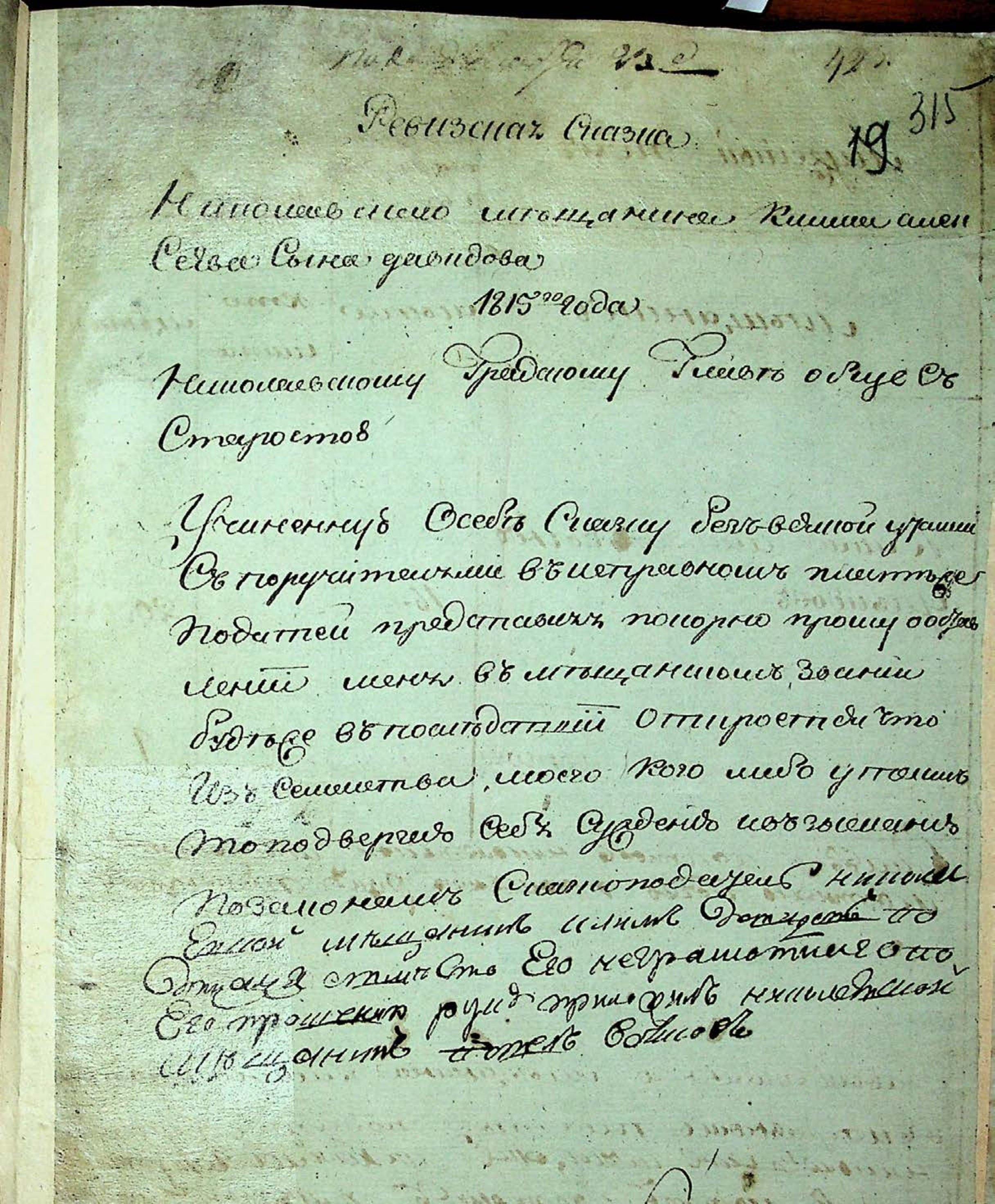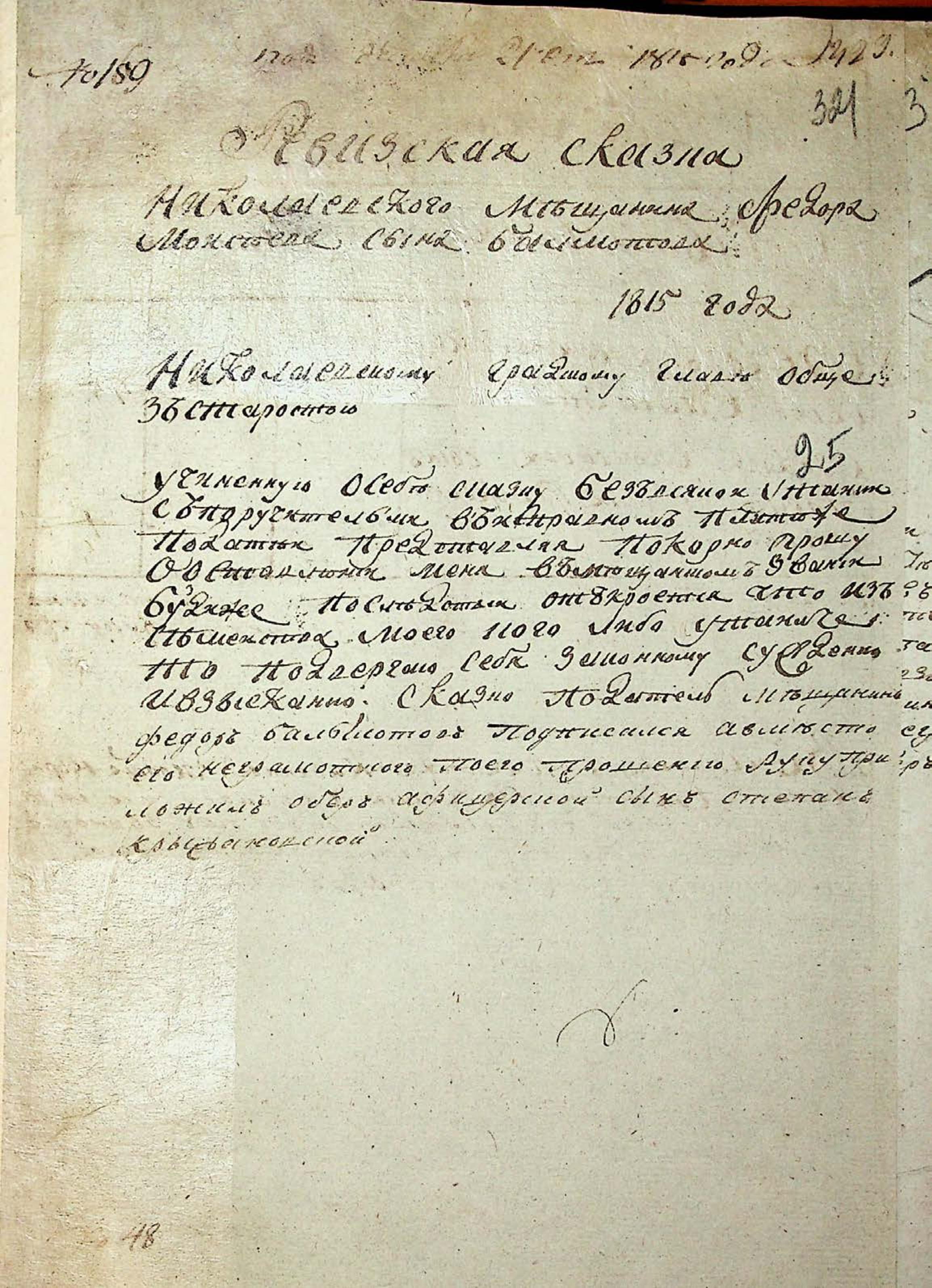 • • • • Справа № 14а. Том № 2 Ревізькі казки міщан м. Миколаїв за переписом 1815 р.