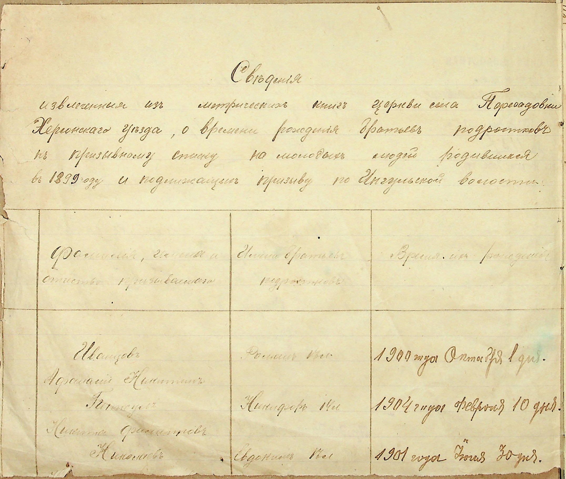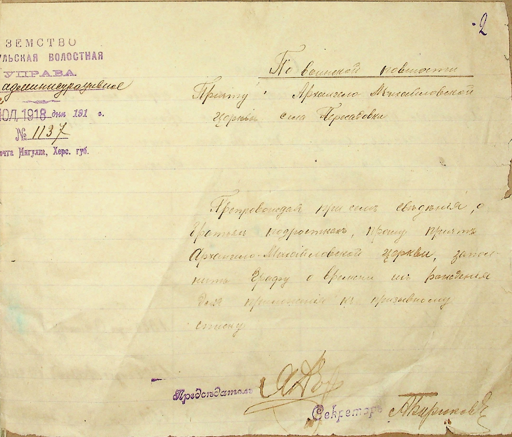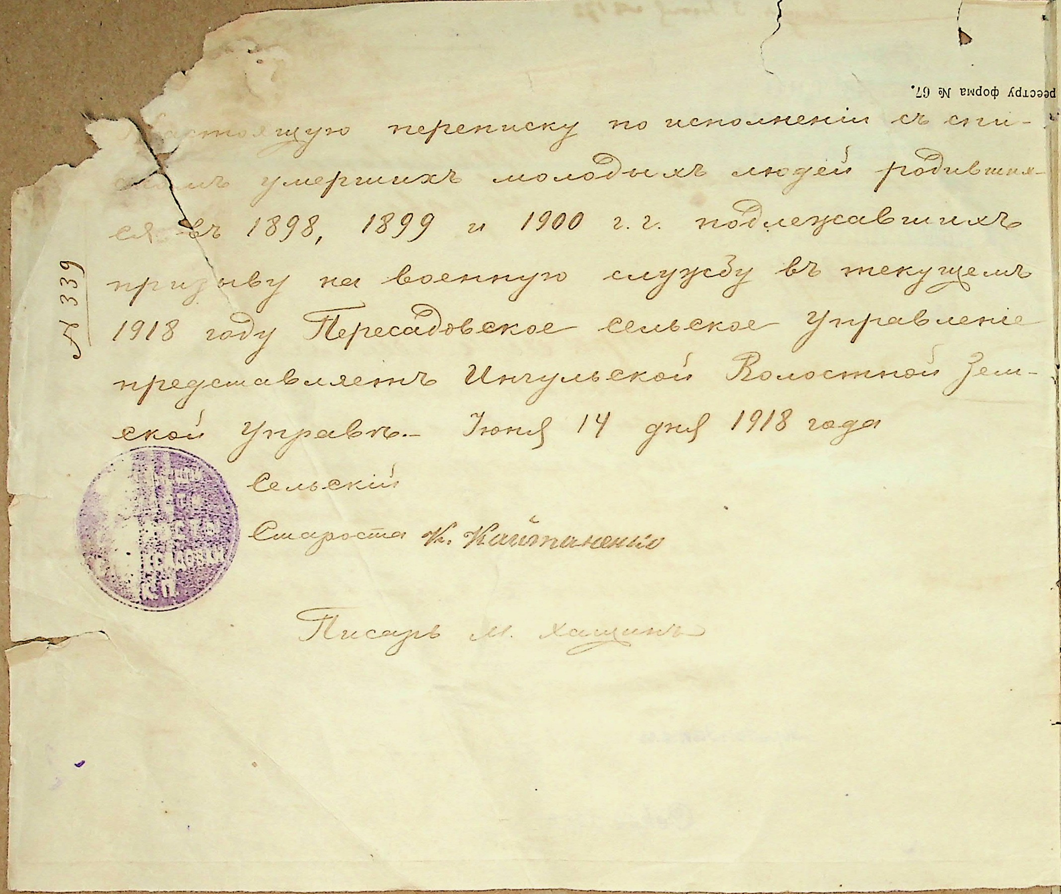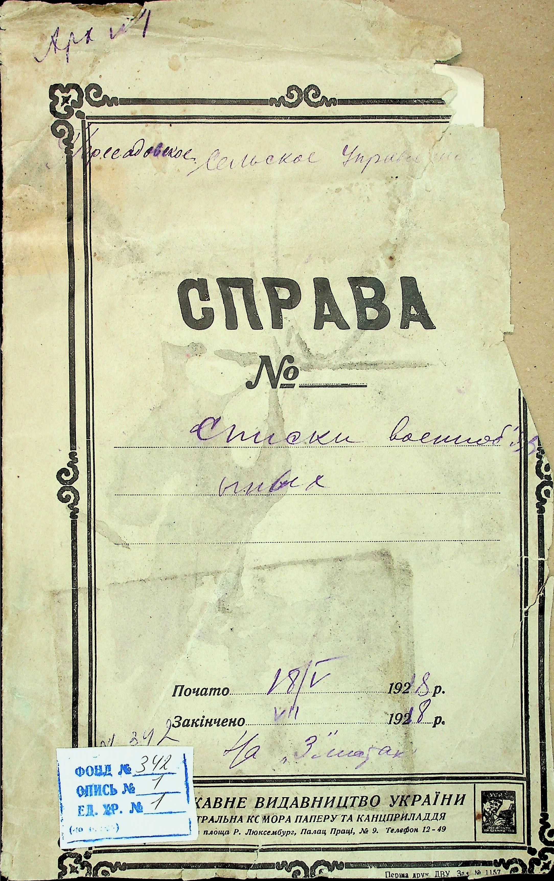 • • • • Справа № 1 “Списки військовозобов’язаних жителів села Пересадівки”