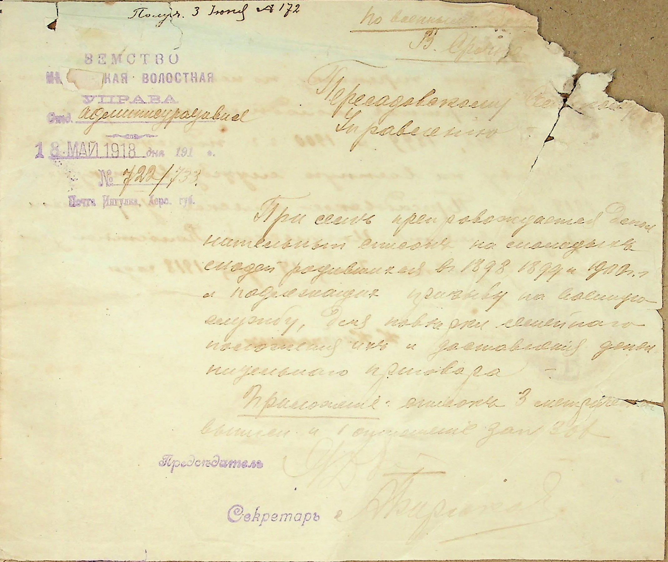 ◦ ◦ ◦ Опис № 1 справ постійного зберігання за 1918 рік