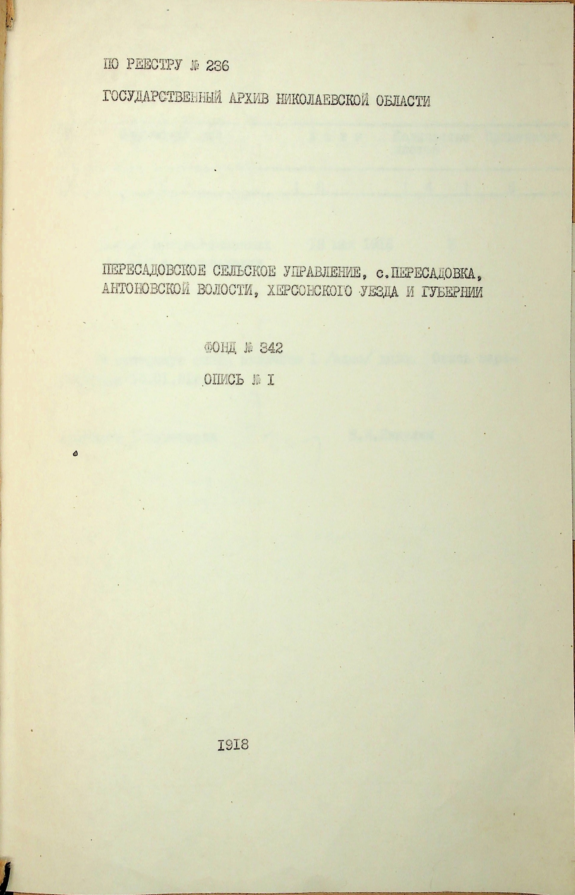 ◦ ◦ Фонд № 342 “Пересадівське сільське управління”