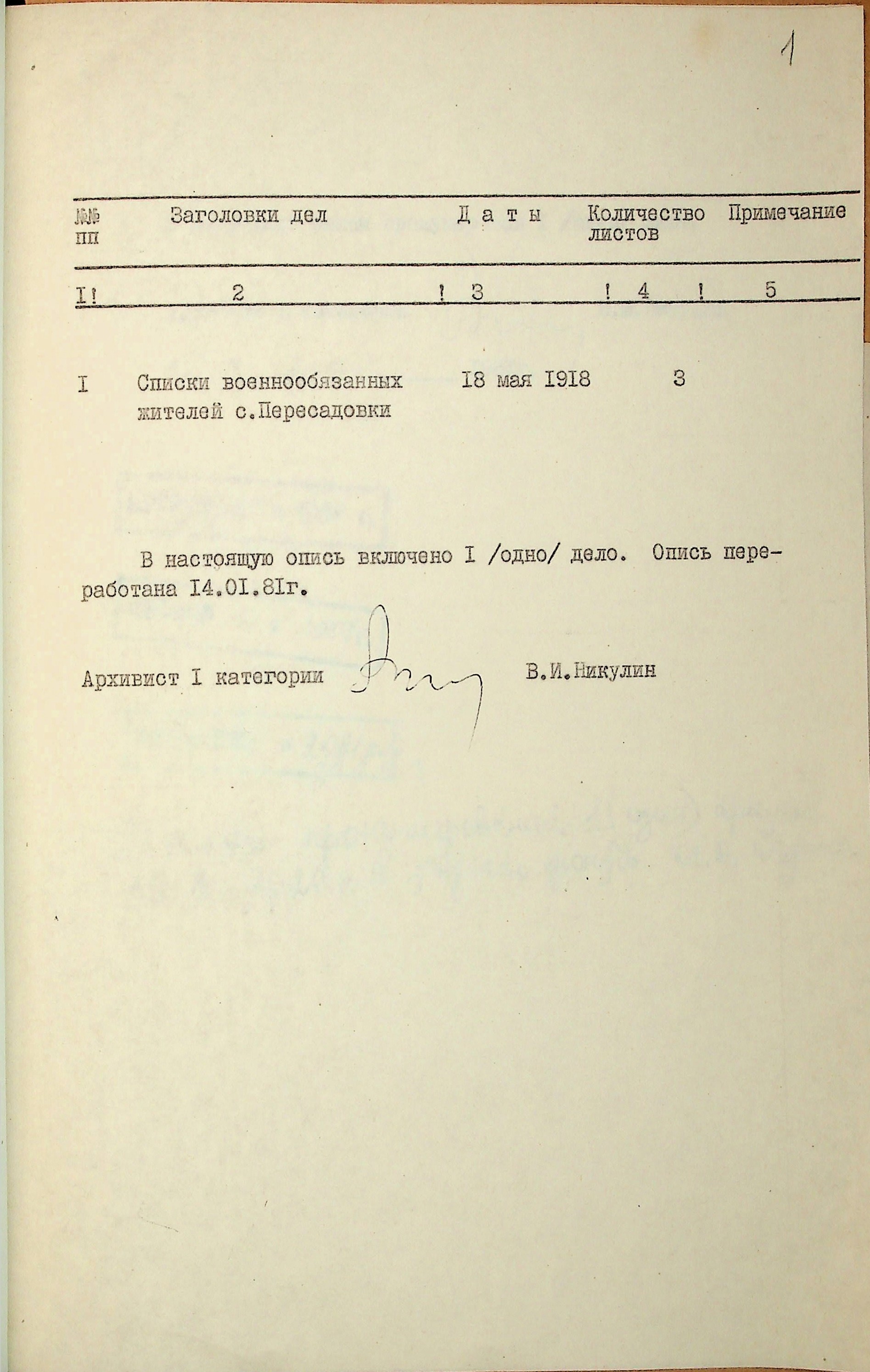◦ ◦ ◦ Опис № 1 справ постійного зберігання за 1918 рік