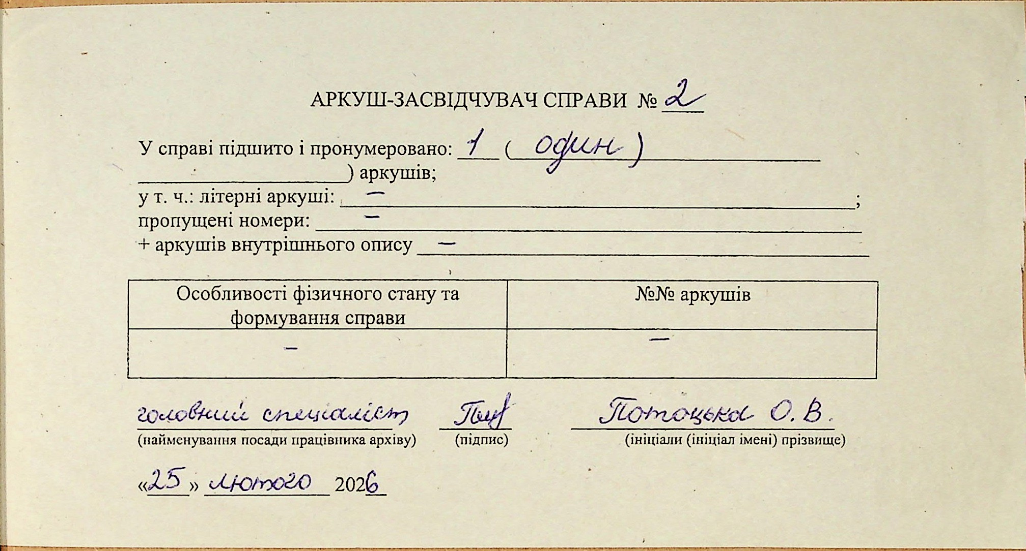 Фонд 342 / Опис 1 / Справа 2