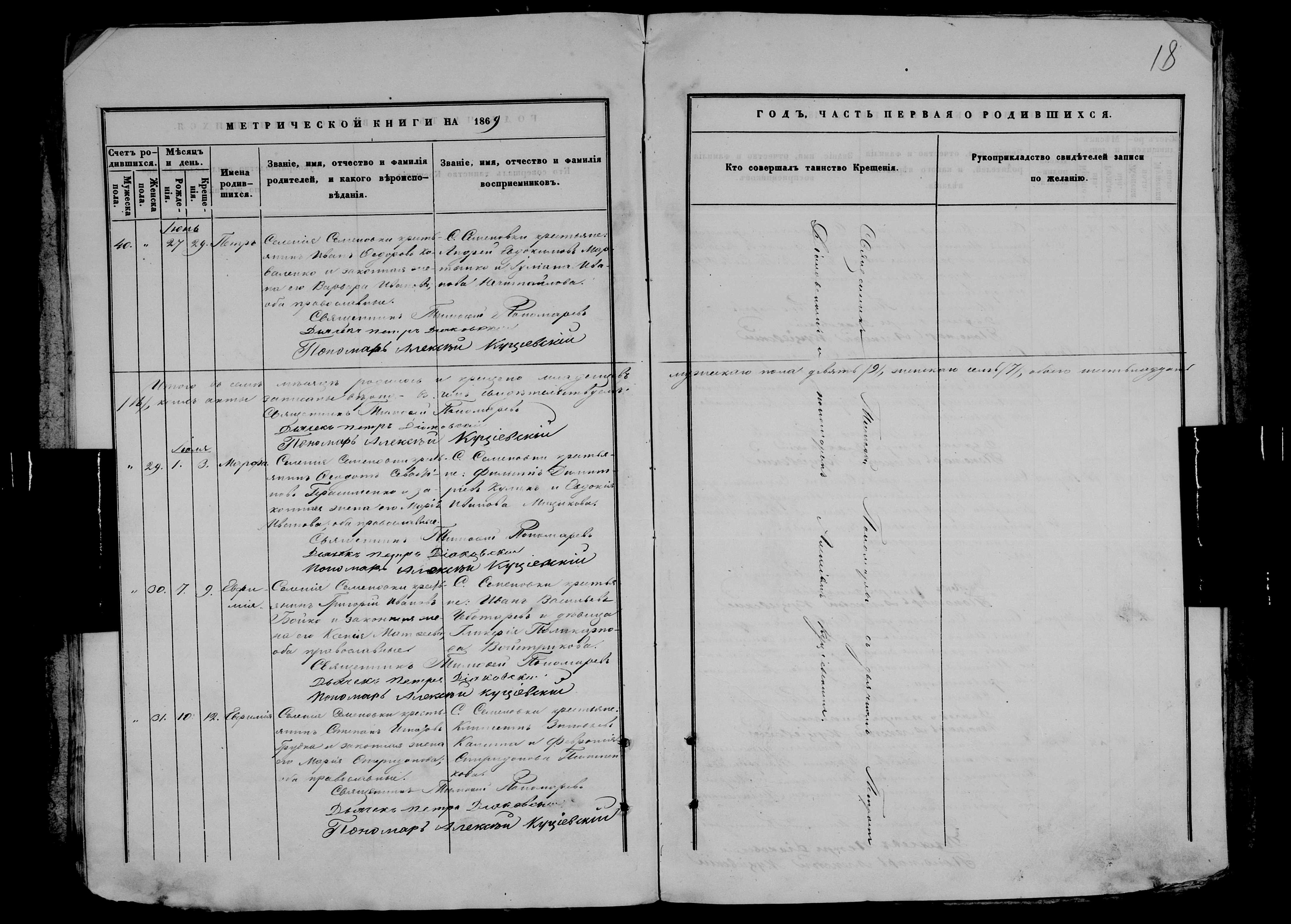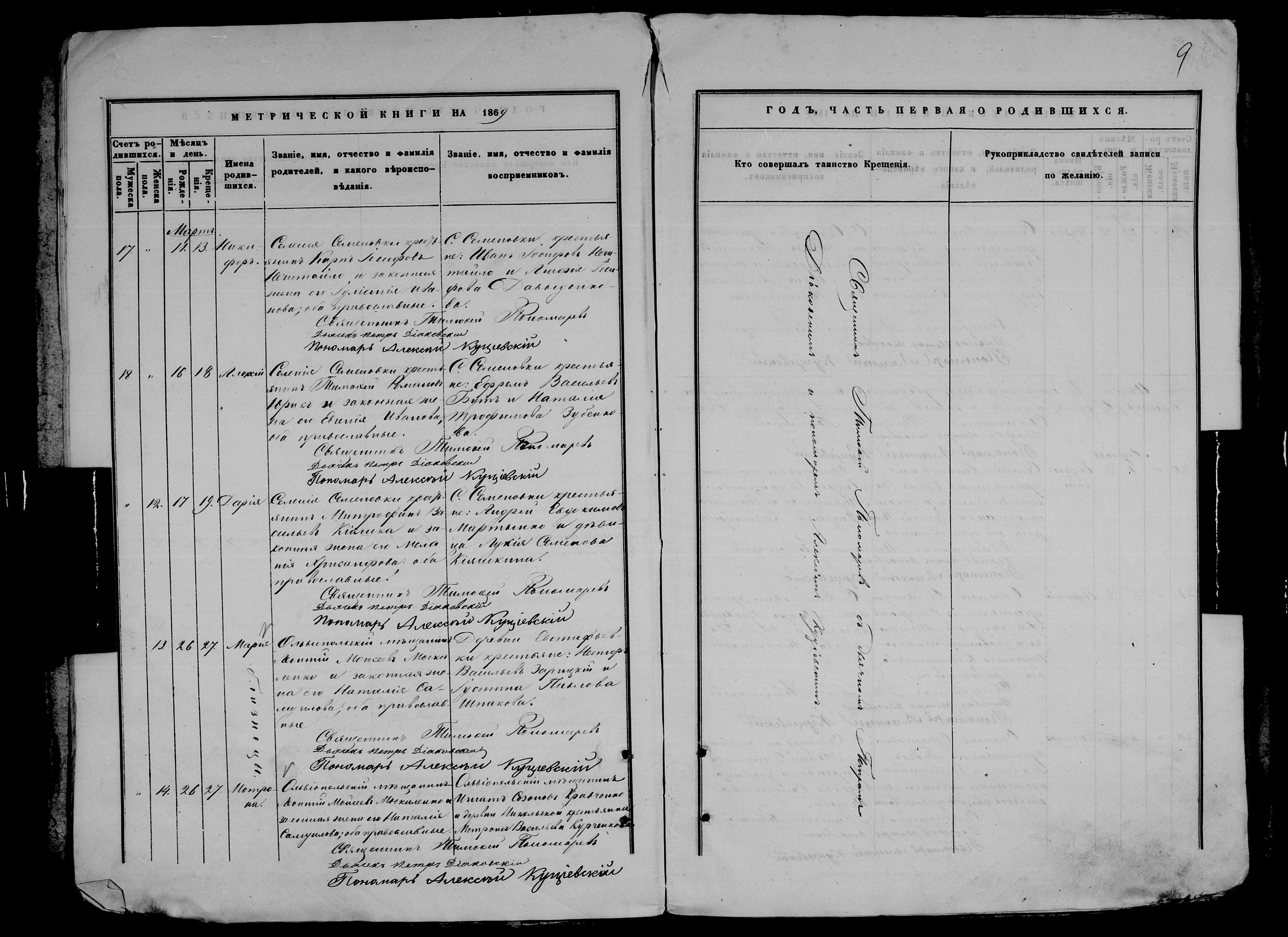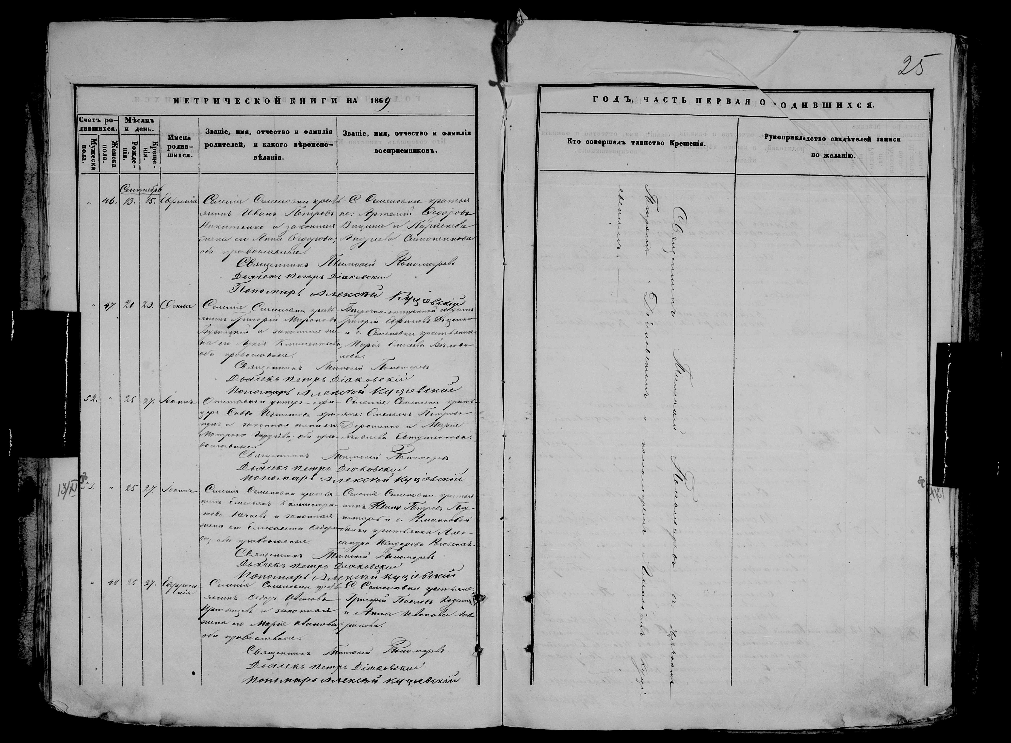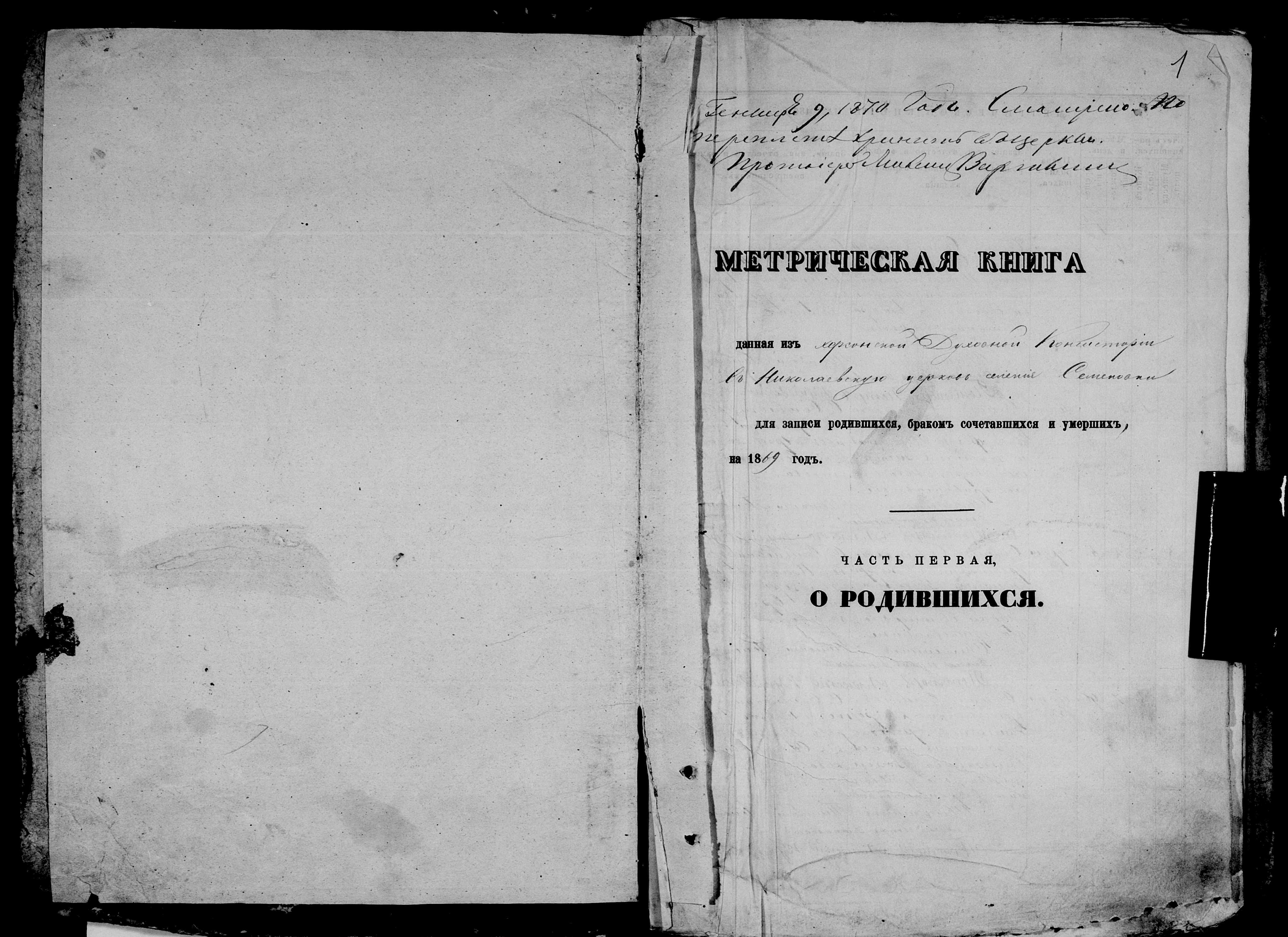 • • • • Справа № 9 Метрична книга Миколаївської (Свято-Миколаївської) церкви с. Семенівка Благодатненської волості Єлисаветградського повіту Херсонської губернії: