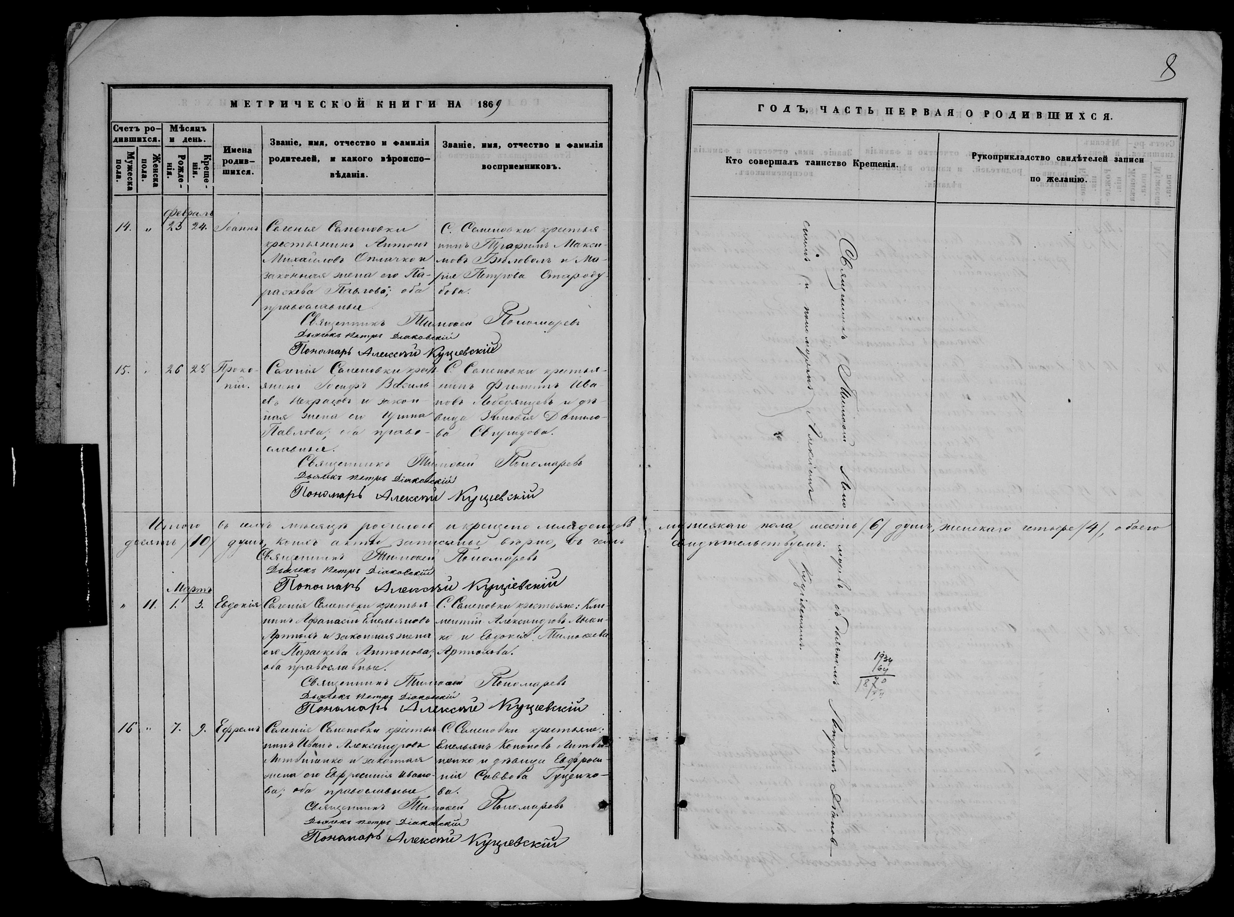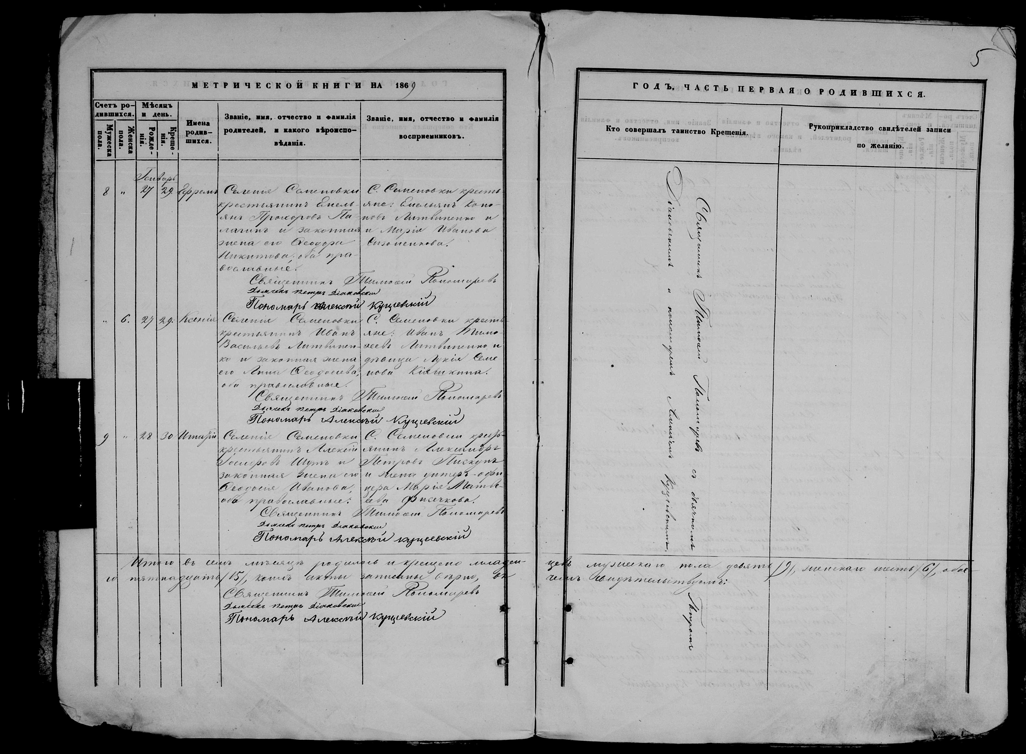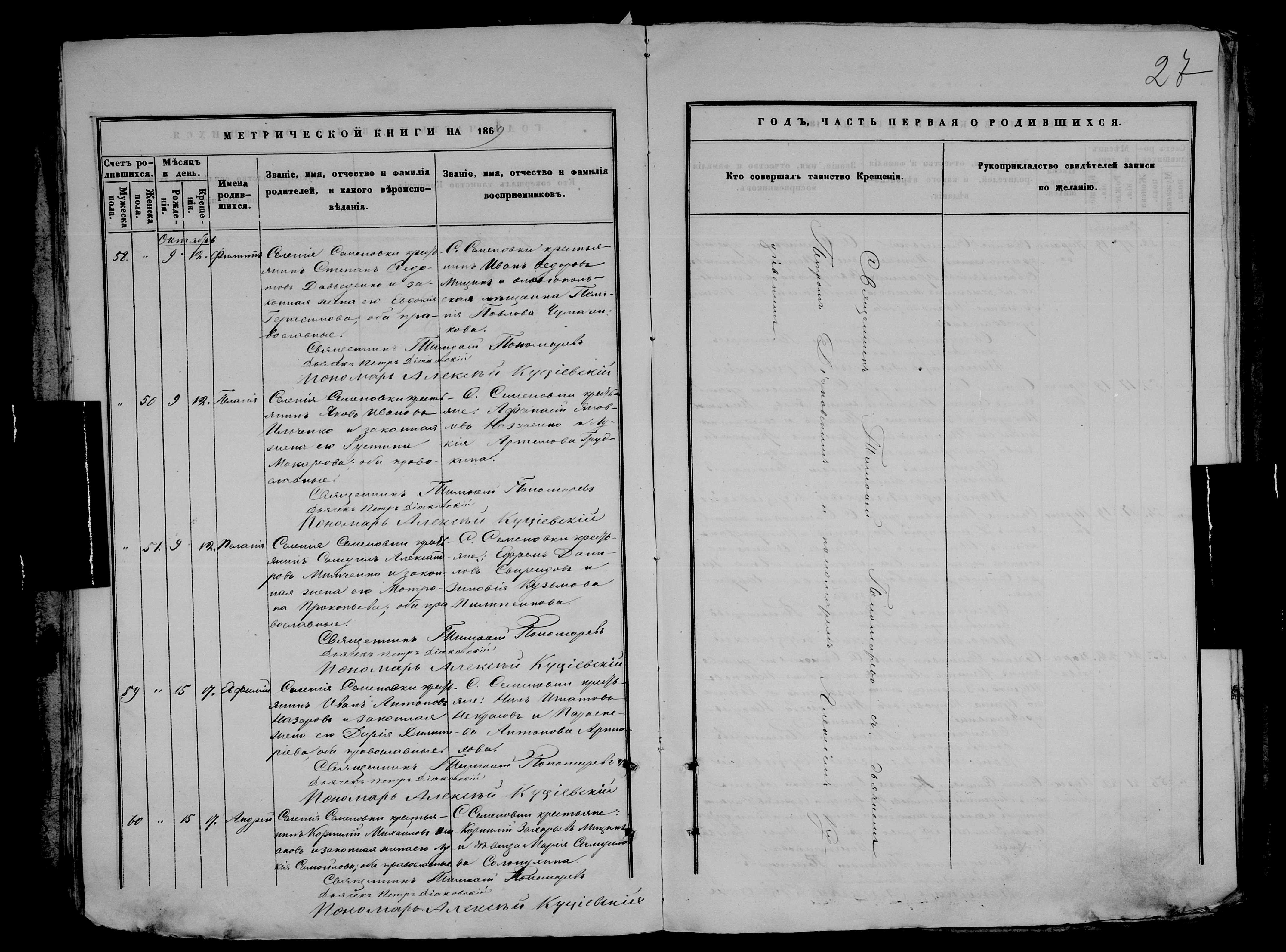 • • • • Справа № 9 Метрична книга Миколаївської (Свято-Миколаївської) церкви с. Семенівка Благодатненської волості Єлисаветградського повіту Херсонської губернії: