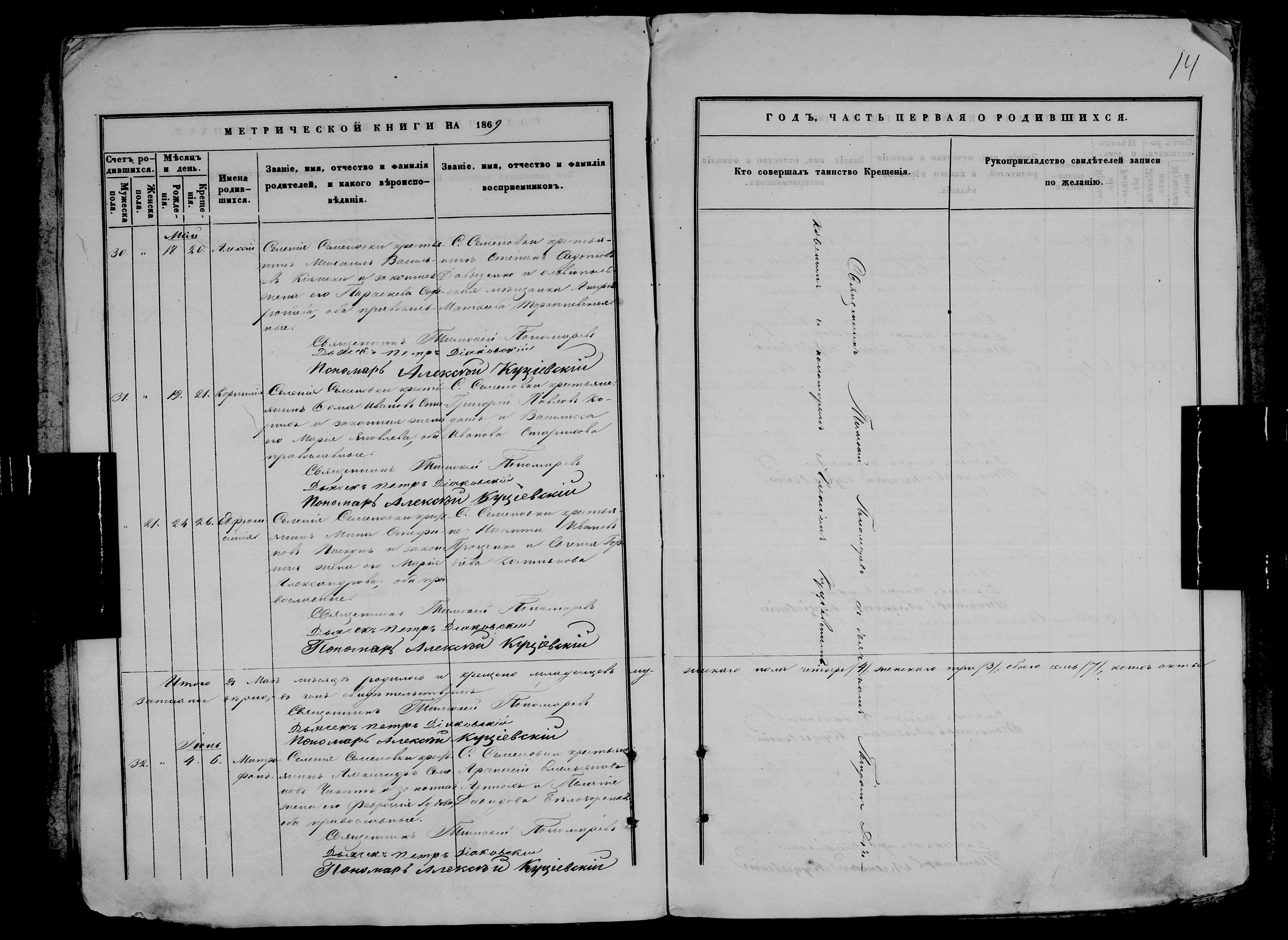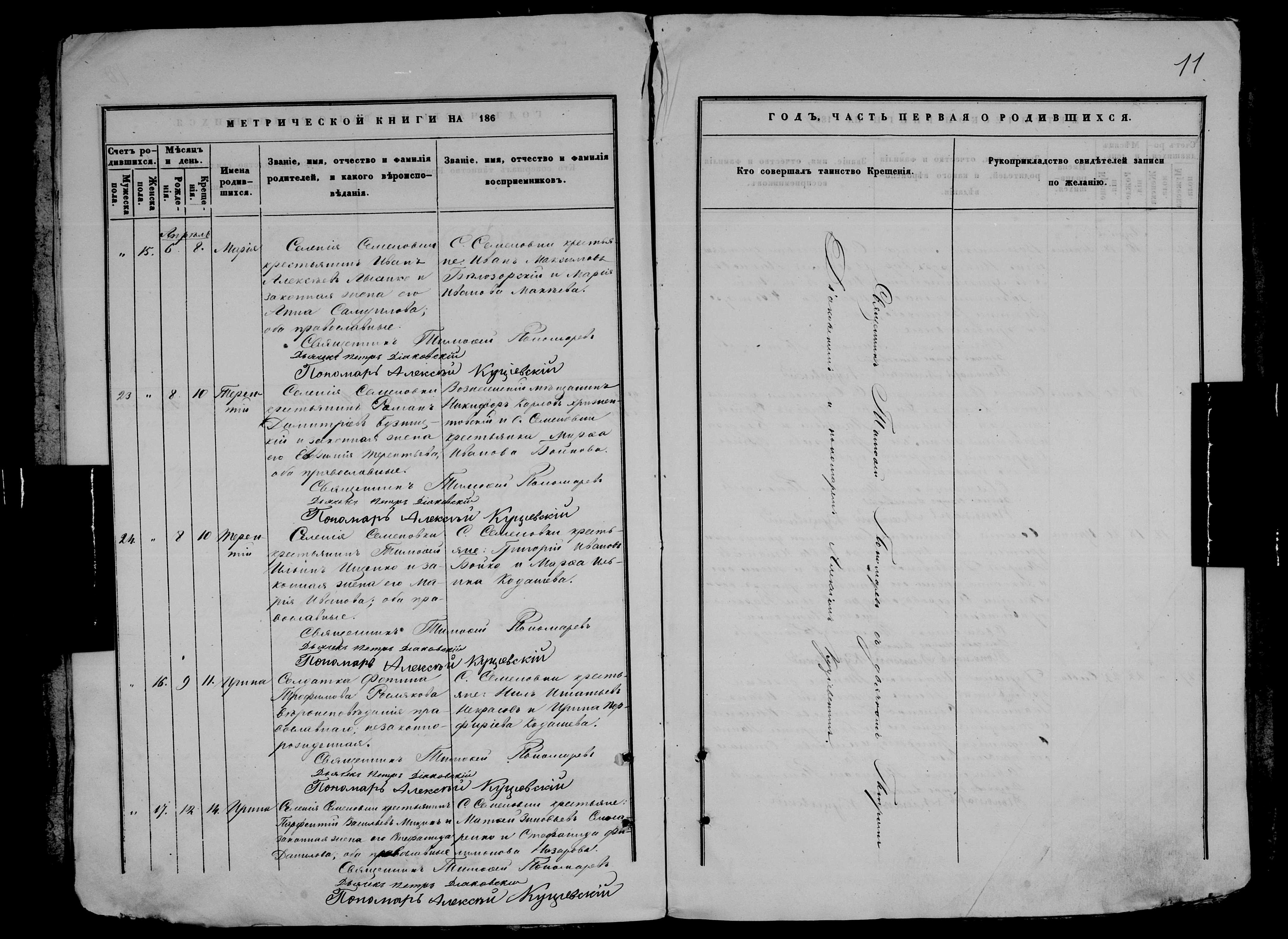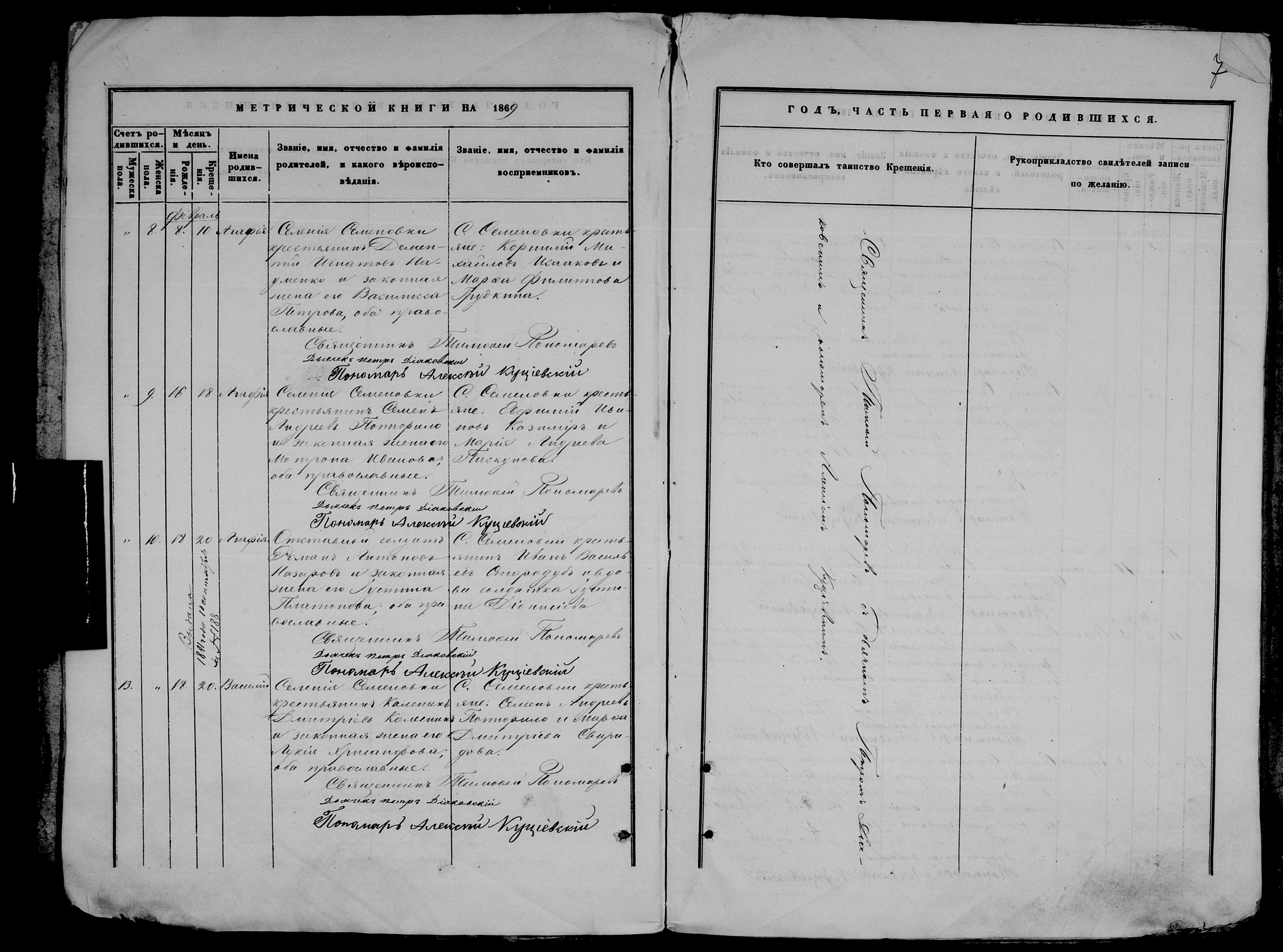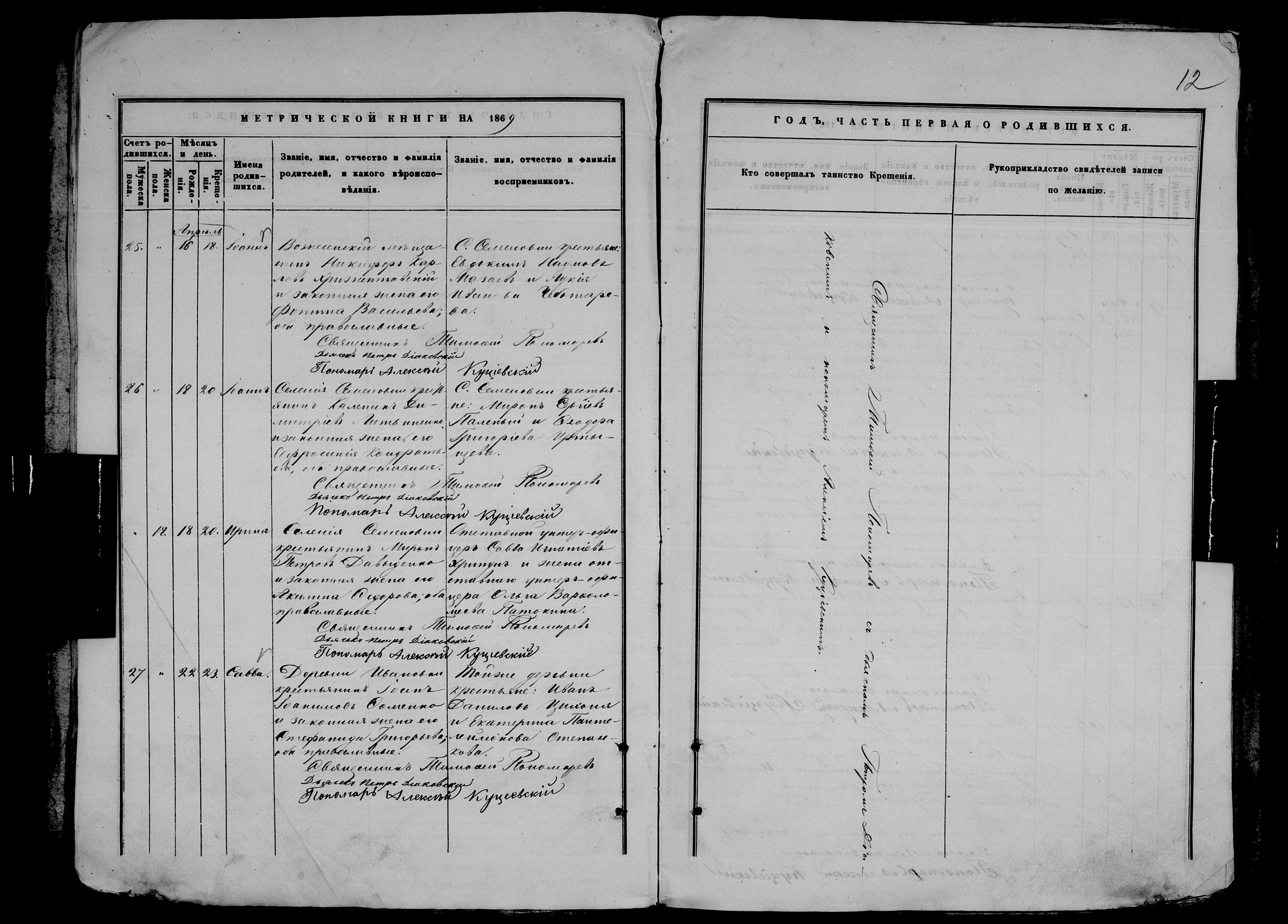 • • • • Справа № 9 Метрична книга Миколаївської (Свято-Миколаївської) церкви с. Семенівка Благодатненської волості Єлисаветградського повіту Херсонської губернії:
