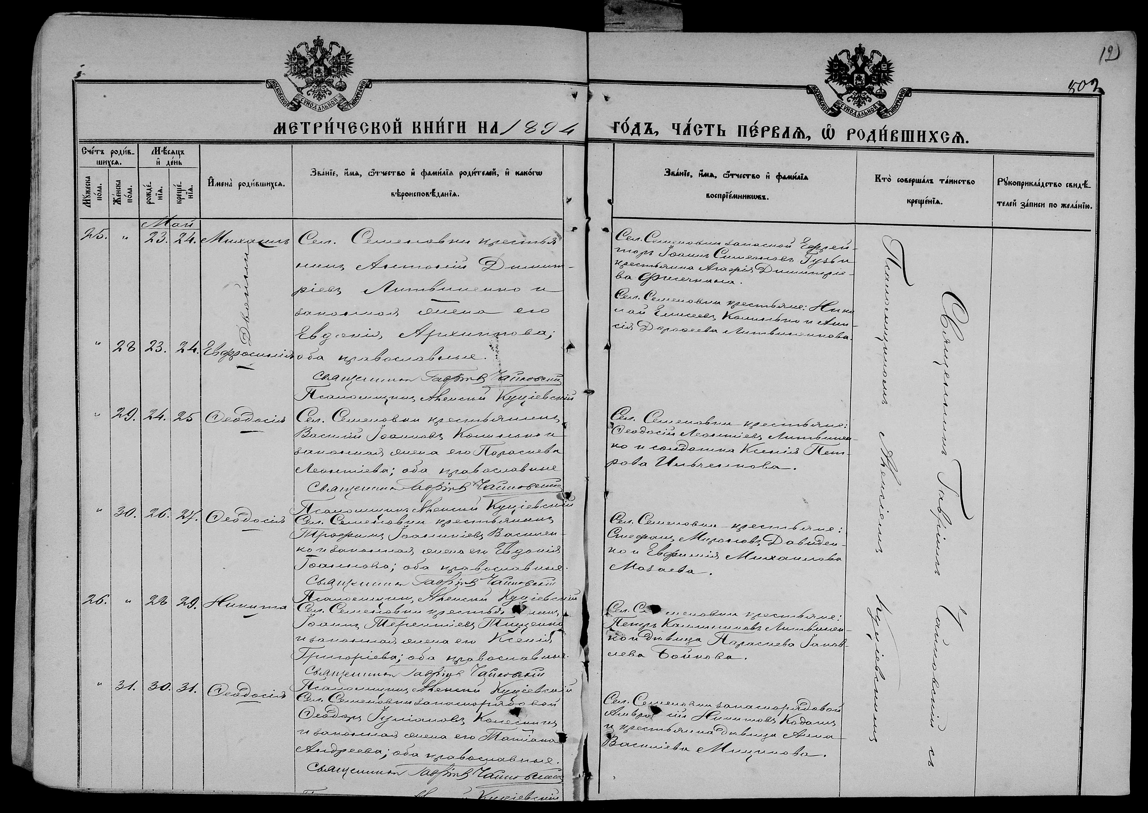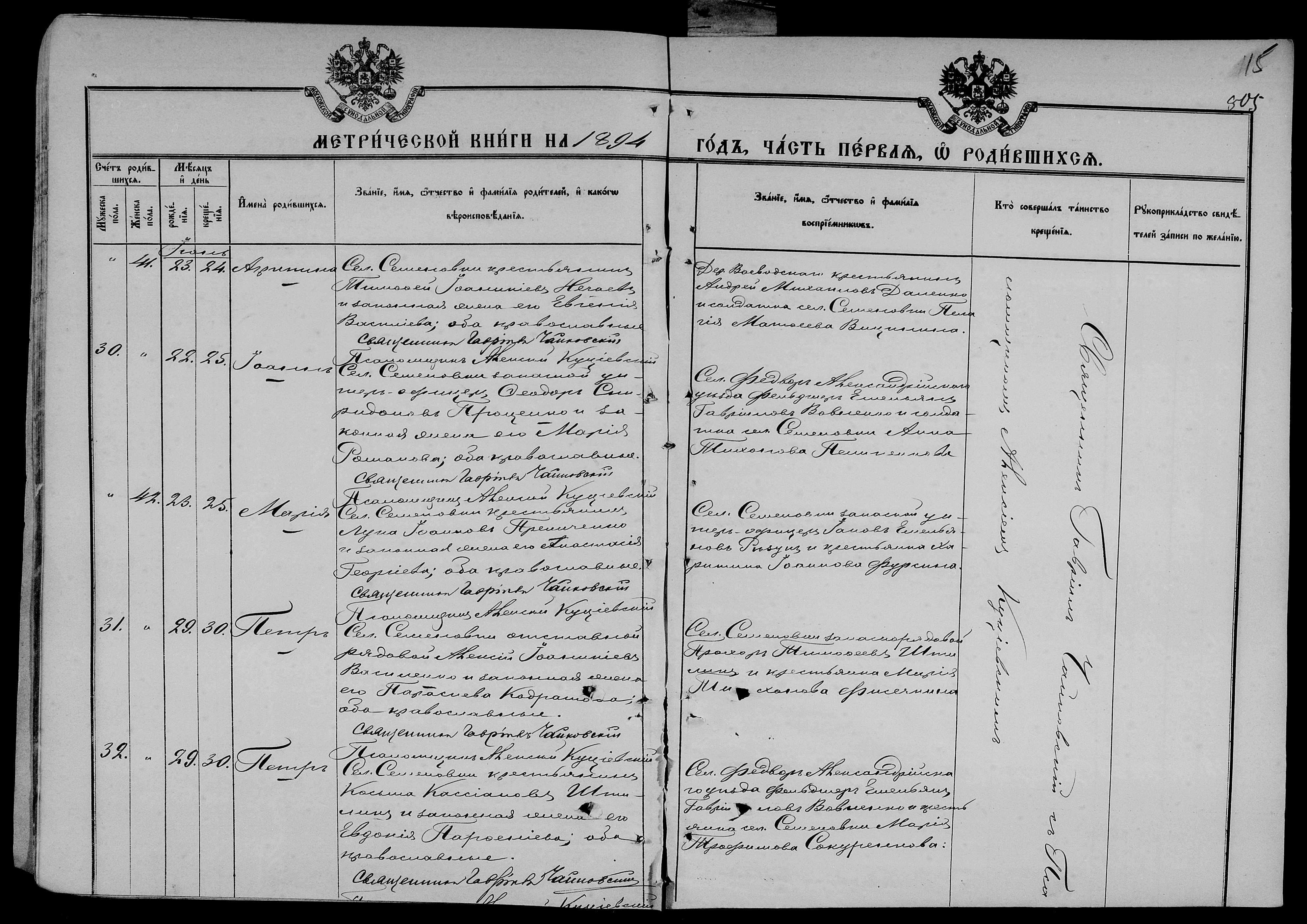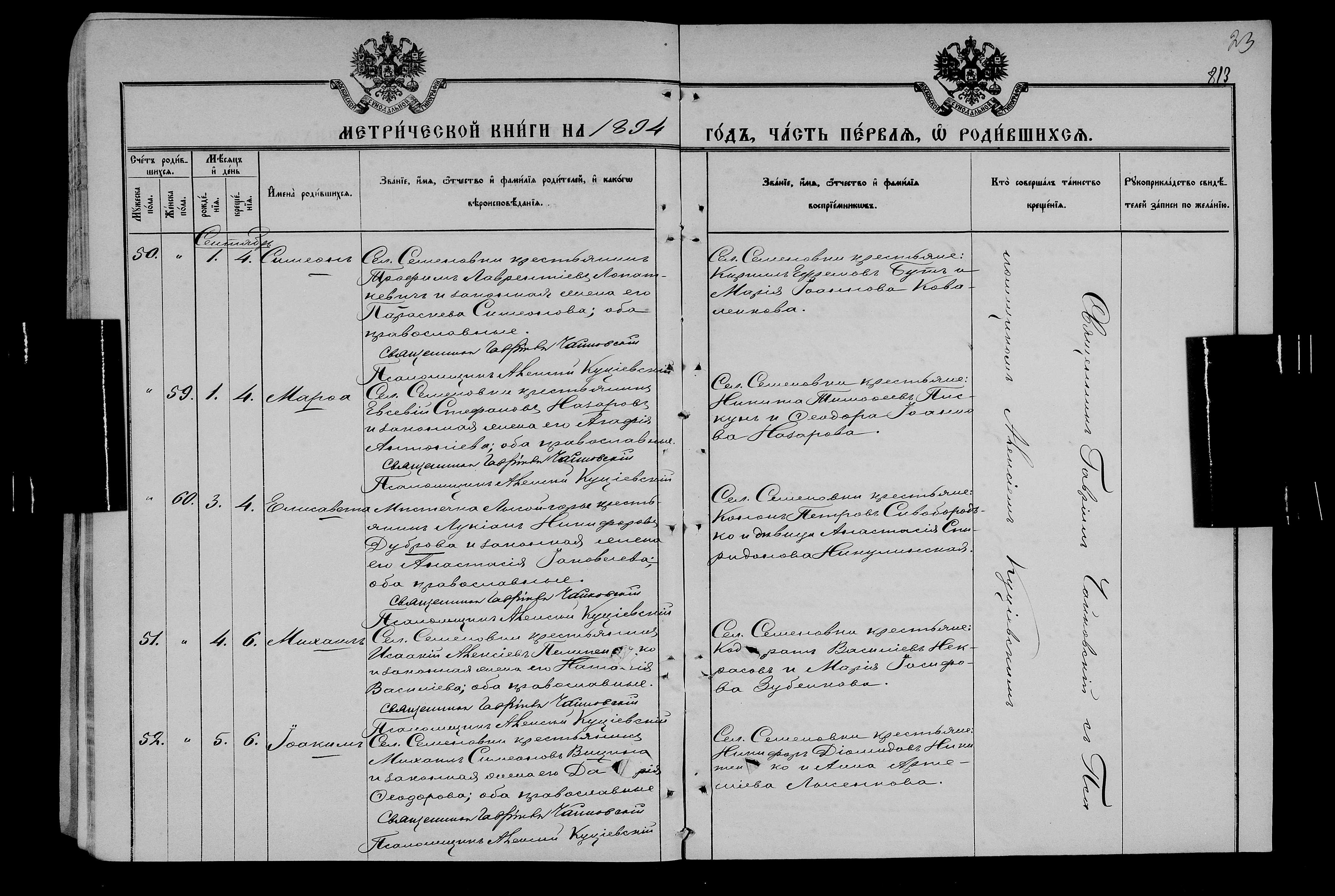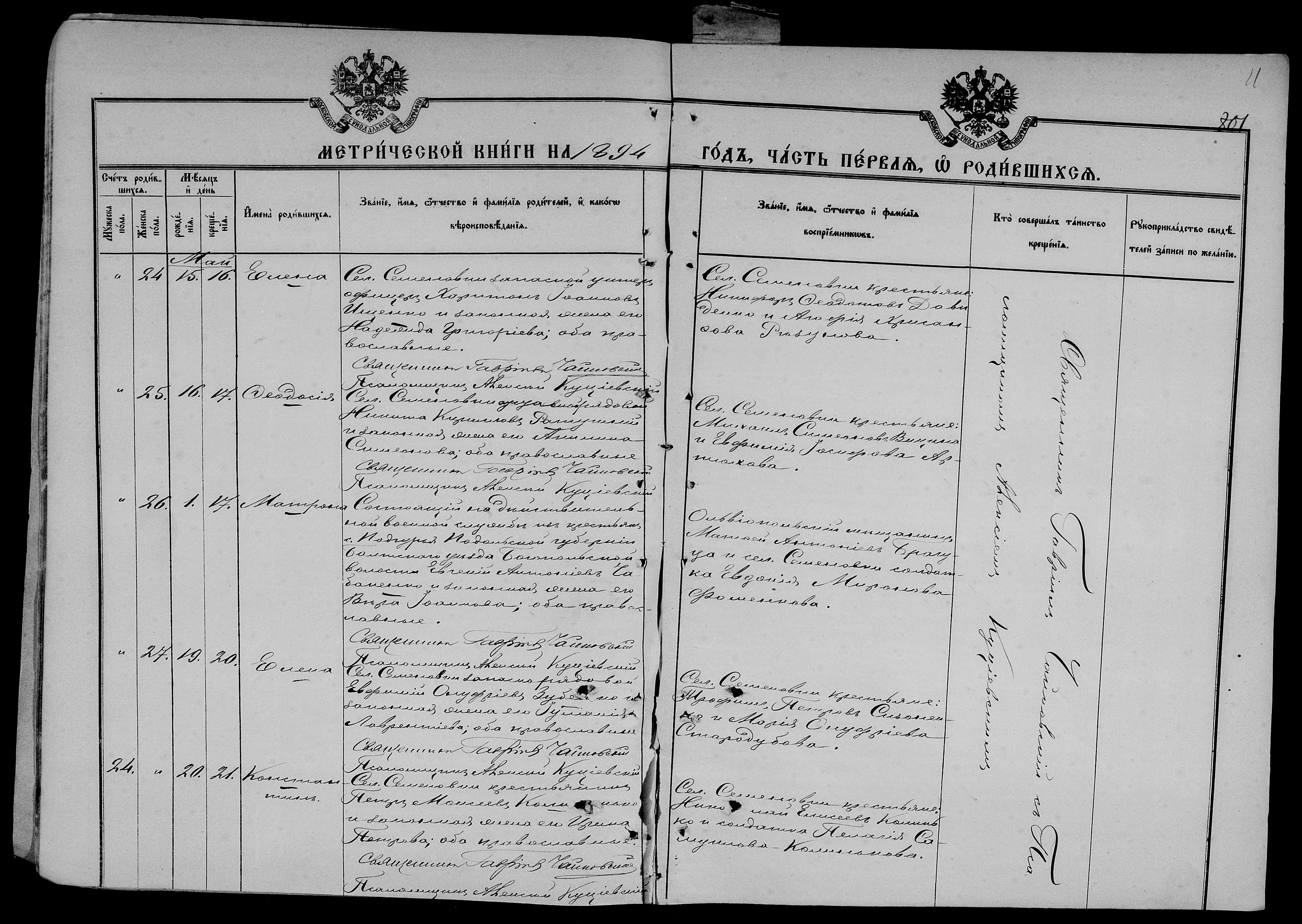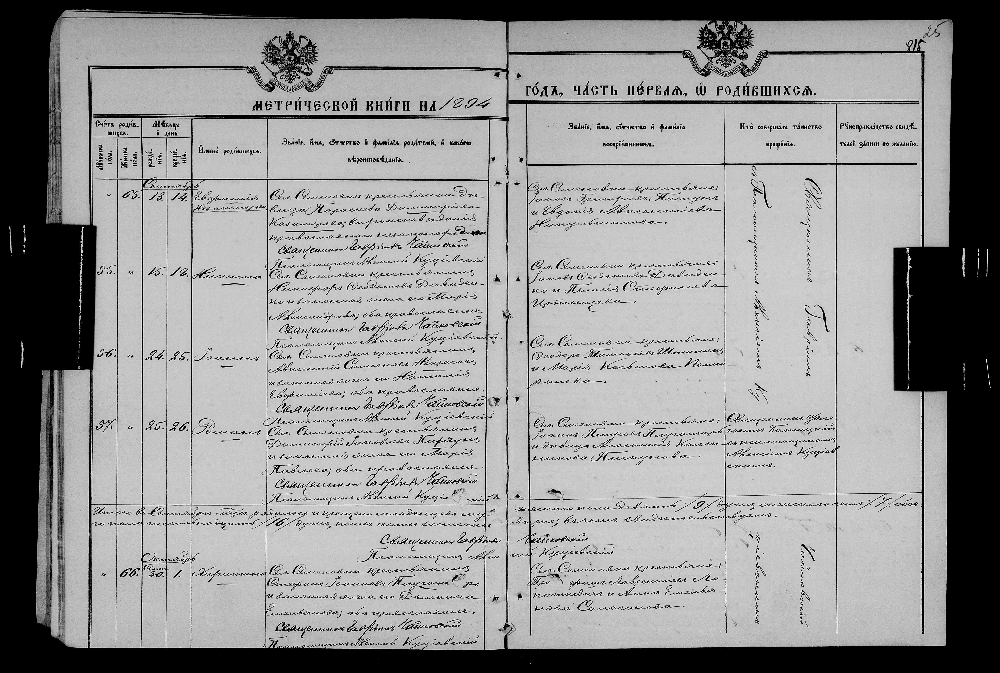• • • • Справа № 25 Метричні книги Миколаївської (Свято-Миколаївської) церкви с. Семенівка Благодатненської волості Єлисаветградського повіту Херсонської губернії: