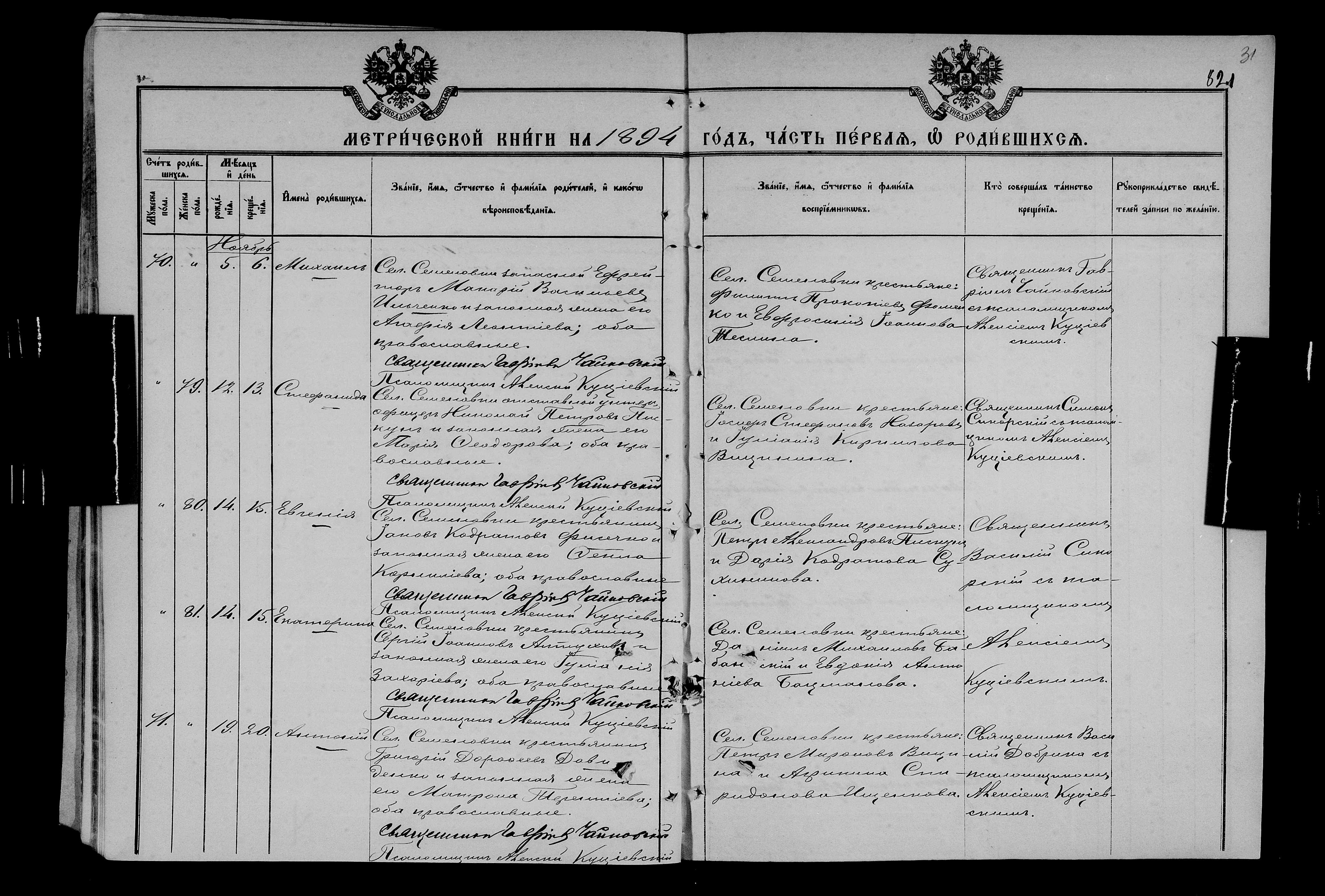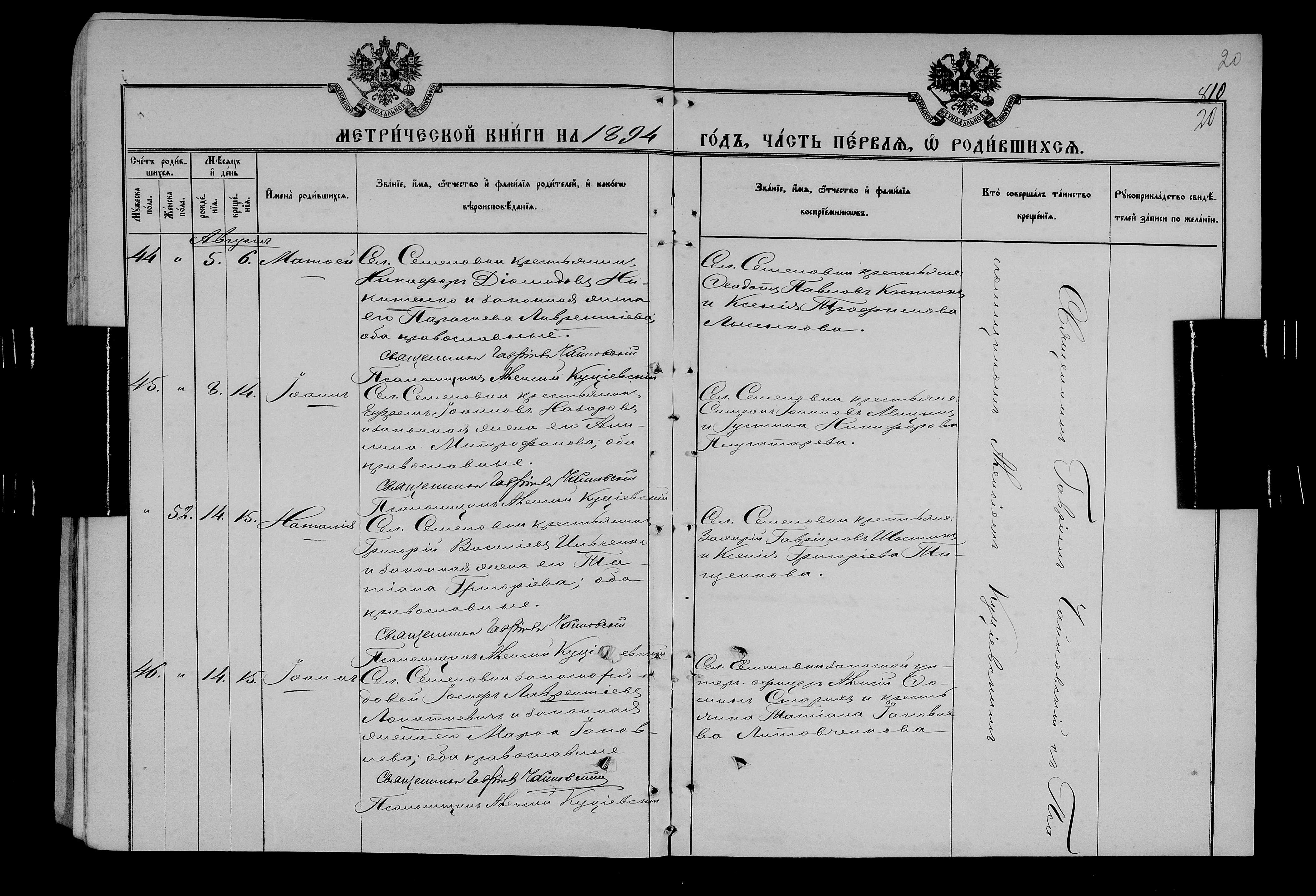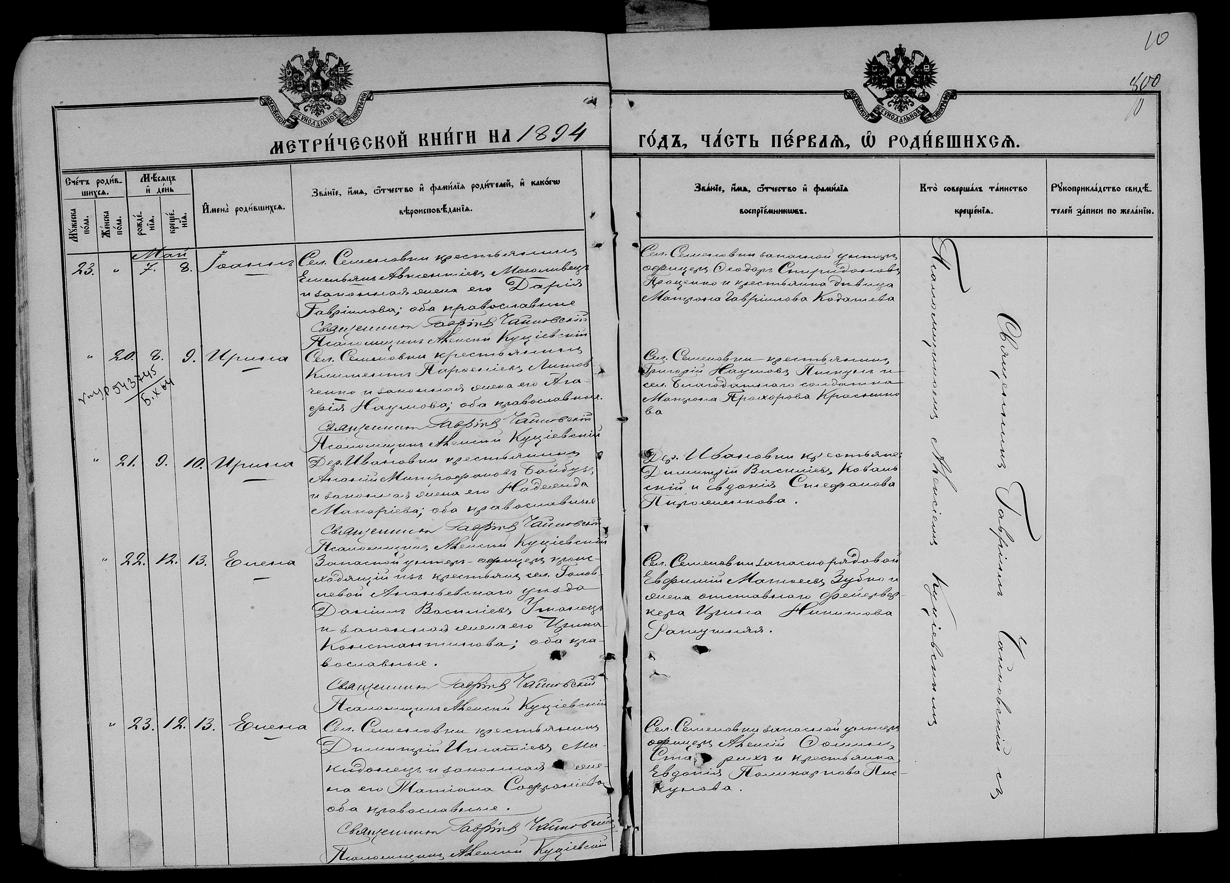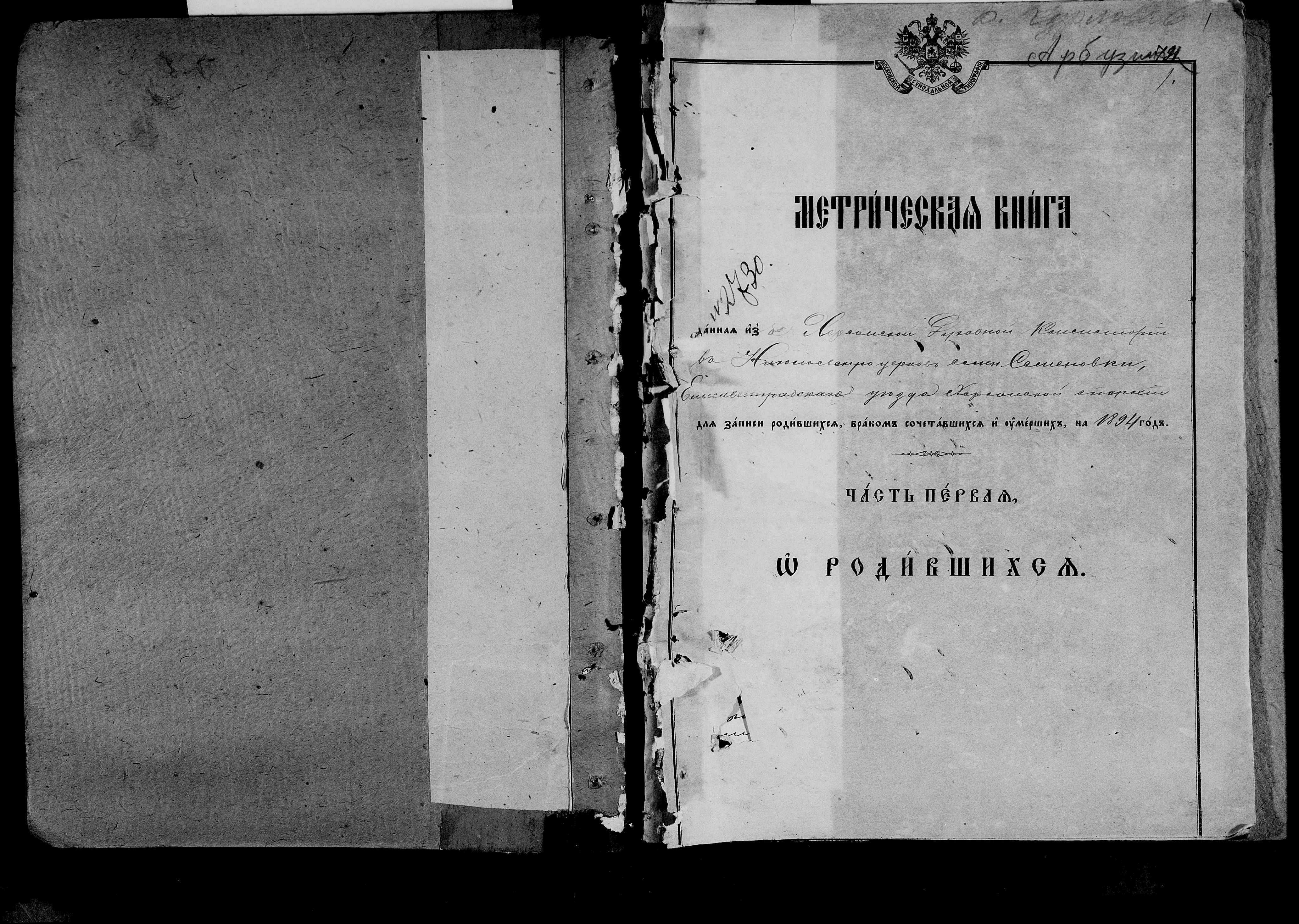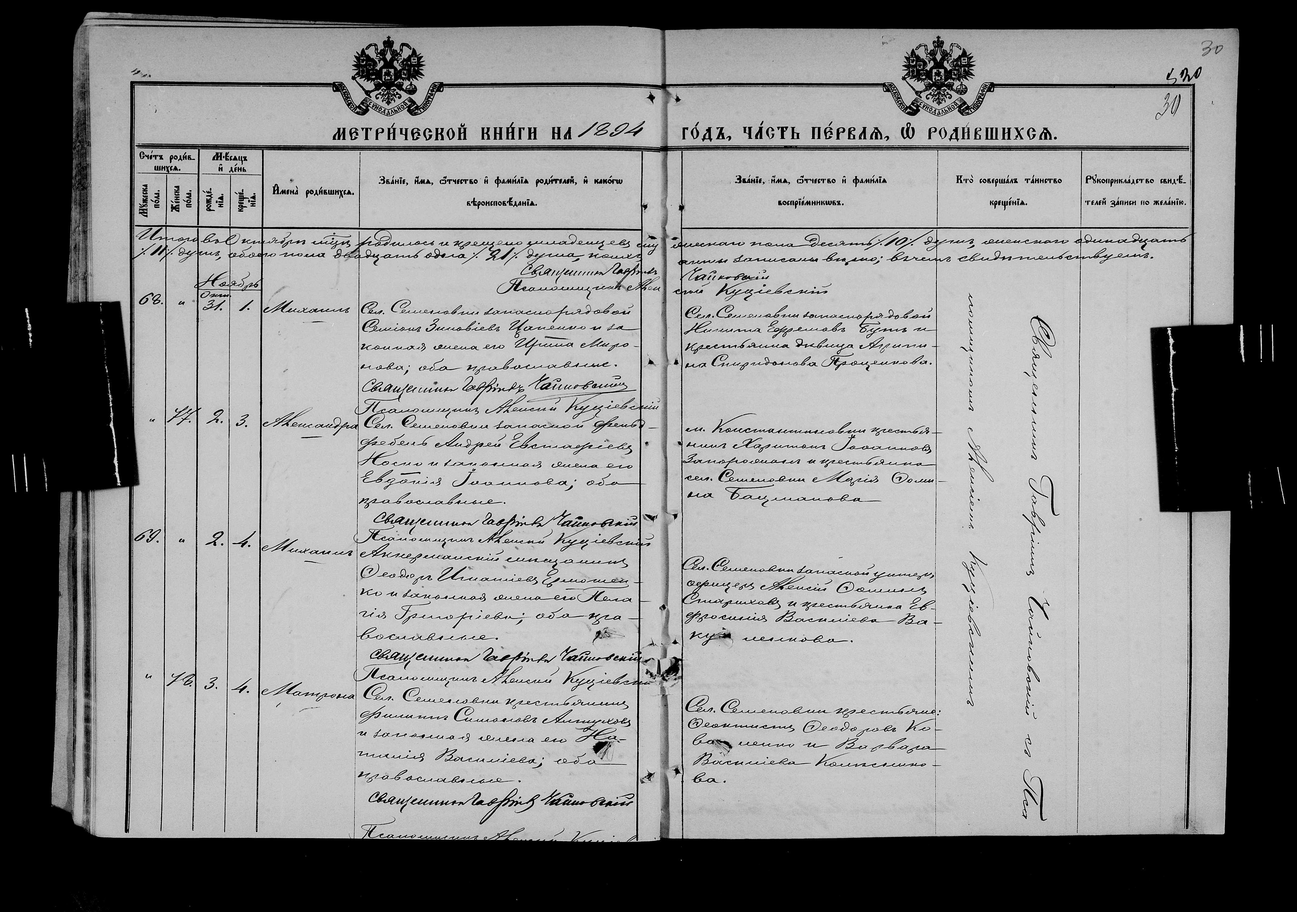 • • • • Справа № 25 Метричні книги Миколаївської (Свято-Миколаївської) церкви с. Семенівка Благодатненської волості Єлисаветградського повіту Херсонської губернії: