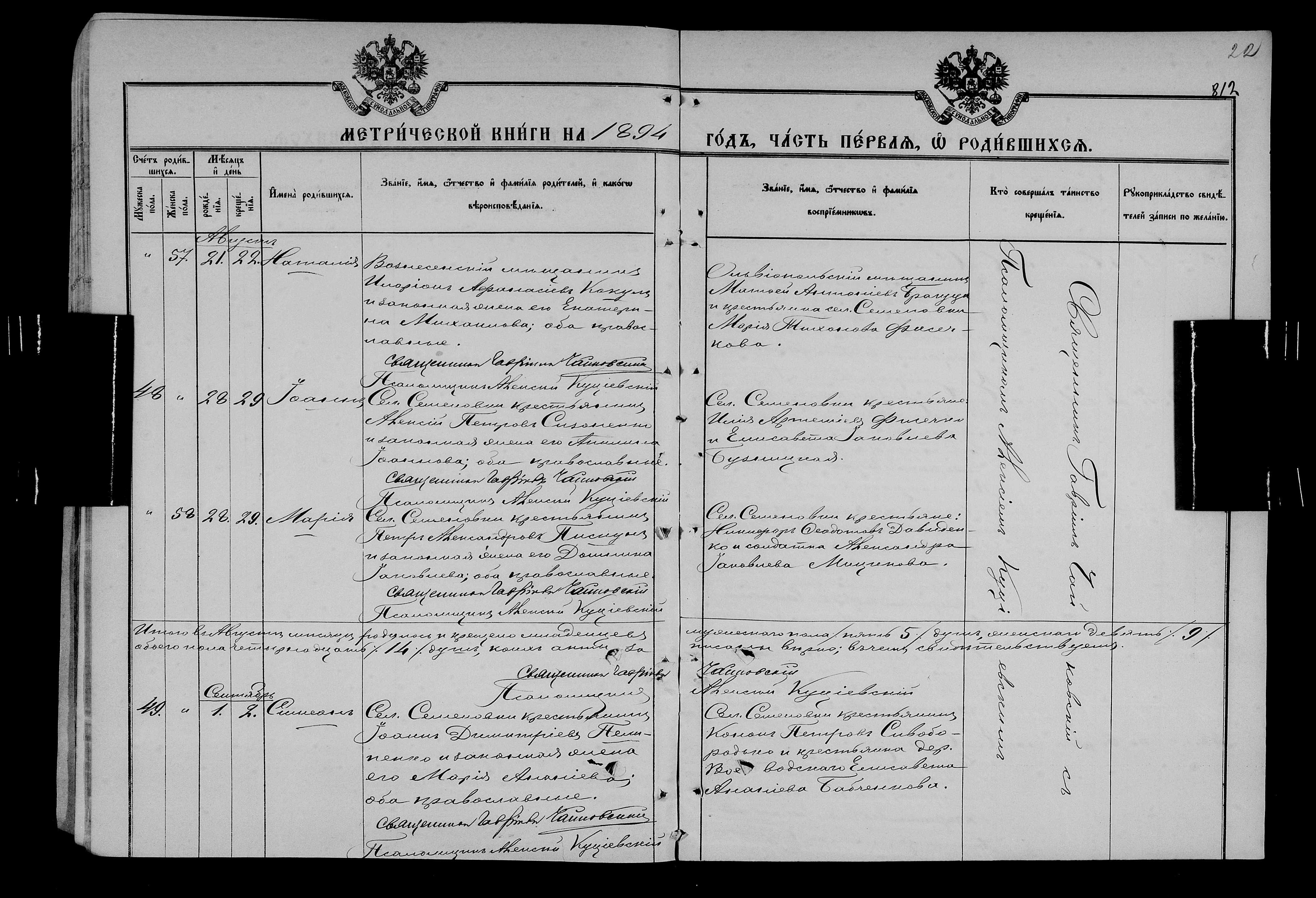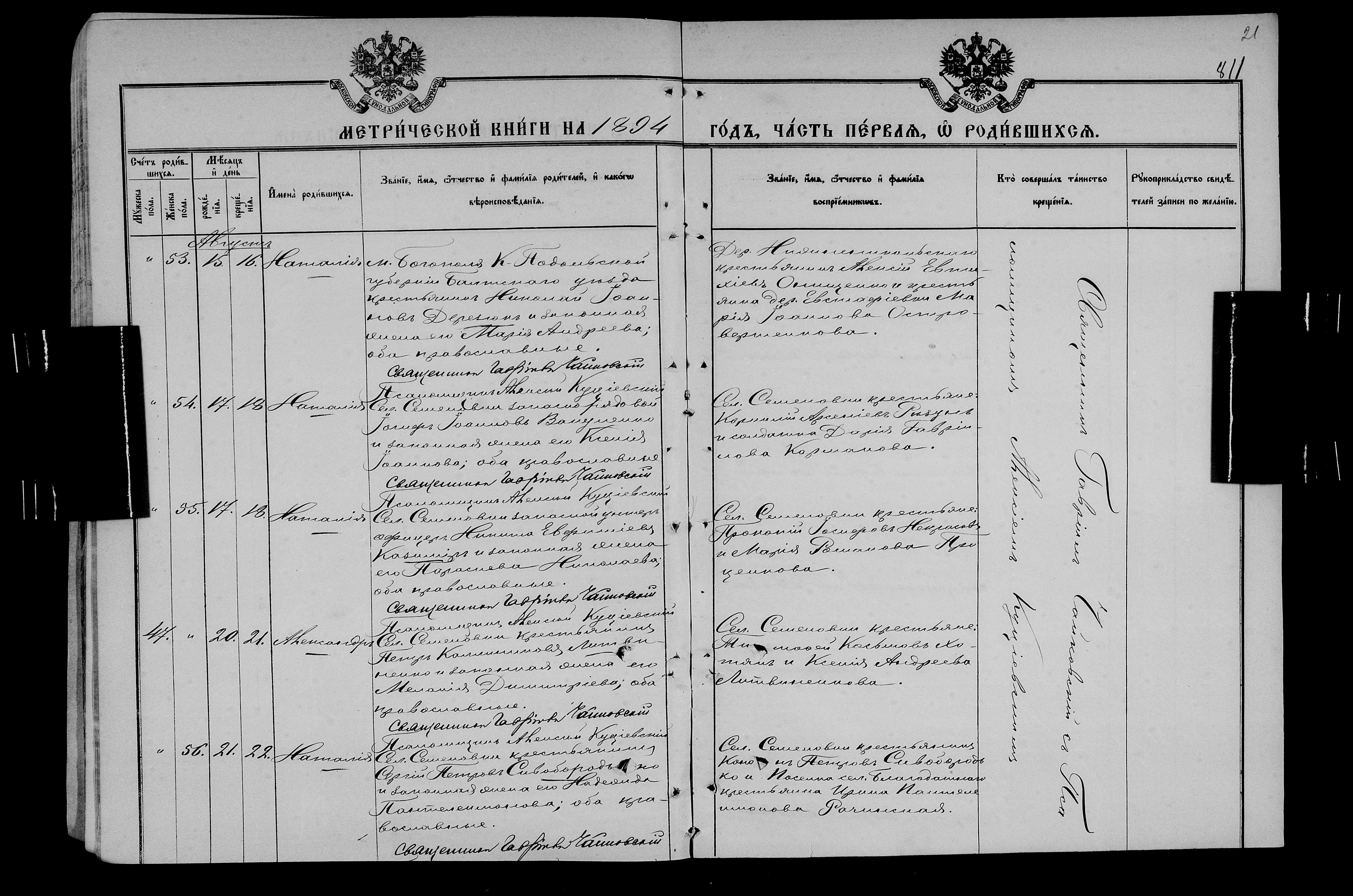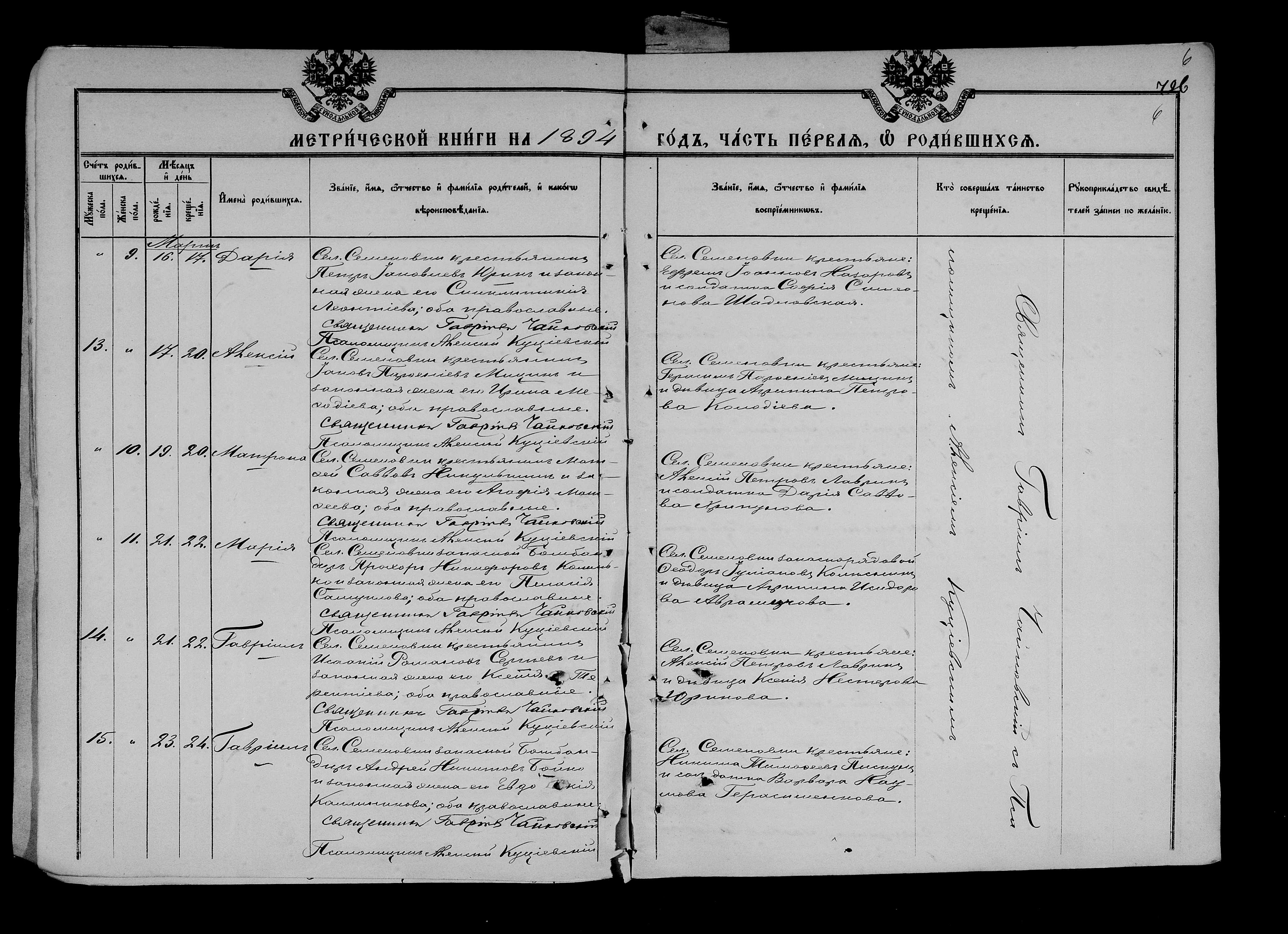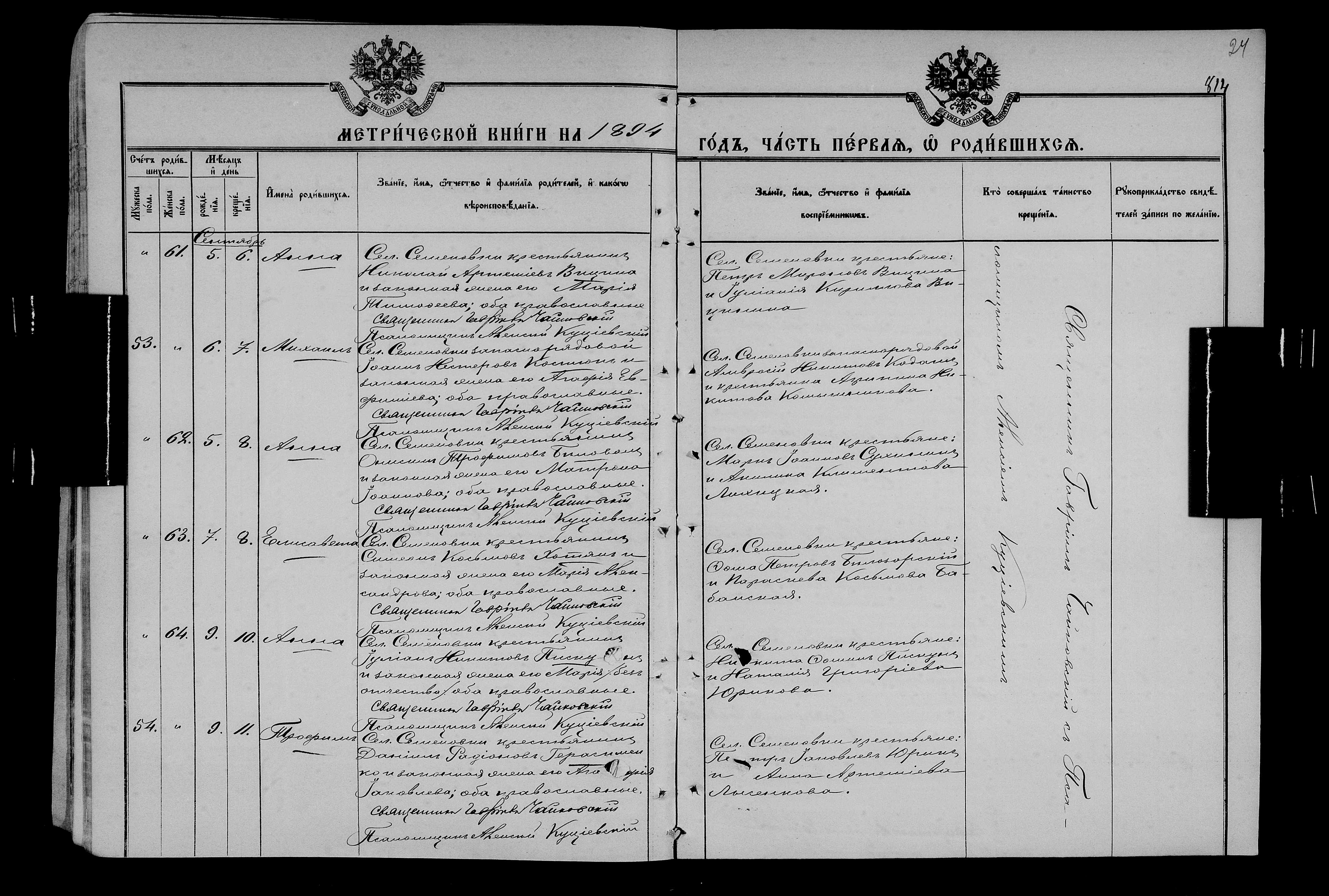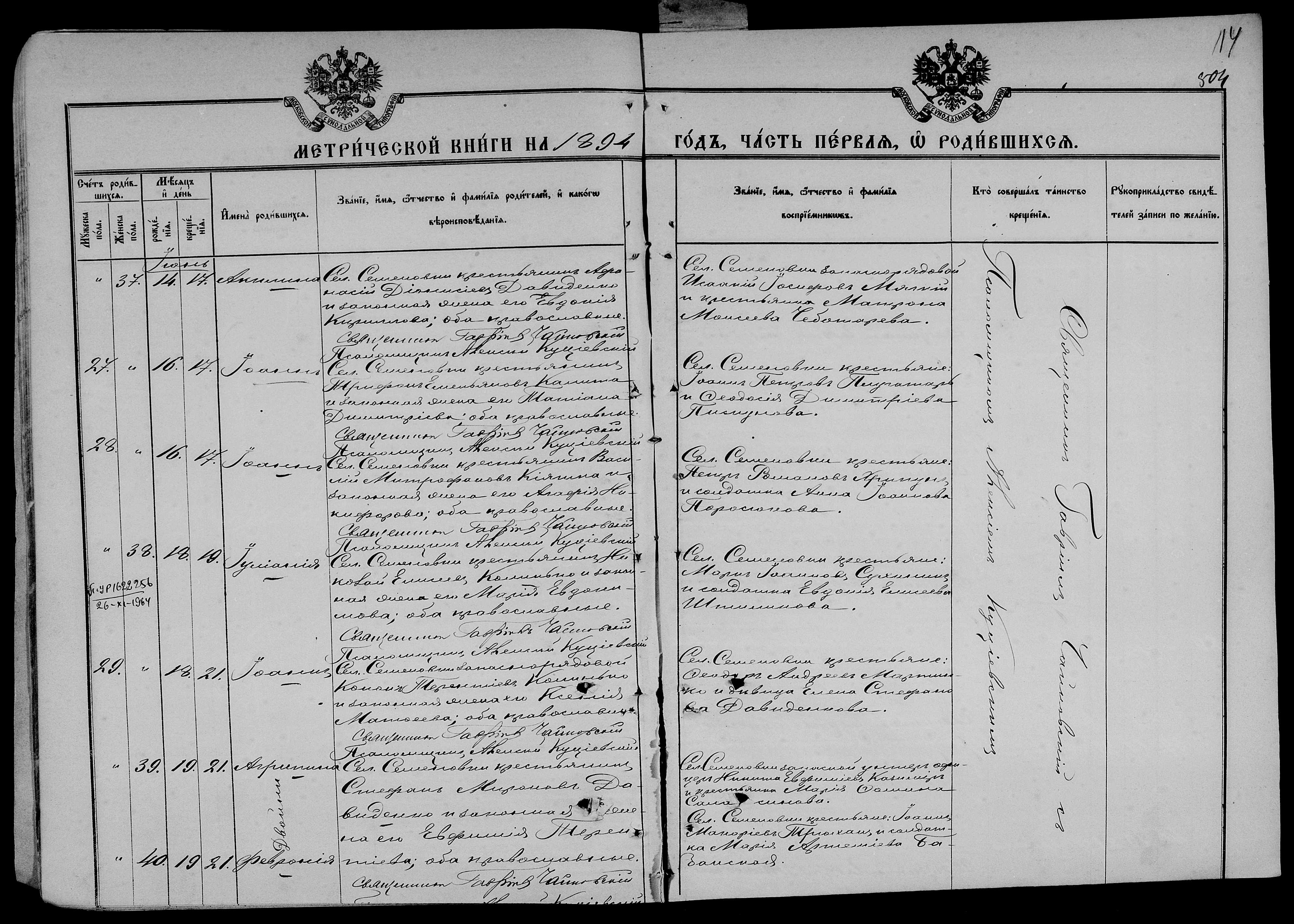 • • • • Справа № 25 Метричні книги Миколаївської (Свято-Миколаївської) церкви с. Семенівка Благодатненської волості Єлисаветградського повіту Херсонської губернії: