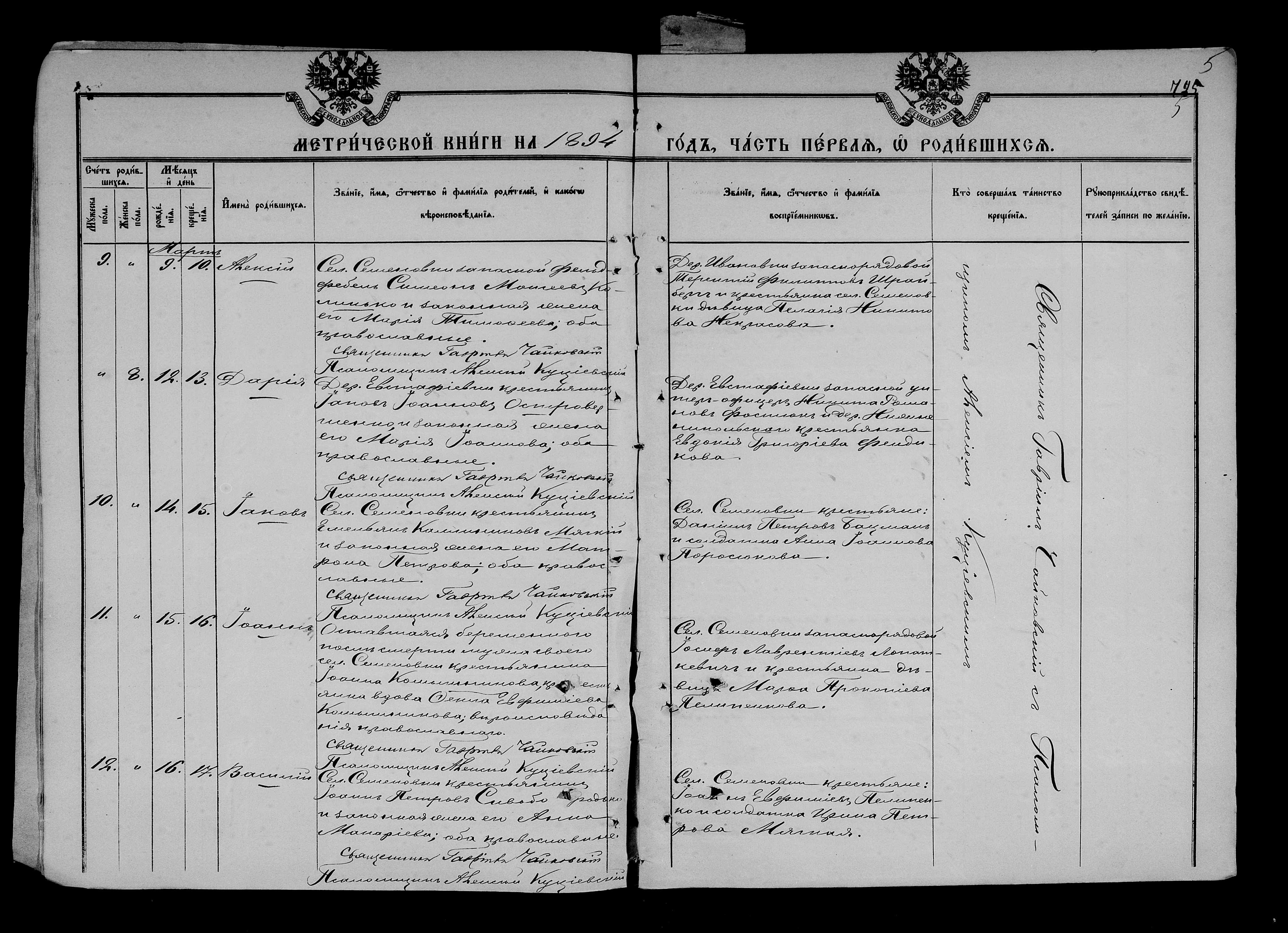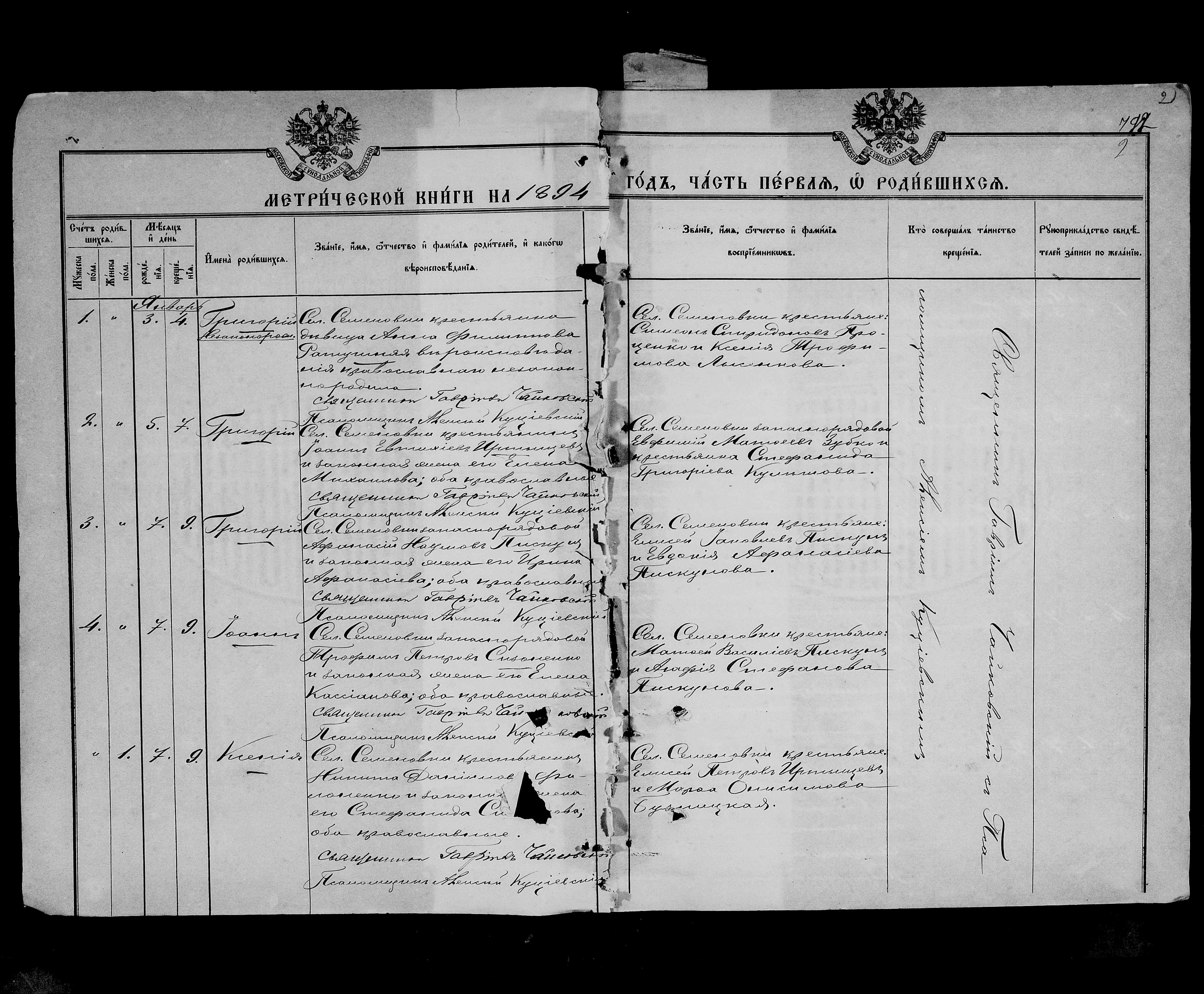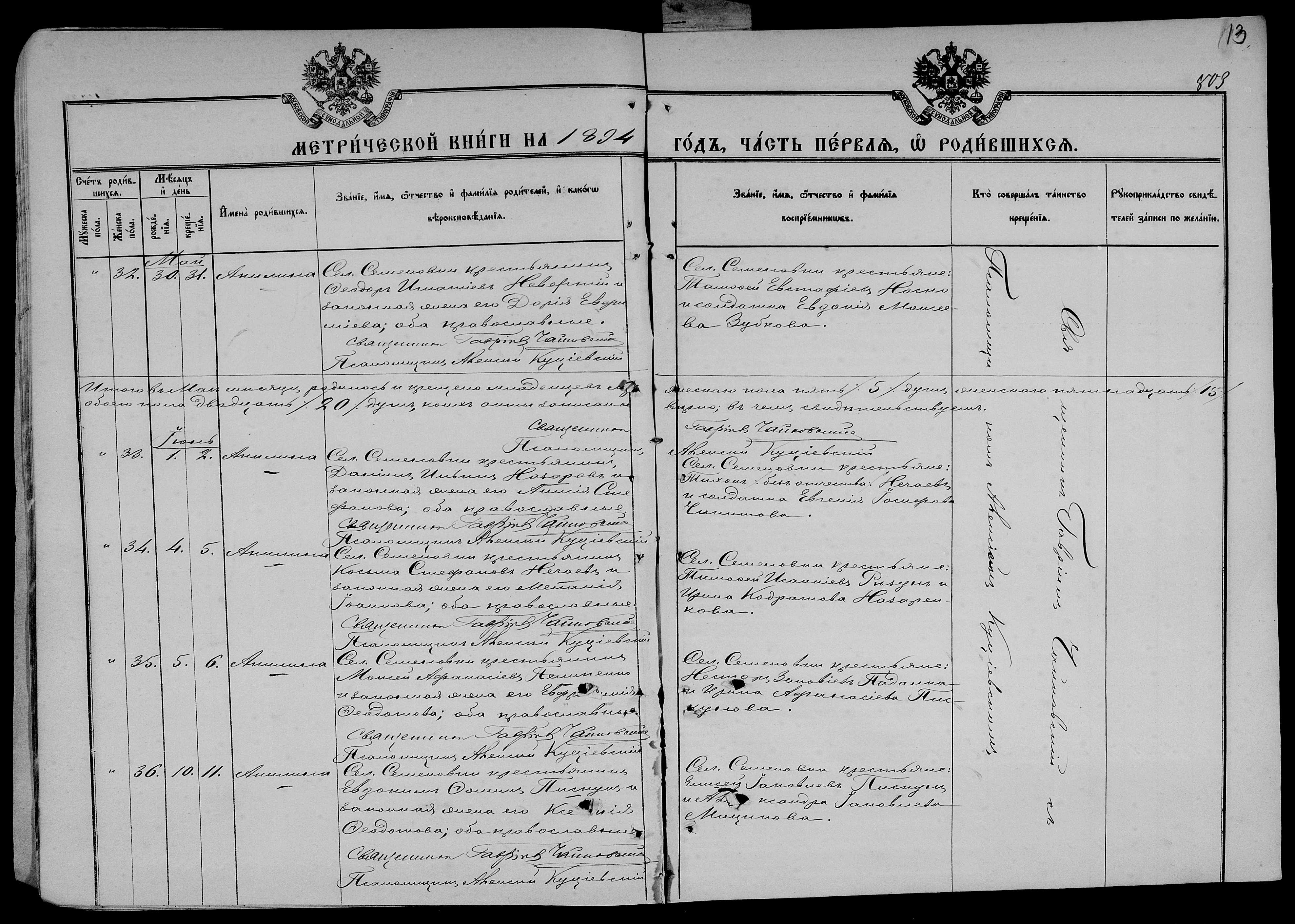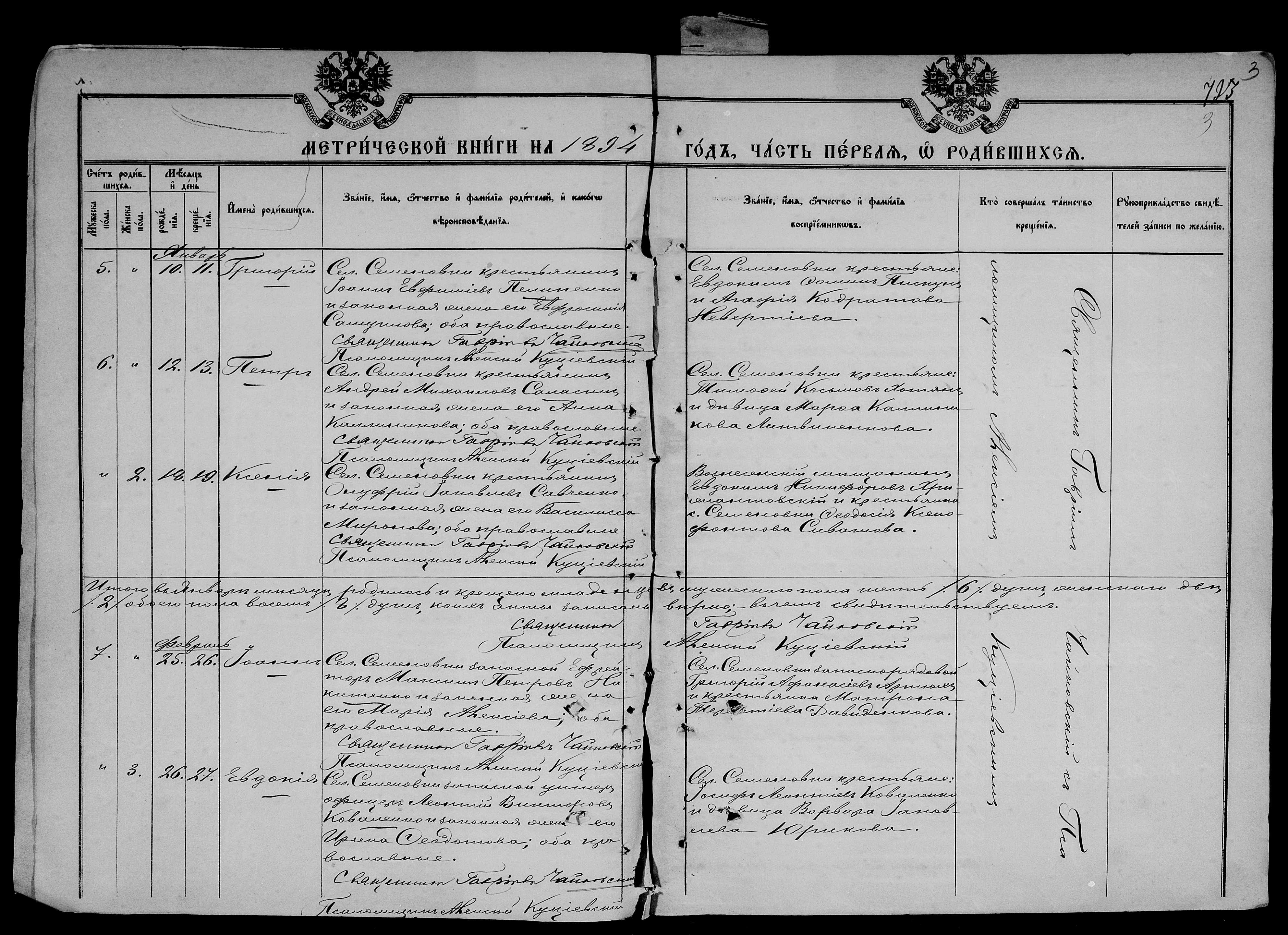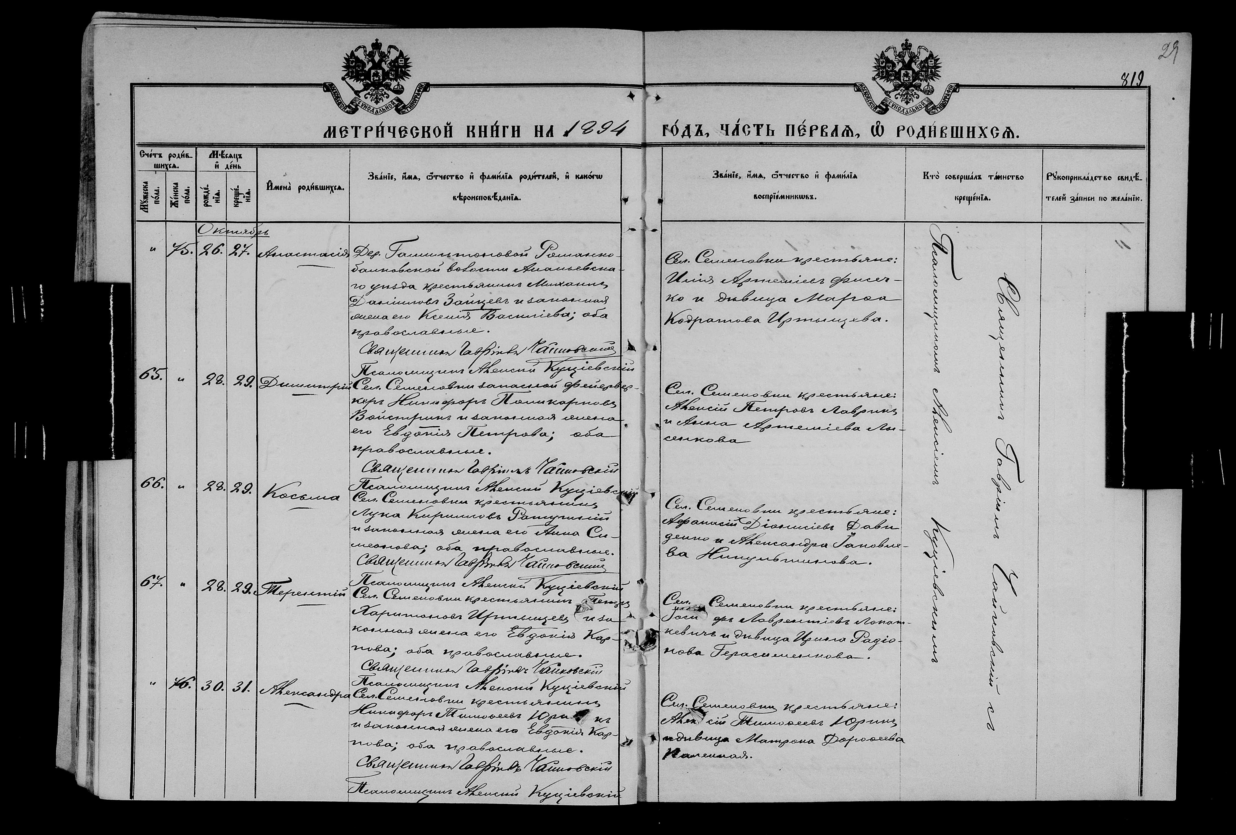 • • • • Справа № 25 Метричні книги Миколаївської (Свято-Миколаївської) церкви с. Семенівка Благодатненської волості Єлисаветградського повіту Херсонської губернії: